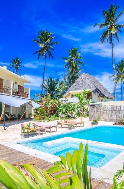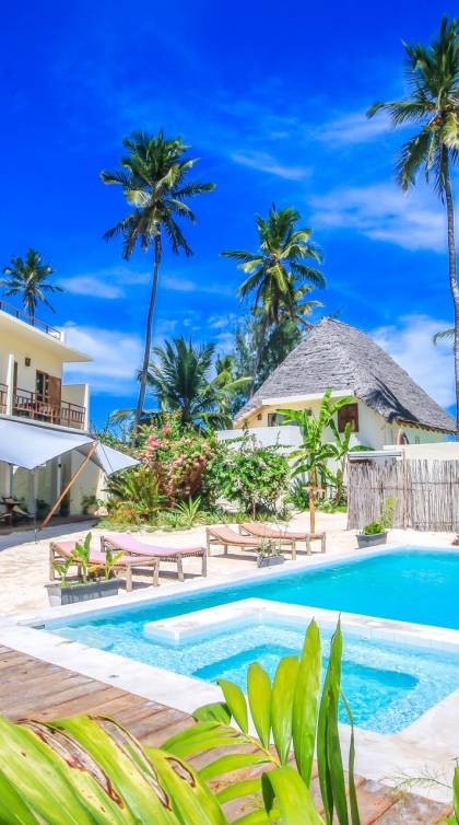 Jambiani Villas está situada en el rincón más hermoso de la isla tropical de Zanzíbar, junto con la costa sureste famosa por sus playas de arena blanca y aguas turquesas del Océano Índico.
