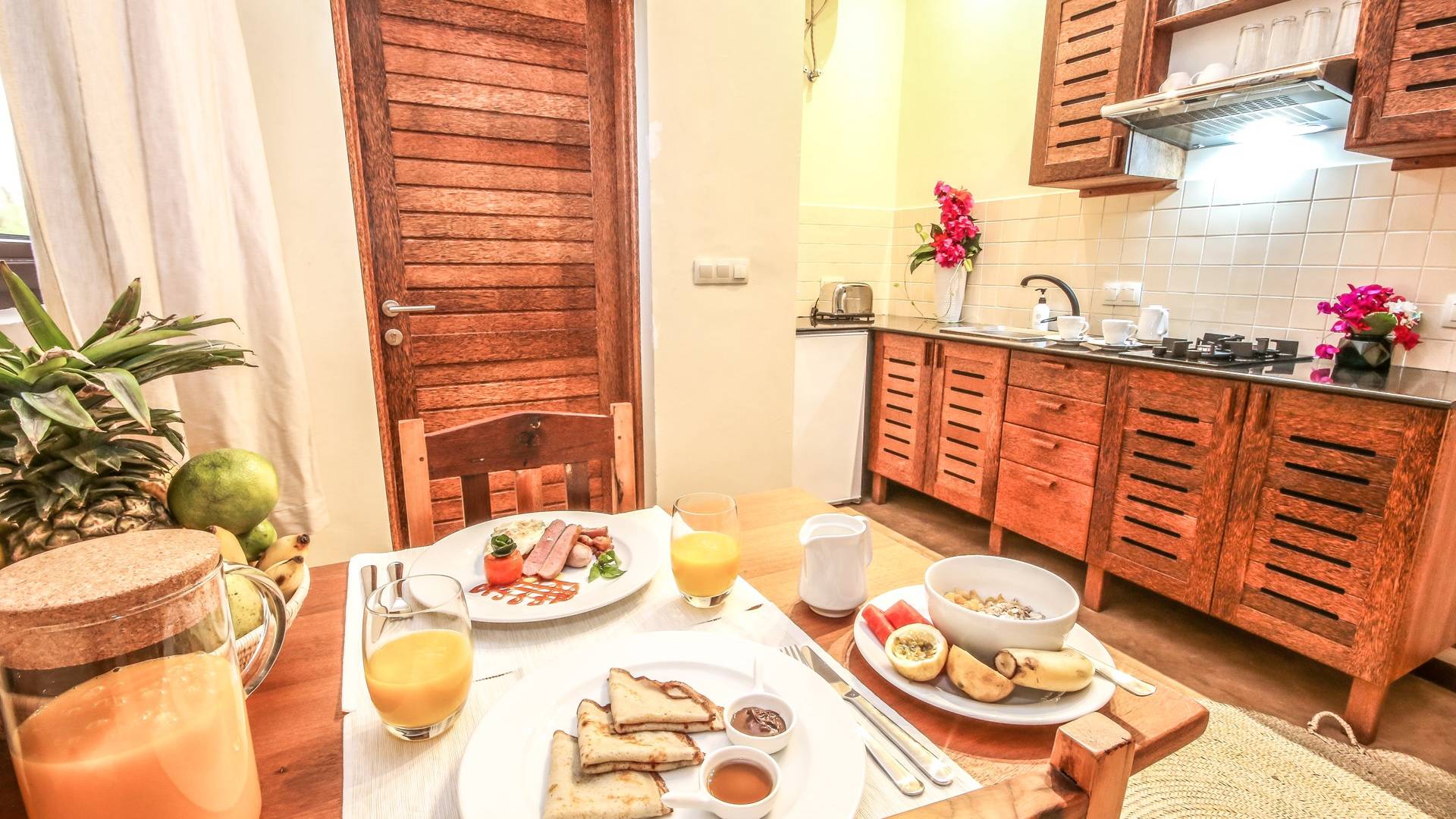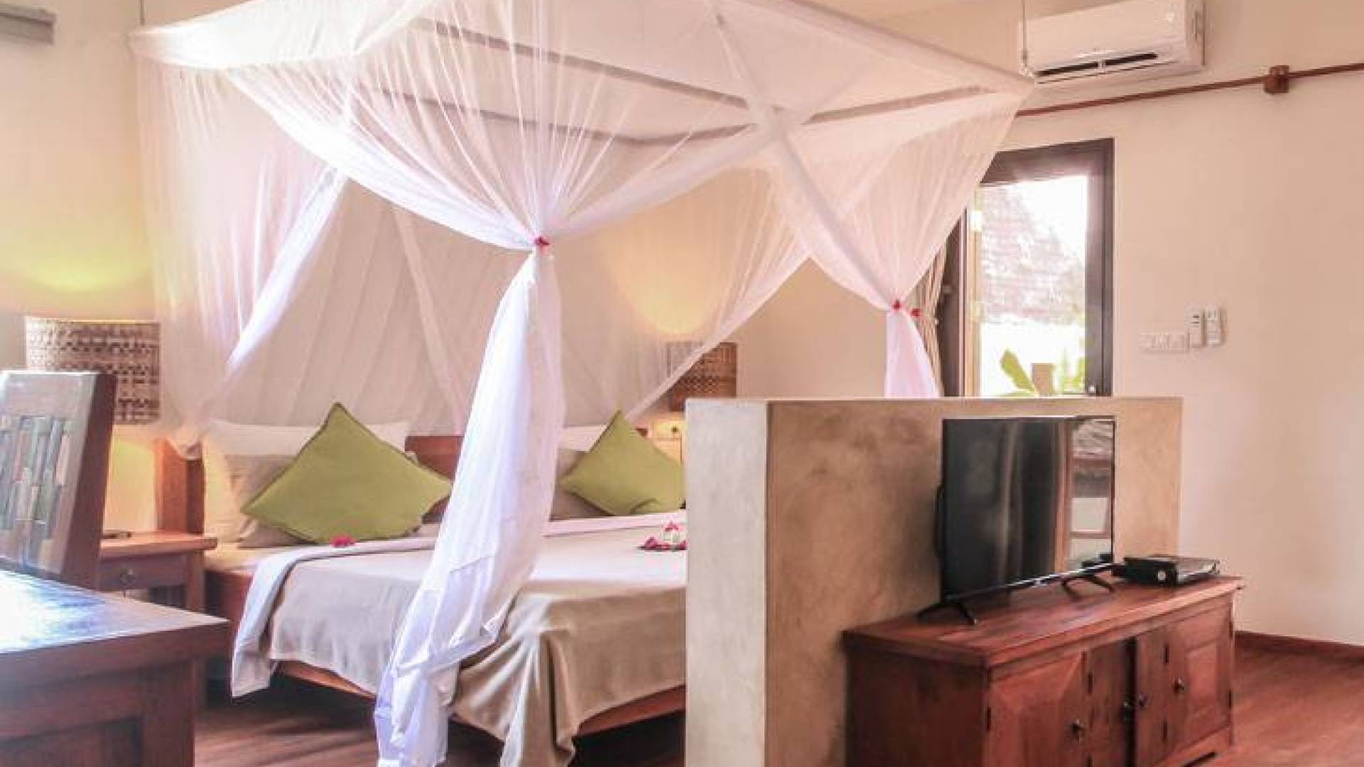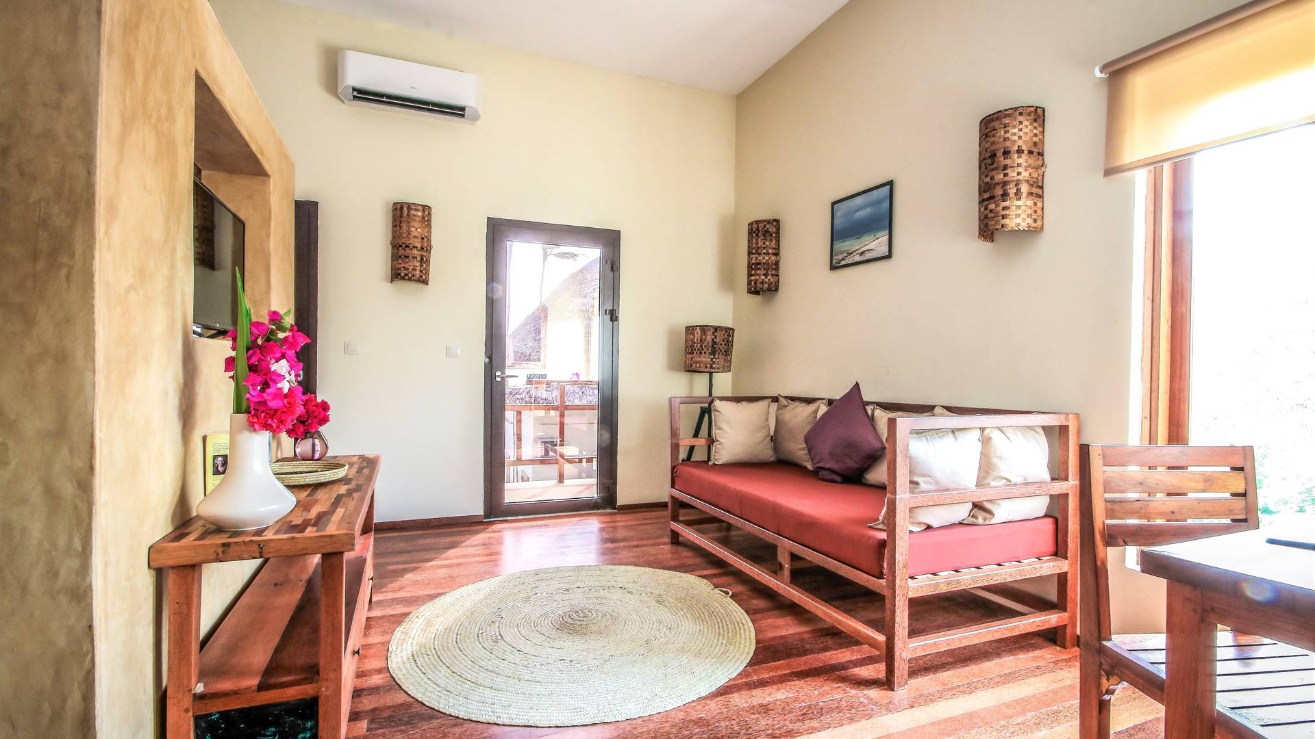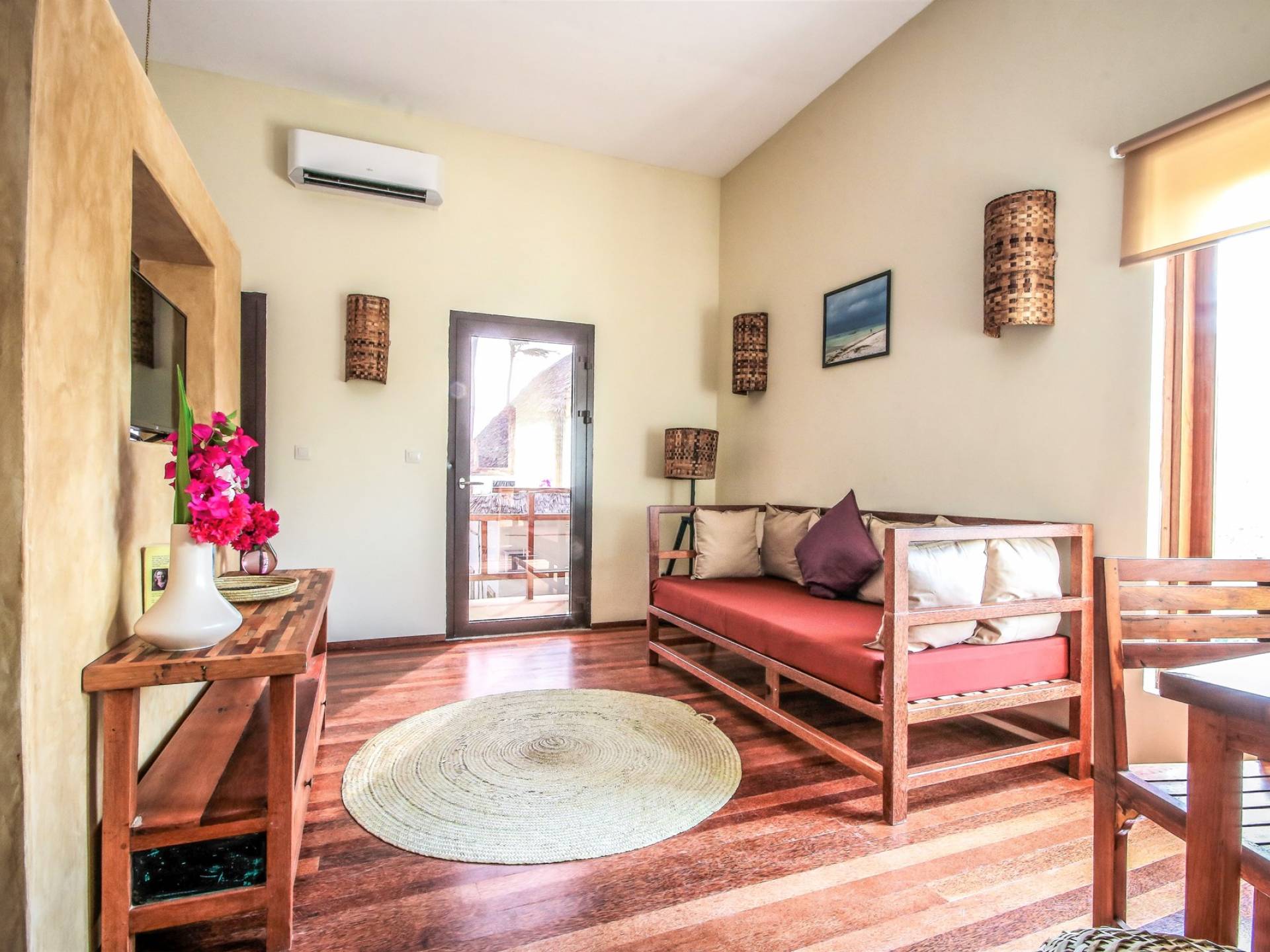 El apartamento está situado en el primer piso de las propiedades Katikati y Kusini. Ofrecen increíbles vistas privadas de la zona y el océano desde amplios balcones. También tienen fácil acceso al restaurante y al bar y son perfectas para parejas.