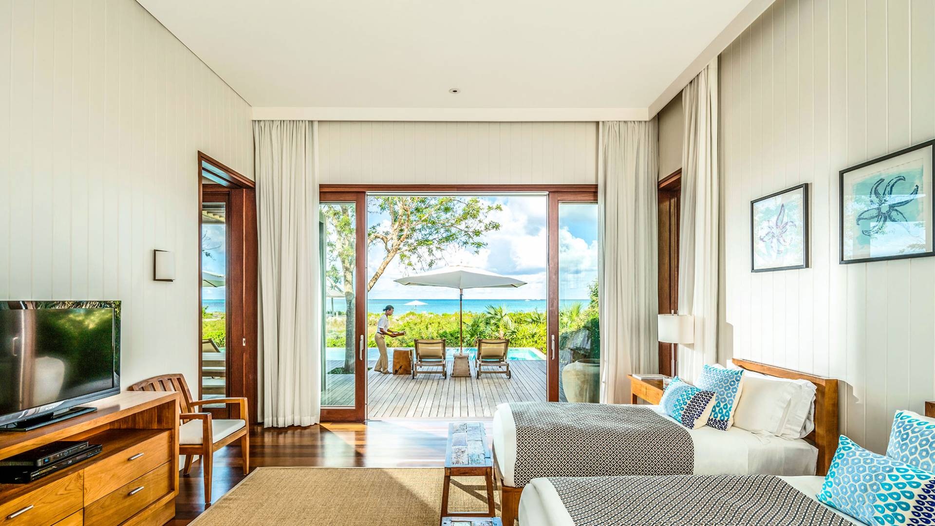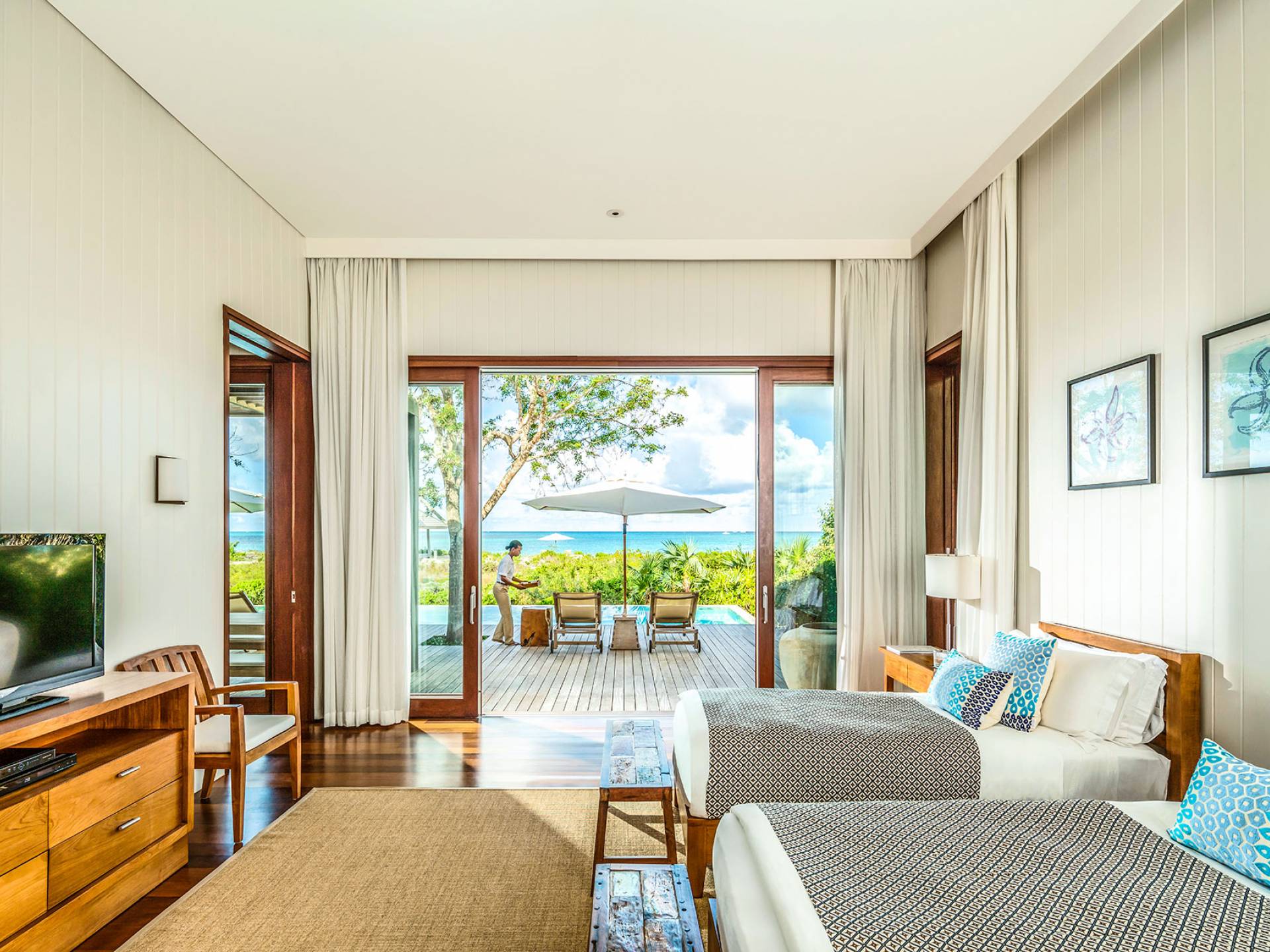 The Tamarind Guest Villa se encuentra en la parte sur de la isla, a 12 minutos en buggy del complejo principal. Esta villa frente al mar está diseñada pensando en la relajación, en hermosas líneas limpias con un piso de madera en tonos miel. Grandes dormitorios con baño se encuentran a cada lado del salón y el comedor, donde también hay una cocina privada. Ambos dormitorios tienen acceso directo a la terraza de la piscina y una franja privada de playa más allá.
