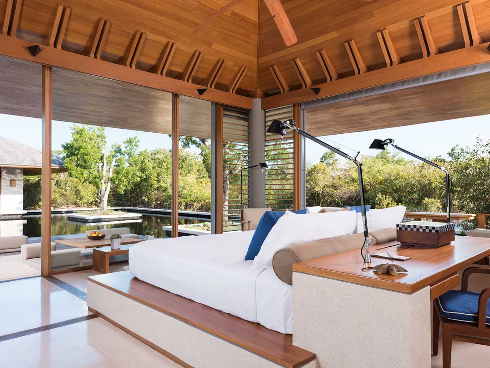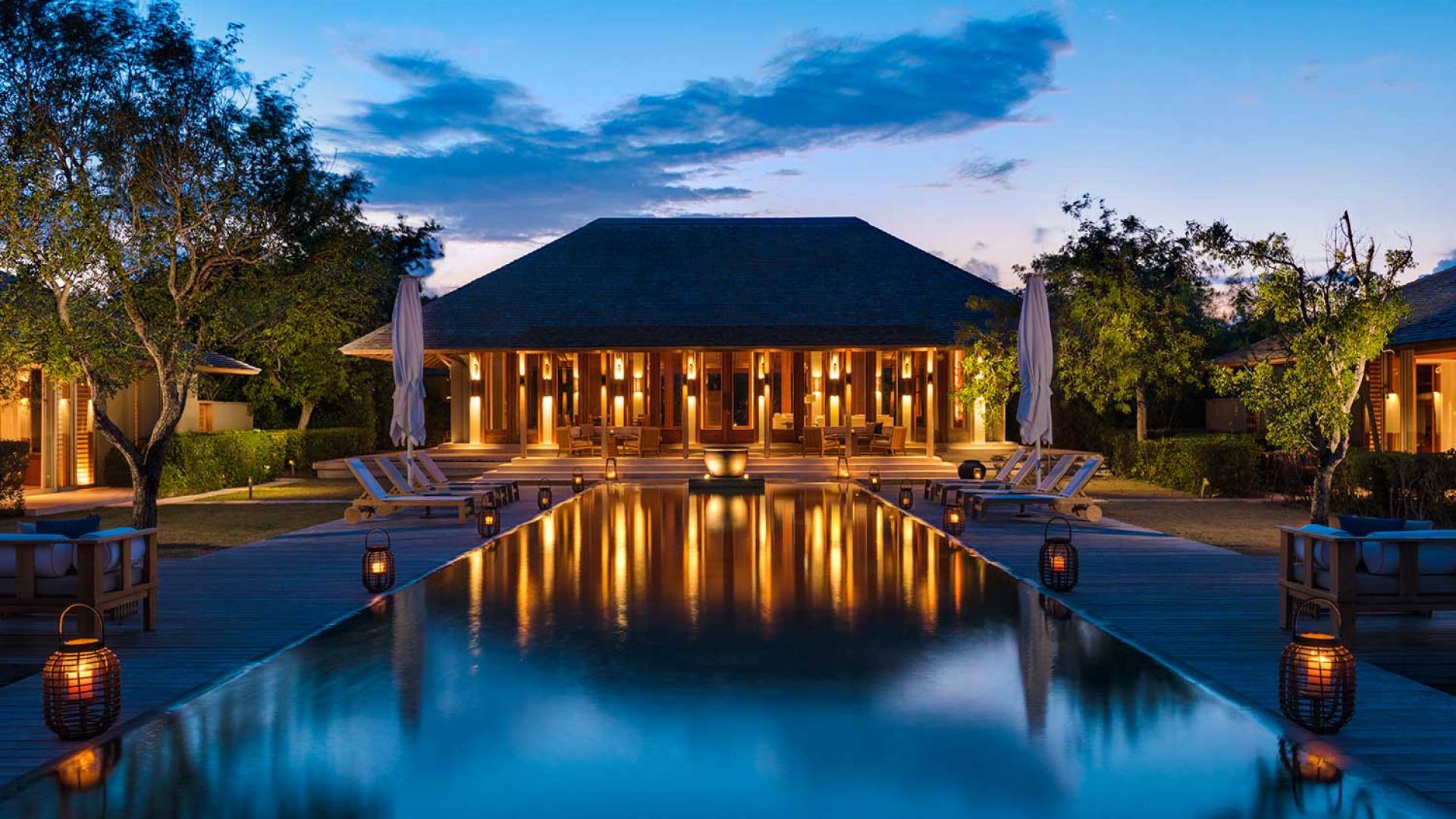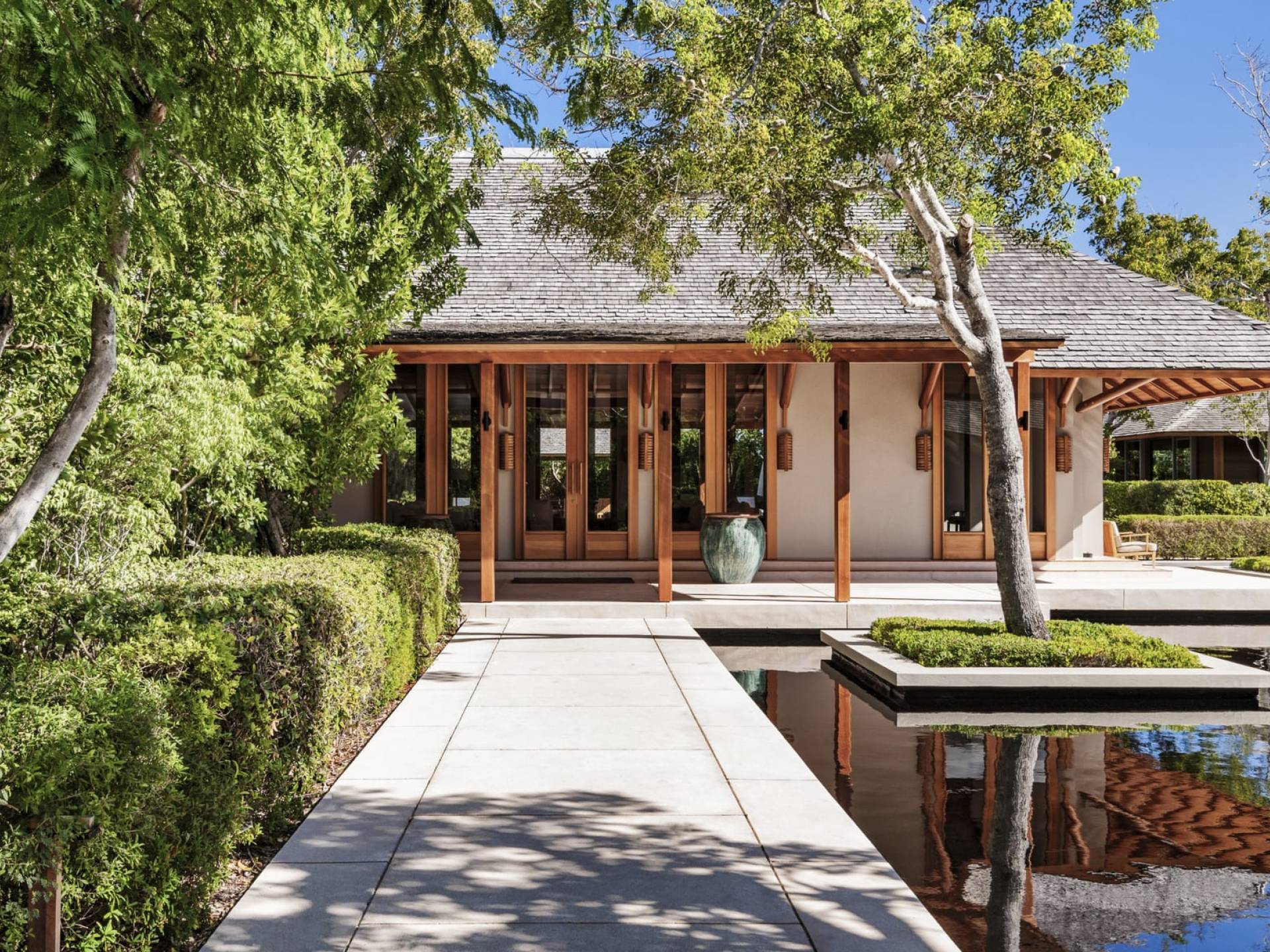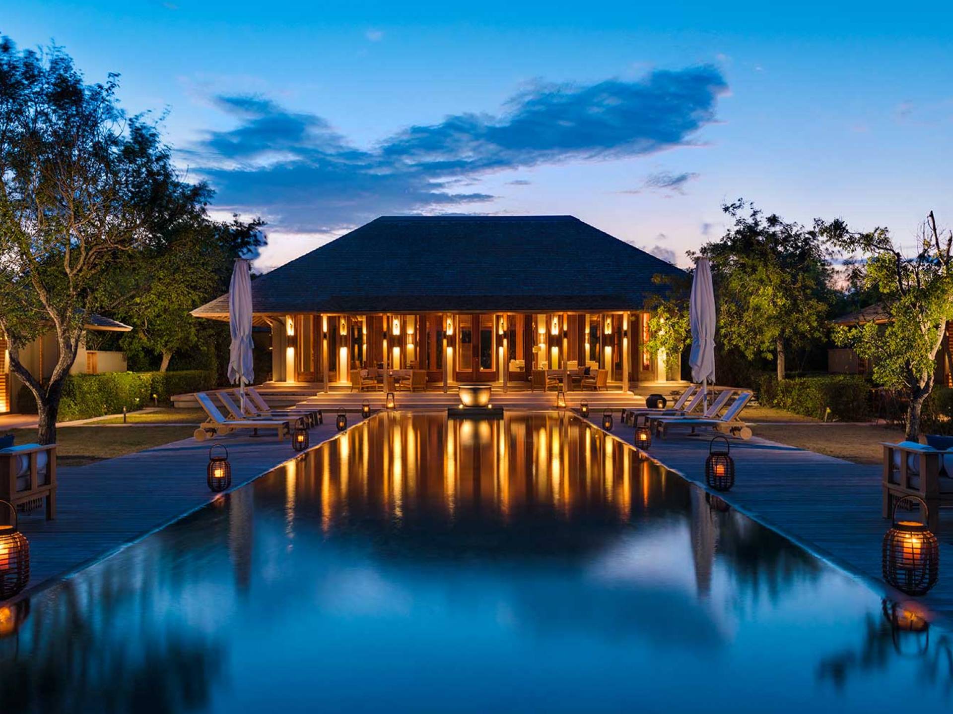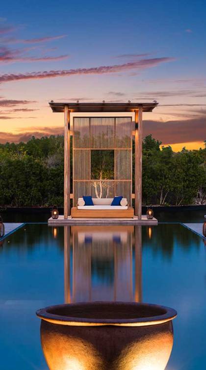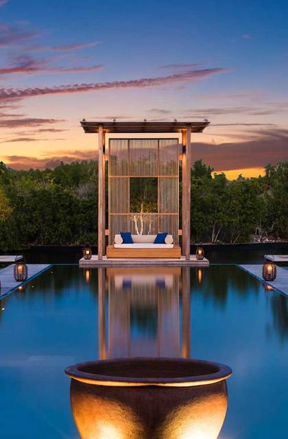 Con vistas a los estanques y jardines reflectantes, varios ofrecen vistas al mar, mientras que otros ofrecen acceso directo a la playa. Todos son atendidos por cocineros personales y amas de casa. Bienestar: ubicado alrededor de un estanque tranquilo, el spa de Amanyara incluye cuatro pabellones de tratamiento, un pabellón de relajación y una sala de yoga al aire libre. El gimnasio cuenta con un estudio de Pilates y equipos de entrenamiento cardiovascular y de resistencia. La Casa Club cuenta con cuatro canchas de tenis, una cancha polideportiva y una cancha de voleibol. Familia: desde paseos por la naturaleza hasta deportes energéticos en la playa, las ofertas de Amanyara se extienden a toda la familia. Disfruten de una serie de actividades juntos, y los niños pueden participar en sesiones personalizadas de fútbol, tenis, lacrosse, billar, yoga y pilates, bajo la supervisión de personal especialmente capacitado.