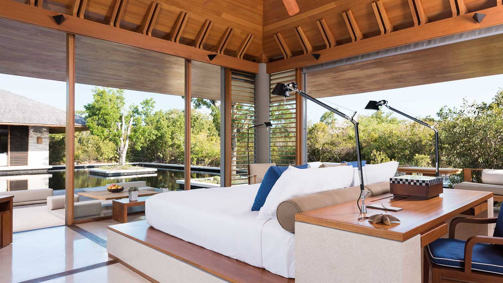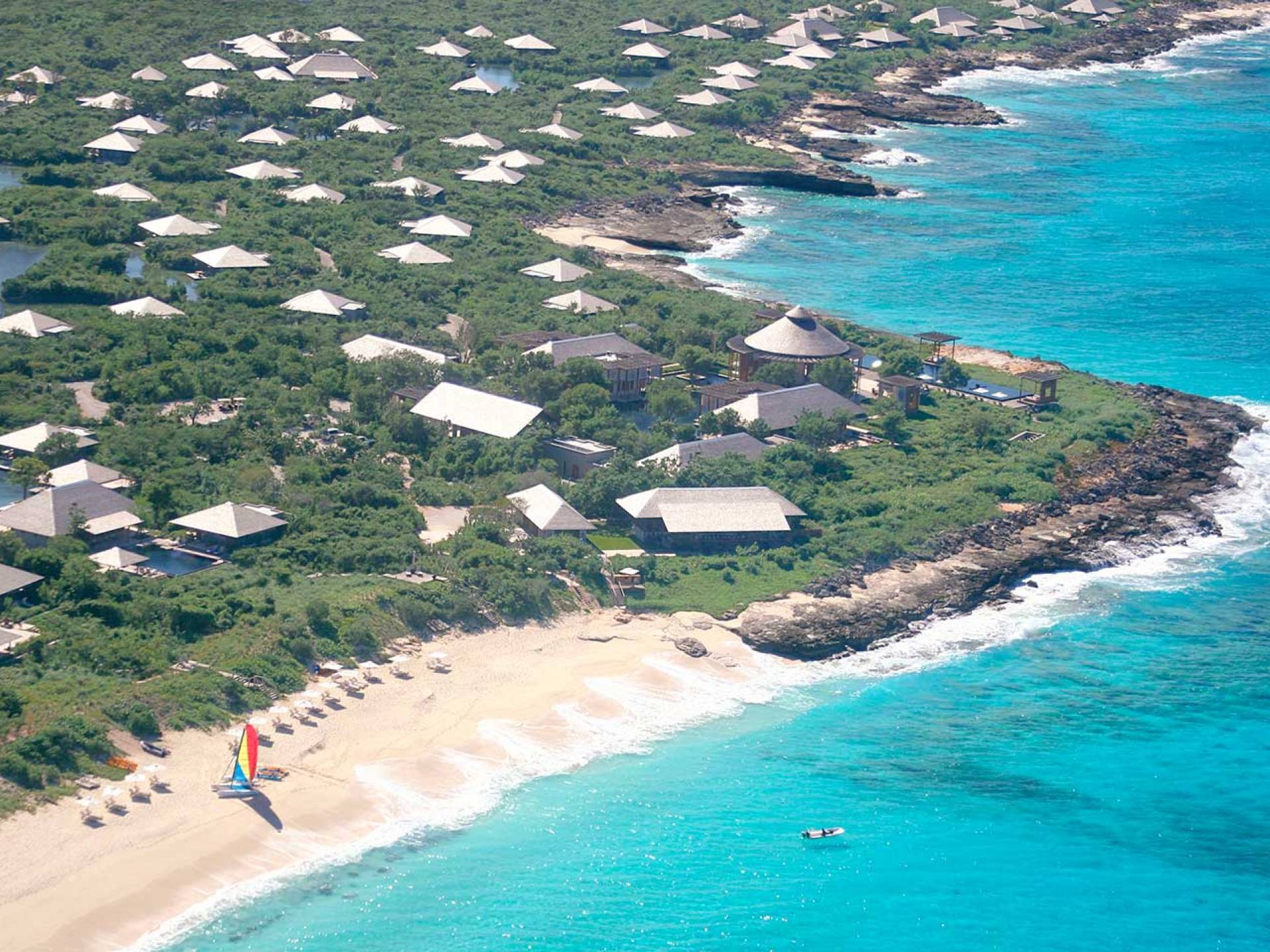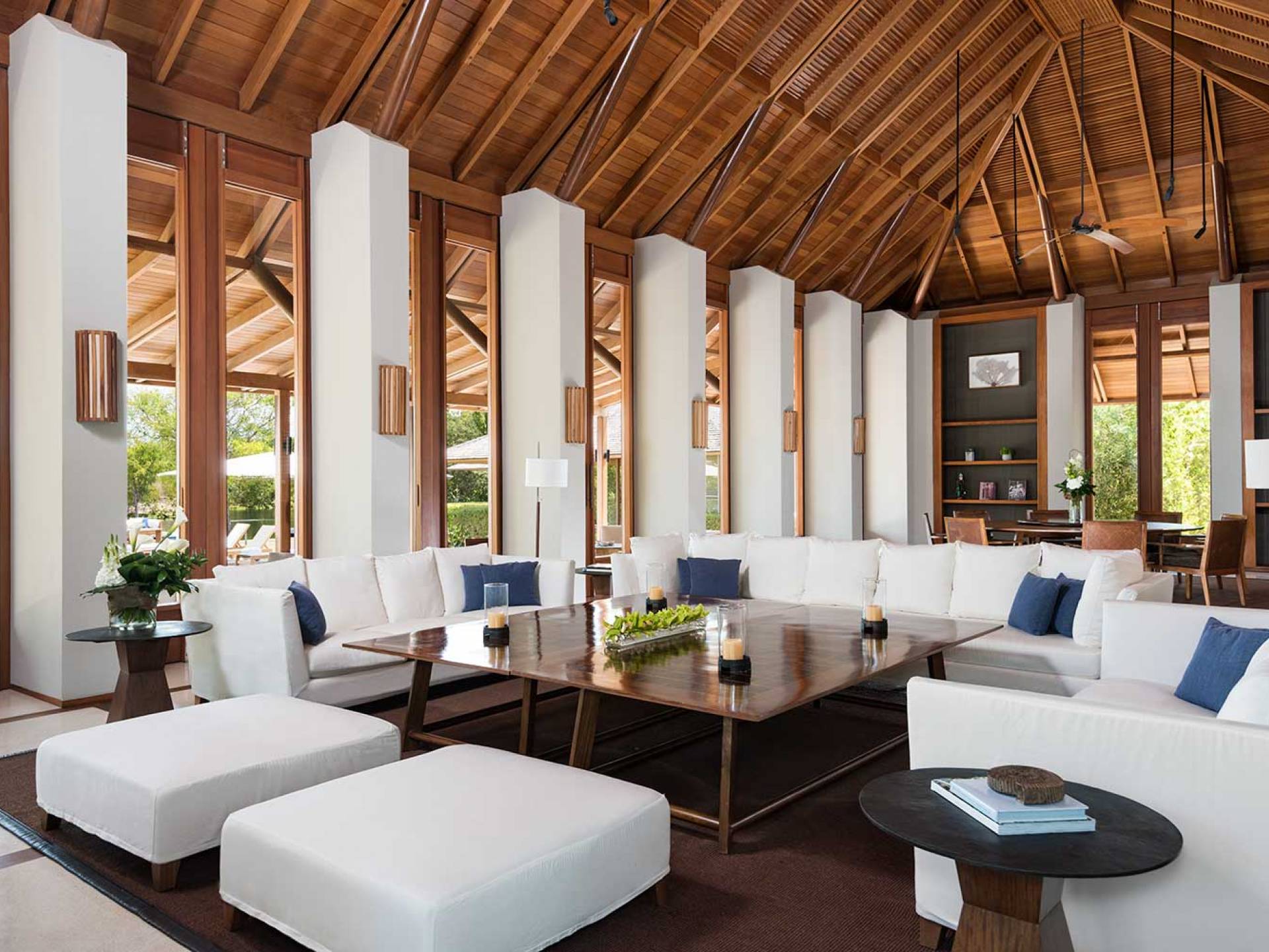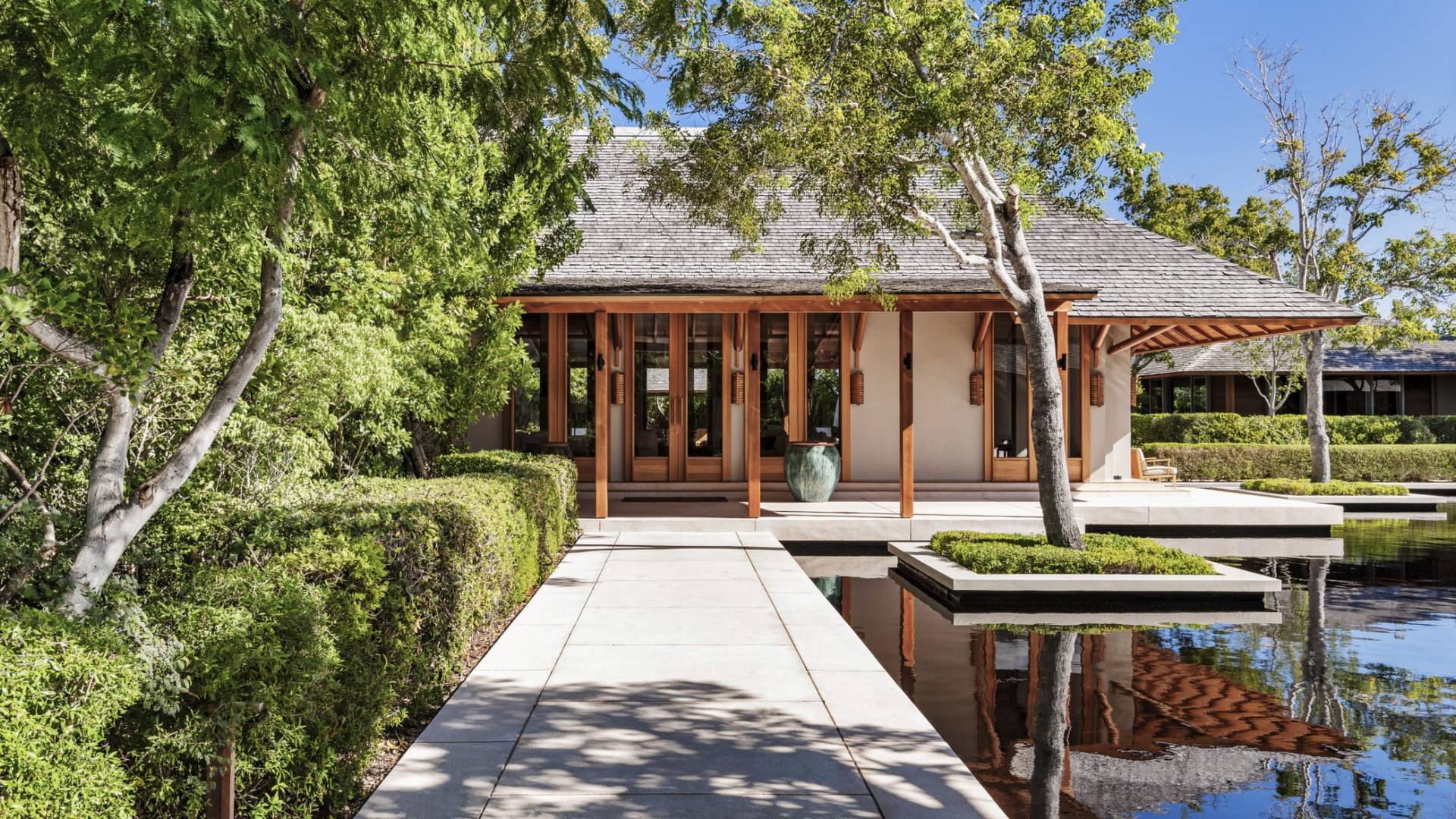 Con vistas a los estanques y jardines reflectantes, varios ofrecen vistas al mar, mientras que otros ofrecen acceso directo a la playa. Todos son atendidos por cocineros personales y amas de casa. Bienestar: ubicado alrededor de un estanque tranquilo, el spa de Amanyara incluye cuatro pabellones de tratamiento, un pabellón de relajación y una sala de yoga al aire libre. El gimnasio cuenta con un estudio de Pilates y equipos de entrenamiento cardiovascular y de resistencia. La Casa Club cuenta con cuatro canchas de tenis, una cancha polideportiva y una cancha de voleibol. Familia: desde paseos por la naturaleza hasta deportes energéticos en la playa, las ofertas de Amanyara se extienden a toda la familia. Disfruten de una serie de actividades juntos, y los niños pueden participar en sesiones personalizadas de fútbol, tenis, lacrosse, billar, yoga y pilates, bajo la supervisión de personal especialmente capacitado.