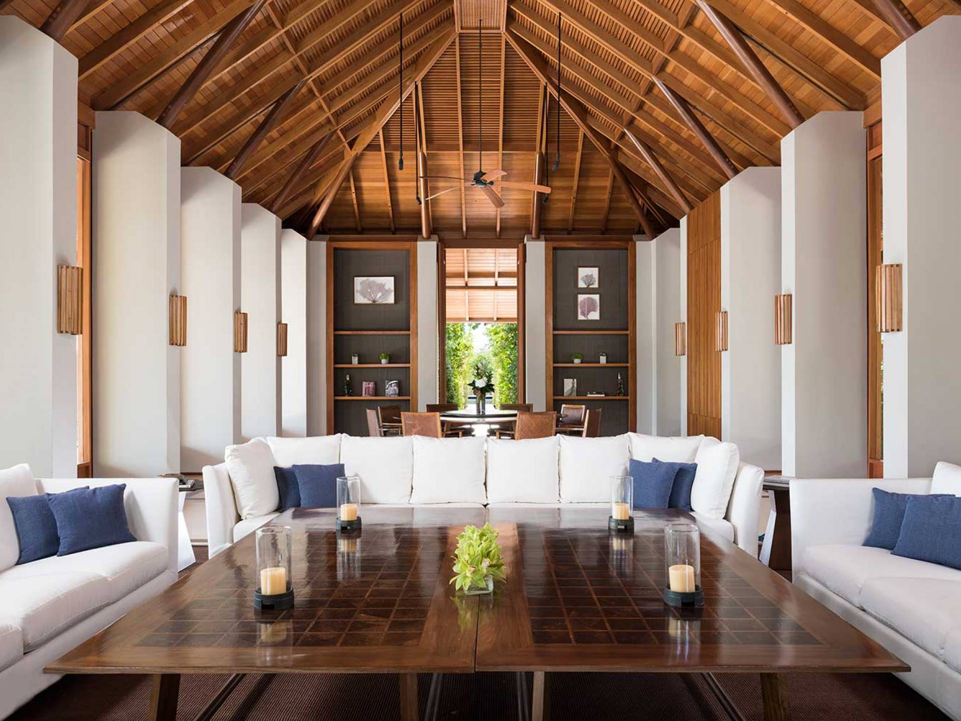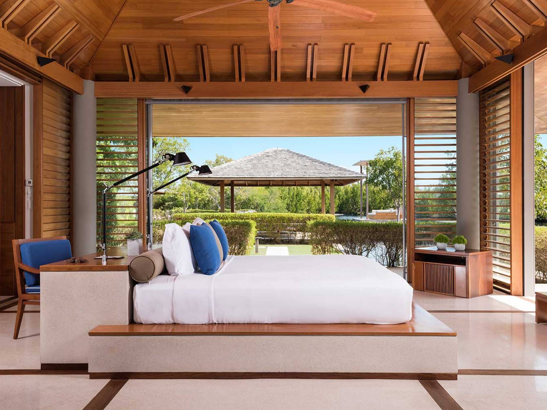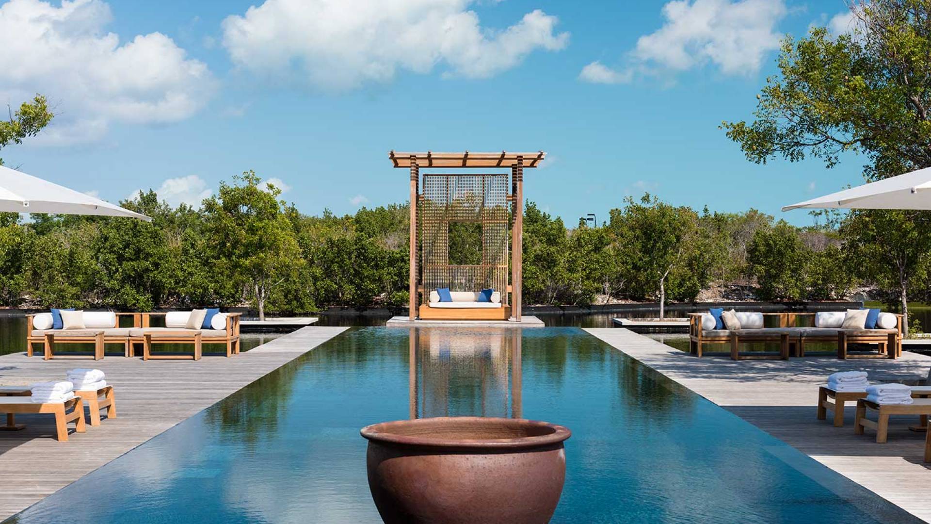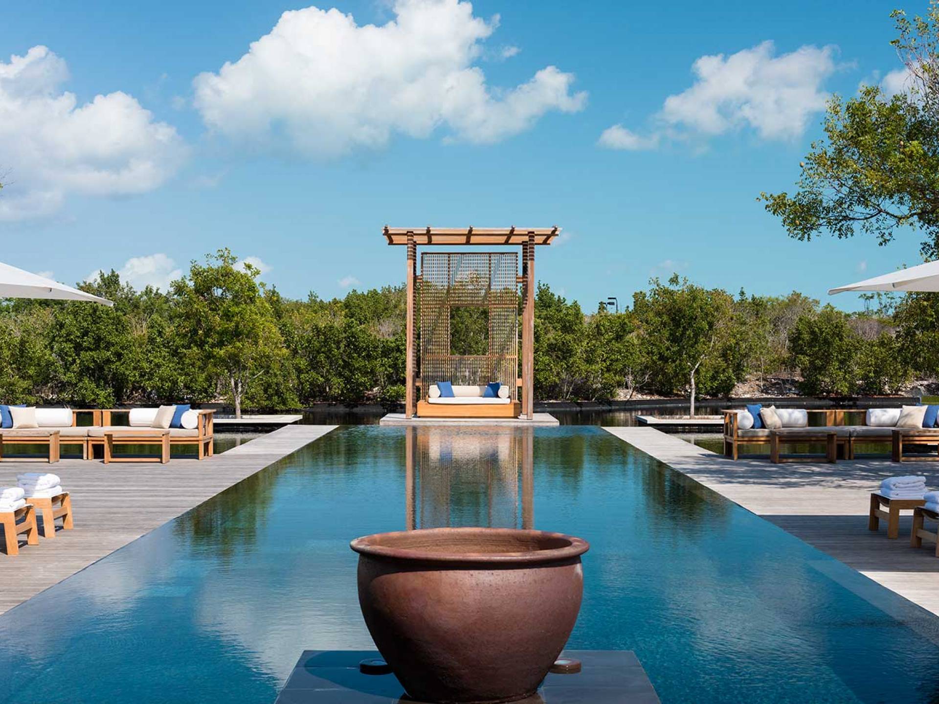 Con vistas a los estanques y jardines reflectantes, varios ofrecen vistas al mar, mientras que otros ofrecen acceso directo a la playa. Todos son atendidos por cocineros personales y amas de casa. Bienestar: ubicado alrededor de un estanque tranquilo, el spa de Amanyara incluye cuatro pabellones de tratamiento, un pabellón de relajación y una sala de yoga al aire libre. El gimnasio cuenta con un estudio de Pilates y equipos de entrenamiento cardiovascular y de resistencia. La Casa Club cuenta con cuatro canchas de tenis, una cancha polideportiva y una cancha de voleibol. Familia: desde paseos por la naturaleza hasta deportes energéticos en la playa, las ofertas de Amanyara se extienden a toda la familia. Disfruten de una serie de actividades juntos, y los niños pueden participar en sesiones personalizadas de fútbol, tenis, lacrosse, billar, yoga y pilates, bajo la supervisión de personal especialmente capacitado.