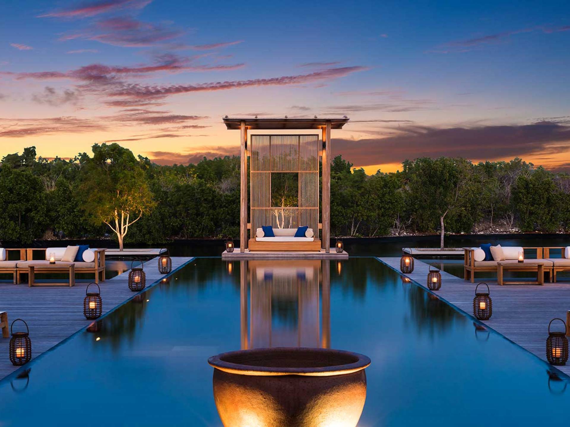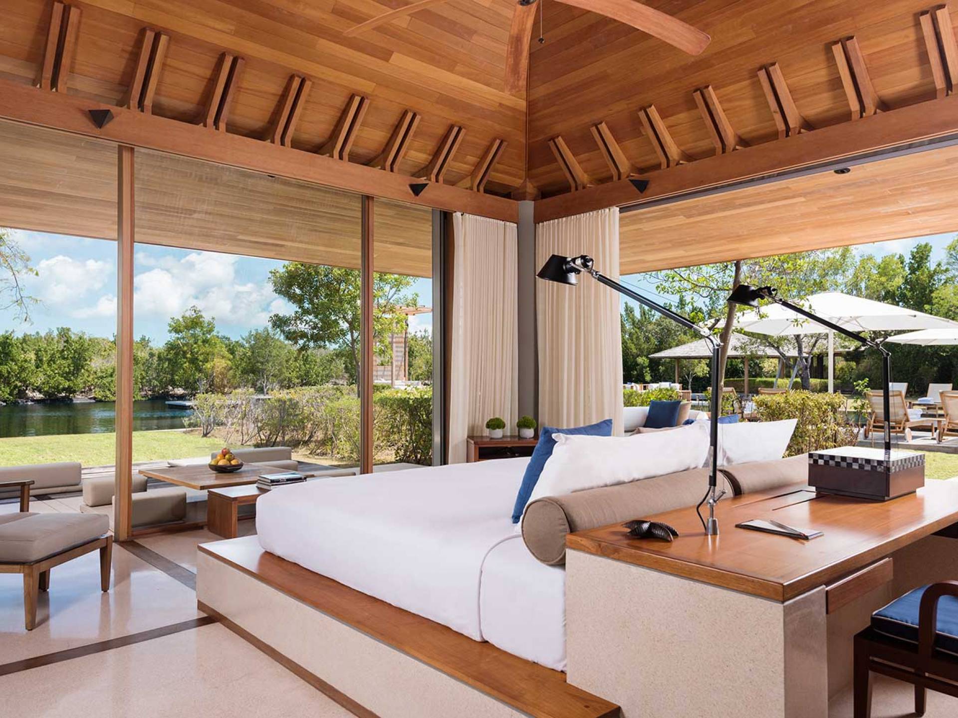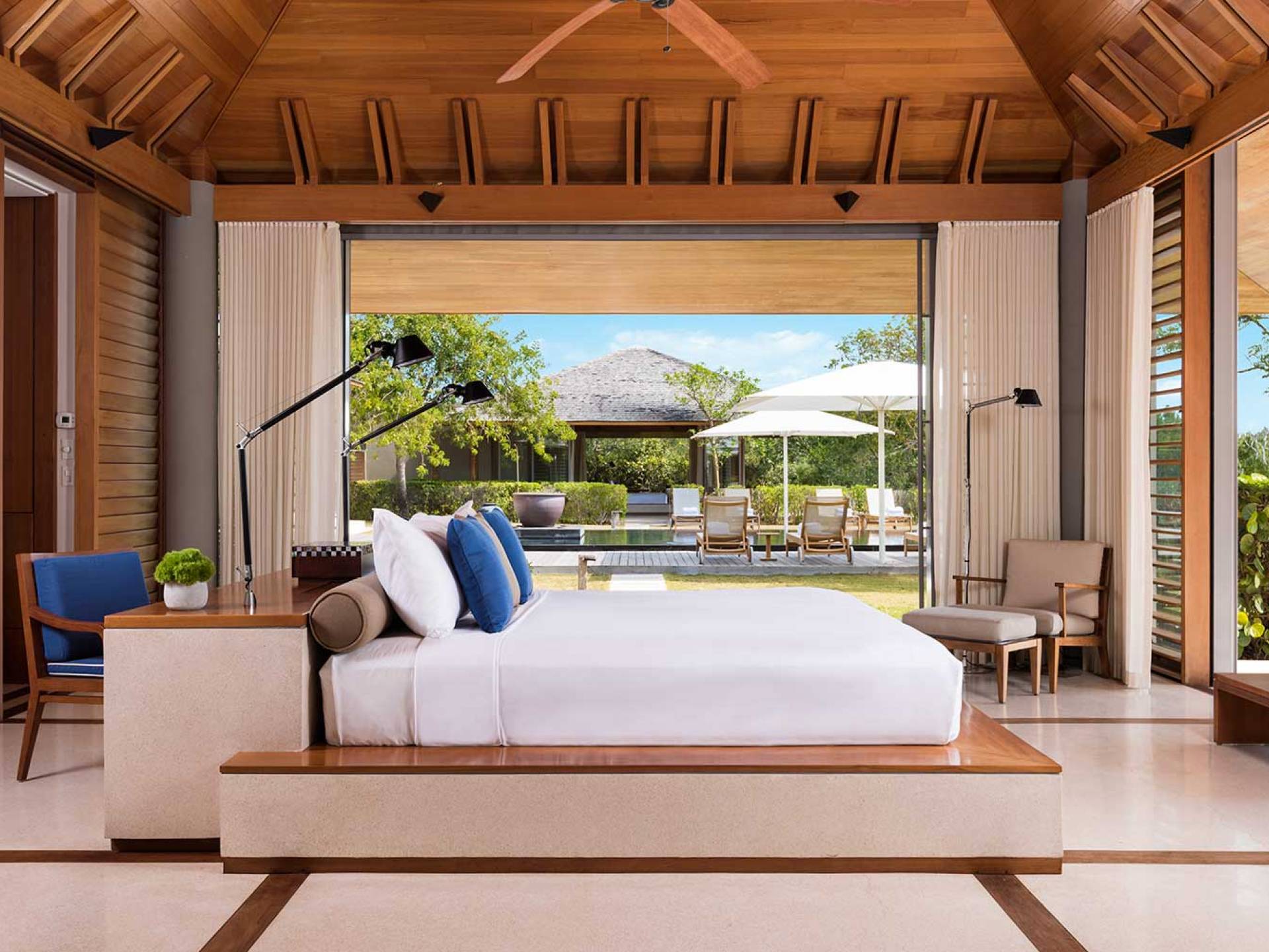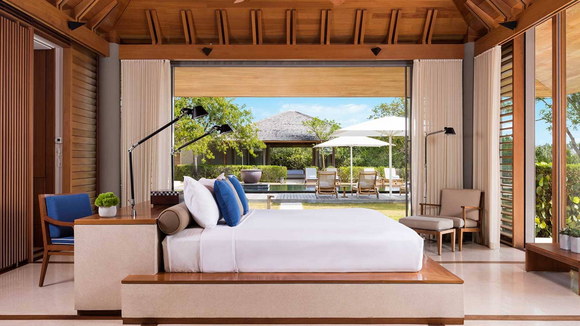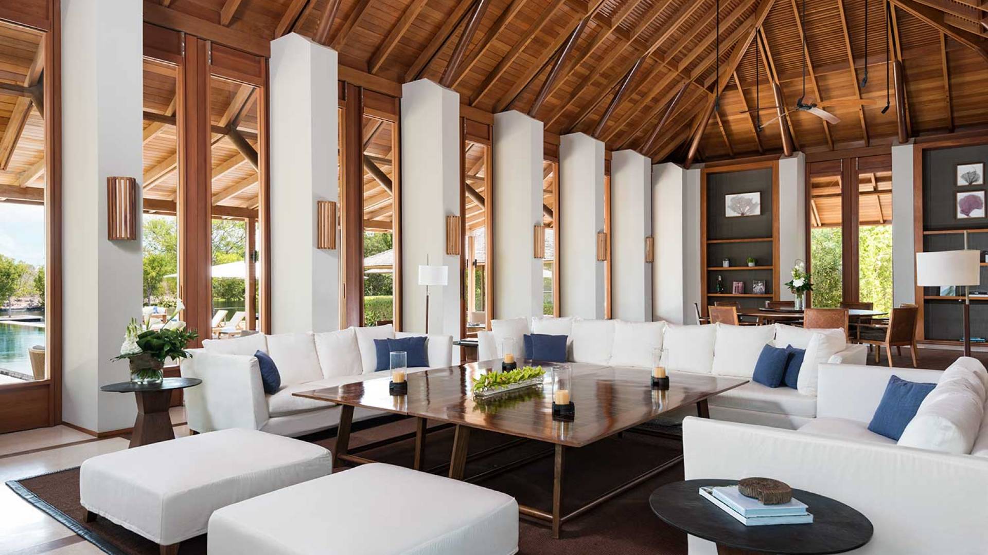 Amanyara Resort, un paraíso para los amantes de la naturaleza, ubicado en la costa occidental de Providenciales, Turks & Caicos. Ya sea para celebrar o pasar tiempo con la familia o los amigos, los huéspedes encontrarán el mismo placer en todo lo que Amanyara tiene para ofrecer, desde actividades activas dirigidas por expertos hasta bienestar transformador o quizás simplemente el simple placer de estar aislado sin esfuerzo en este paraíso de las Islas Turcas y Caicos. Las villas de Amanyara ofrecen privacidad y espacio consumados en un entorno natural. Las áreas de estar de generosas proporciones y de tres a seis dormitorios se encuentran alrededor de una piscina infinita negra y una terraza de madera noble.