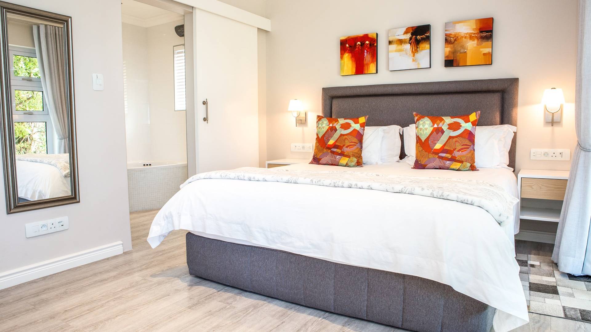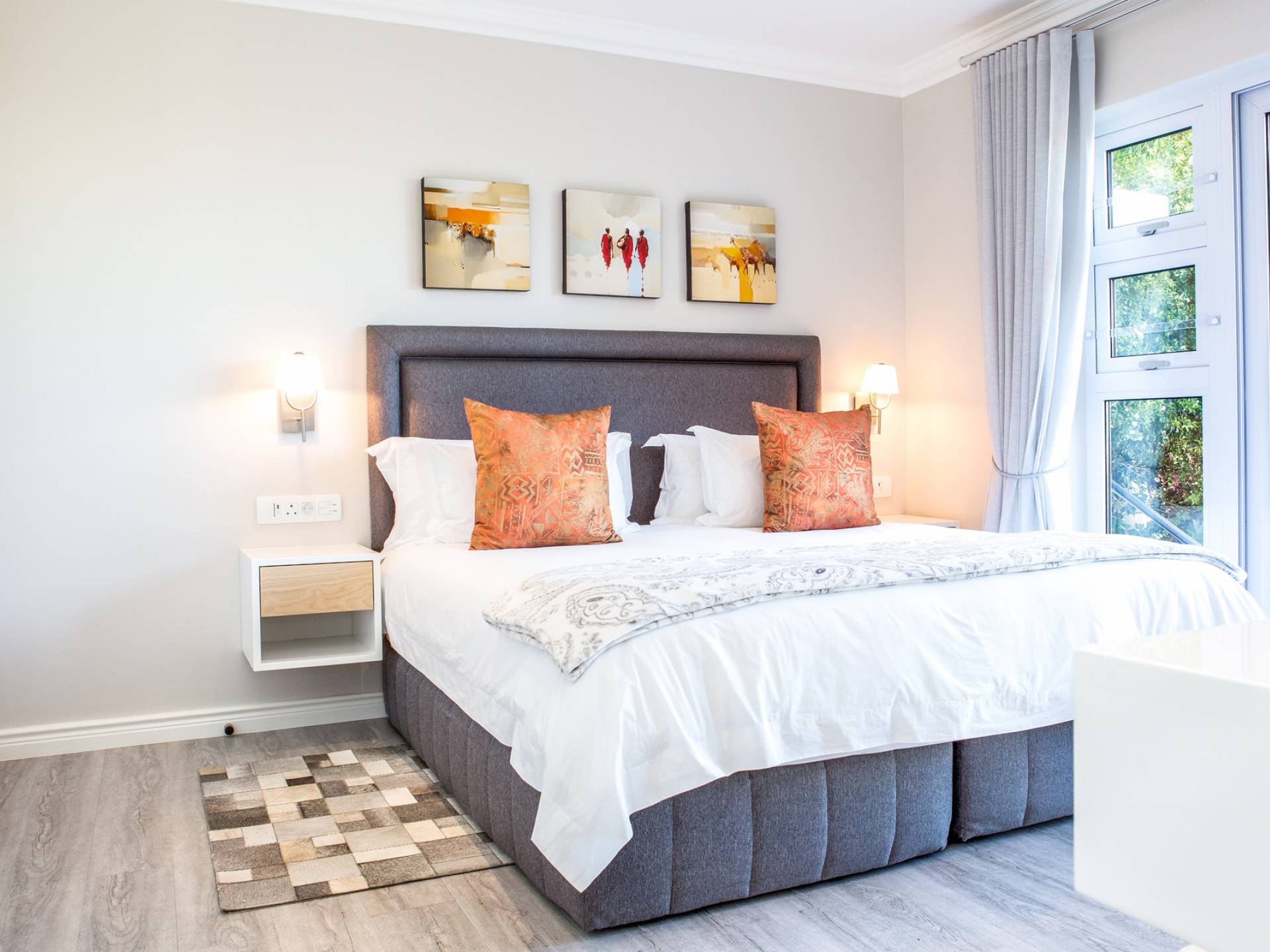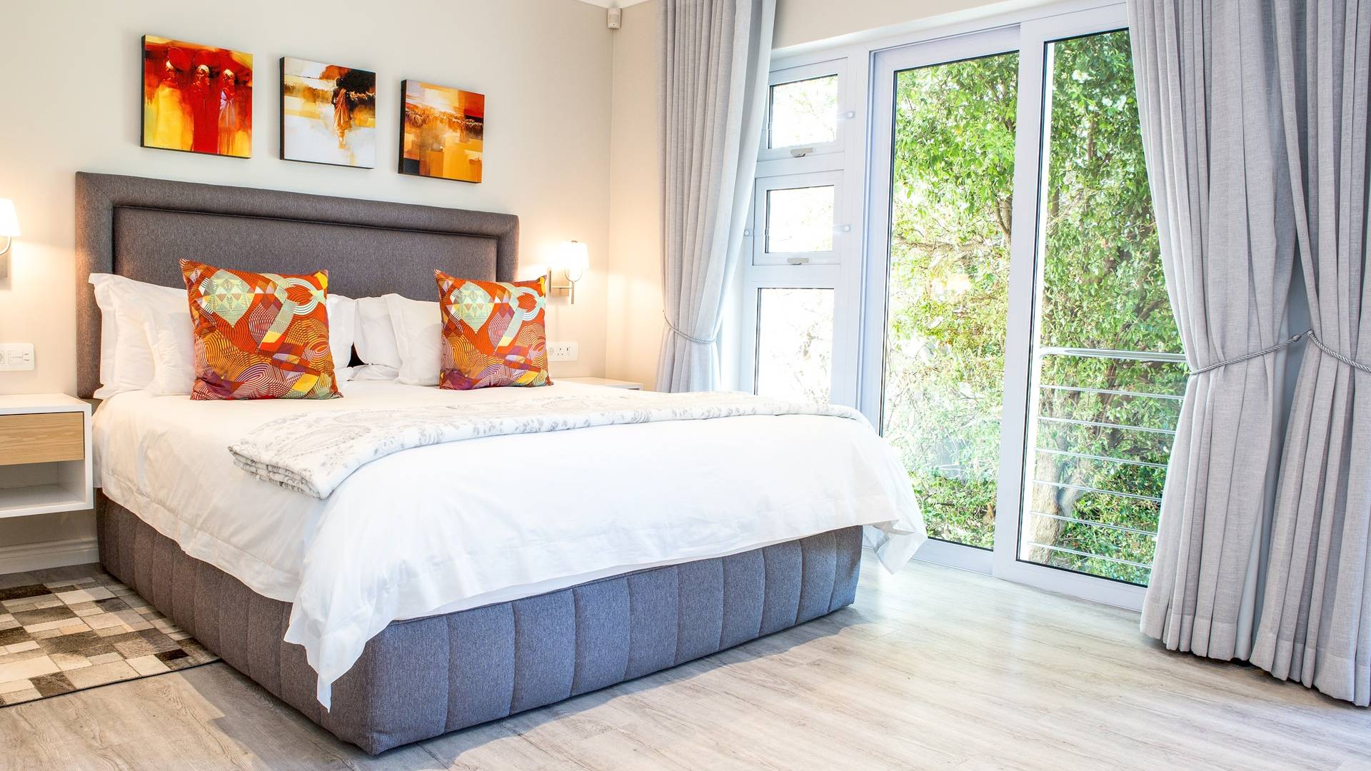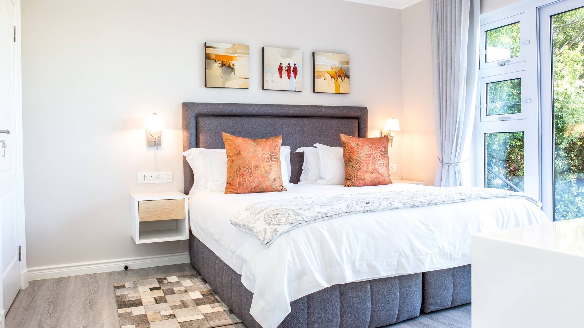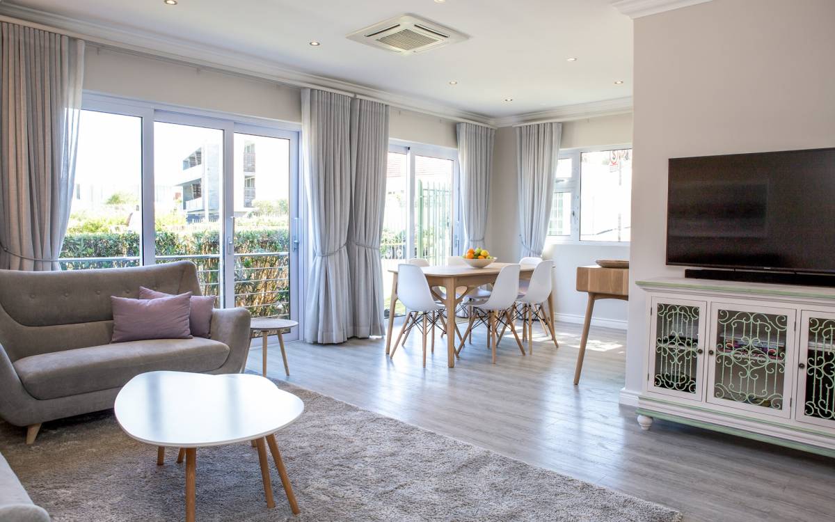 Dans le salon se trouve un salon de télévision, avec un bouquet complet de DSTV et deux canapés où vous pourrez vous détendre confortablement tout en regardant votre émission préférée. Le salon mène à une cuisine américaine entièrement équipée avec tout le nécessaire. Il y a des sièges pour deux personnes au comptoir de la cuisine et d'autres repas pour 6 personnes au coin. Des portes coulissantes mènent à l'extérieur dans un petit jardin. La chambre principale dispose d'un lit king-size, d'une salle de bains privative et d'une télévision et la deuxième chambre a un lit king-size qui peut être converti en deux lits jumeaux, une salle de bains privative et une télévision. Les deux chambres ont également des portes coulissantes et des balcons Juliette.