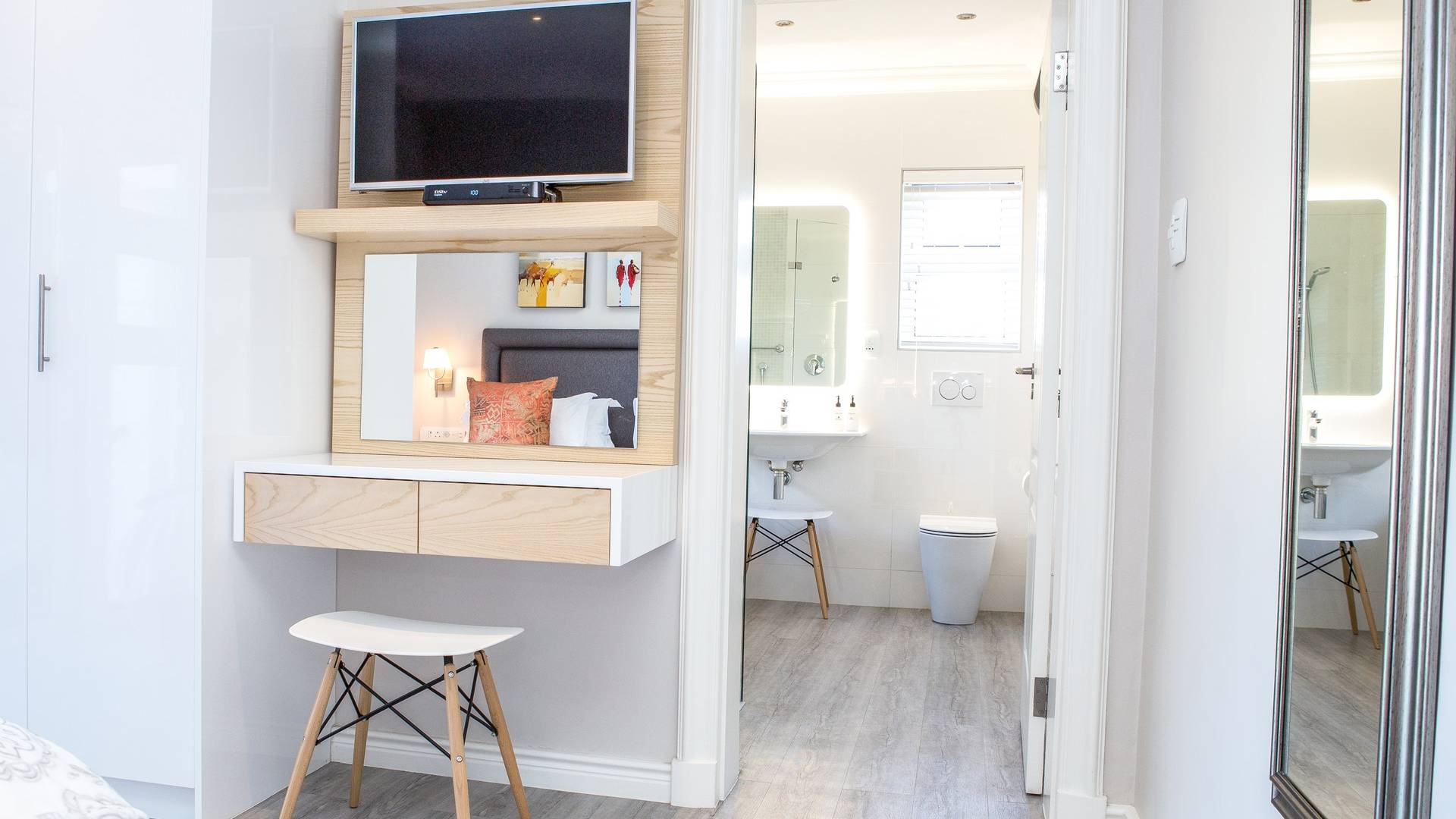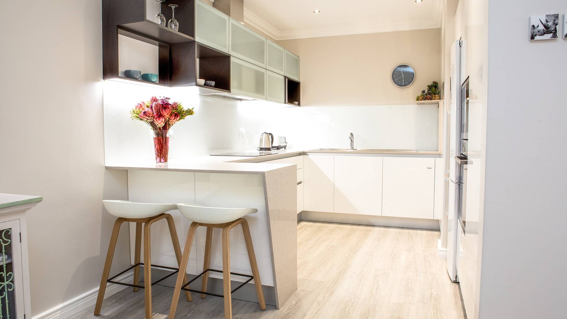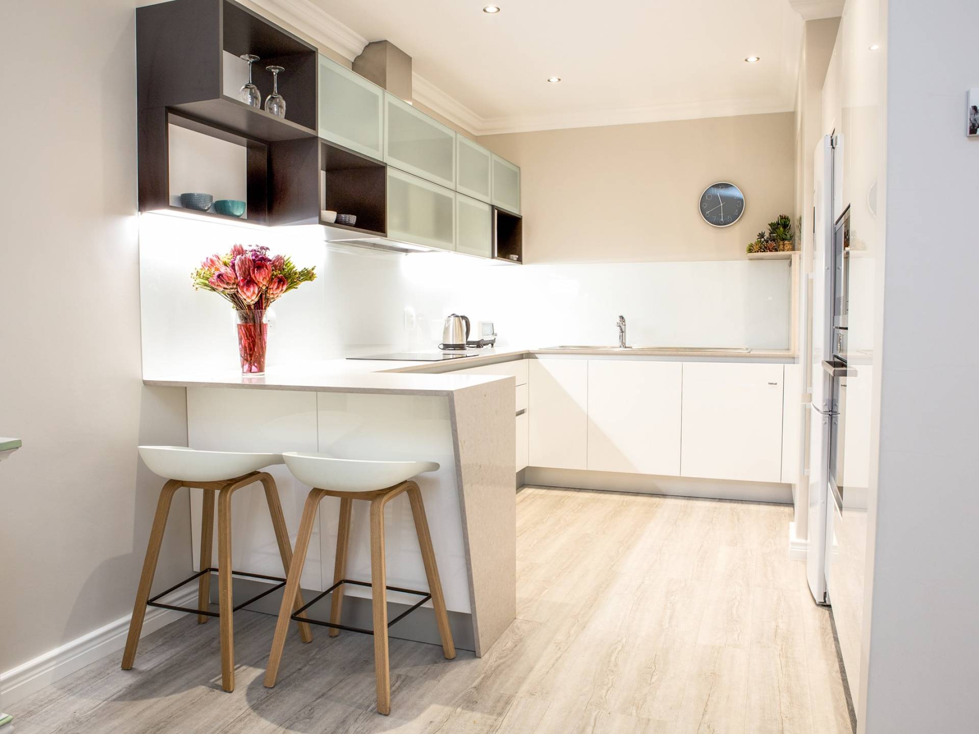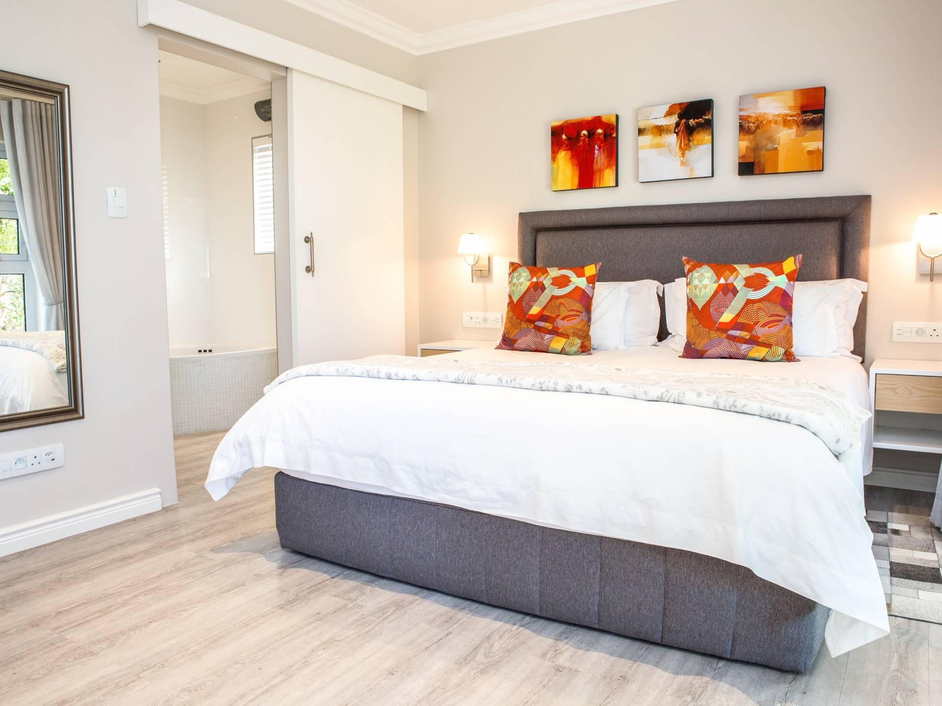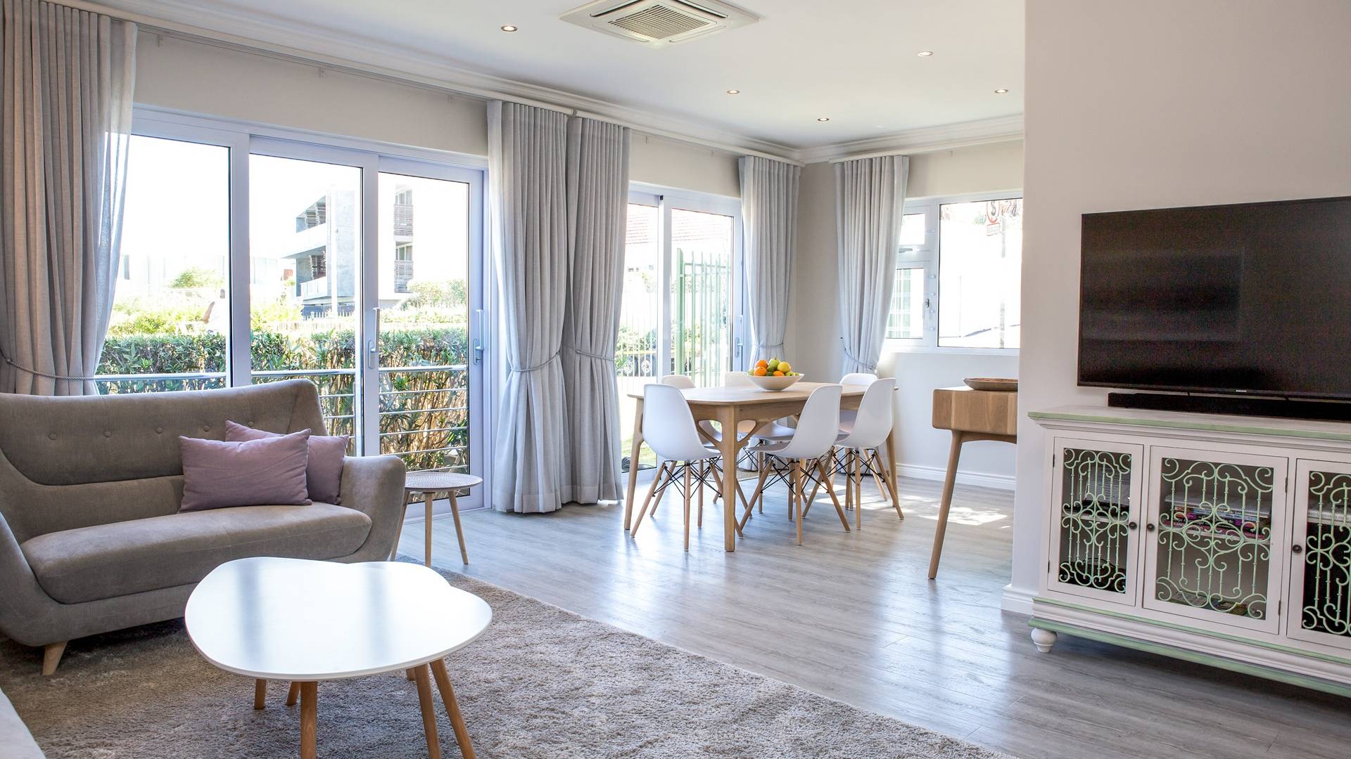Dans le salon se trouve un salon de télévision, avec un bouquet complet de DSTV et deux canapés où vous pourrez vous détendre confortablement tout en regardant votre émission préférée. Le salon mène à une cuisine américaine entièrement équipée avec tout le nécessaire. Il y a des sièges pour deux personnes au comptoir de la cuisine et d'autres repas pour 6 personnes au coin. Des portes coulissantes mènent à l'extérieur dans un petit jardin. La chambre principale dispose d'un lit king-size, d'une salle de bains privative et d'une télévision et la deuxième chambre a un lit king-size qui peut être converti en deux lits jumeaux, une salle de bains privative et une télévision. Les deux chambres ont également des portes coulissantes et des balcons Juliette.