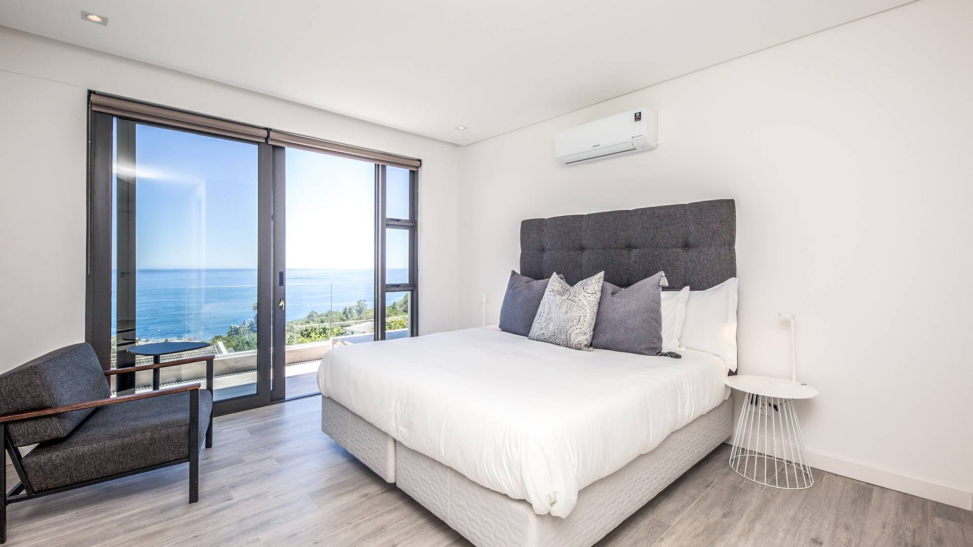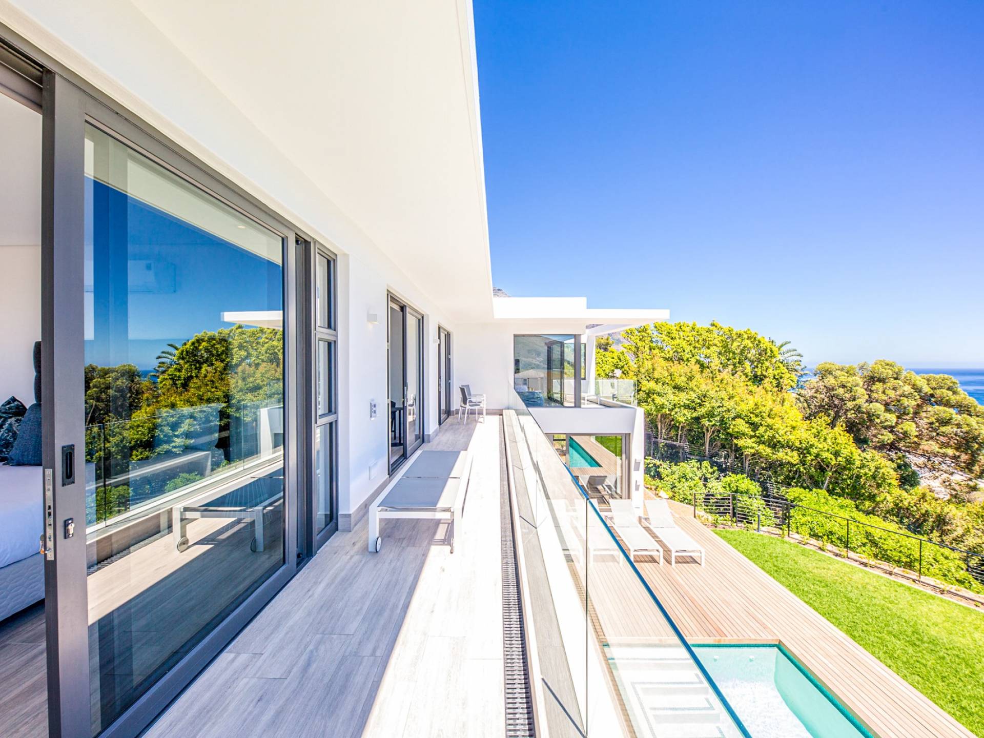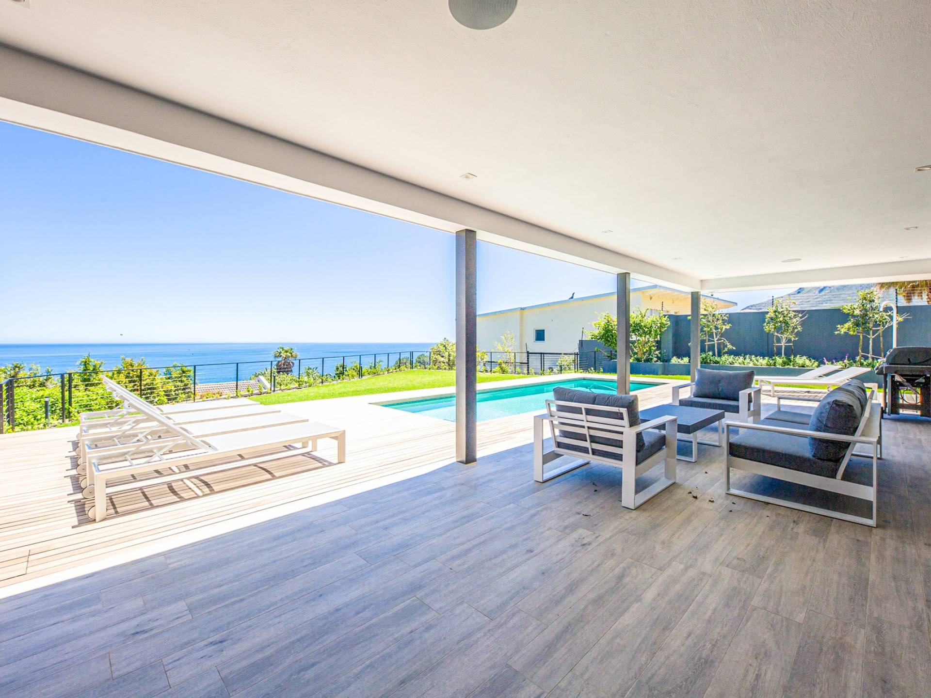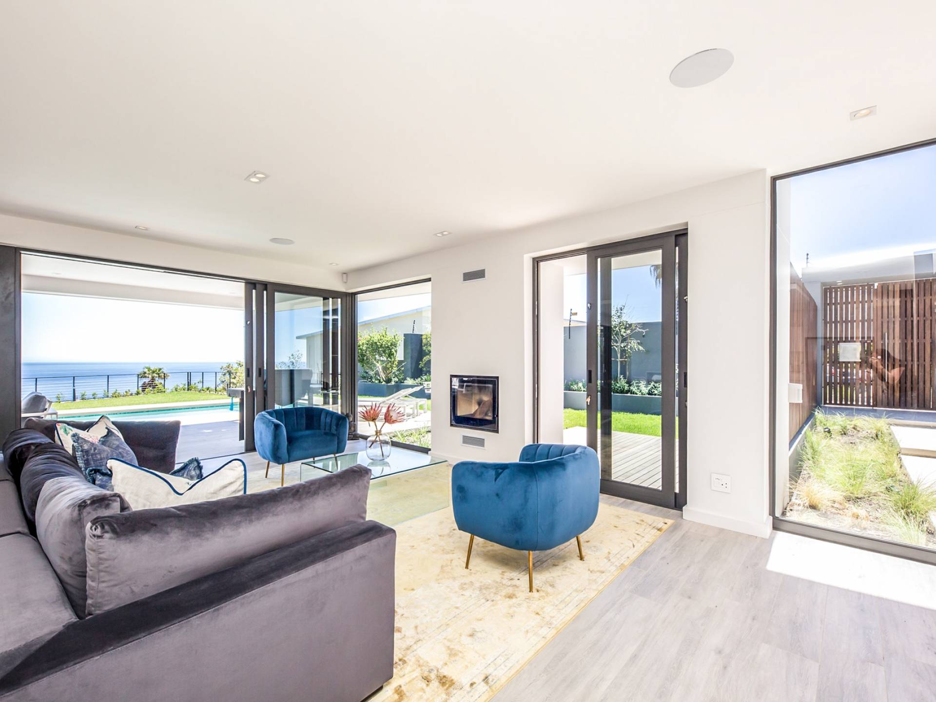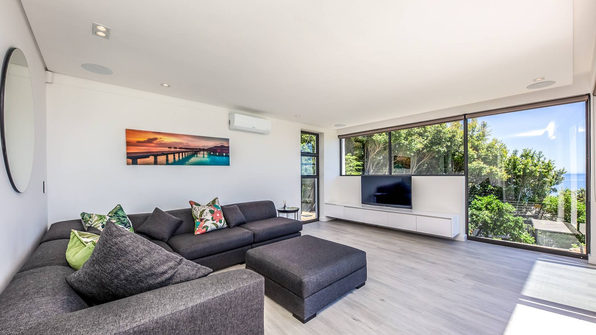 L'espace salon, salle à manger et cuisine décloisonné du rez-de-chaussée comprend d'immenses portes coulissantes qui s'ouvrent sur le patio et un grand jardin avec piscine privée. Les vues d'ici sont incroyables. A l'étage se trouvent les chambres et les salles de bains, également avec une vue imprenable sur l'océan Atlantique et les 12 apôtres. Détendez-vous dans cette incroyable villa de vacances au Cap.