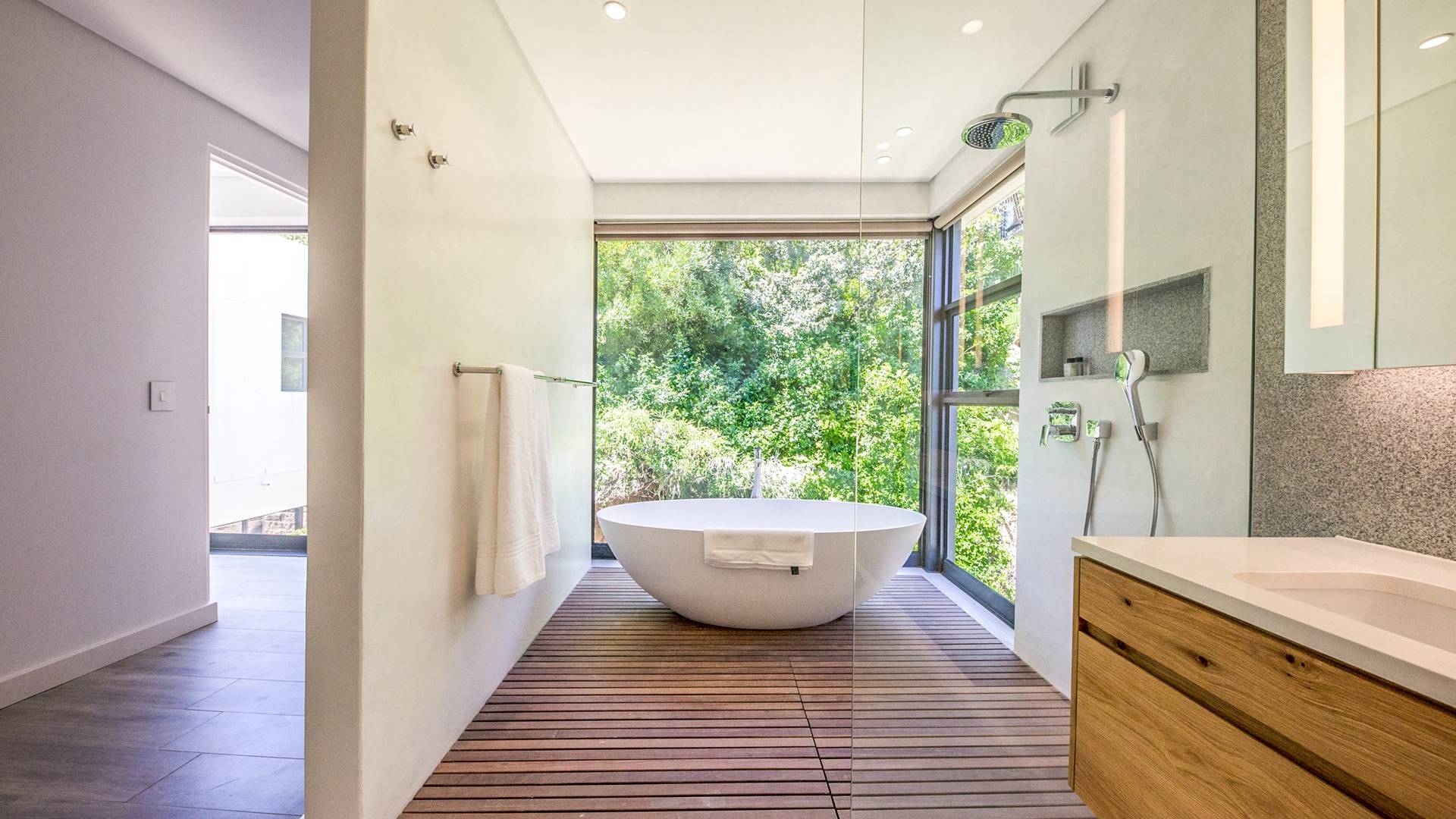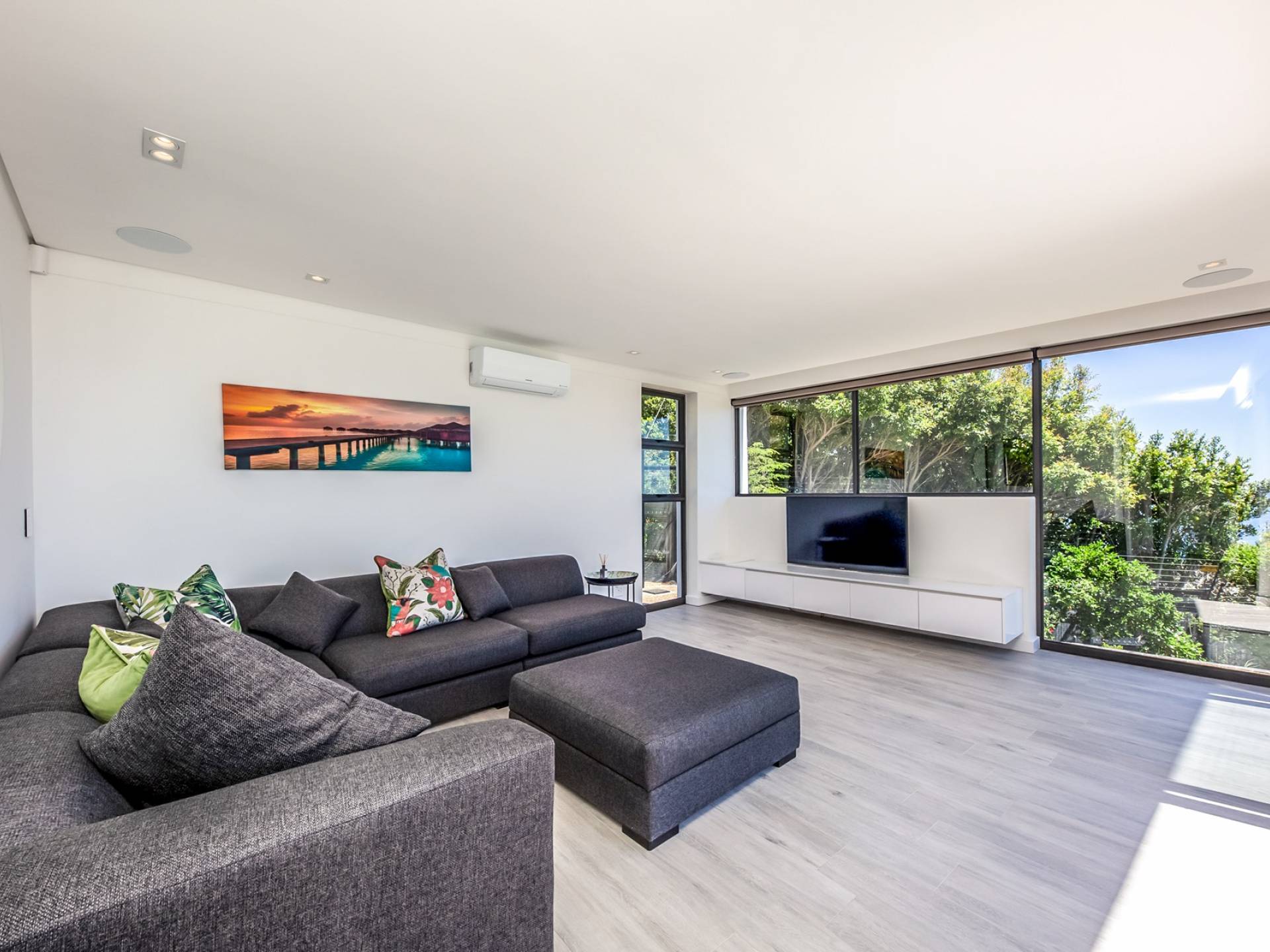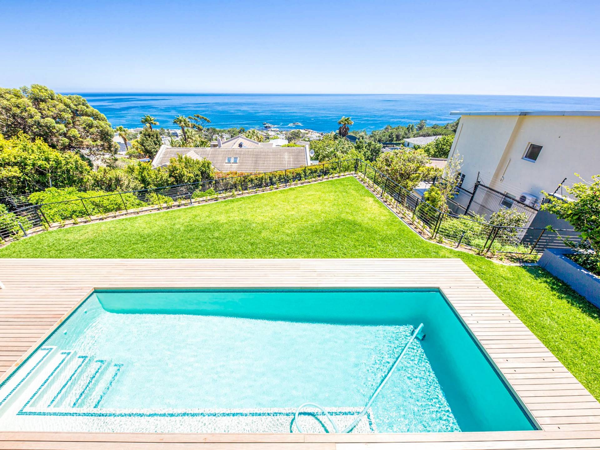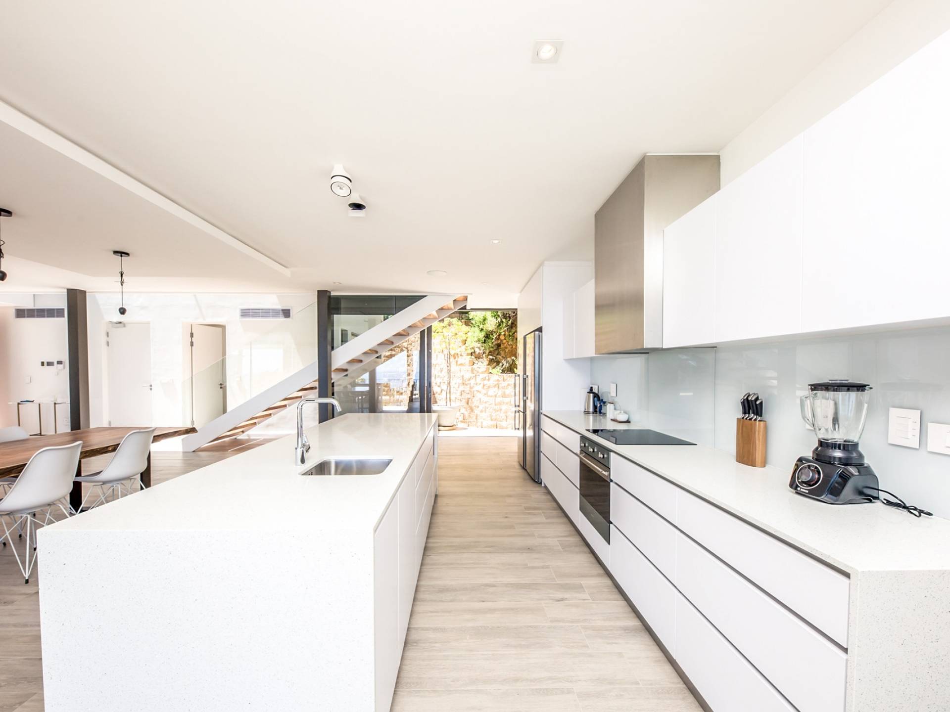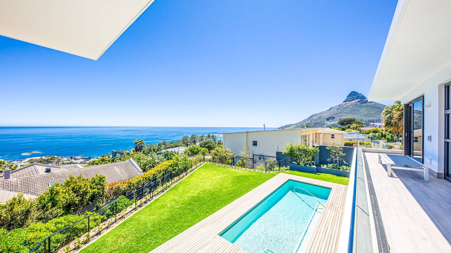 L'espace salon, salle à manger et cuisine décloisonné du rez-de-chaussée comprend d'immenses portes coulissantes qui s'ouvrent sur le patio et un grand jardin avec piscine privée. Les vues d'ici sont incroyables. A l'étage se trouvent les chambres et les salles de bains, également avec une vue imprenable sur l'océan Atlantique et les 12 apôtres. Détendez-vous dans cette incroyable villa de vacances au Cap.