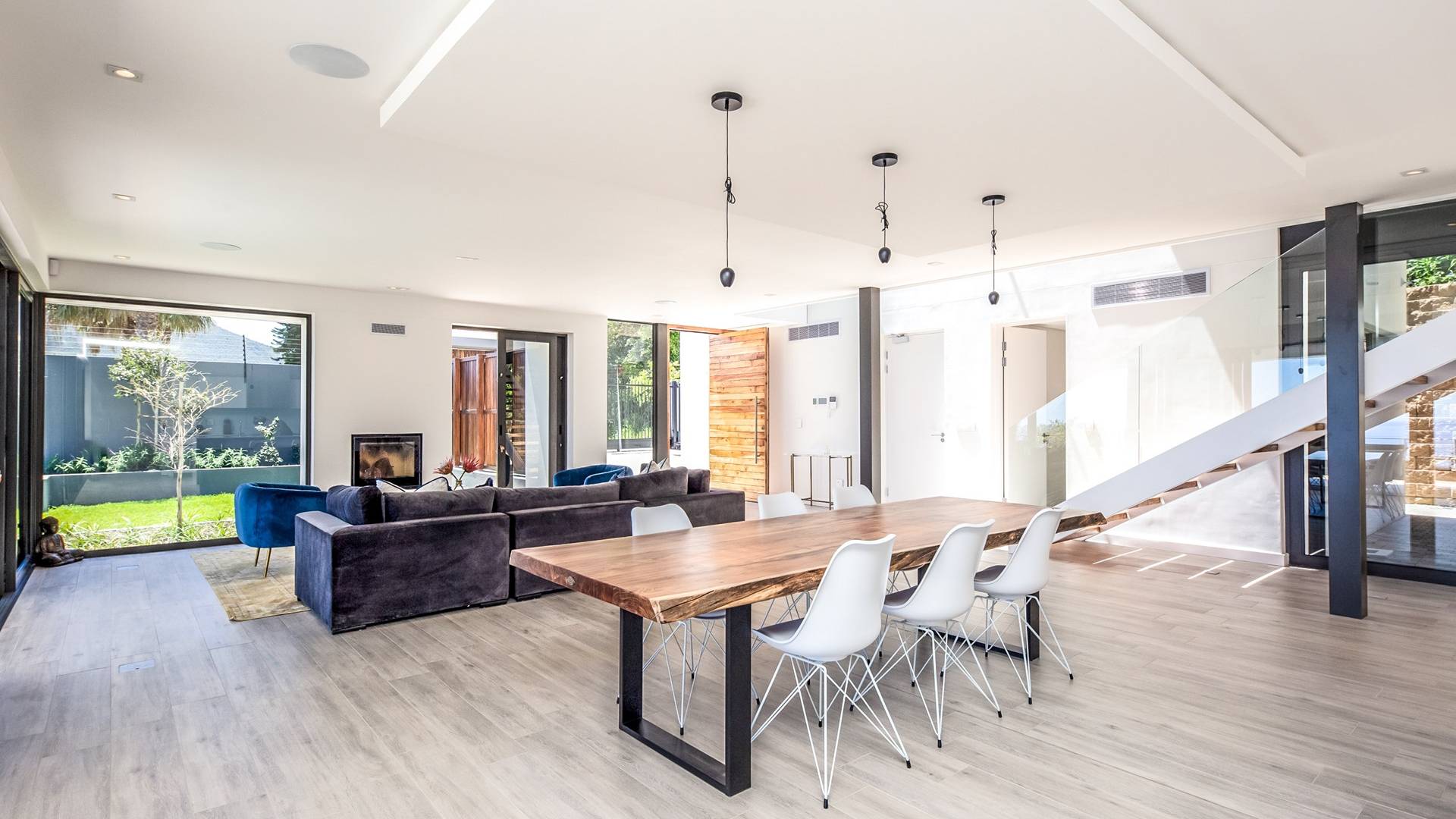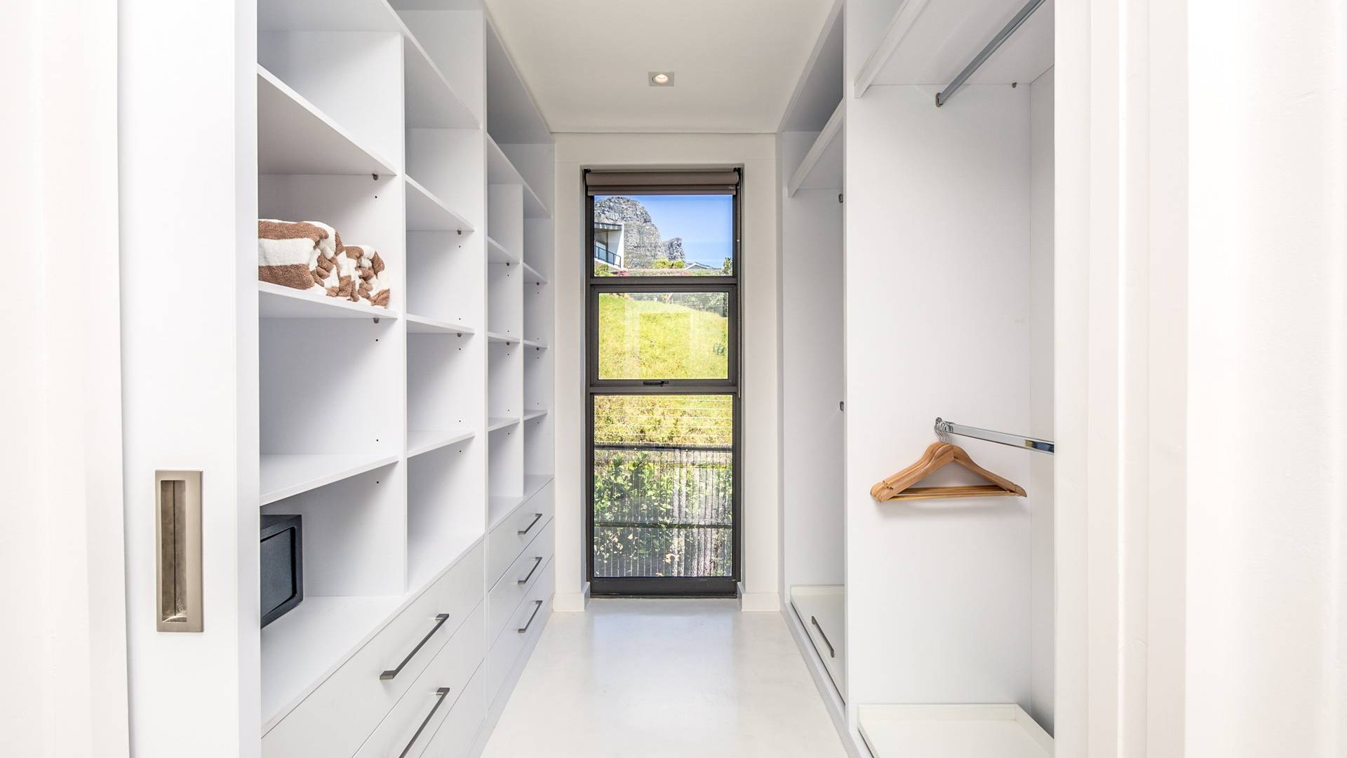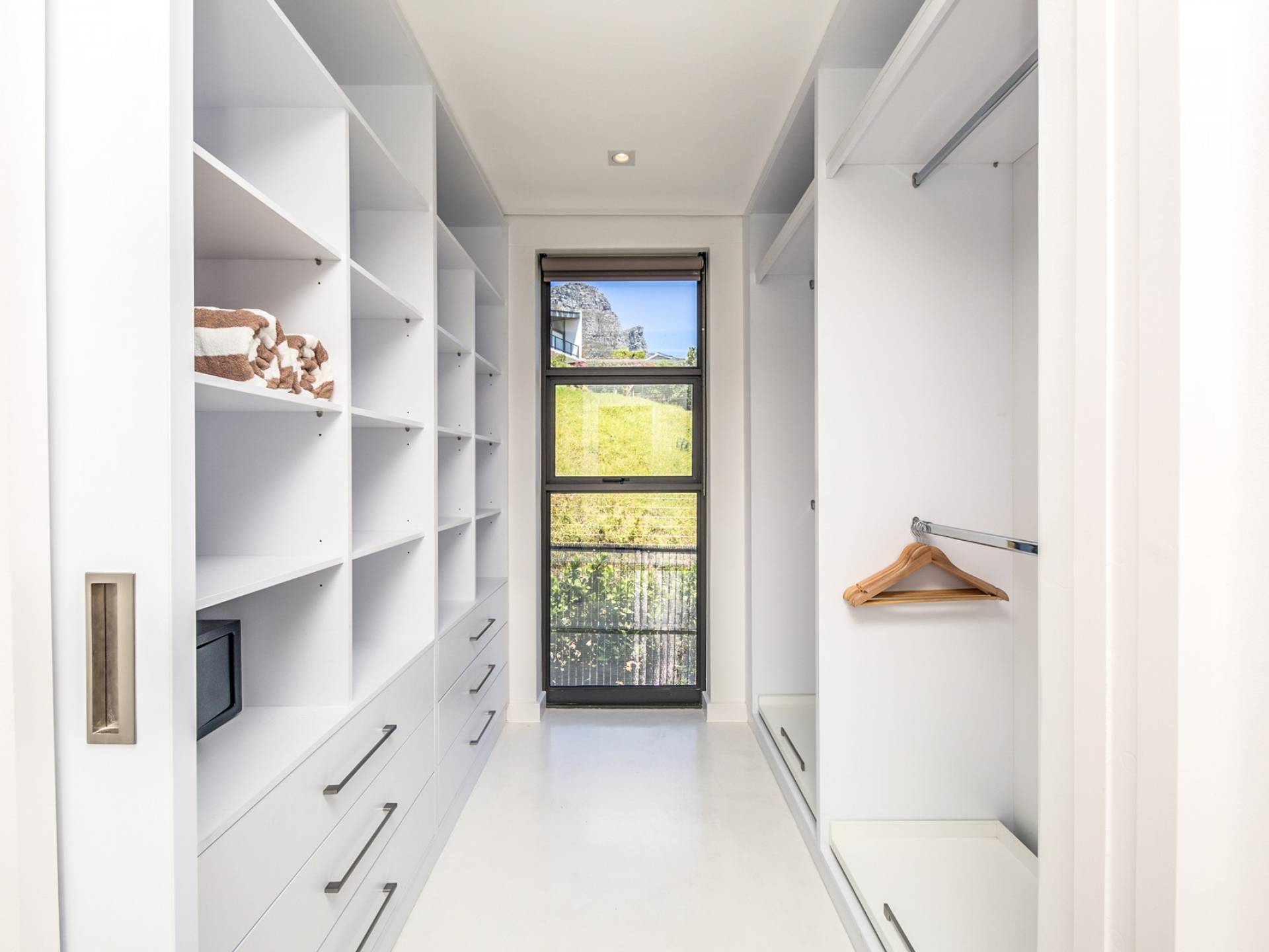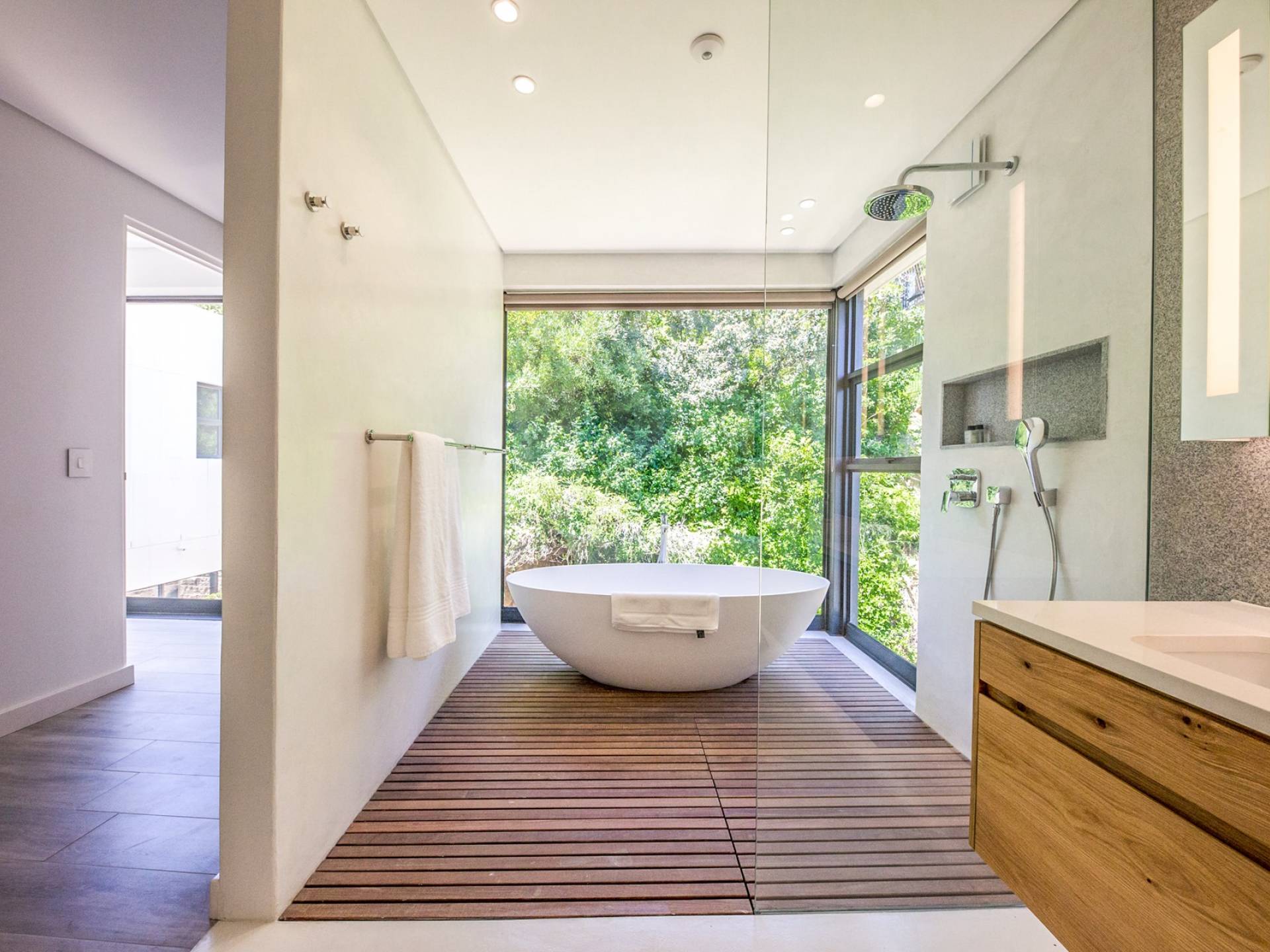 L'espace salon, salle à manger et cuisine décloisonné du rez-de-chaussée comprend d'immenses portes coulissantes qui s'ouvrent sur le patio et un grand jardin avec piscine privée. Les vues d'ici sont incroyables. A l'étage se trouvent les chambres et les salles de bains, également avec une vue imprenable sur l'océan Atlantique et les 12 apôtres. Détendez-vous dans cette incroyable villa de vacances au Cap.