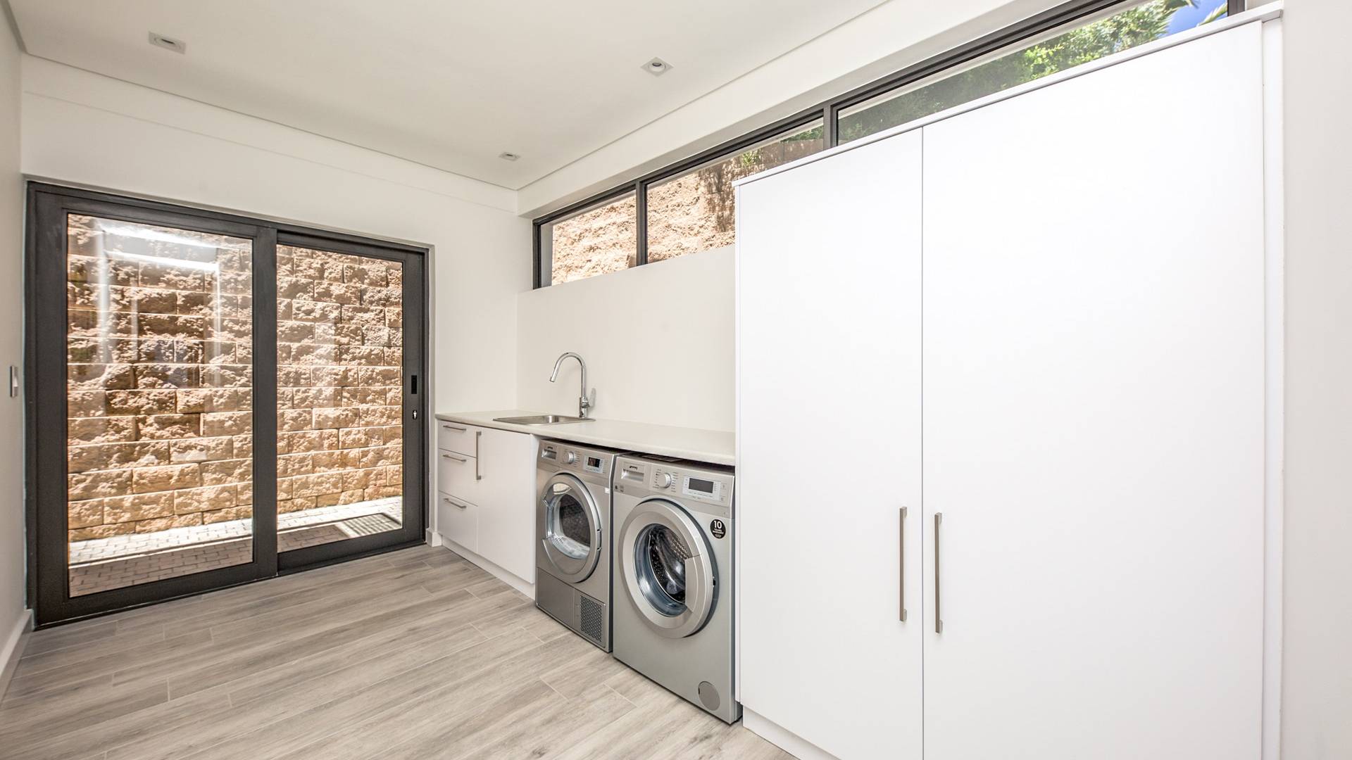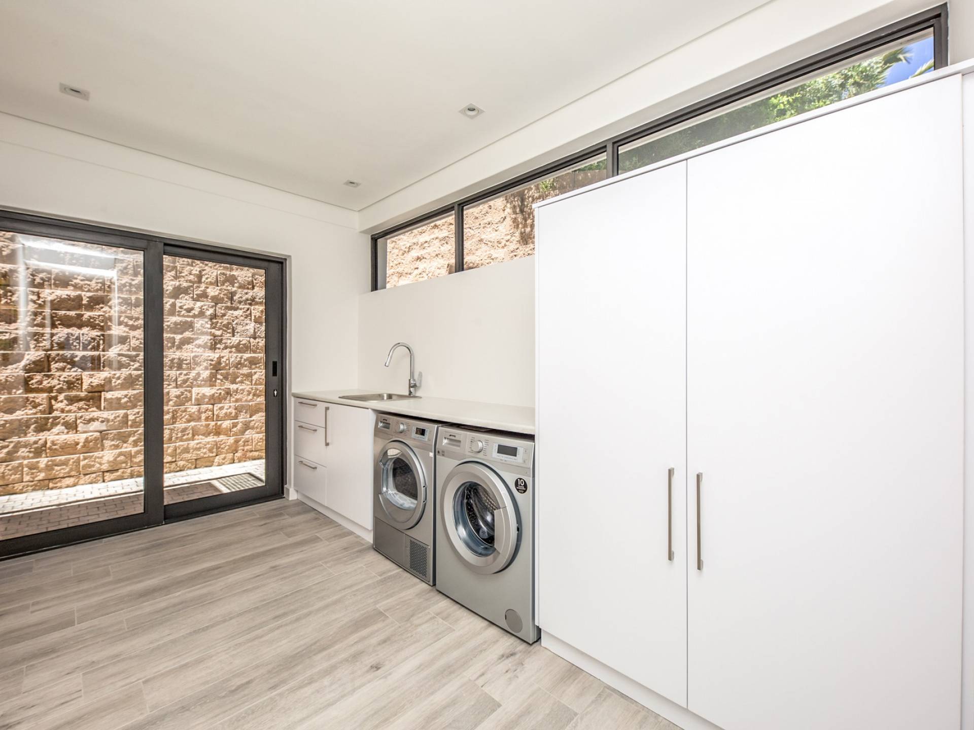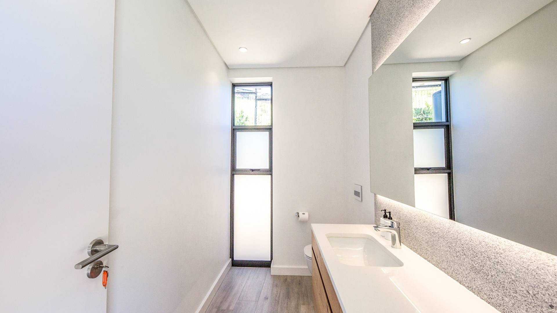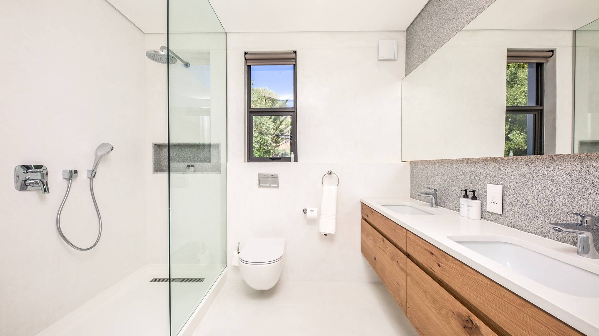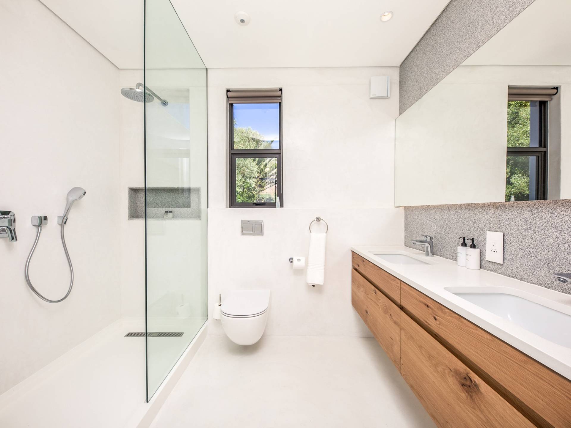 L'espace salon, salle à manger et cuisine décloisonné du rez-de-chaussée comprend d'immenses portes coulissantes qui s'ouvrent sur le patio et un grand jardin avec piscine privée. Les vues d'ici sont incroyables. A l'étage se trouvent les chambres et les salles de bains, également avec une vue imprenable sur l'océan Atlantique et les 12 apôtres. Détendez-vous dans cette incroyable villa de vacances au Cap.
