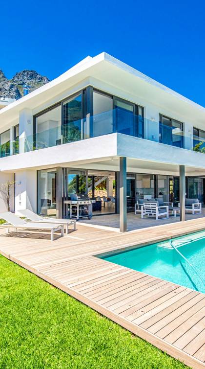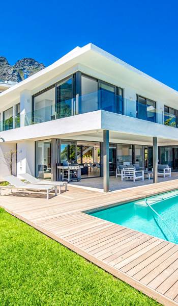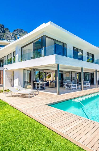 Villa 8 Fiskal à Cape Town est une spectaculaire villa nouvellement construite de 6 chambres et 6 salles de bains à Camps Bay qui dispose de suffisamment d'espace pour une grande famille ou un groupe d'amis. Il est situé à Camps Bay, une banlieue de plage résidentielle, à dix minutes en voiture du centre-ville. Il offre une vue imprenable sur la mer et la montagne et un grand choix de restaurants, de bars et de boutiques.