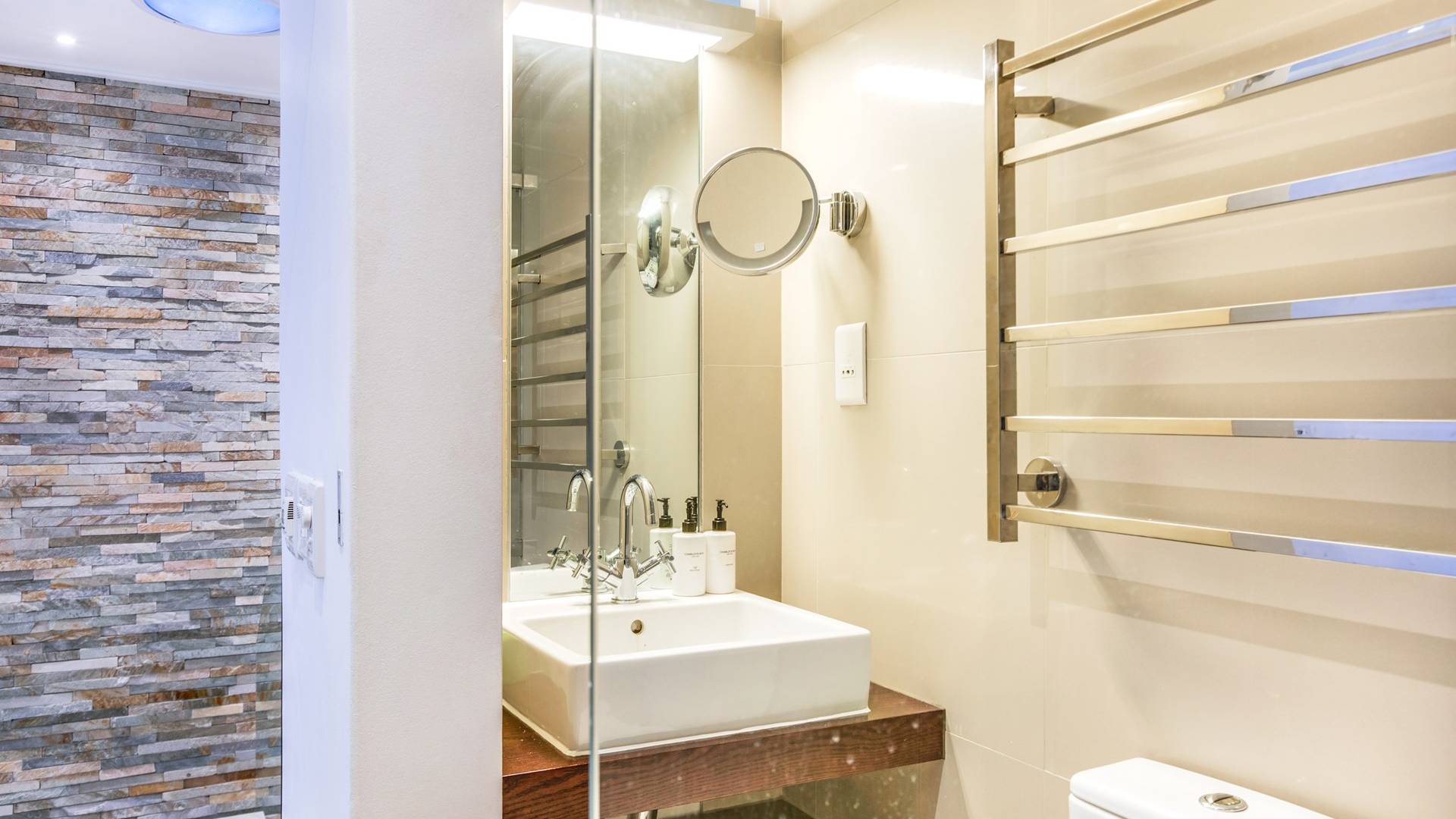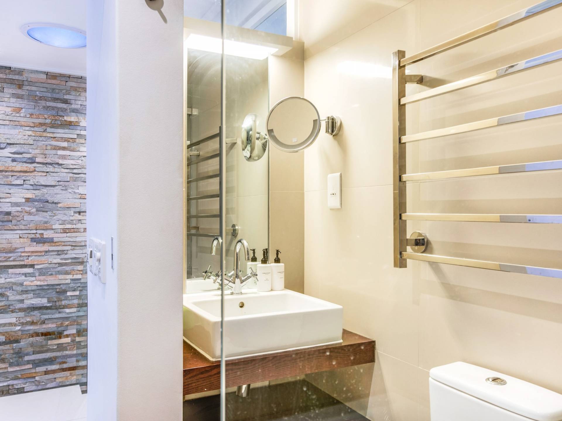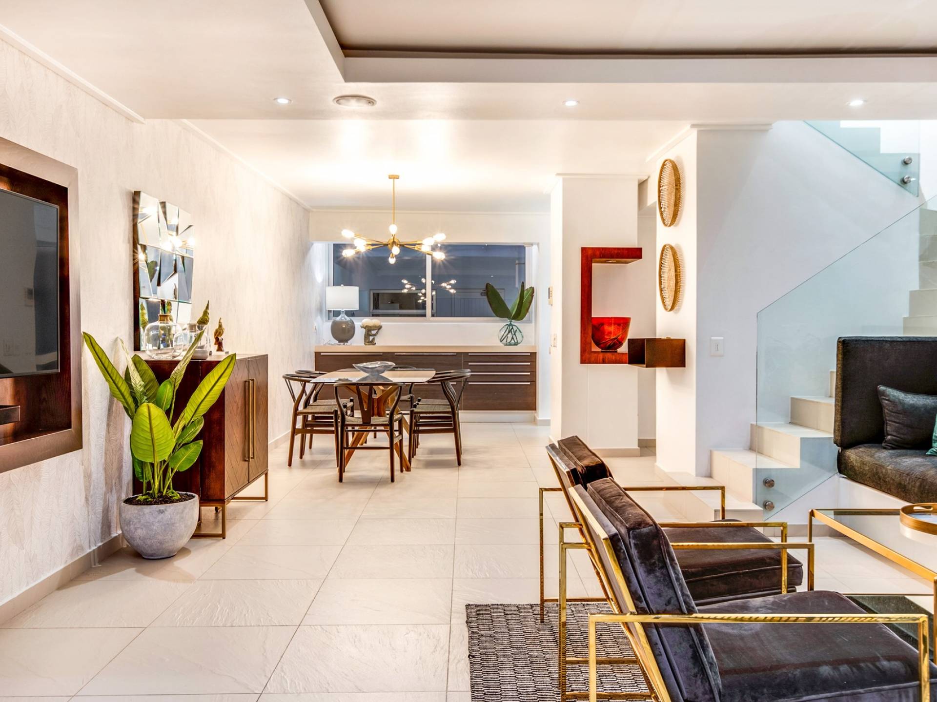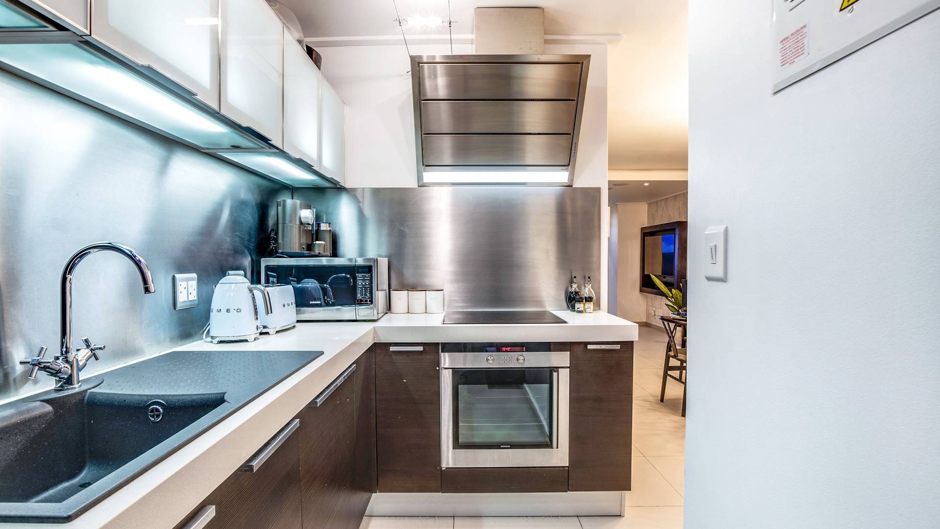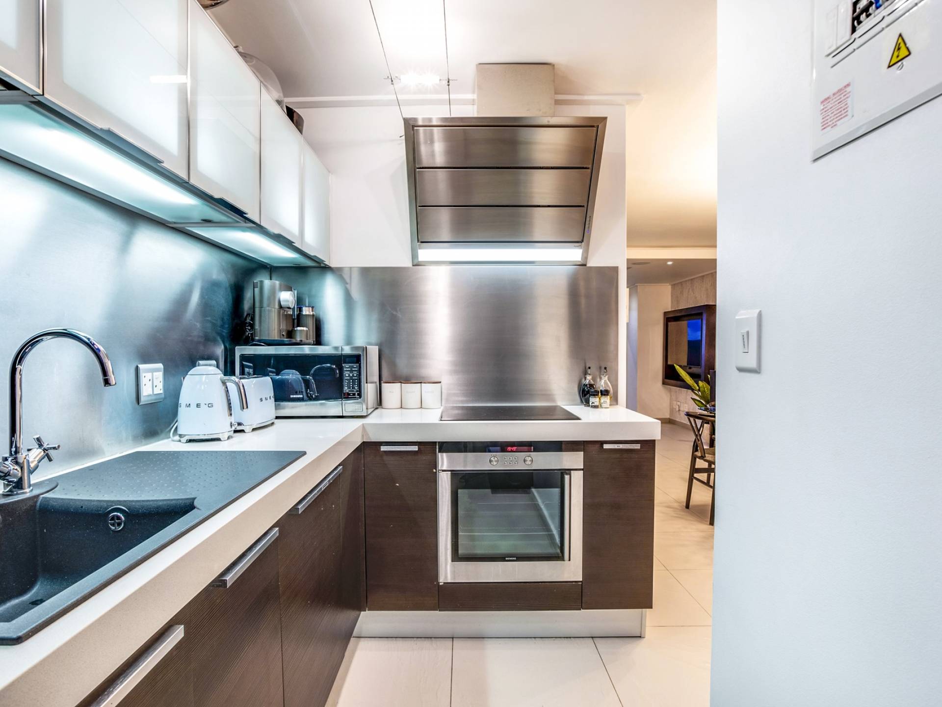 Le niveau inférieur est une salle à manger et un salon décloisonnés qui donnent sur le grand balcon avec une vue imprenable sur la mer, une piscine et des sièges extérieurs. La cuisine bien équipée se trouve à l'arrière de ce niveau et mène à la salle à manger. Il y a aussi des toilettes invités. A l'étage, vous trouverez 3 chambres toutes climatisées. La chambre principale dispose d'un balcon privé avec vue sur la mer et de sièges. La chambre en suite est à aire ouverte (avec toilettes fermées). Les chambres 2 et 3 sont plus petites, offrent une vue sur la montagne et partagent une salle de bain. En raison de la proximité de cet appartement avec les voisins, cet appartement n'autorise aucune fête.