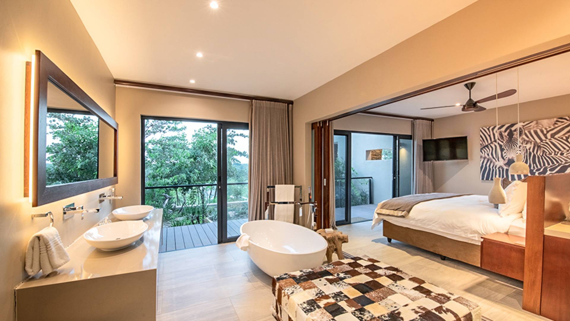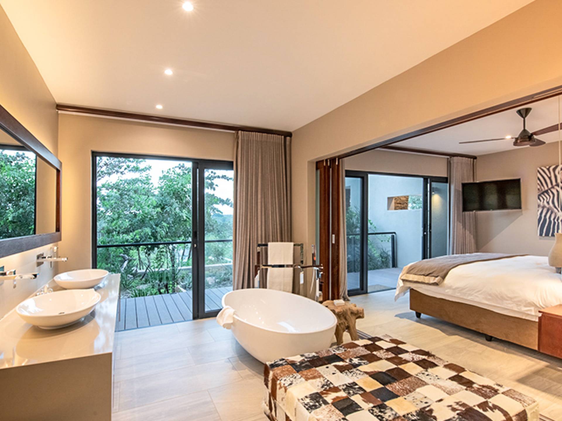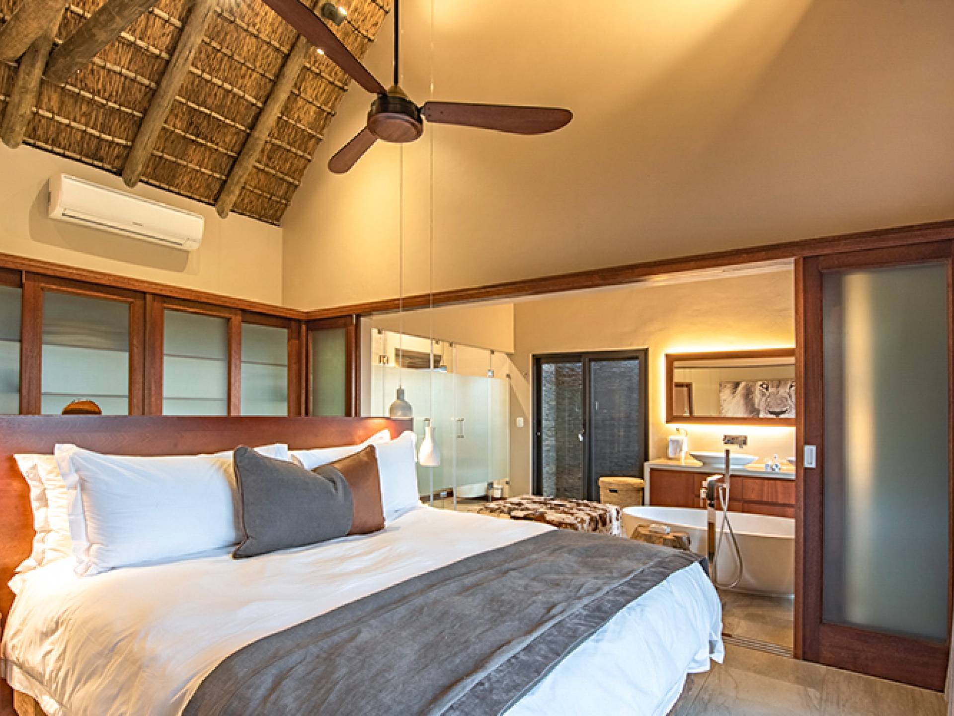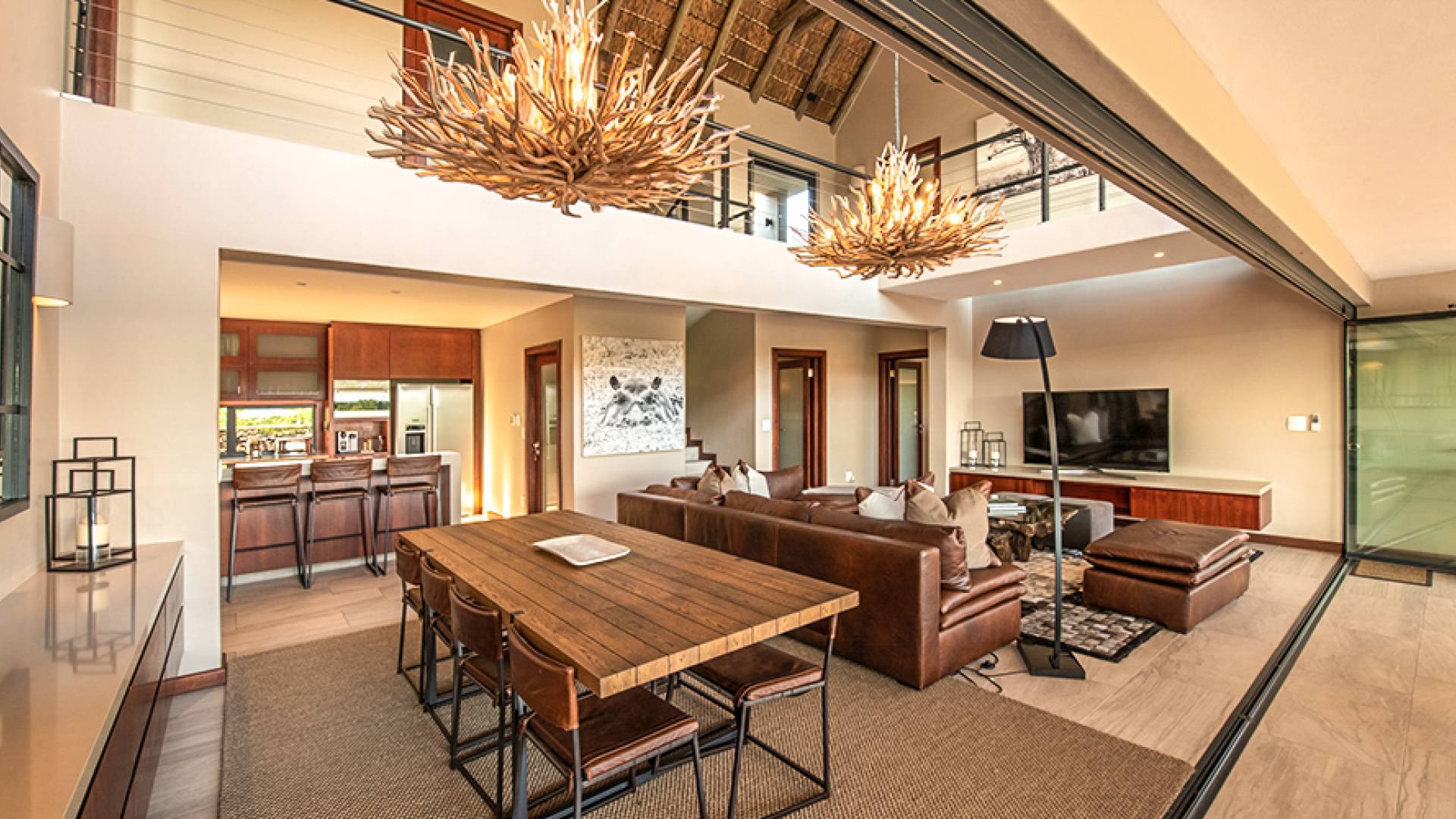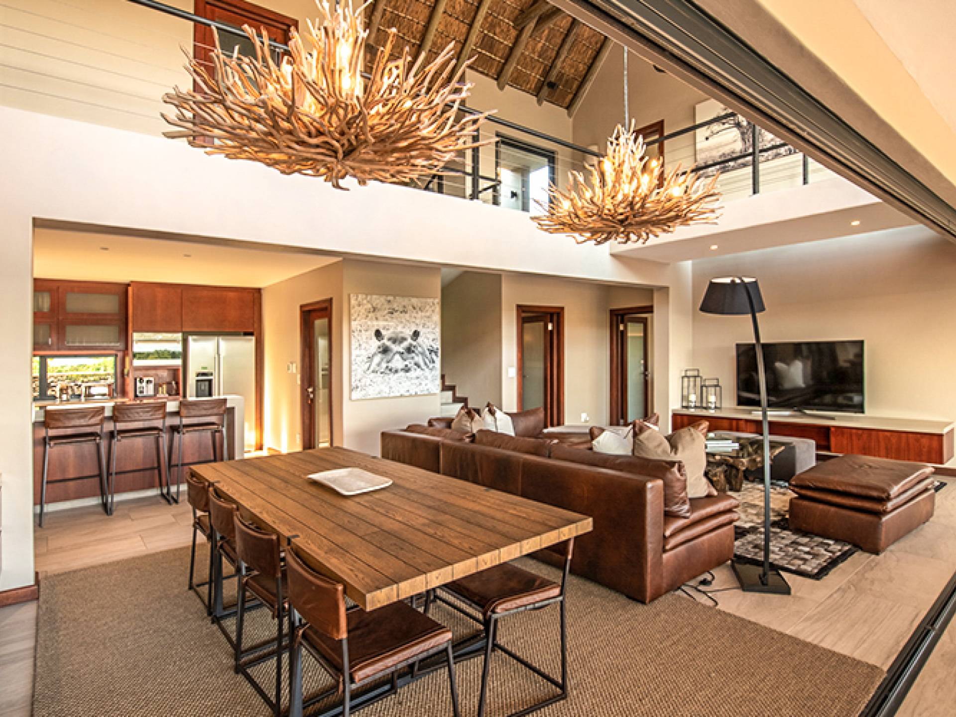 Rhulani Lodge est situé sur les rives de la magnifique rivière Sabi, offrant des vues spectaculaires sur la rivière et sur le parc national Kruger. C'est un chef-d'œuvre de classe mondiale avec sa propre allure, bénéficiant d'une piscine privée, d'une terrasse privée, d'un boma privé, d'un parking privé, d'une connexion Wi-Fi gratuite, de salles de bains privatives, d'espaces de vie, de salles à manger, d'une cuisine, d'un confort sensoriel et d'un service intuitif.