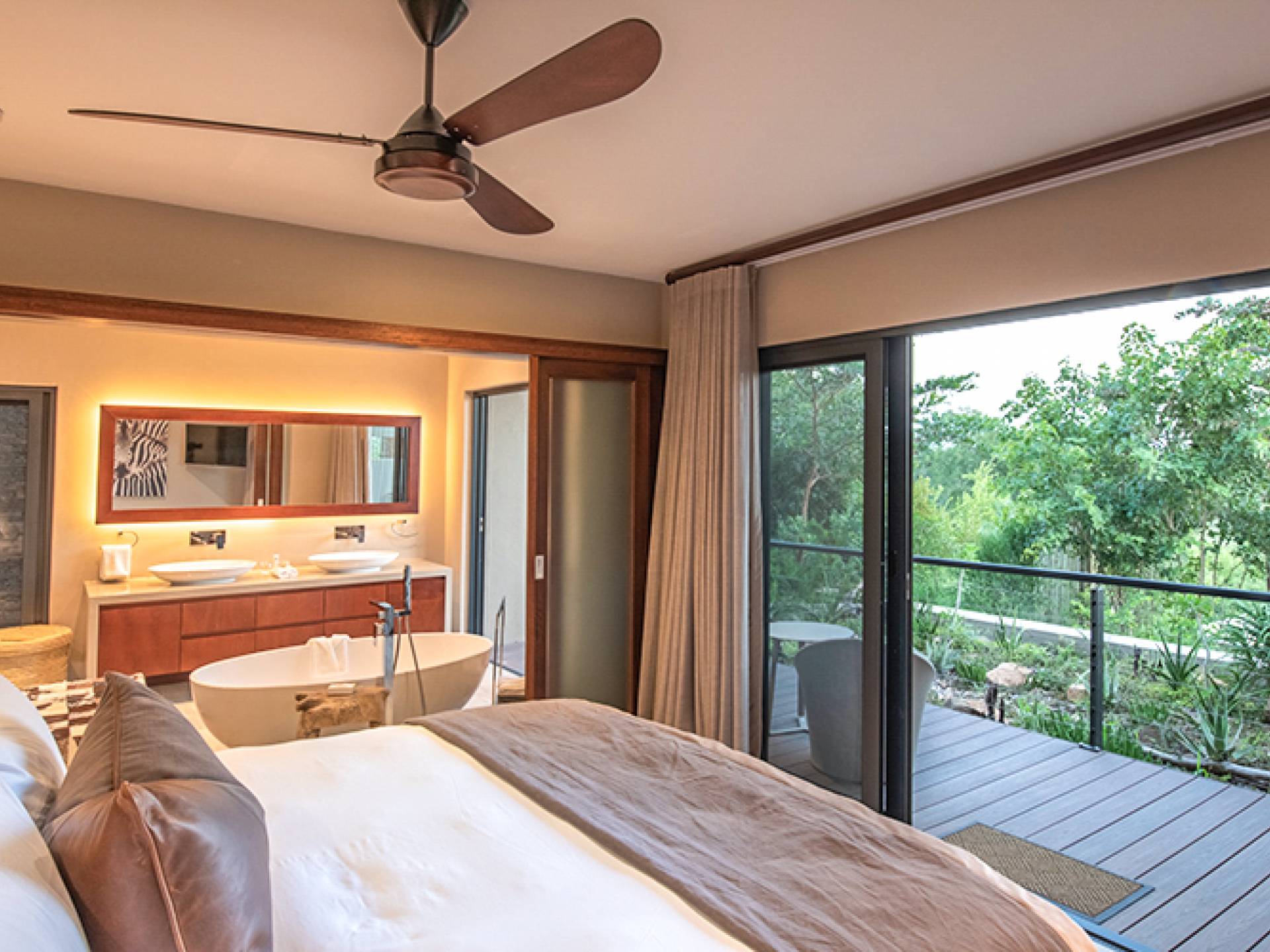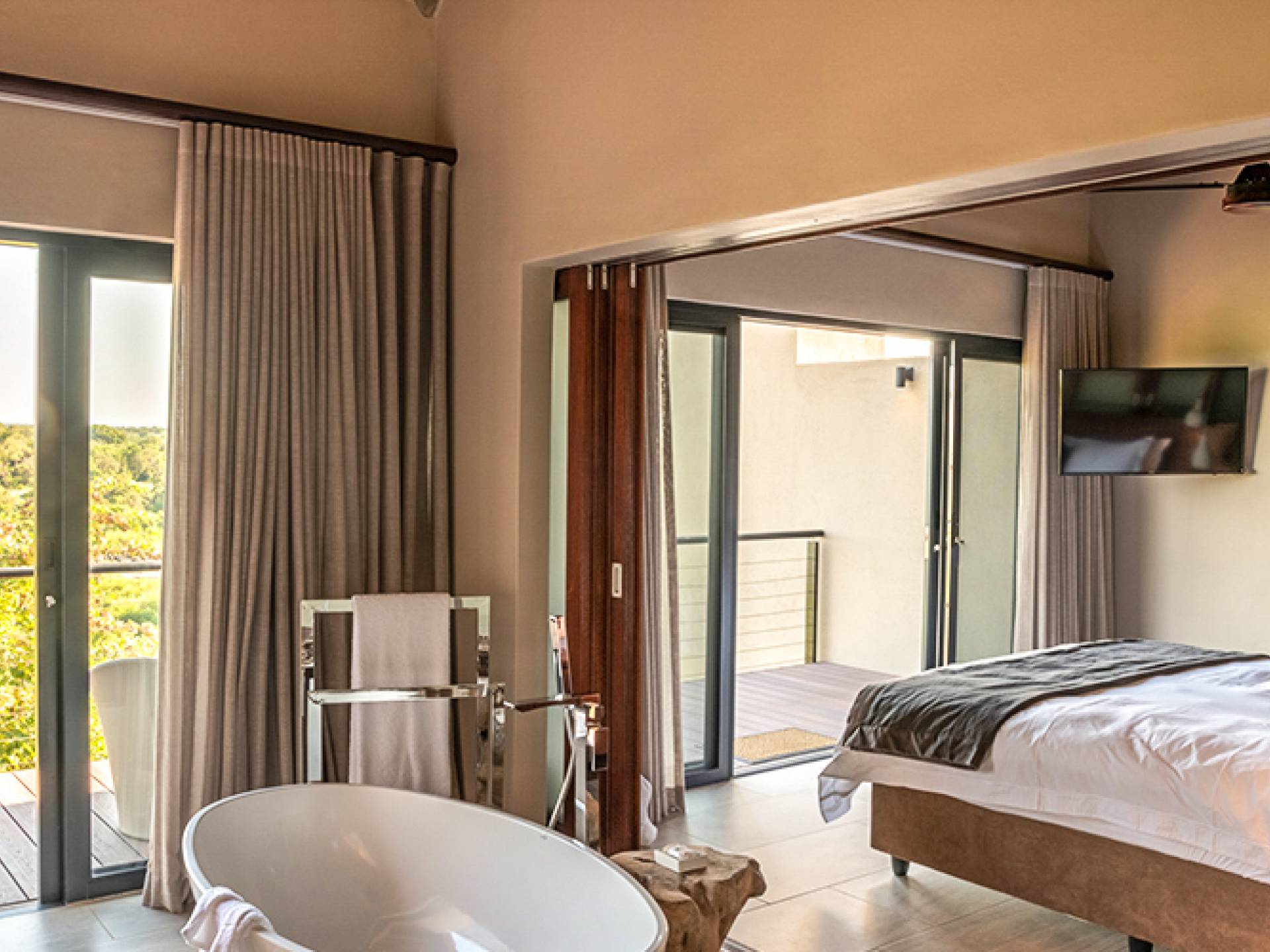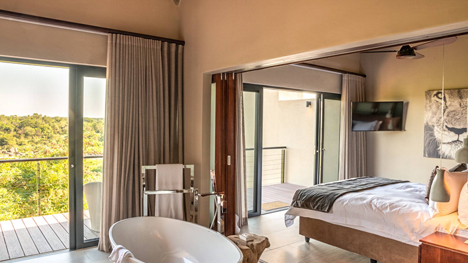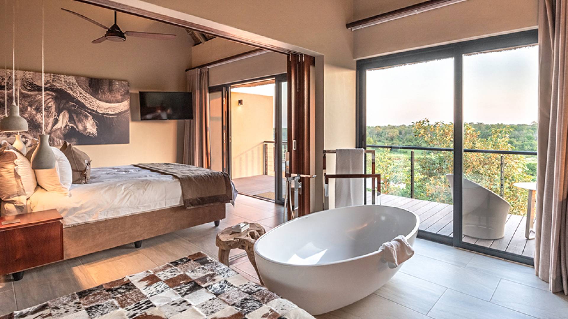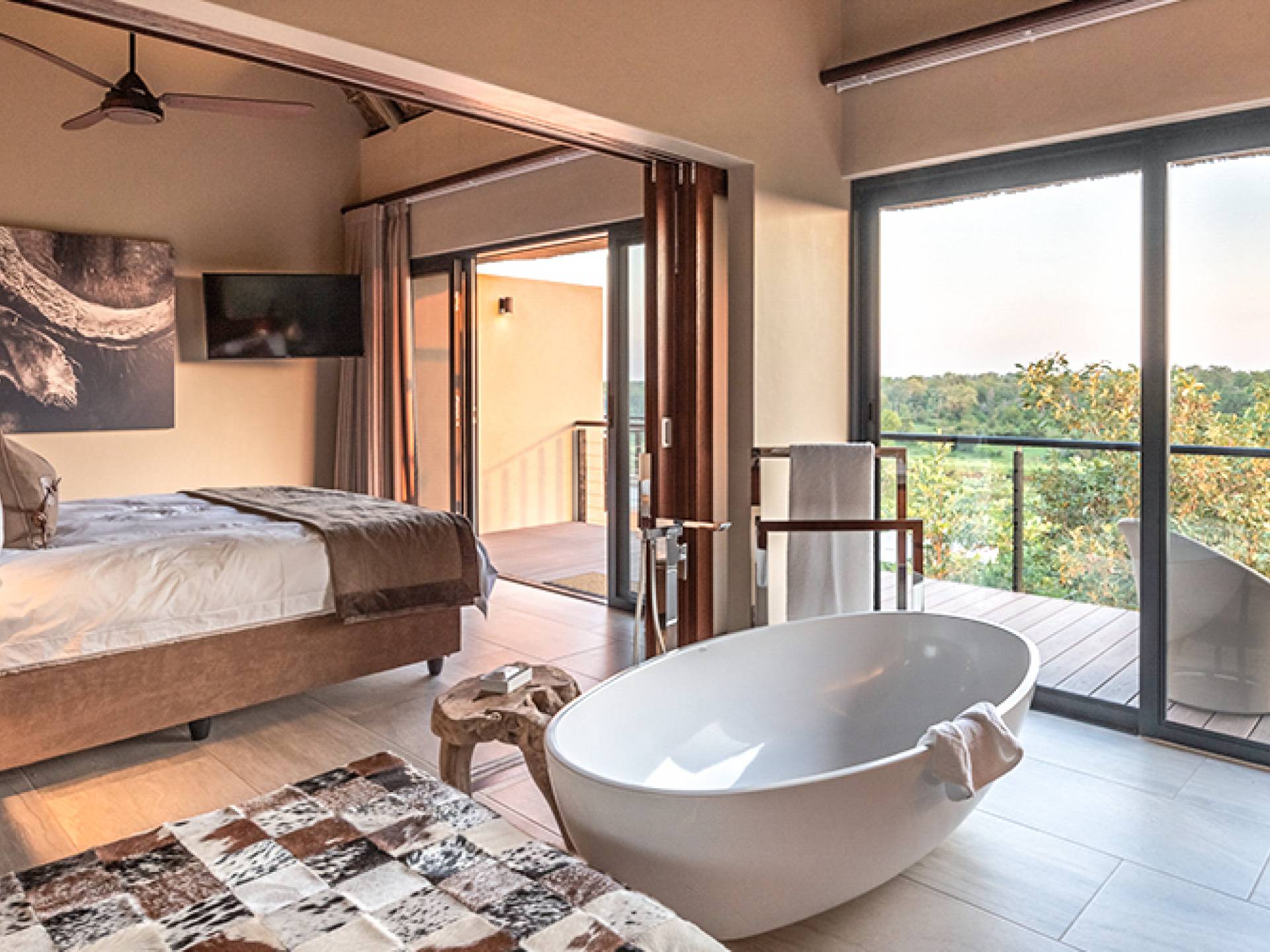 Le domaine est idéalement situé à seulement 6 km de la porte Paul Kruger, à 26 km de l'aéroport de Skukuza ou à 5 heures de route de Johannesburg. Bien qu'ils ne se trouvent pas dans le parc lui-même, les lodges sont situés le long des rives de la majestueuse rivière Sabie où l'on peut souvent voir de puissants éléphants paître et boire - d'où le domaine tire son nom. À proximité d'autres réserves de gibier exclusives comparables de renommée mondiale, Elephant Point peut être considérée comme une catégorie à part. Avec tout le confort possible, l'observation du gibier depuis votre lodge, des promenades dans la nature dans le domaine, diverses options de restauration disponibles, un spa mobile sur appel et un service intuitif - vous n'aurez jamais besoin de quitter votre luxueux lodge privé.