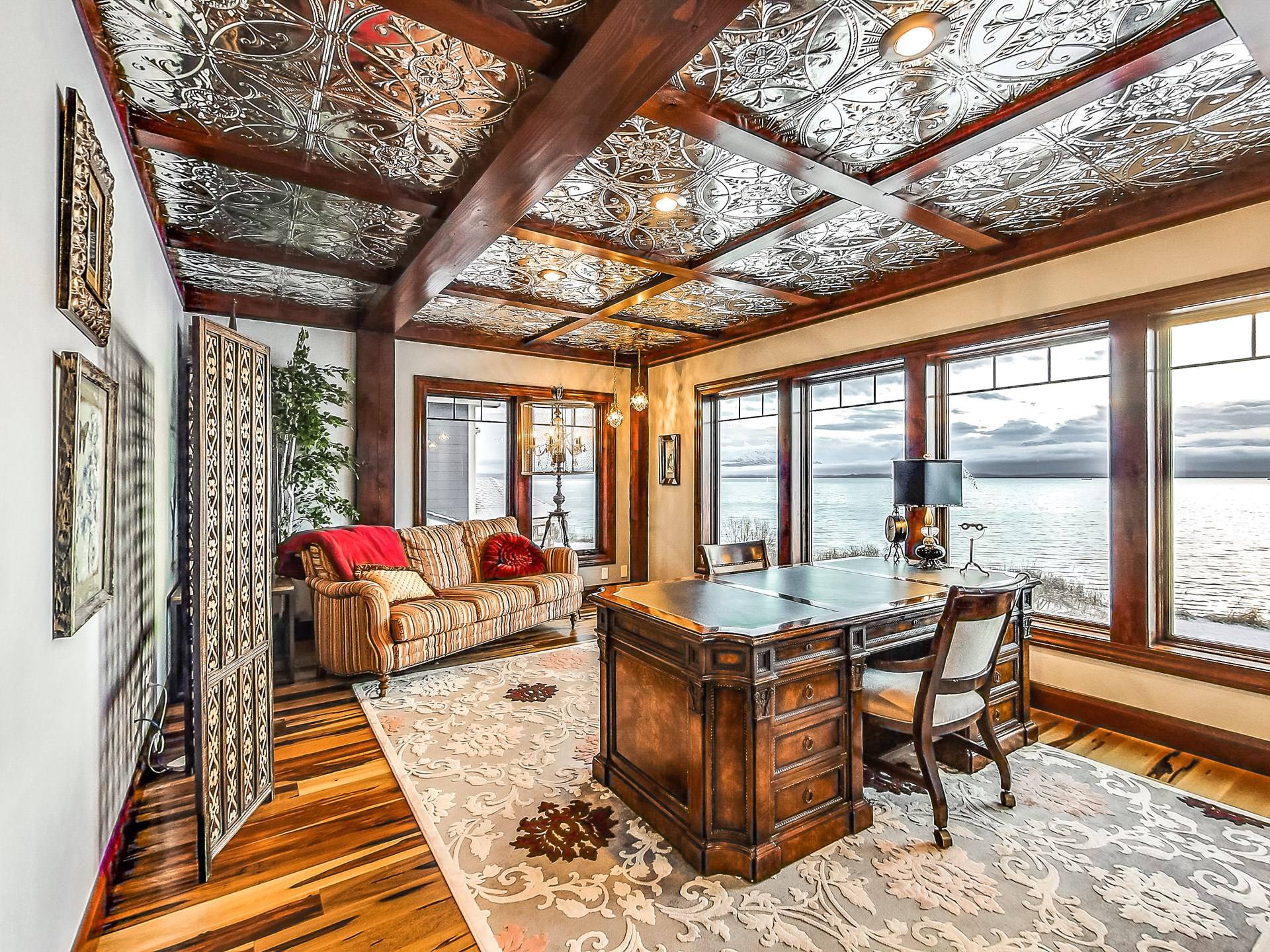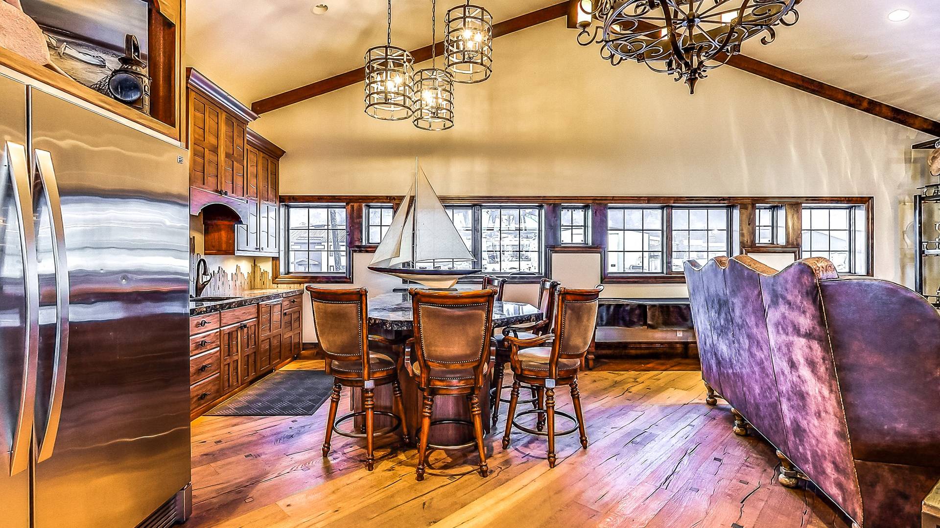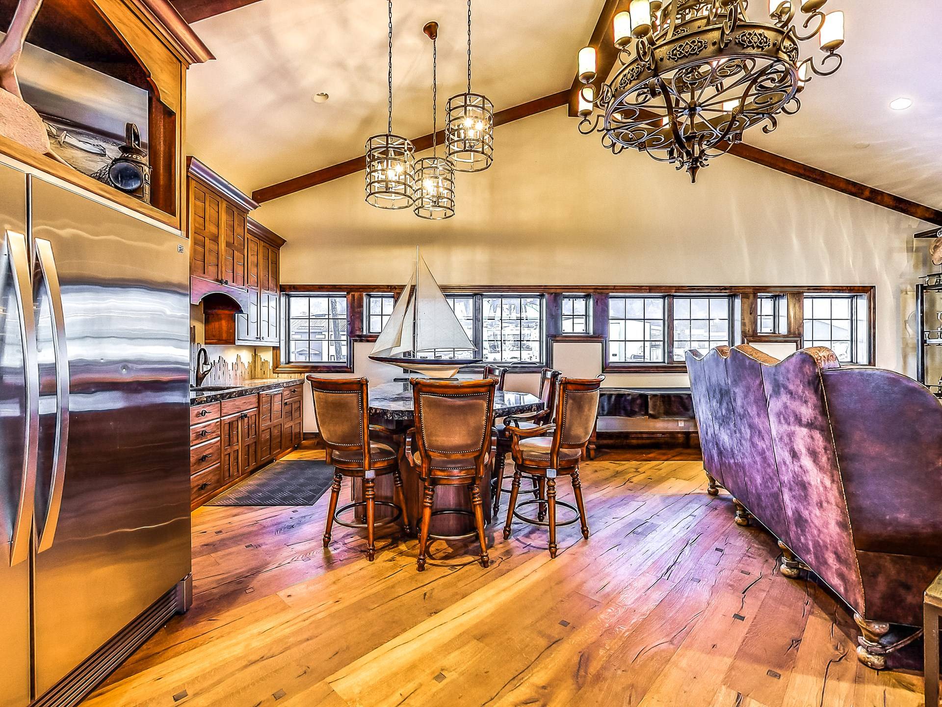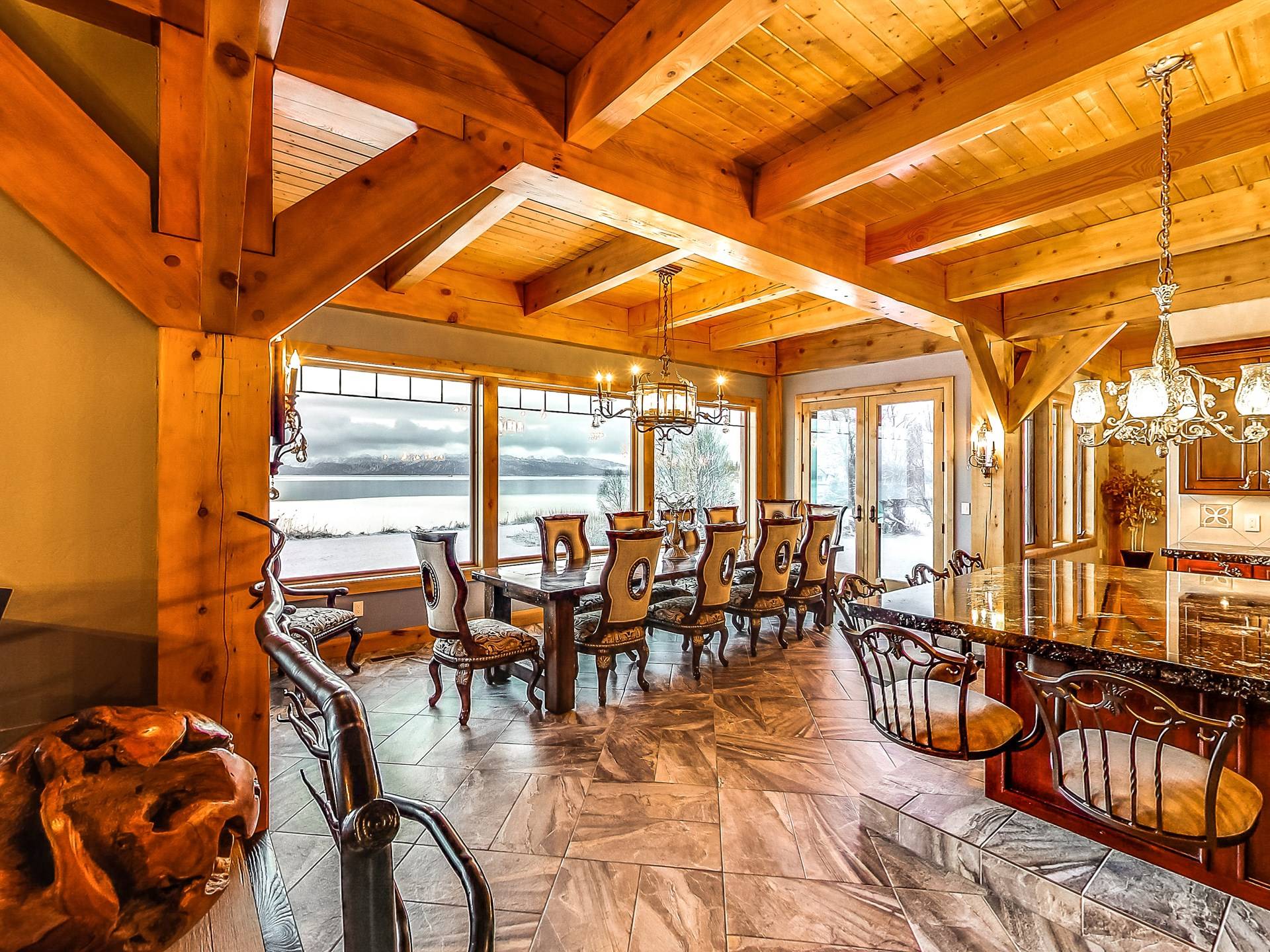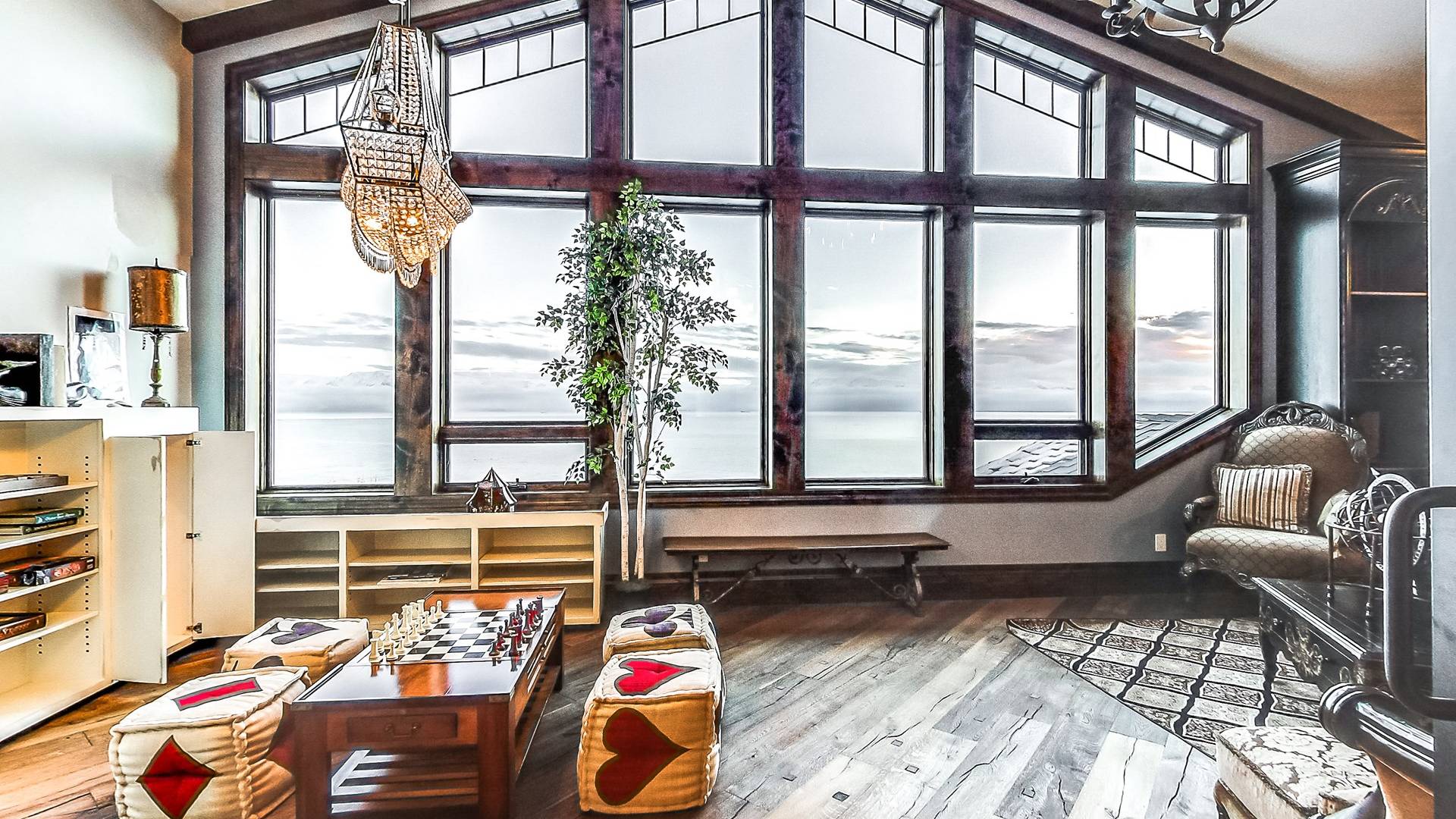 Promenez-vous dans la somptueuse bibliothèque perchée au-dessus de l'océan pour lire un livre. Observez la faune de l'Alaska à travers le télescope géant dans des phoques ressemblant à une véranda à 270 degrés prenant le soleil sur les rochers en contrebas. Profitez de la cuisine dans une fabuleuse cuisine gastronomique; blottissez-vous devant l'une des 4 cheminées pour S'mores, préparez des pizzas maison dans le four à pizza extérieur au feu de bois. Ou vous pouvez simplement vous détendre sur la terrasse privée de 3000 pieds carrés juste au-dessus d'un paradis en bord de mer avec une vue inoubliable sur les eaux de la baie de Kachemak et les montagnes merveilleuses et les glaciers immaculés qui l'entourent.
