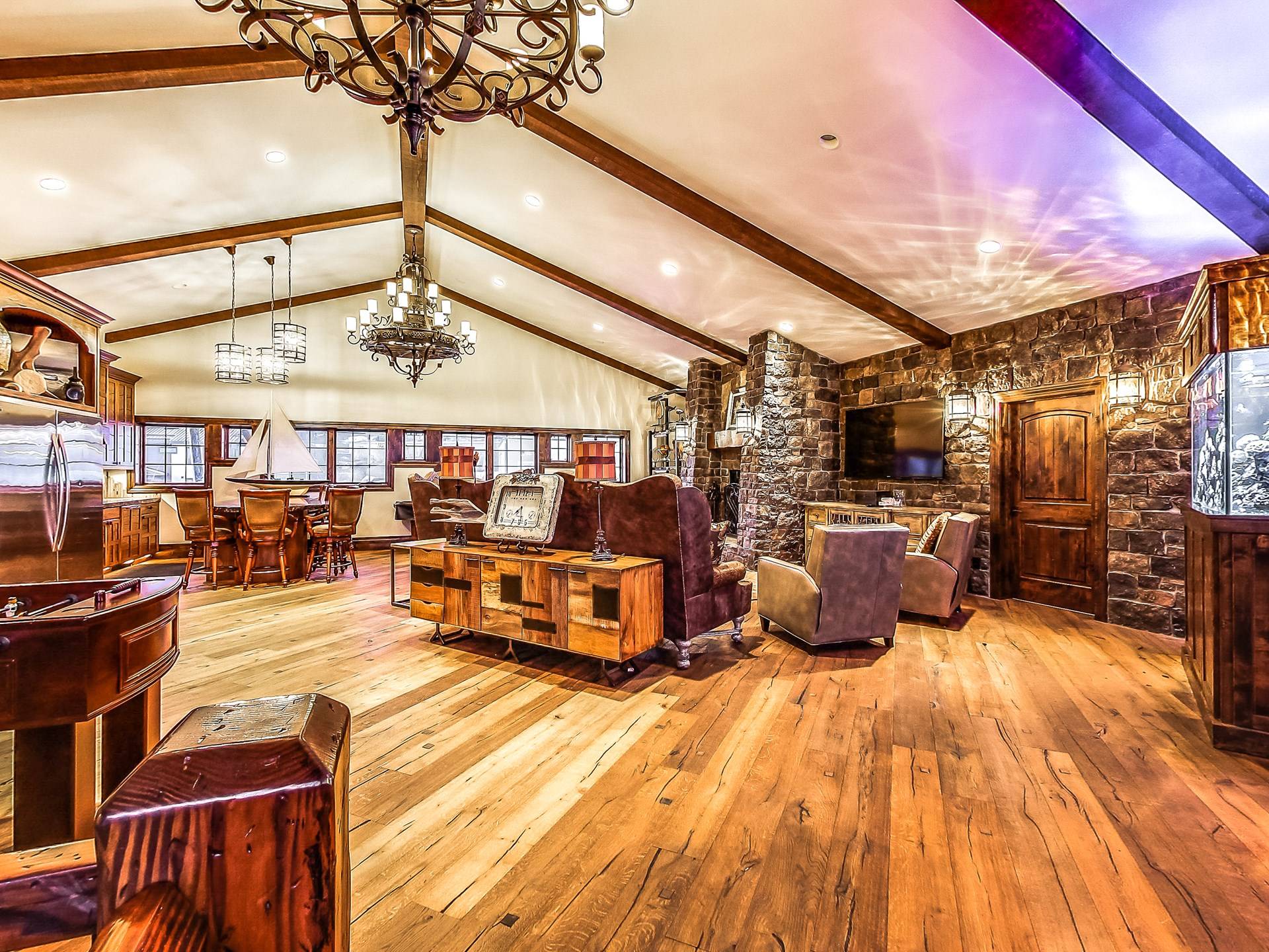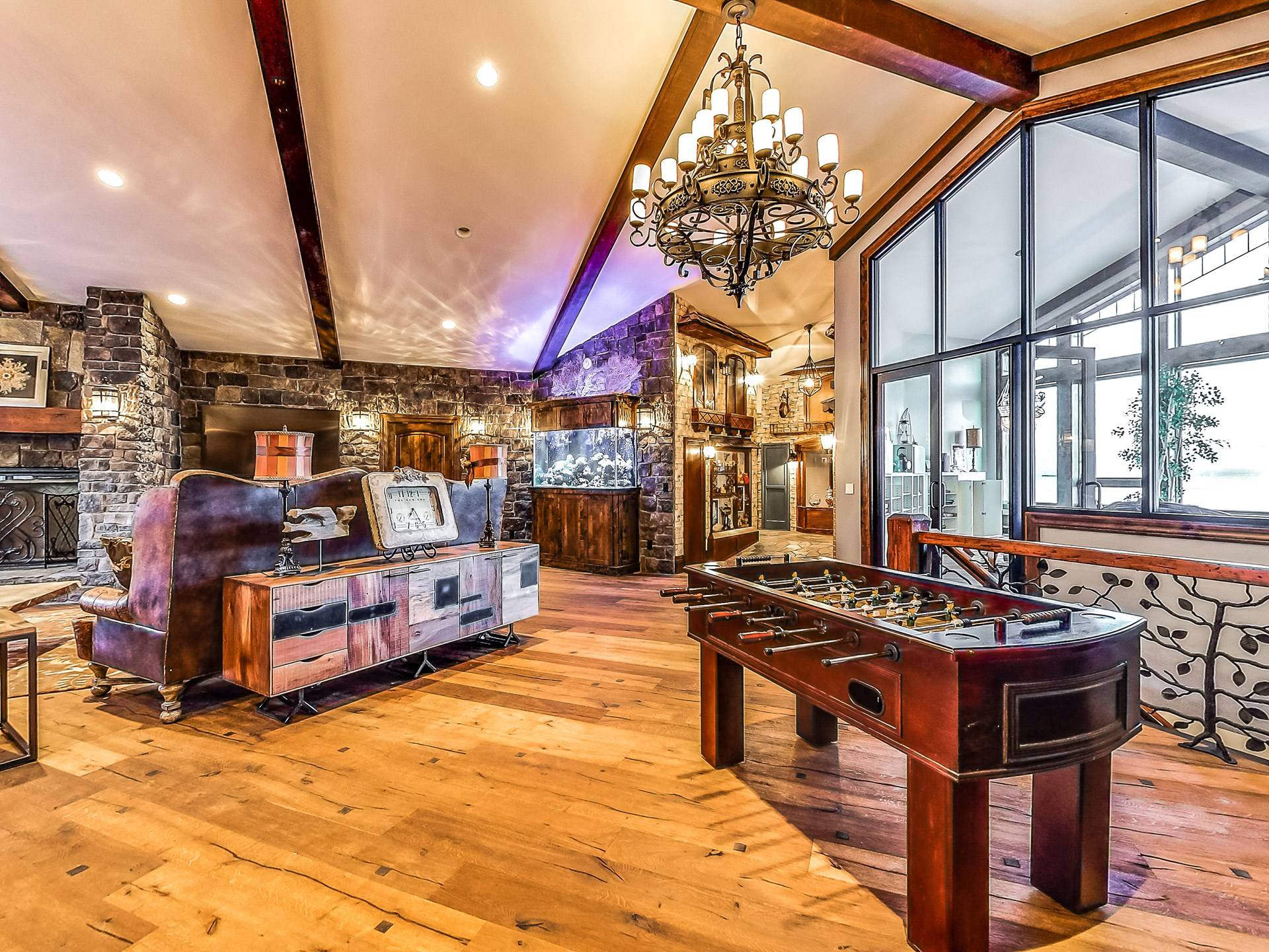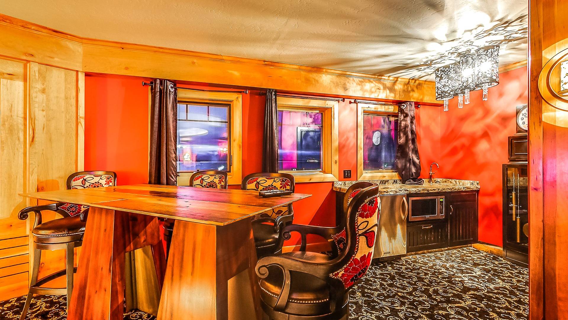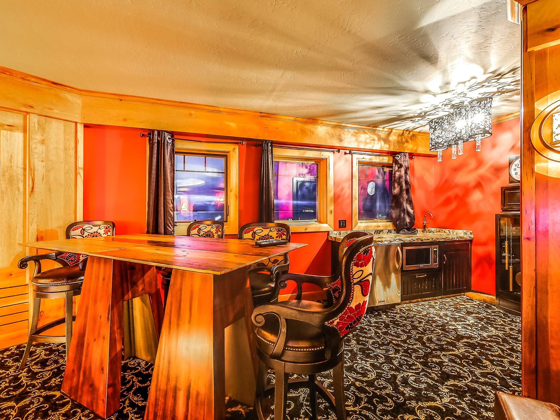 L'aile Spa, 2 cuisines gastronomiques, une salle de théâtre géante, une bibliothèque, 14 salles de bains, une véranda, des murs massifs de fenêtres et des salons luxueux sont tous inclus dans ce paradis de 17 000 pieds carrés et 2,5 acres. Et dans un cadre sauvage inégalé qui est superbement inoubliable! Créez les souvenirs les plus magiques de votre vie au Second Star Mansion!