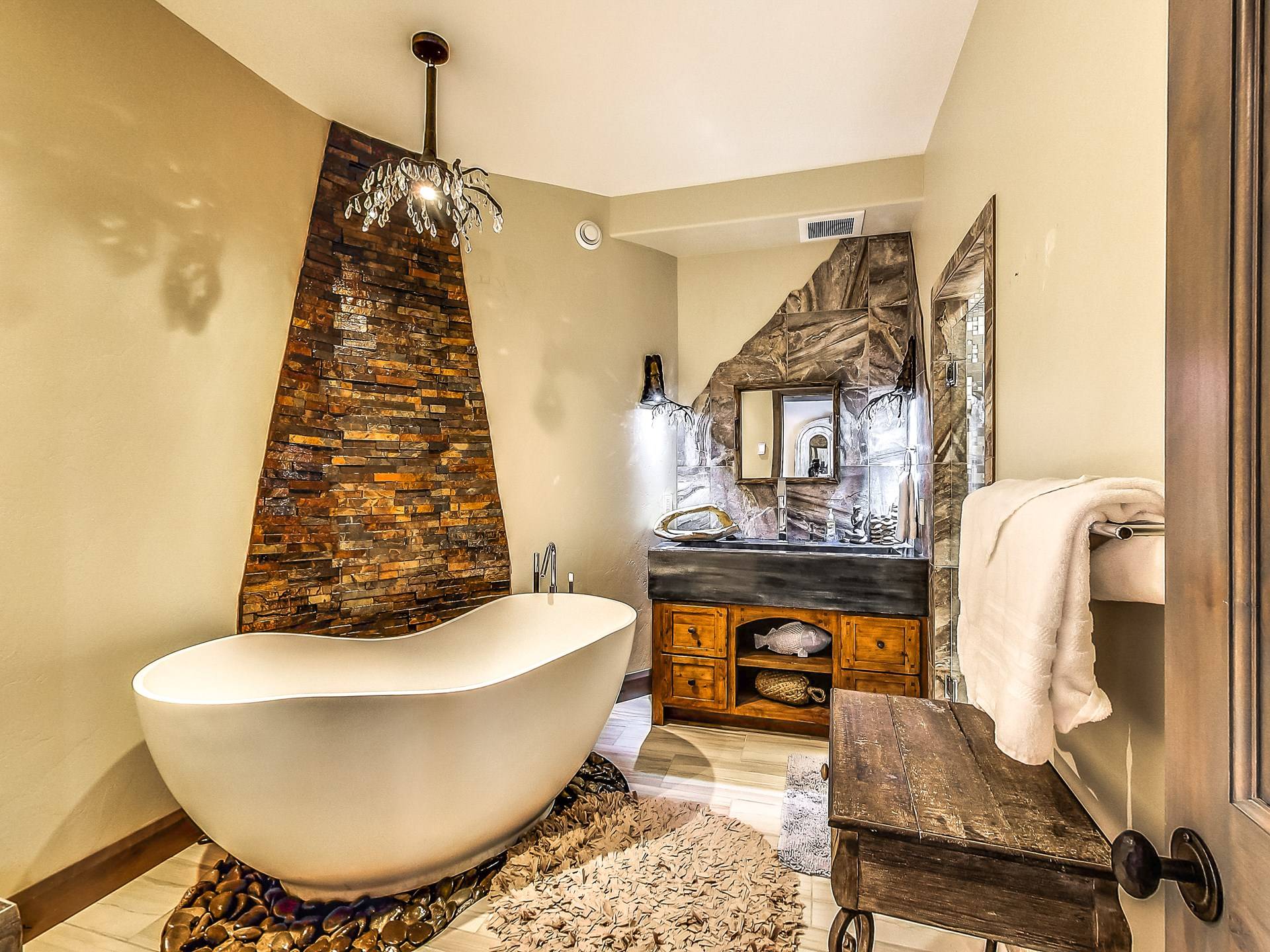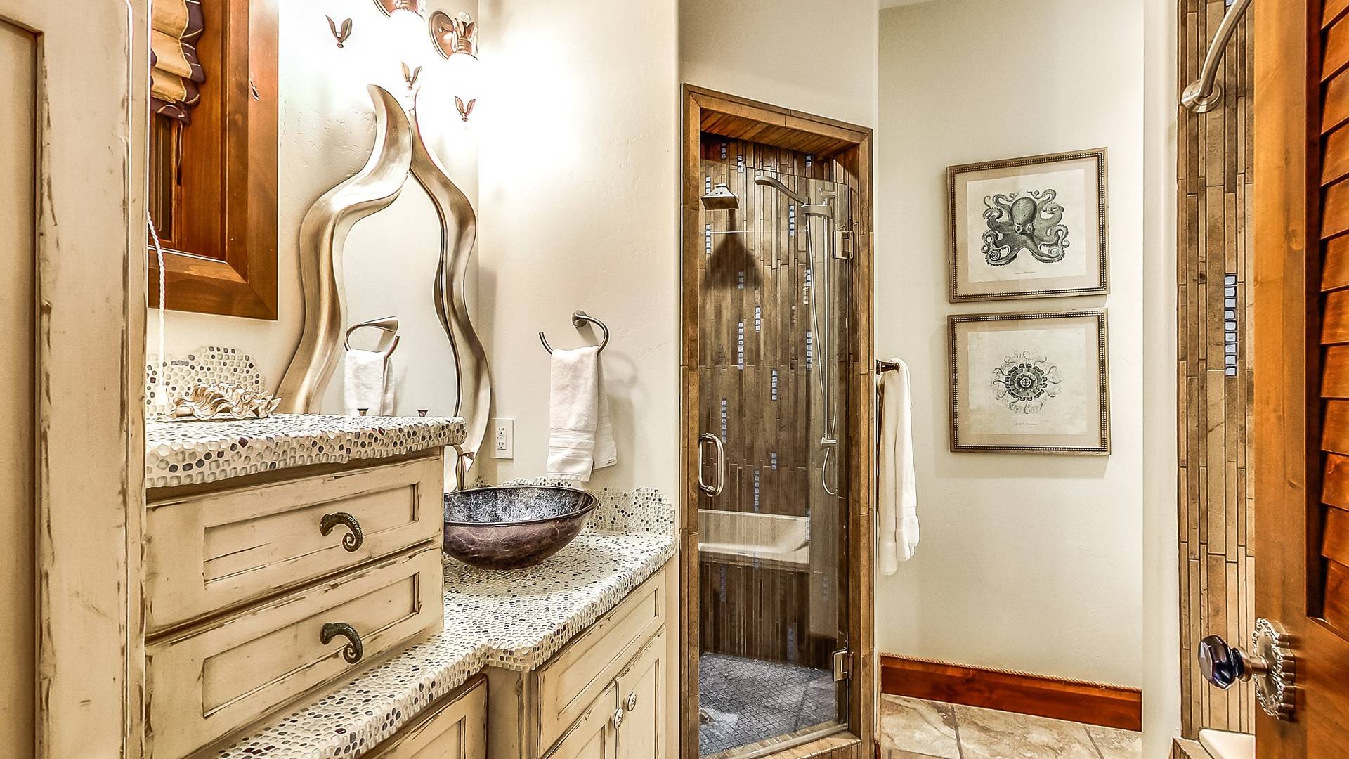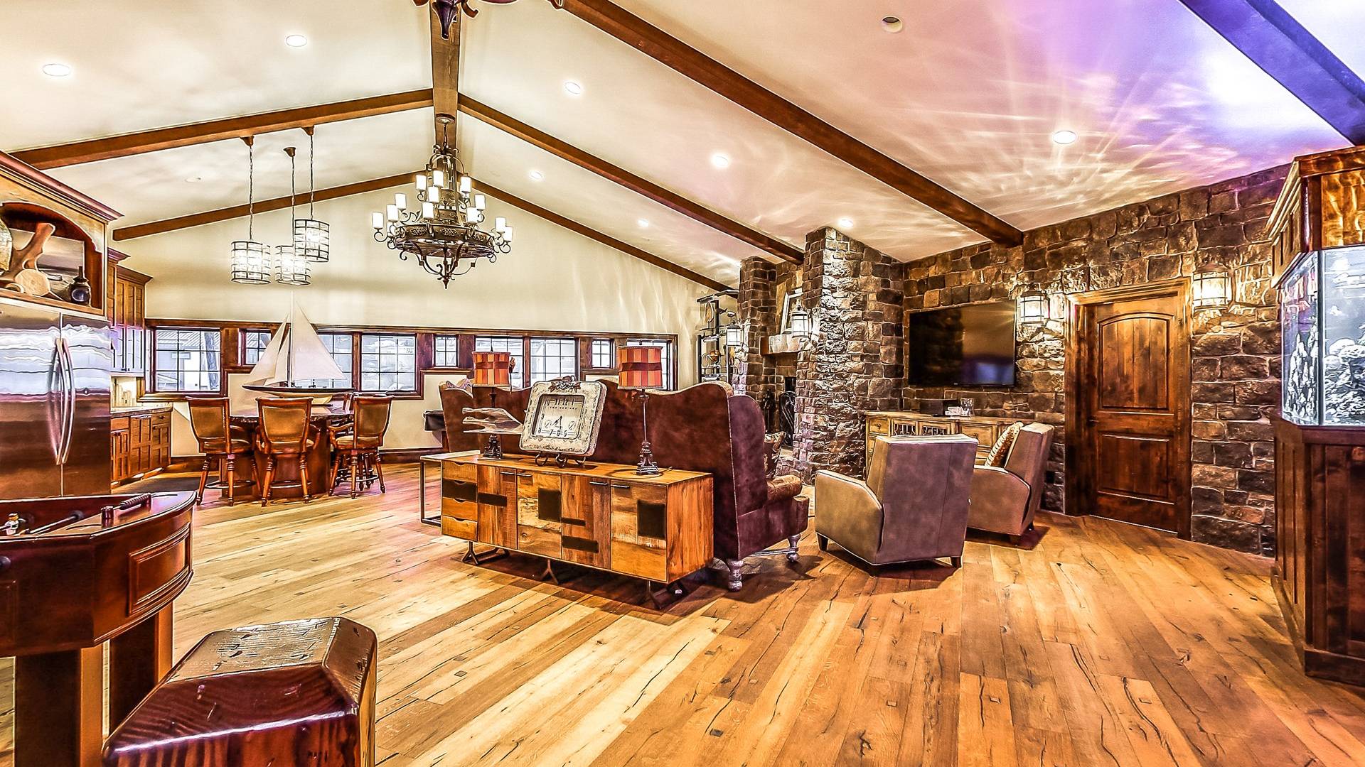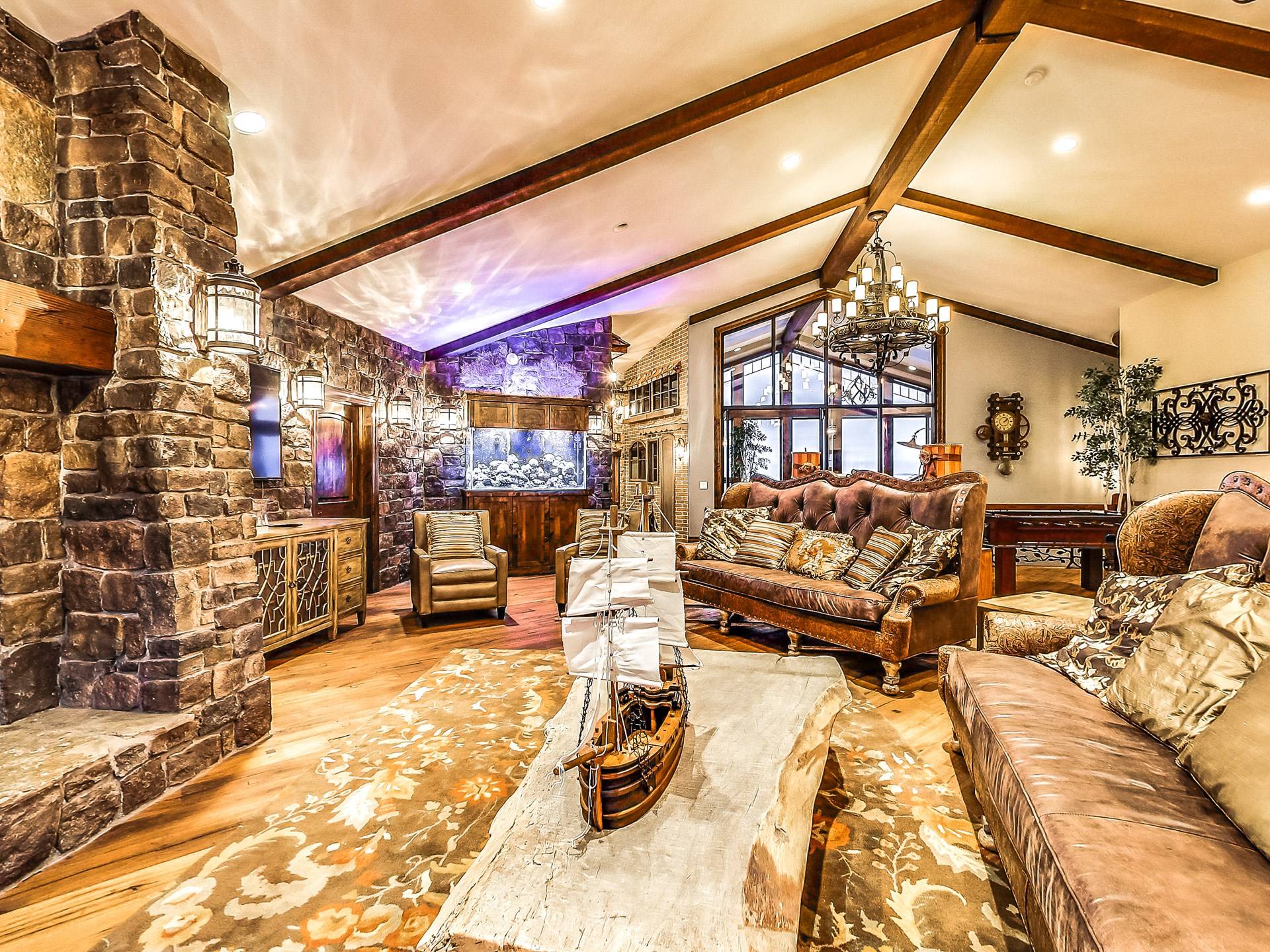 L'aile Spa, 2 cuisines gastronomiques, une salle de théâtre géante, une bibliothèque, 14 salles de bains, une véranda, des murs massifs de fenêtres et des salons luxueux sont tous inclus dans ce paradis de 17 000 pieds carrés et 2,5 acres. Et dans un cadre sauvage inégalé qui est superbement inoubliable! Créez les souvenirs les plus magiques de votre vie au Second Star Mansion!