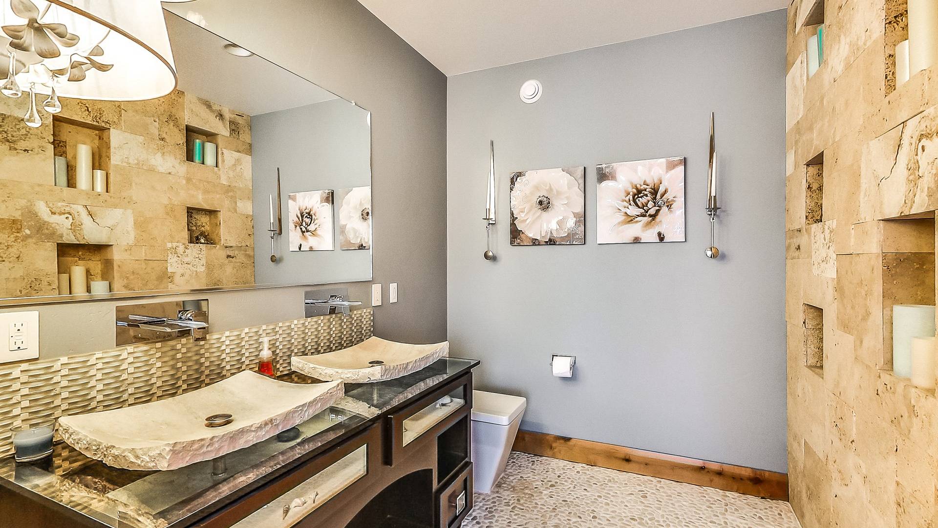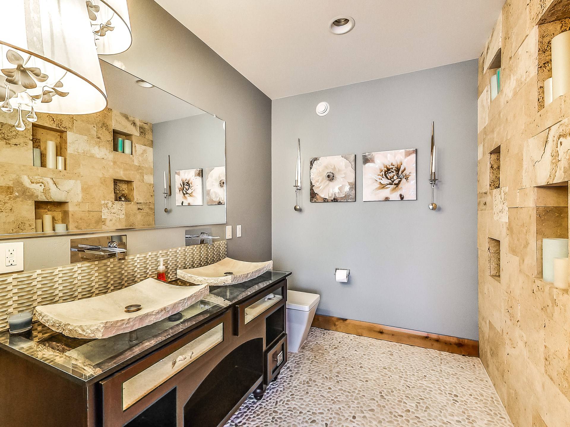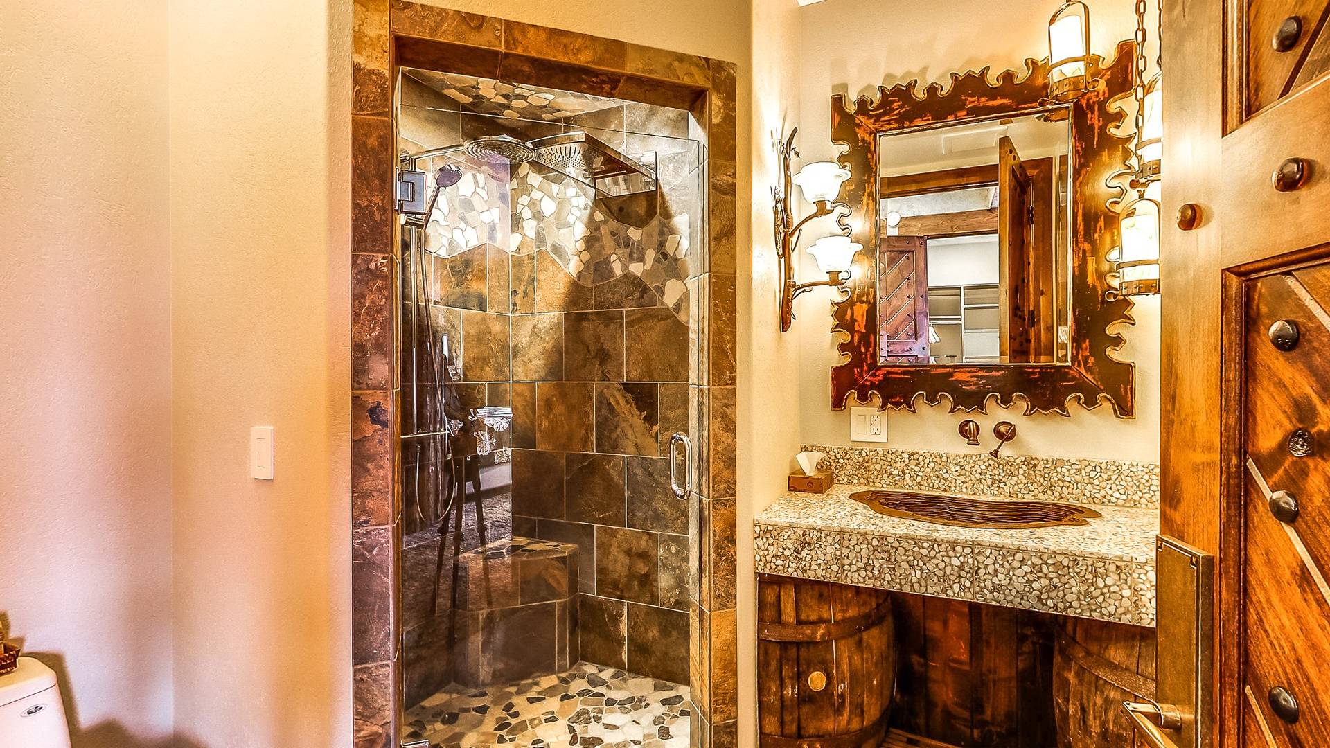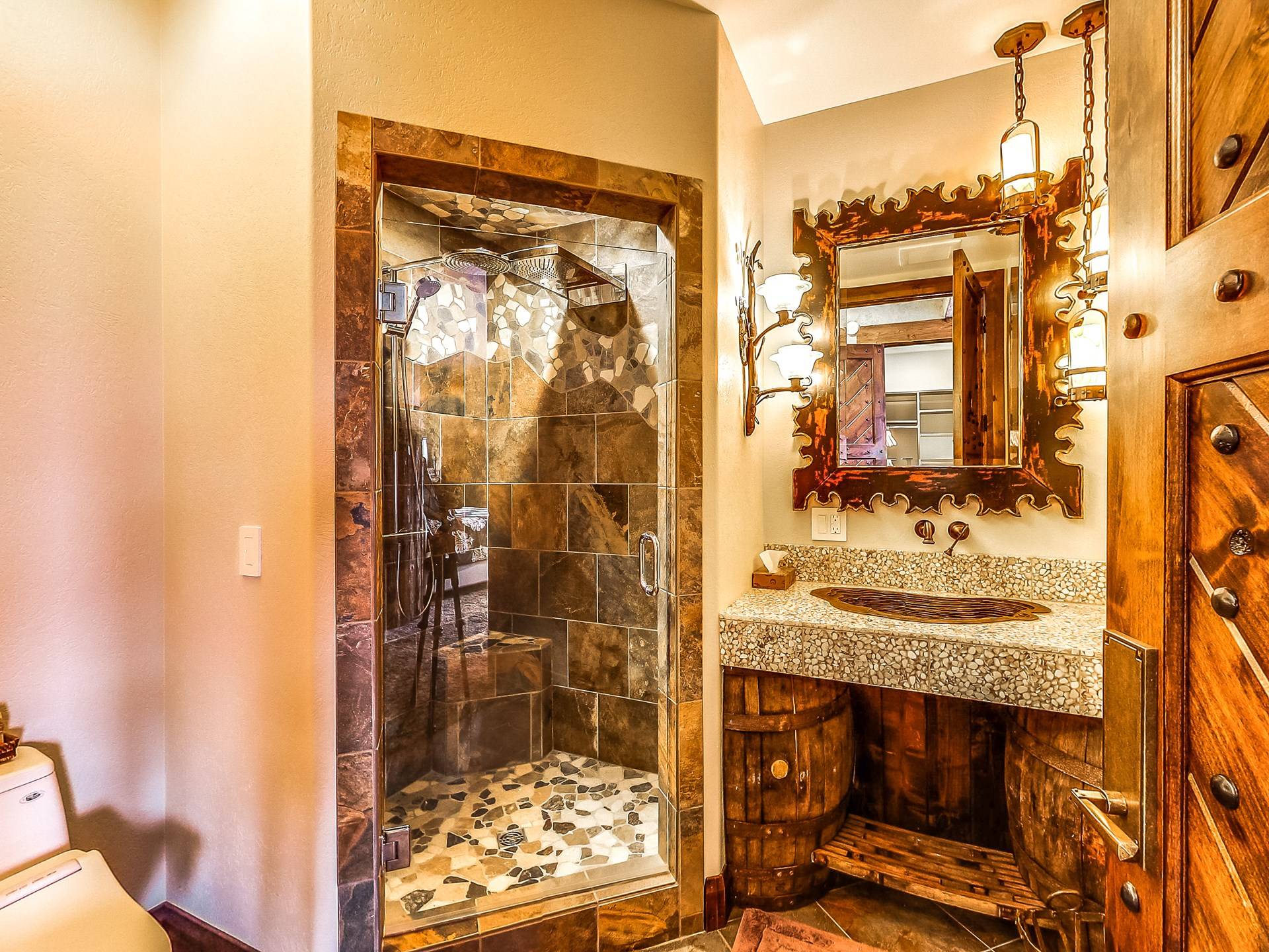 L'aile Spa, 2 cuisines gastronomiques, une salle de théâtre géante, une bibliothèque, 14 salles de bains, une véranda, des murs massifs de fenêtres et des salons luxueux sont tous inclus dans ce paradis de 17 000 pieds carrés et 2,5 acres. Et dans un cadre sauvage inégalé qui est superbement inoubliable! Créez les souvenirs les plus magiques de votre vie au Second Star Mansion!