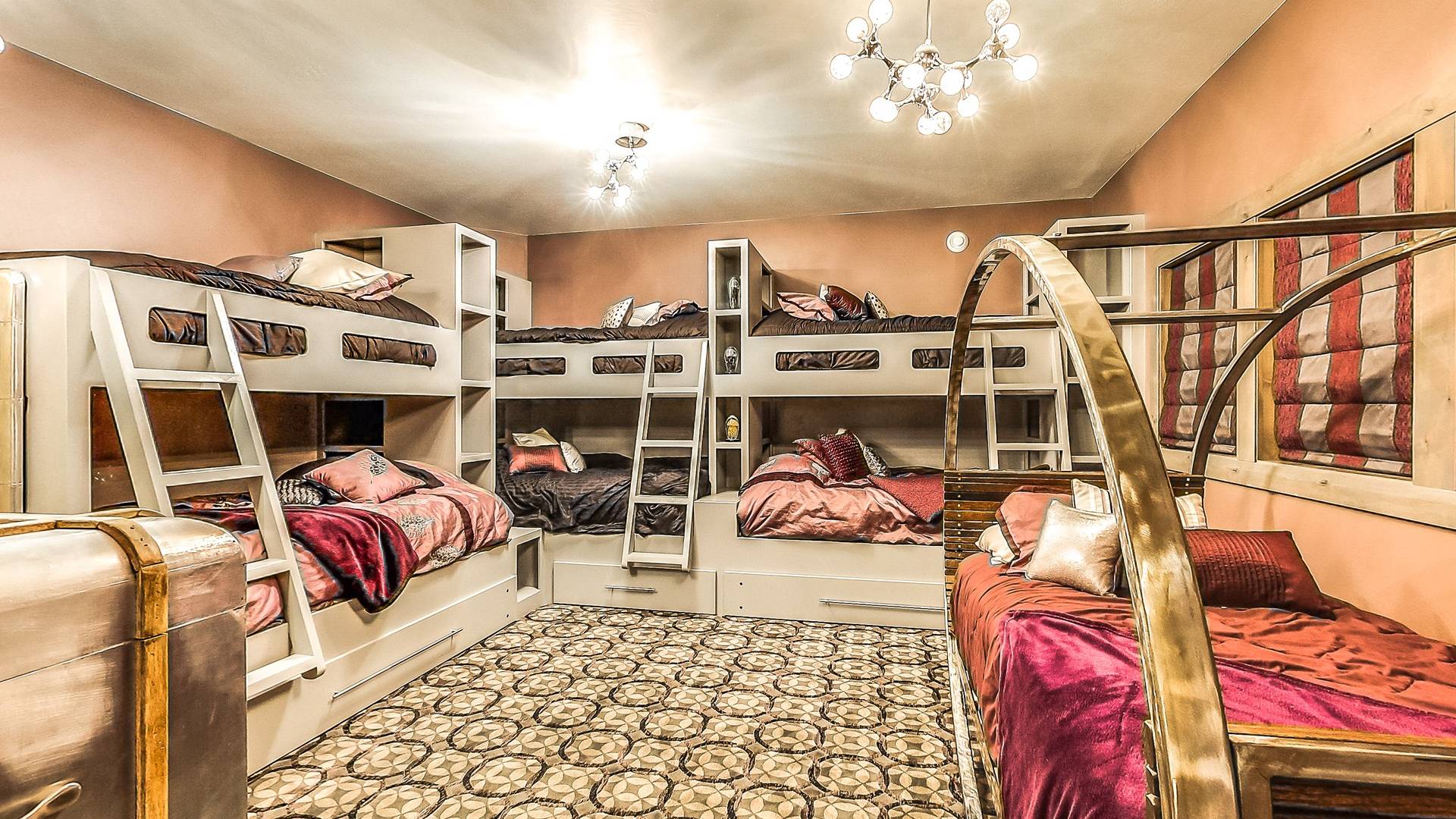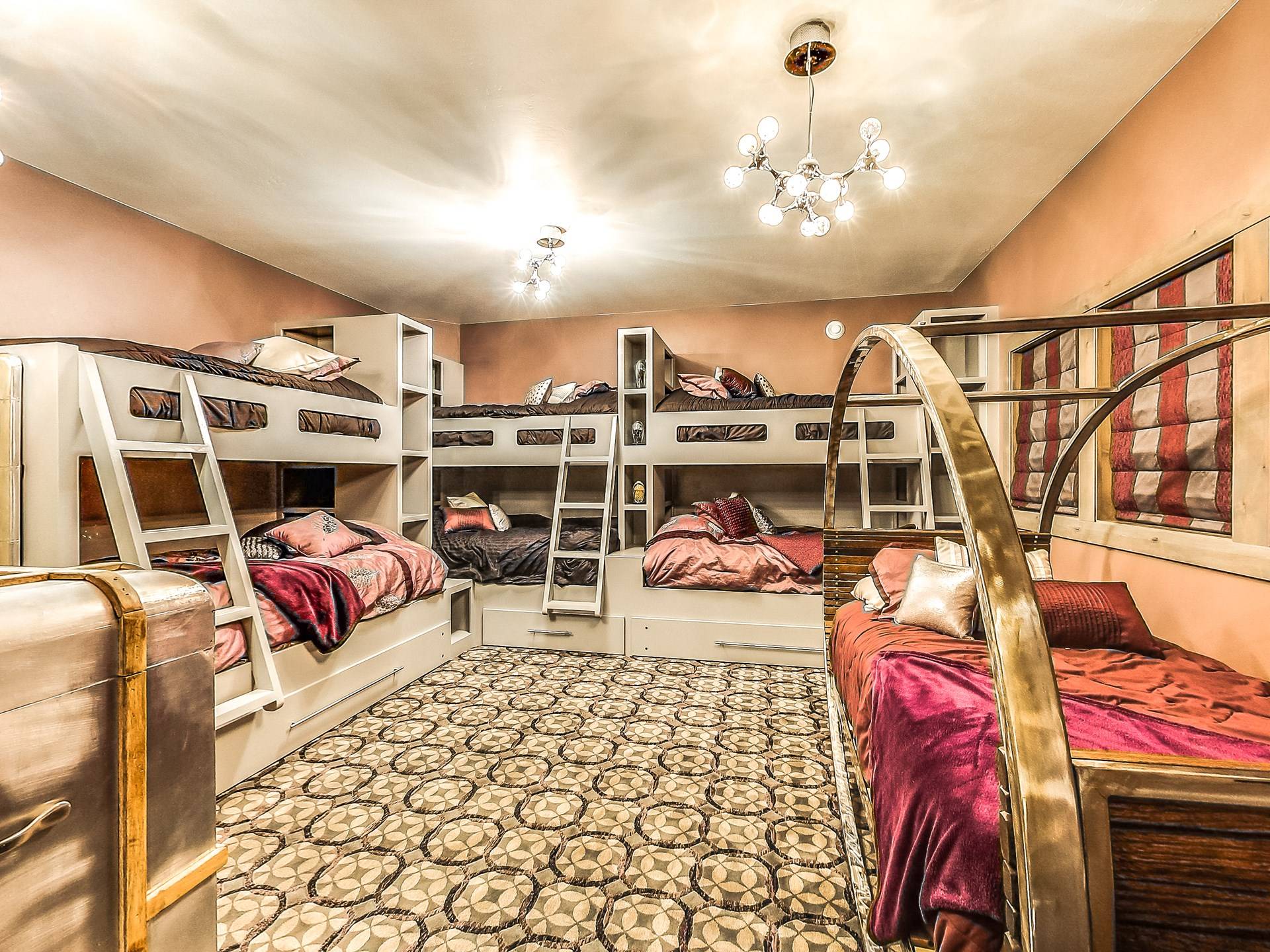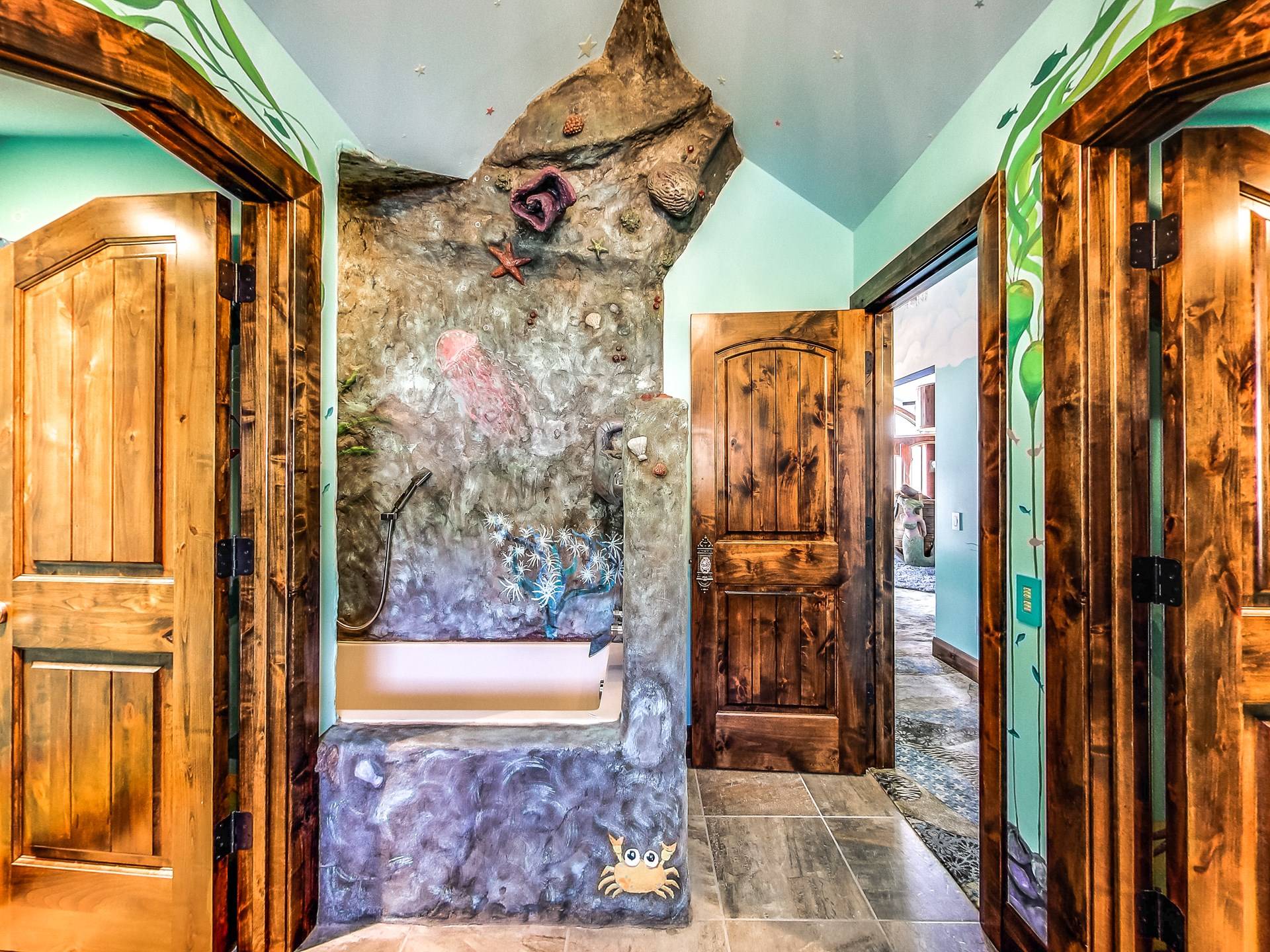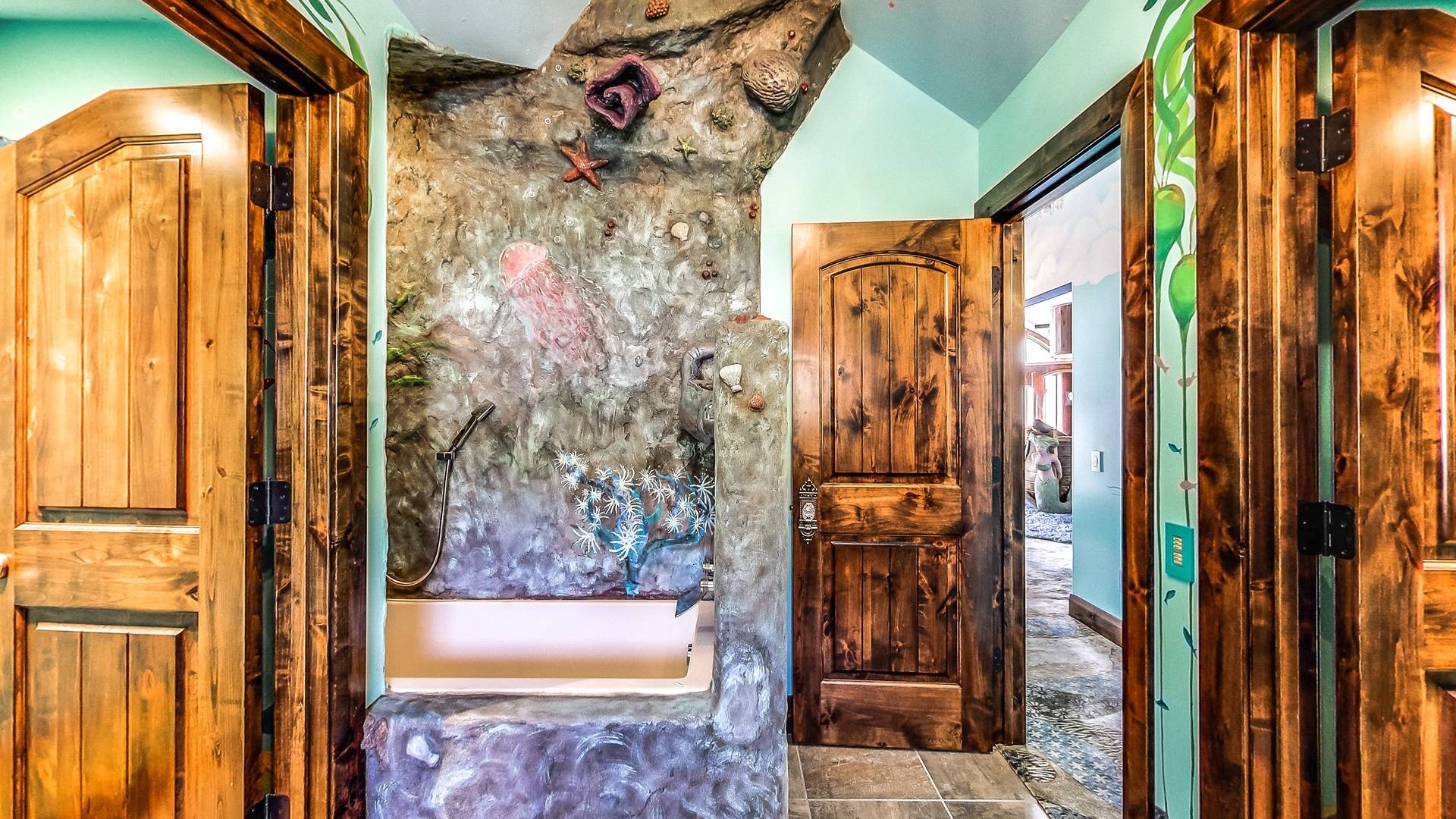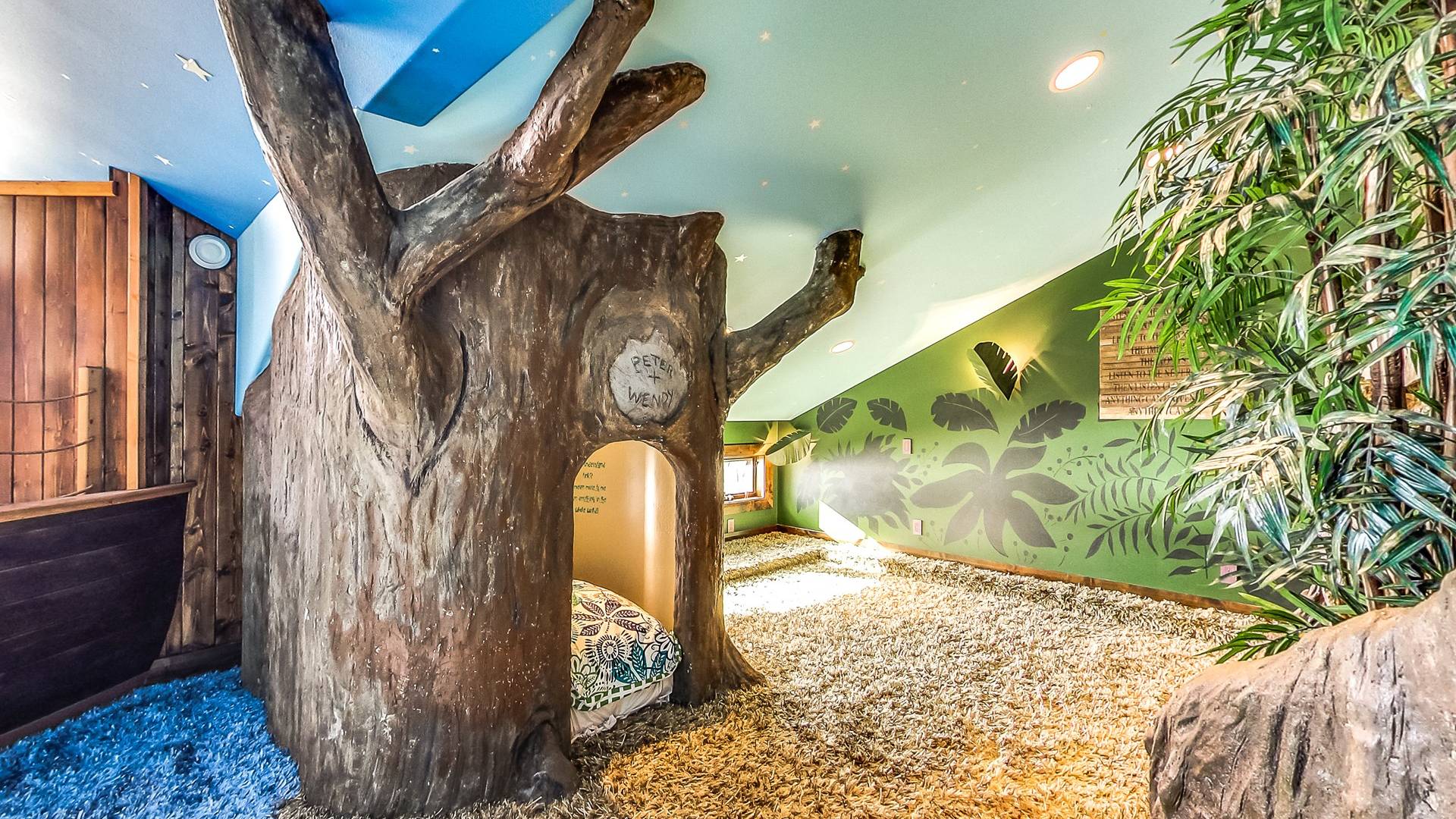 Les enfants, petits et grands, peuvent grimper, glisser, rêver et jouer dans un Neverland de 2 000 pieds carrés avec bateau pirate. Prenez soin de vous dans votre propre aile SPA privée qui comprend une piscine intérieure, un hammam, un bain turc, une salle de massage et un sauna infrarouge. Jouez au jeu de palets ou au baby-foot dans la salle de jeux spacieuse. Assistez à un film dans un immense théâtre personnalisé (avec un passage secret vers un magasin de bonbons).