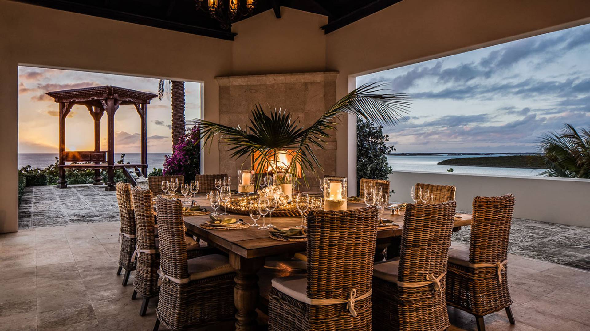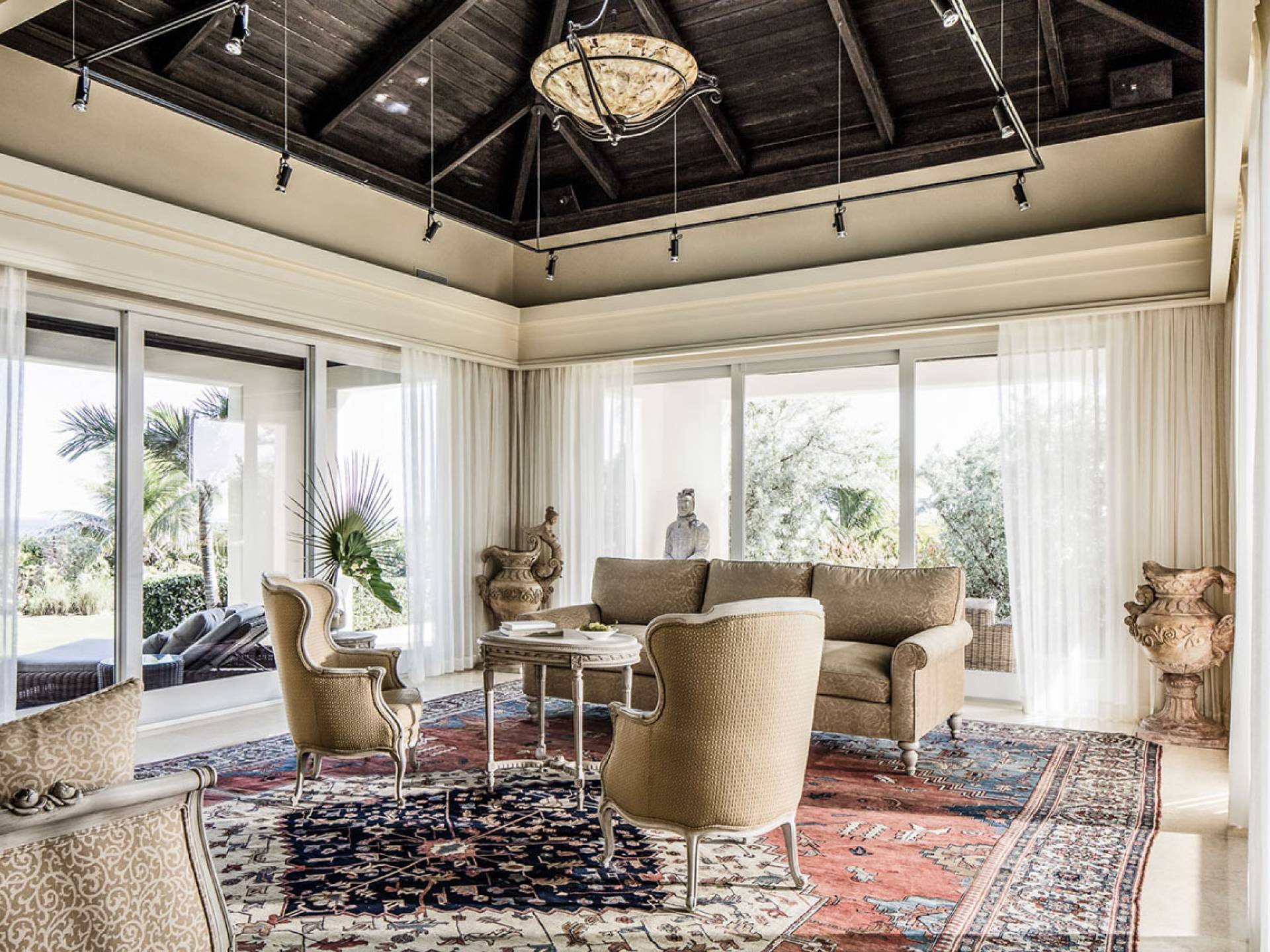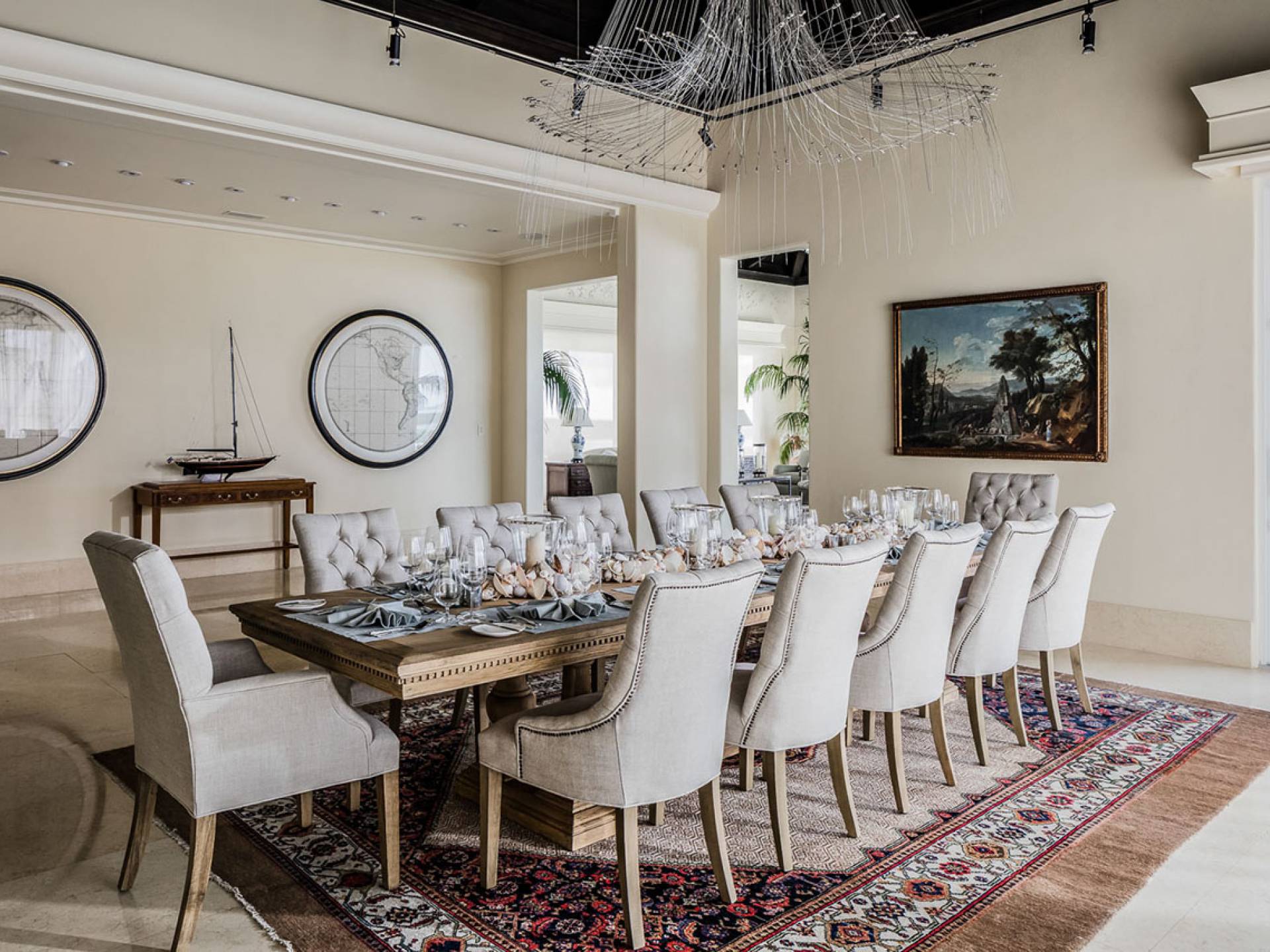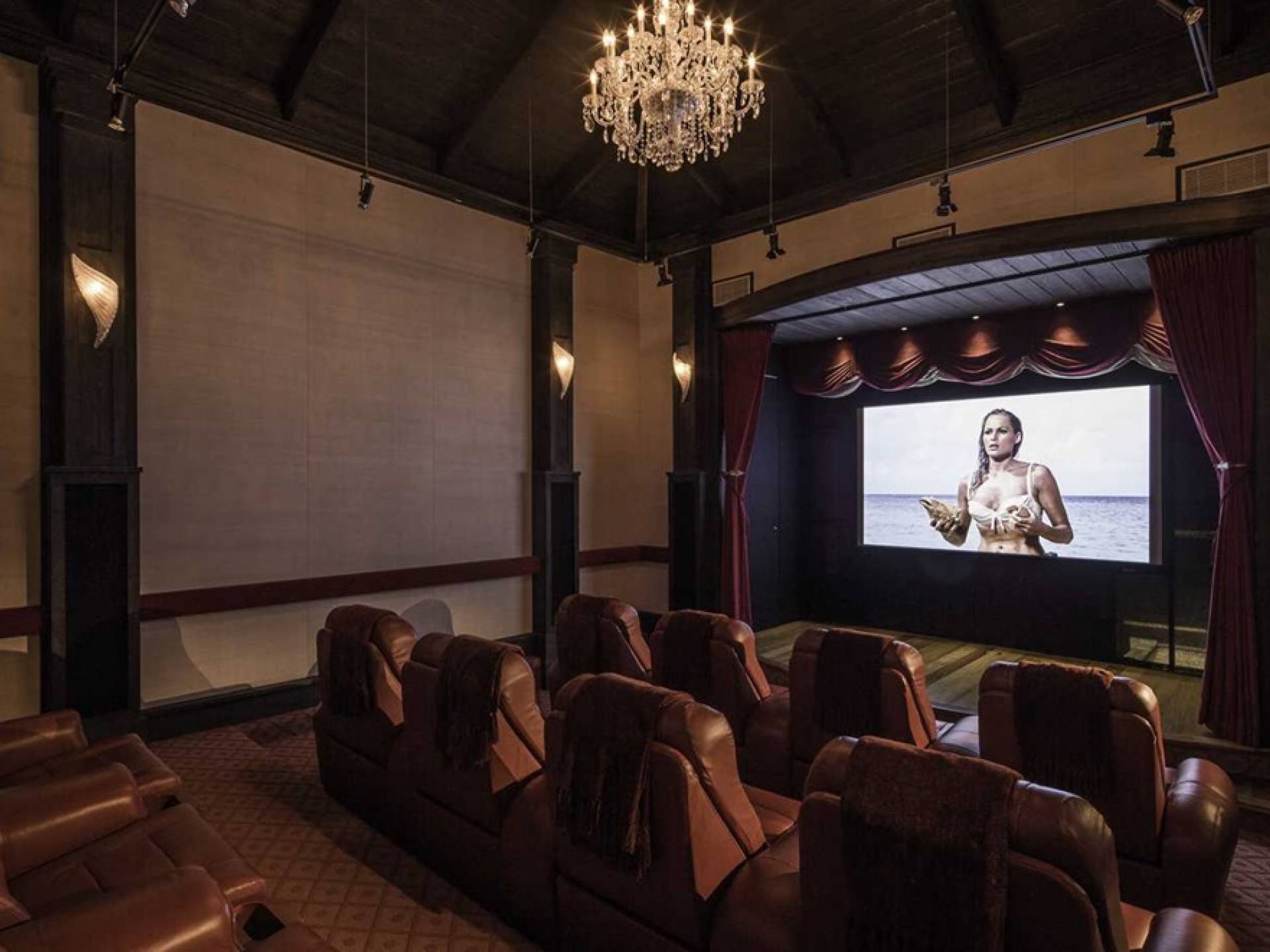 Le décor rococo éclectique et fantaisiste de la villa offre un cadre haut de gamme mais détendu pour les réunions de groupe, du grand conservatoire avec ses vues à couper le souffle et son piano Steinway à l'intimité de la salle de cinéma de luxe de 12 places. La villa est l'un des pôles d'activité de l'île en raison de ses nombreuses installations. L'hébergement de cette villa comprend une suite principale de 2 300 pieds carrés (214 m²) avec une tour d'observation, un jardin privé, un dressing, un salon et une salle de bain spacieuse. Les trois suites d'invités de 62 m² disposent chacune d'une cour et d'une terrasse privées.