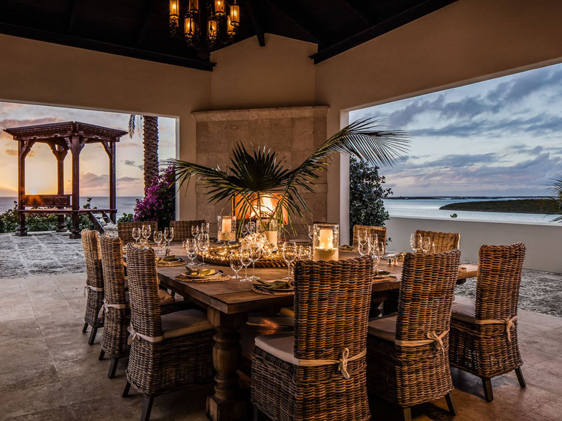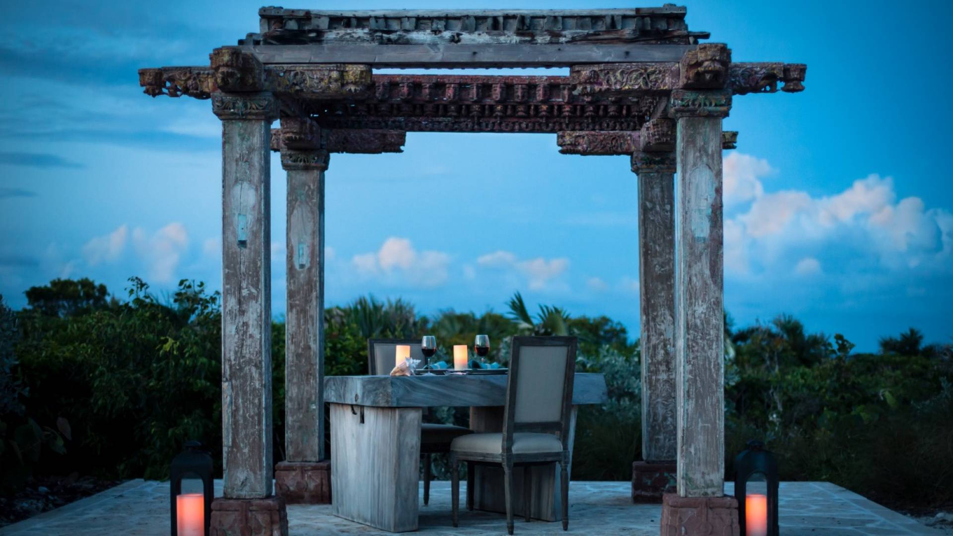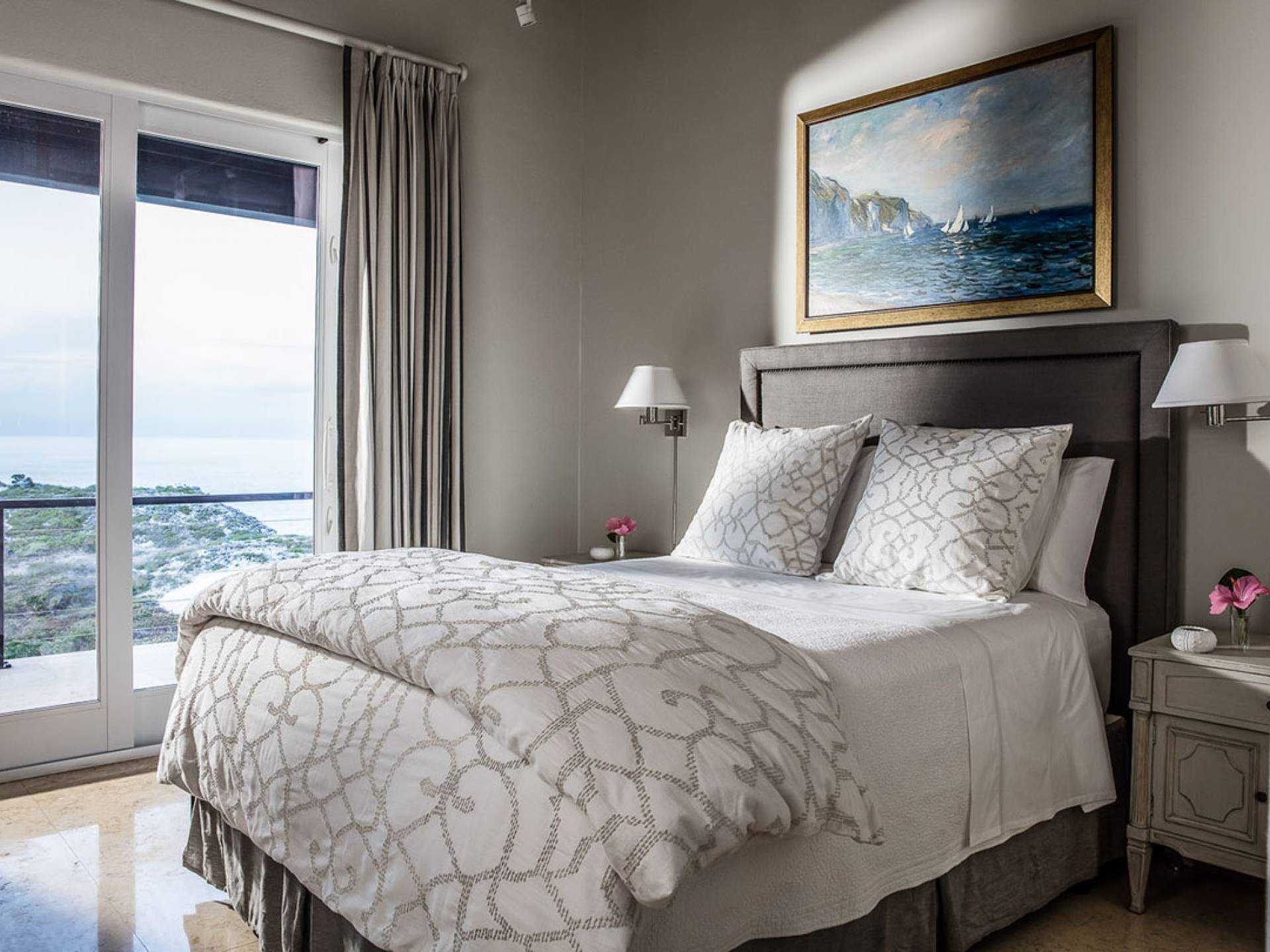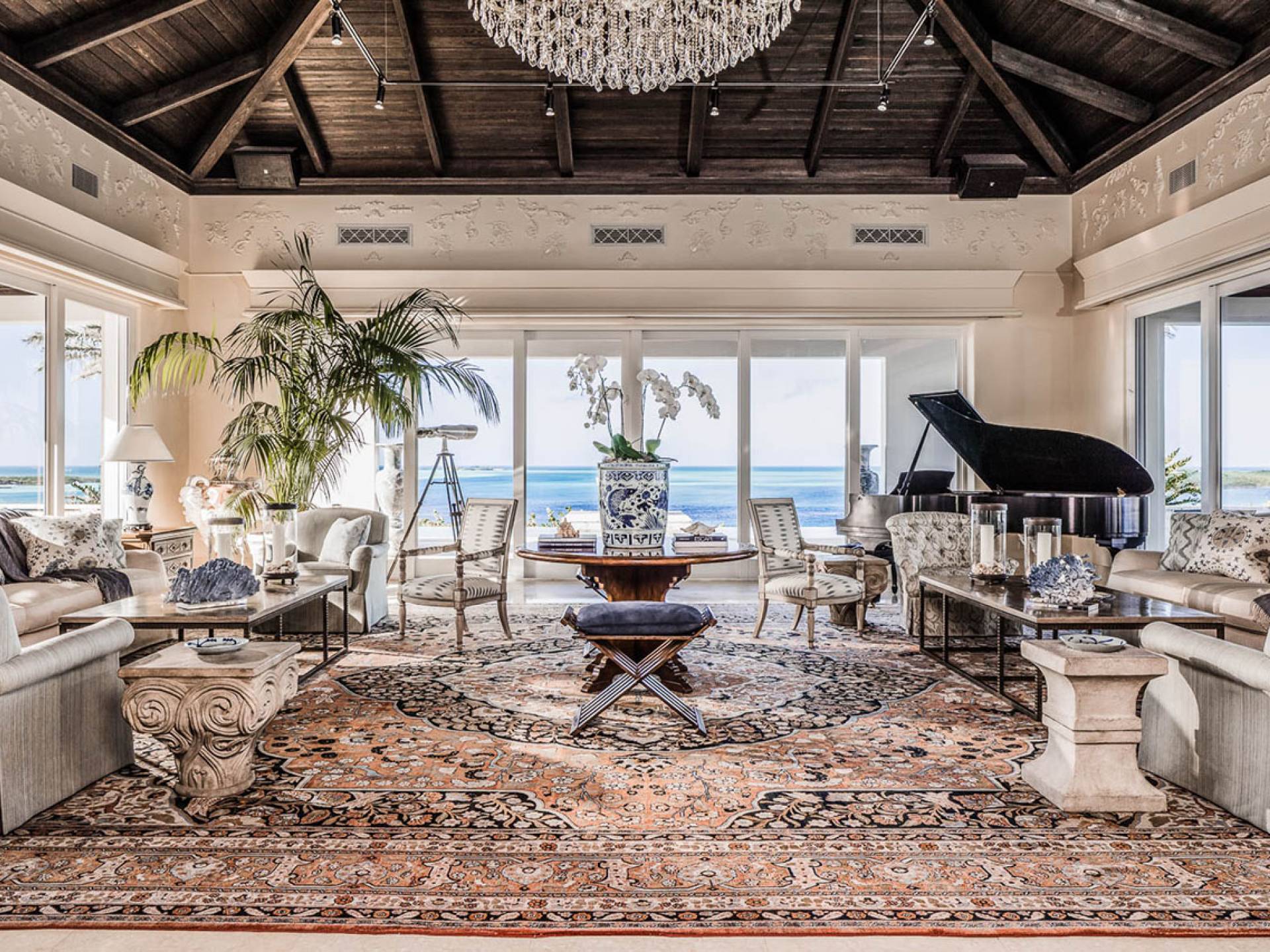 Le décor rococo éclectique et fantaisiste de la villa offre un cadre haut de gamme mais détendu pour les réunions de groupe, du grand conservatoire avec ses vues à couper le souffle et son piano Steinway à l'intimité de la salle de cinéma de luxe de 12 places. La villa est l'un des pôles d'activité de l'île en raison de ses nombreuses installations. L'hébergement de cette villa comprend une suite principale de 2 300 pieds carrés (214 m²) avec une tour d'observation, un jardin privé, un dressing, un salon et une salle de bain spacieuse. Les trois suites d'invités de 62 m² disposent chacune d'une cour et d'une terrasse privées.