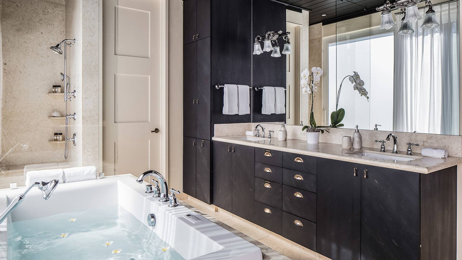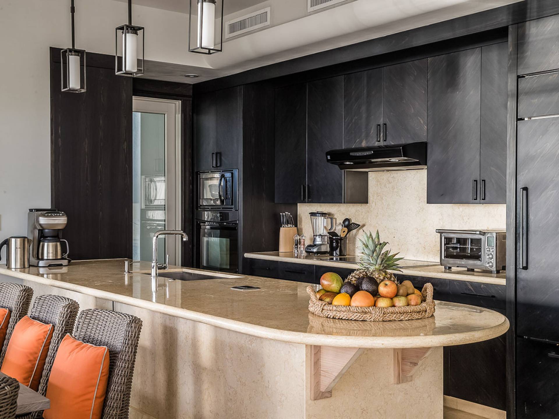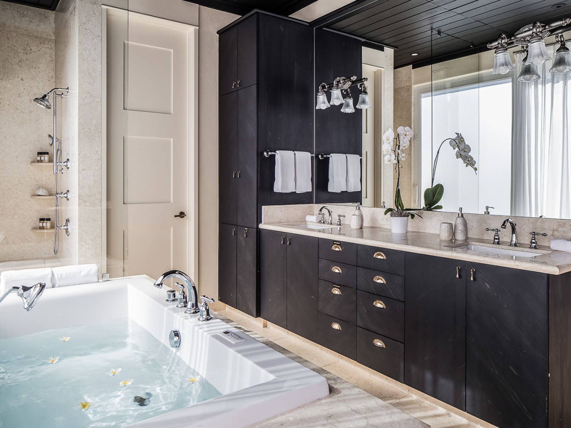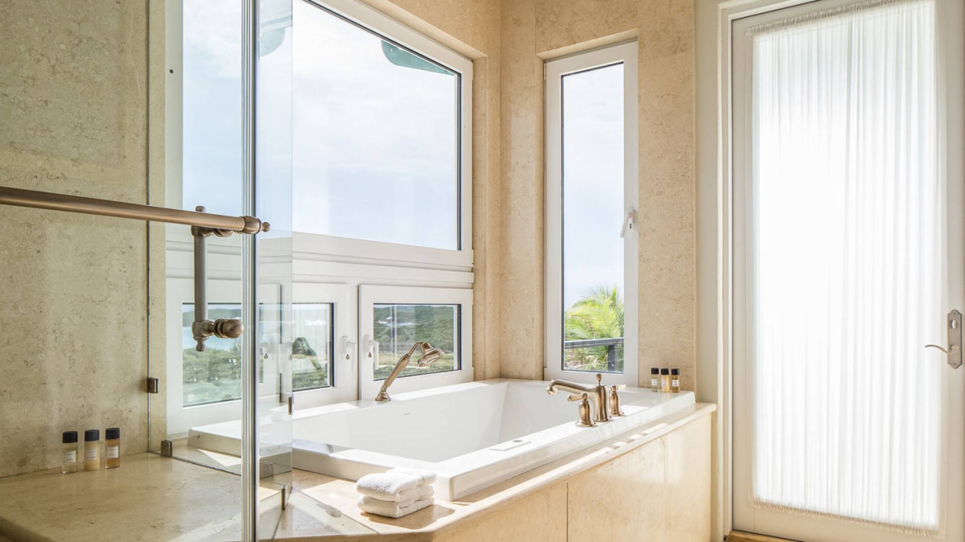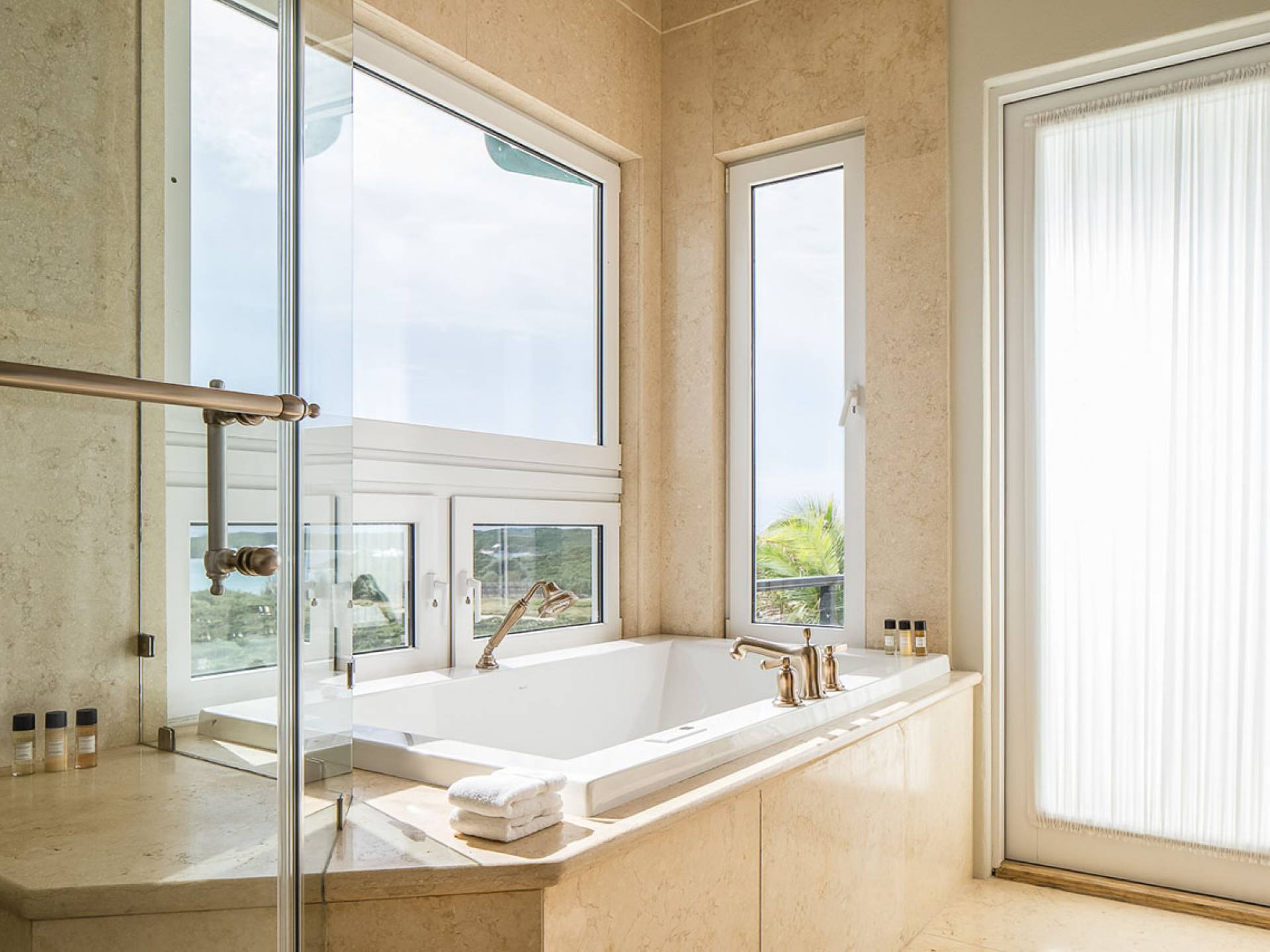 À quelques pas de Whale Bone Beach, West Sands peut accueillir huit personnes dans quatre chambres. Son emplacement en bord de mer est capitalisé avec un espace de repas et de détente en plein air, un foyer, un bain à remous et des baies vitrées orientées à l'ouest. West Sands est une suite principale de 58 m² qui offre une vue imprenable sur l'océan et un balcon panoramique pour admirer le coucher de soleil. La suite d'invités de 562 pieds carrés (52 m²) comprend un coin salon indépendant et un balcon. Au rez-de-chaussée, les deux chambres de la villa de 25 m² partagent une salle de bain hollywoodienne.