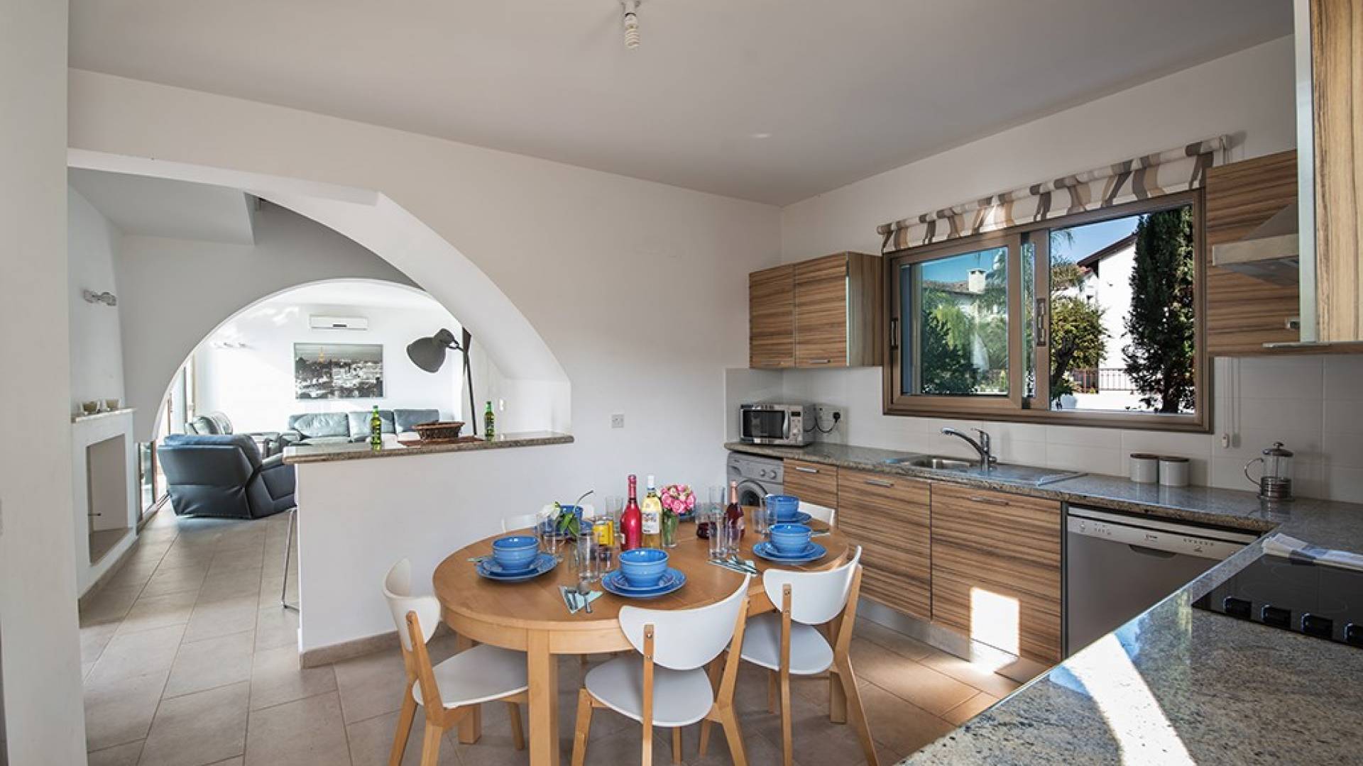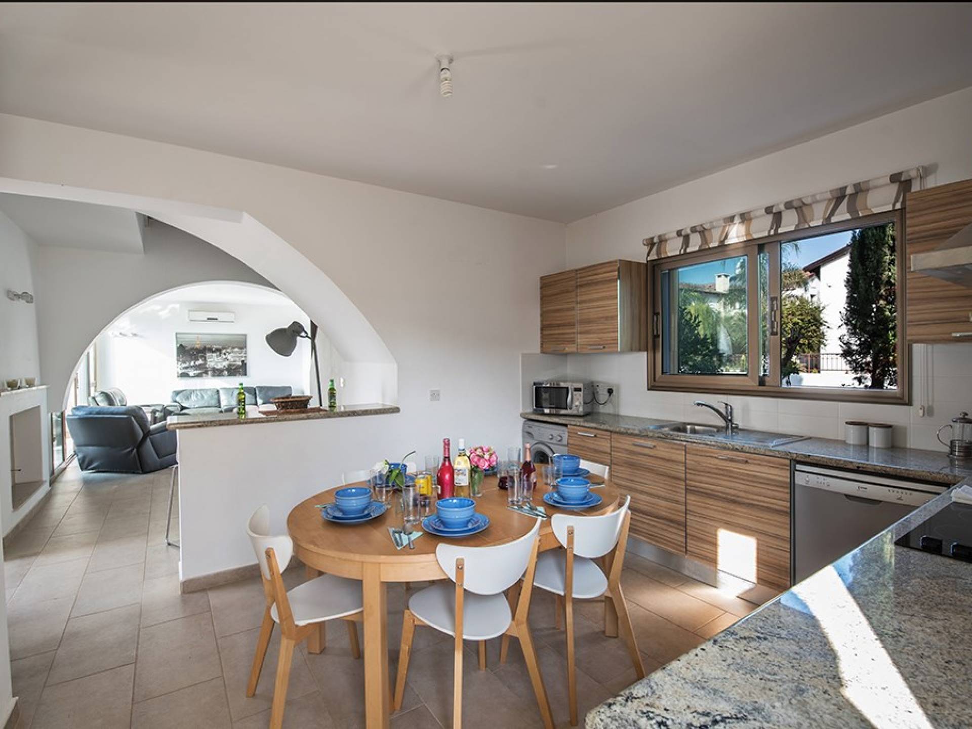 En entrant dans la villa, vous trouverez un grand et spacieux salon avec un confortable canapé d'angle en cuir, une télévision grand écran avec satellite et des portes-fenêtres menant à la piscine et au jardin. Il y a une salle à manger avec des sièges pour 6 personnes et une cuisine entièrement équipée avec tout ce dont vous avez besoin pour votre séjour indépendant ainsi qu'un bar avec des sièges supplémentaires pour 2 personnes.