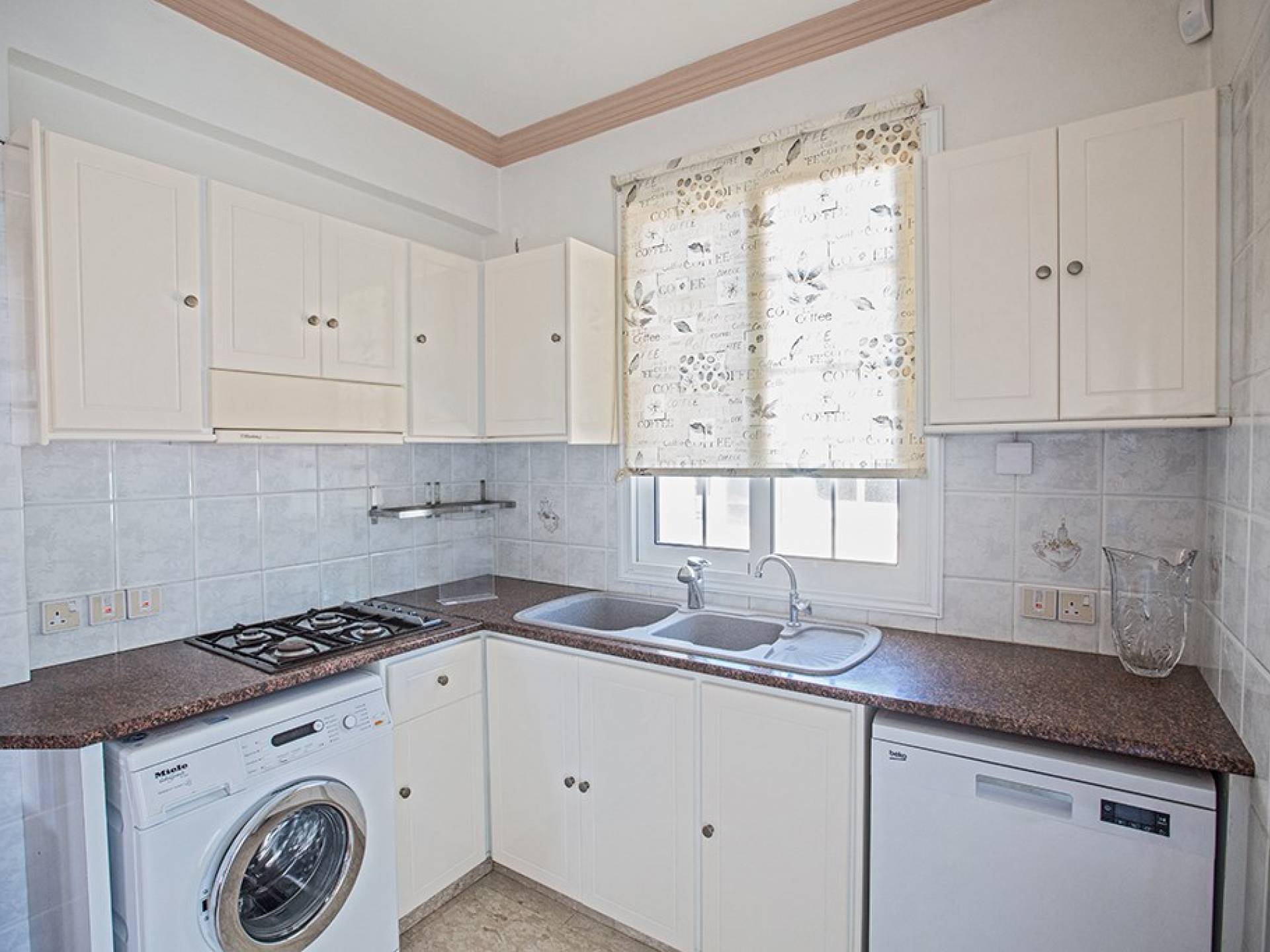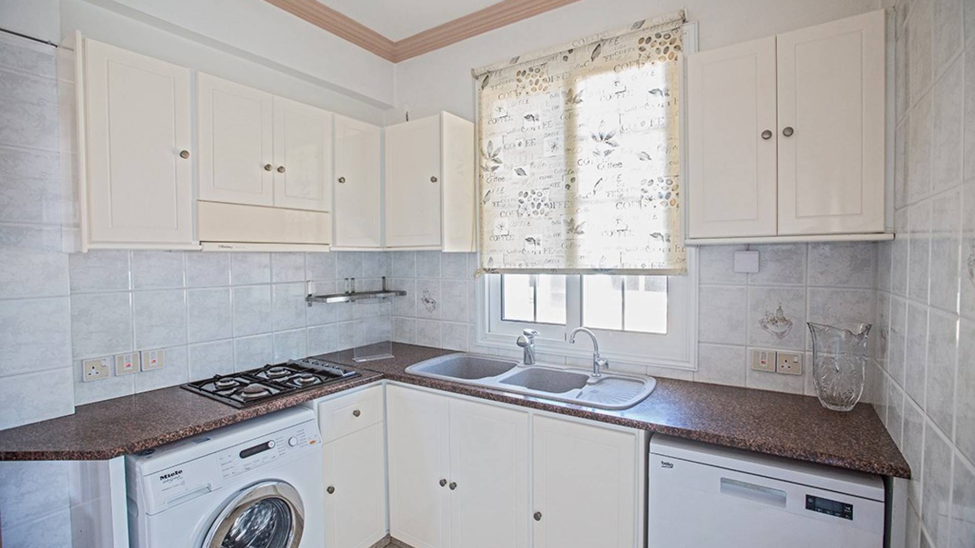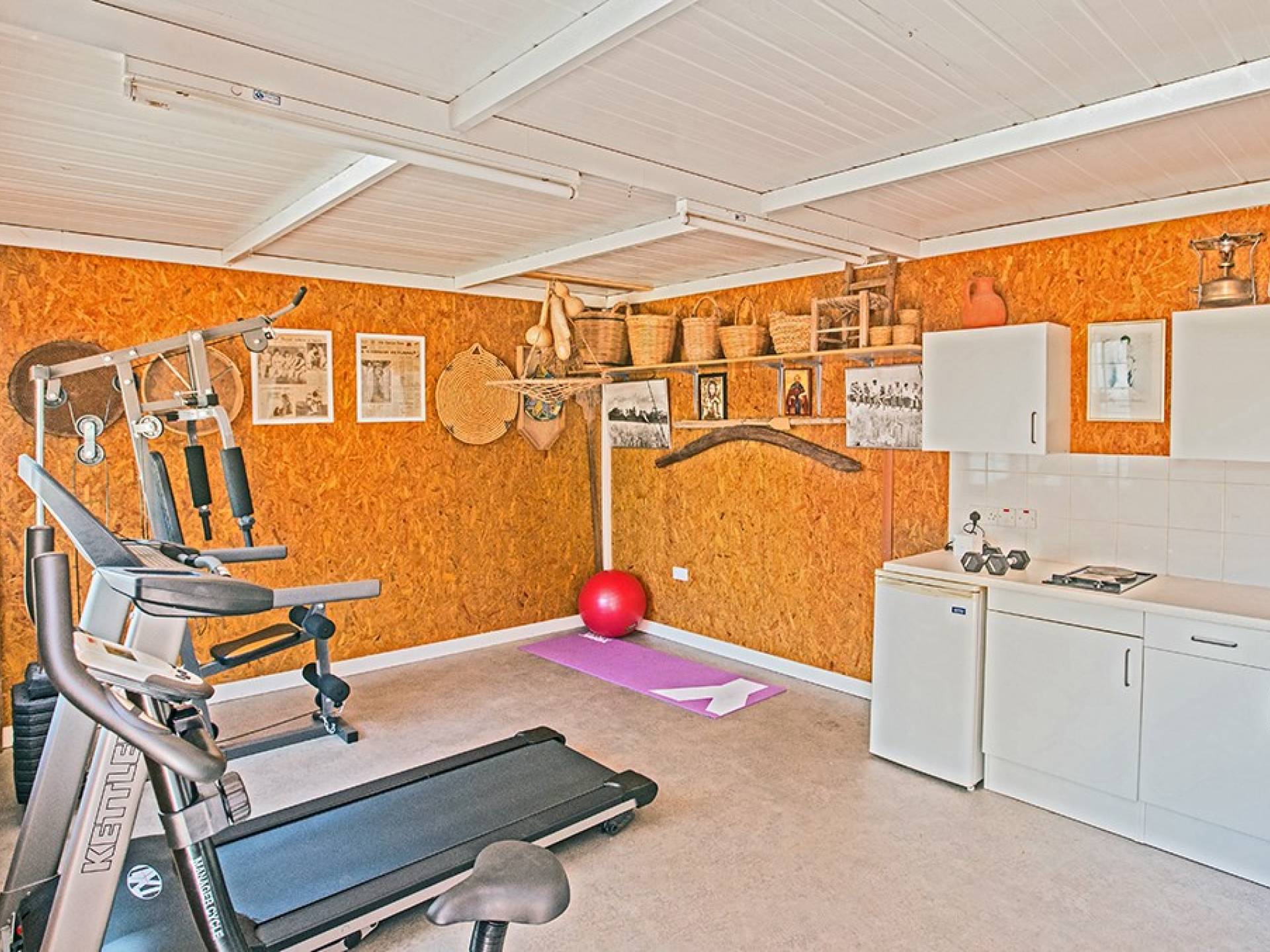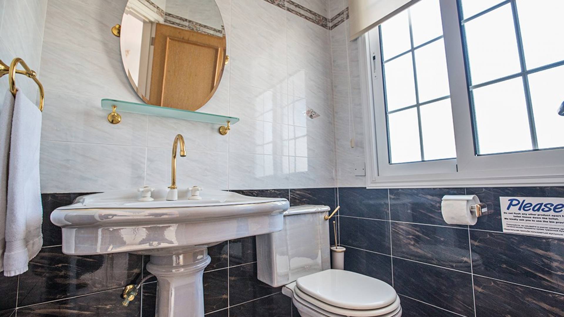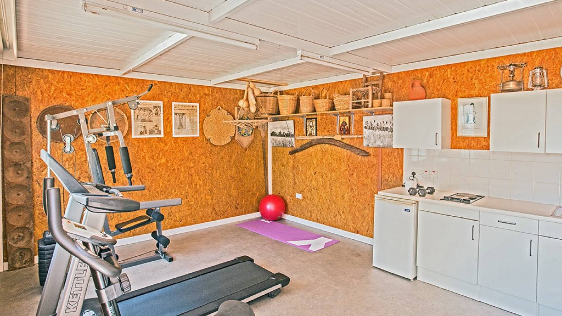 Du hall spacieux de la villa principale se trouve la salle de réception ouverte donnant sur une grande véranda, une cuisine/salle à manger entièrement aménagée et équipée avec un réfrigérateur/congélateur de style américain, un four électrique, un four micro-ondes, une plaque de cuisson et une hotte aspirante . La machine à laver et le lave-vaisselle se trouvent dans la buanderie, à côté de la cuisine. En plus d'un vestiaire, le rez-de-chaussée dispose également de sa propre salle de sport.