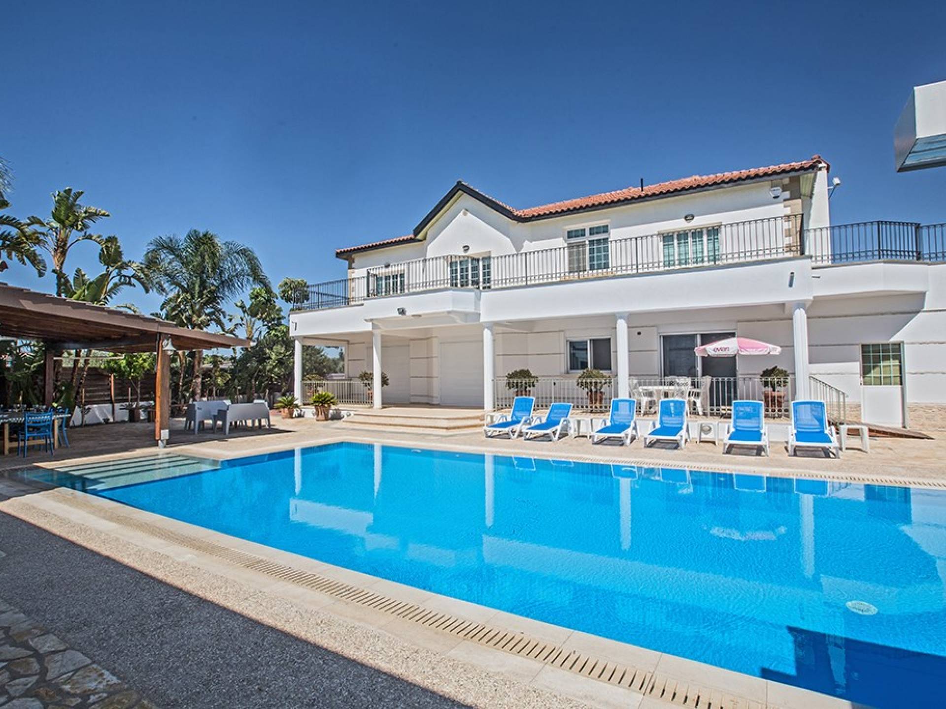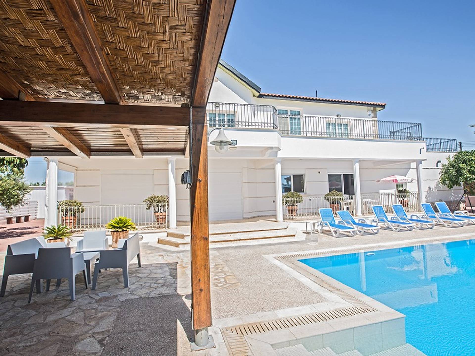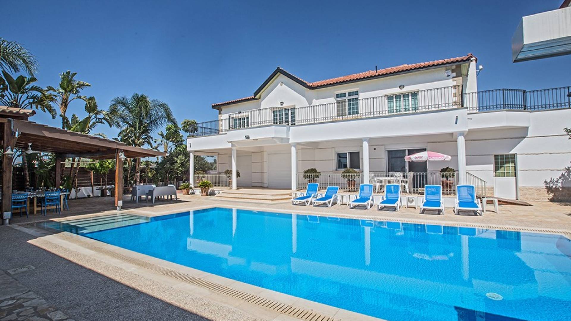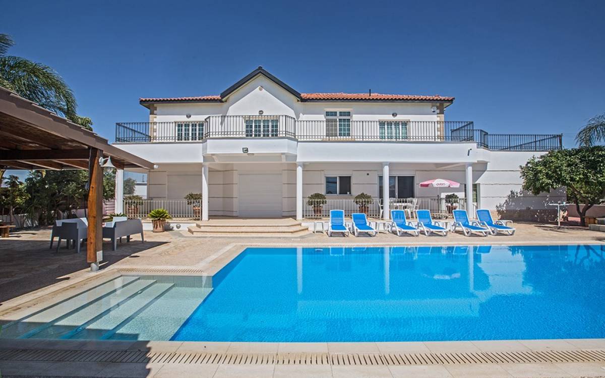 Villa Ethereal Protaras est une location de villa de luxe avec 5 chambres et une piscine privée. Située dans un quartier prestigieux, à la périphérie de la ville de Paralimni et à quelques minutes en voiture des stations balnéaires renommées de Protaras et d'Ayia Napa, cette grande villa constitue une location de vacances idéale. Avec quatre chambres dans la maison principale et une dans une annexe séparée, la propriété est parfaite pour ceux qui souhaitent passer du temps avec leur famille et leurs amis dans un cadre spacieux et relaxant.