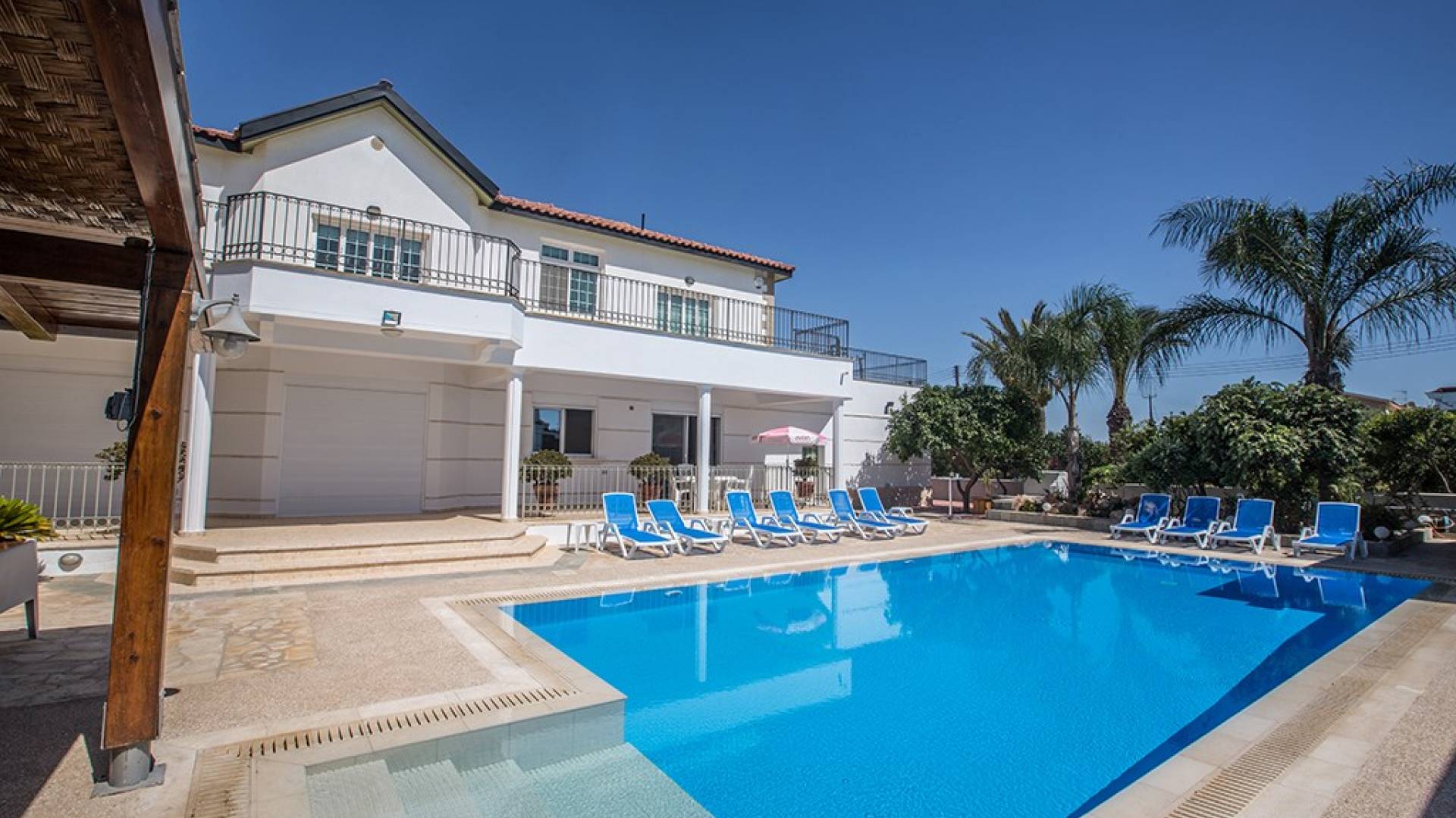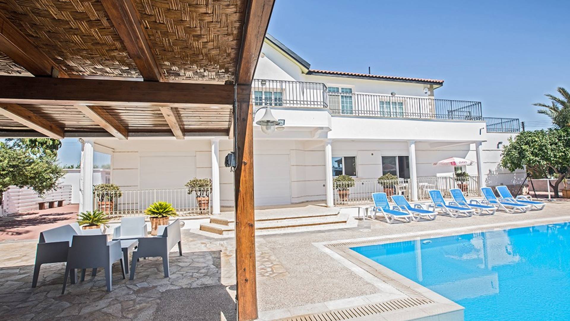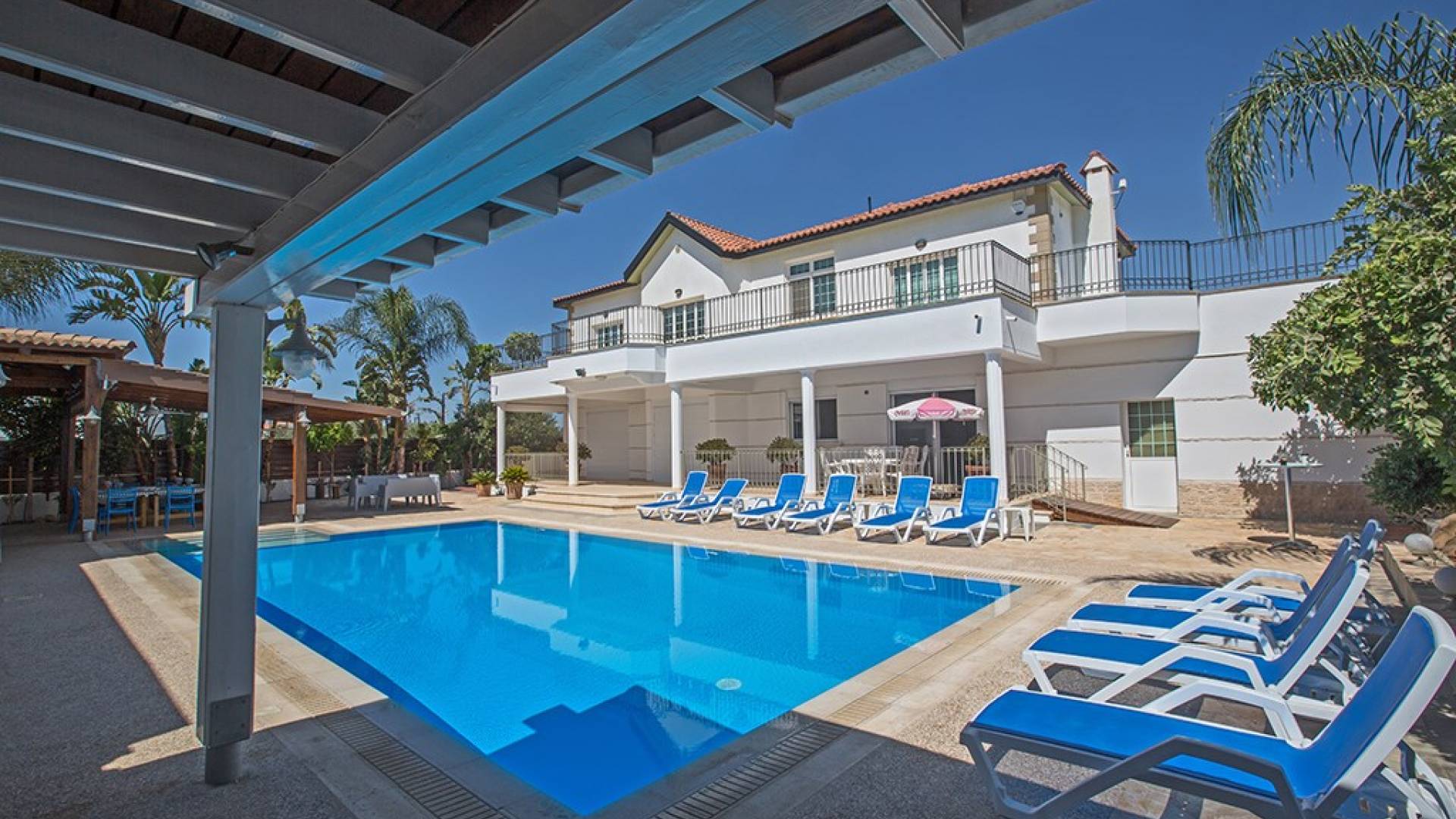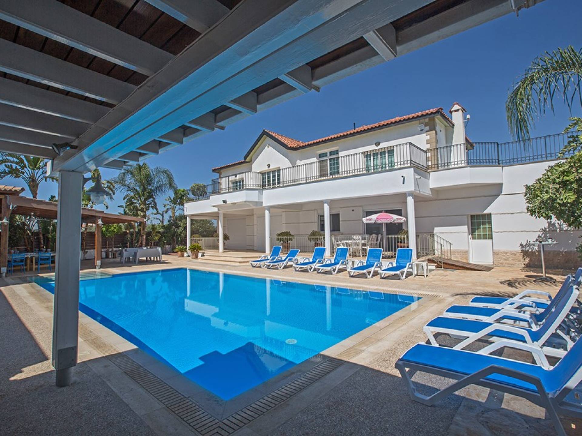 Villa Ethereal Protaras est une location de villa de luxe avec 5 chambres et une piscine privée. Située dans un quartier prestigieux, à la périphérie de la ville de Paralimni et à quelques minutes en voiture des stations balnéaires renommées de Protaras et d'Ayia Napa, cette grande villa constitue une location de vacances idéale. Avec quatre chambres dans la maison principale et une dans une annexe séparée, la propriété est parfaite pour ceux qui souhaitent passer du temps avec leur famille et leurs amis dans un cadre spacieux et relaxant.