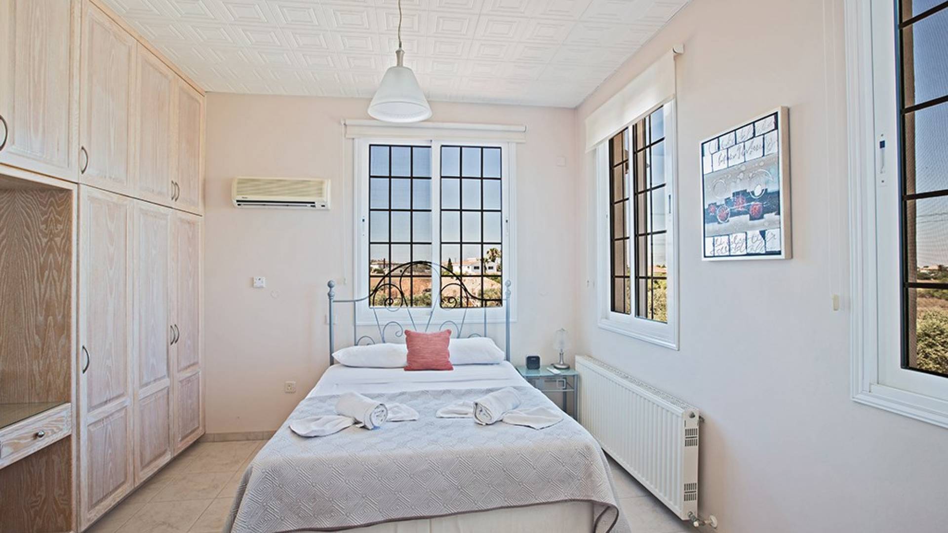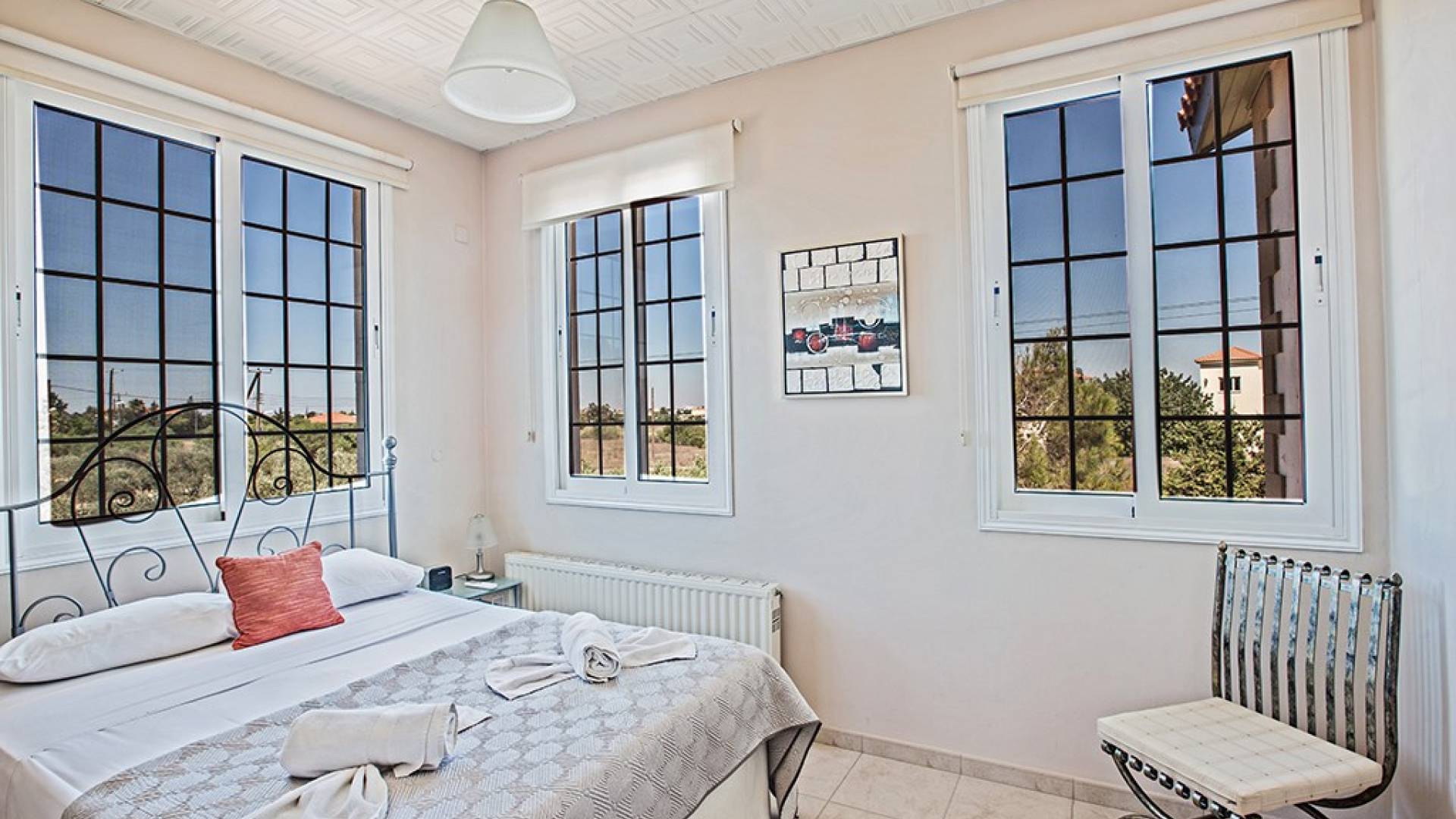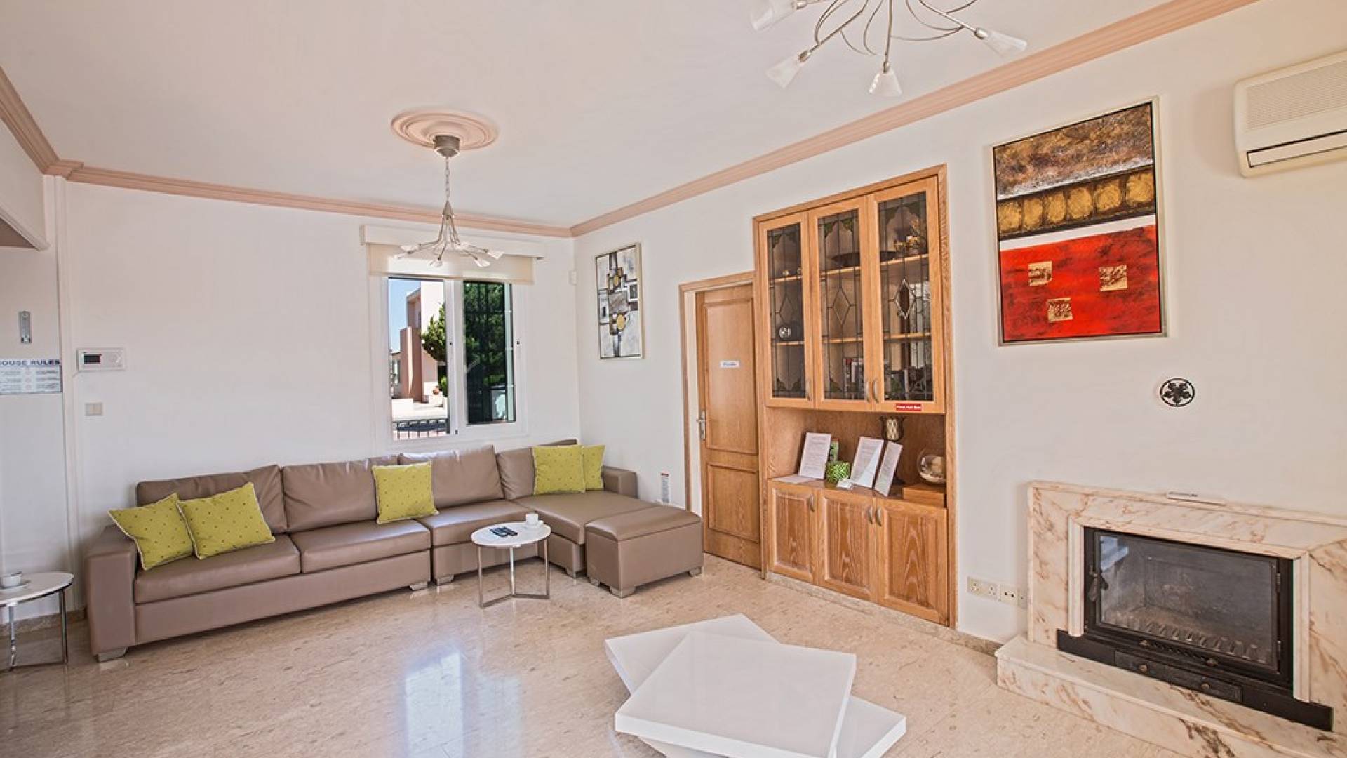 Kokkinos Gremmos (Red Hill), à 1,6 km, est idéal pour les randonneurs et les cyclistes enthousiastes. Respirez l'air frais et profitez des vues spectaculaires sur Ayia Napa, le cap Greco, Paralimni et la baie de Famagouste. La villa est située sur une route très calme avec vue sur les collines et les champs environnants. Il est situé sur un terrain de 1250 mètres carrés avec un grand parking et est entouré d'oliviers et de grenadiers d'un côté et d'une variété d'arbres fruitiers de l'autre.
