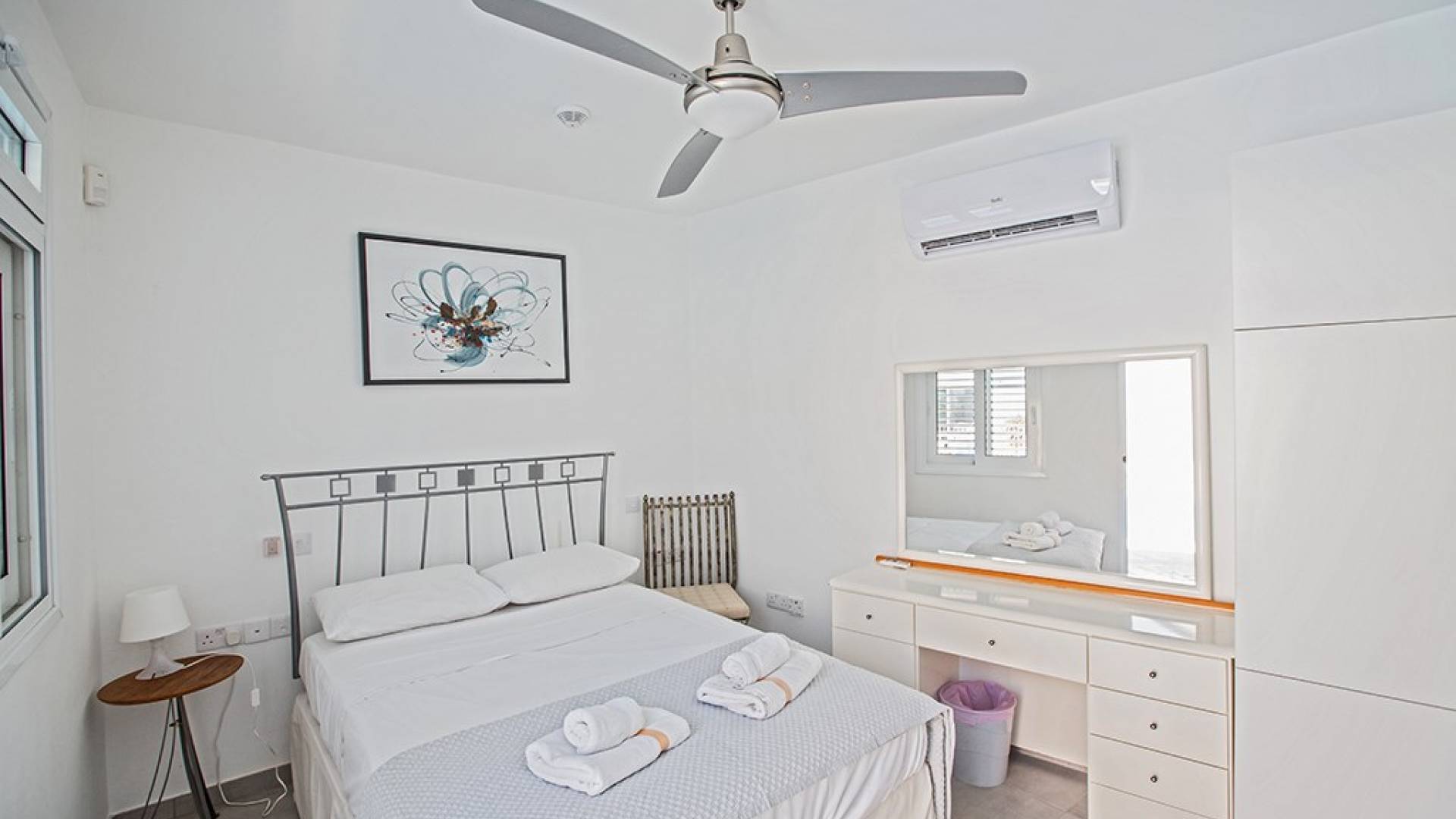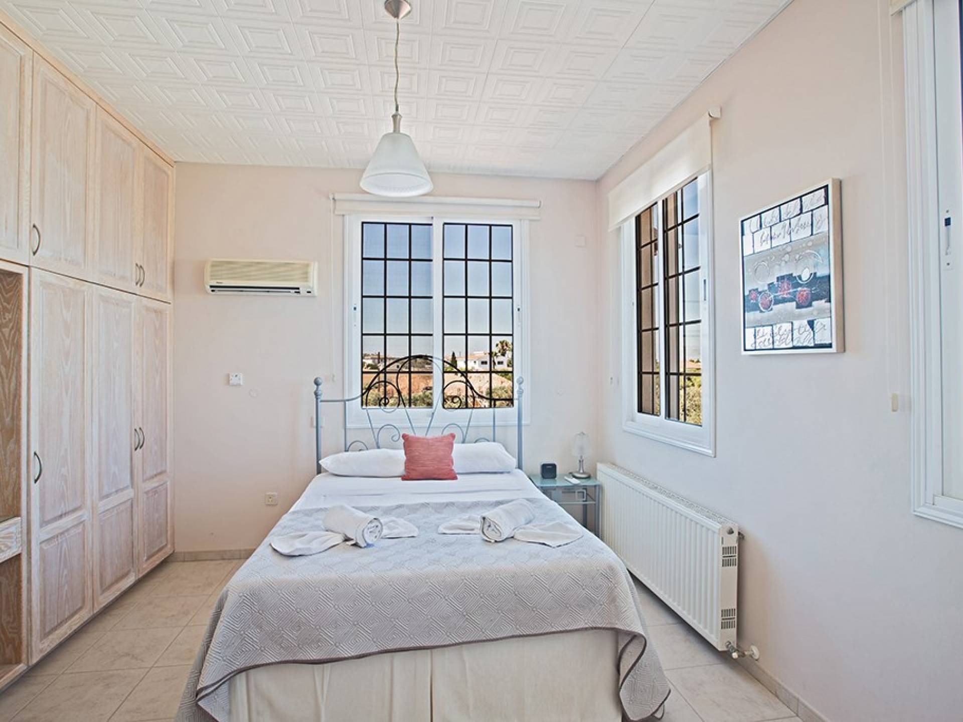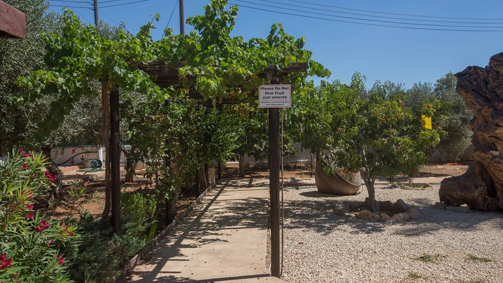 Kokkinos Gremmos (Red Hill), à 1,6 km, est idéal pour les randonneurs et les cyclistes enthousiastes. Respirez l'air frais et profitez des vues spectaculaires sur Ayia Napa, le cap Greco, Paralimni et la baie de Famagouste. La villa est située sur une route très calme avec vue sur les collines et les champs environnants. Il est situé sur un terrain de 1250 mètres carrés avec un grand parking et est entouré d'oliviers et de grenadiers d'un côté et d'une variété d'arbres fruitiers de l'autre.