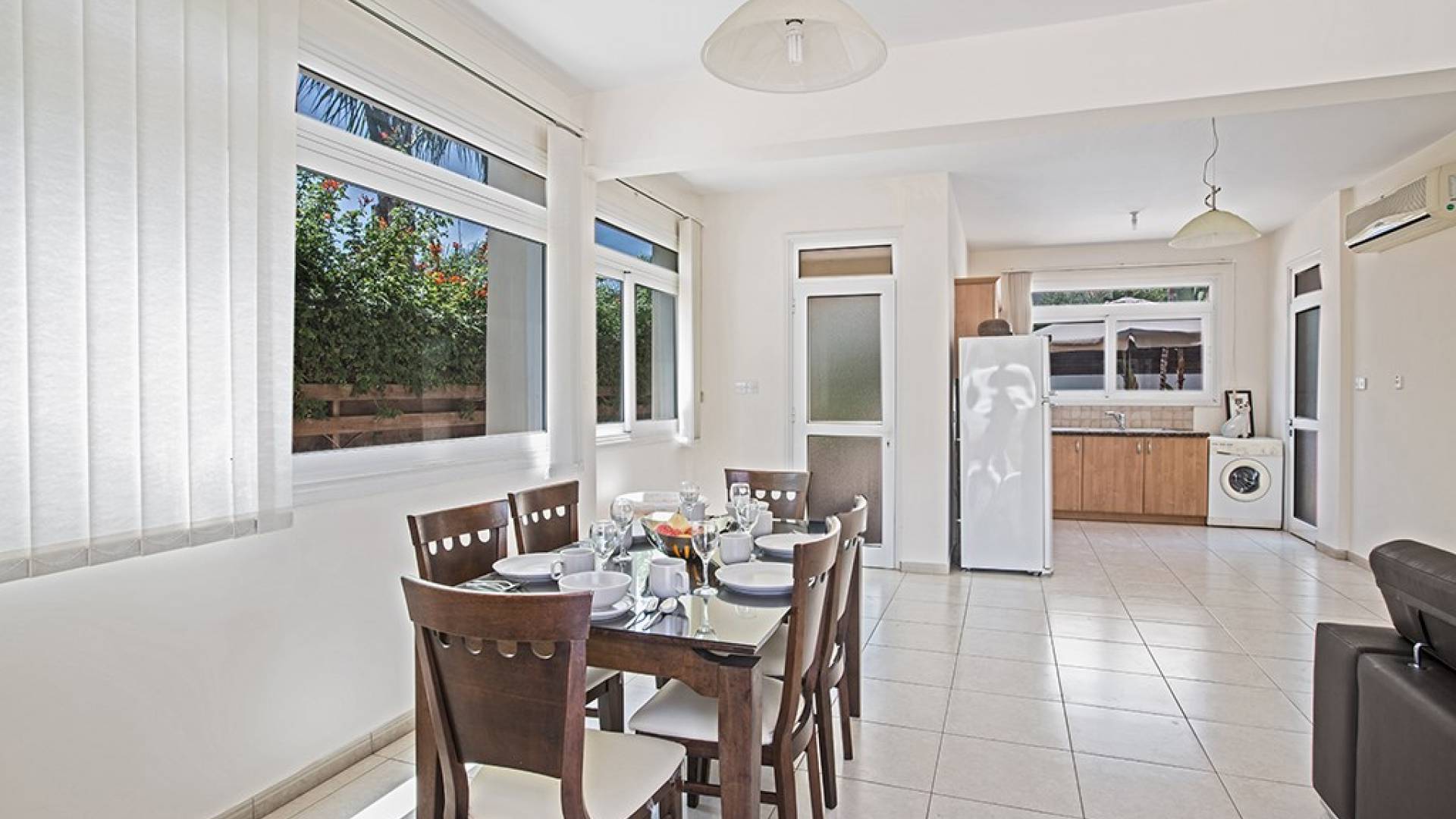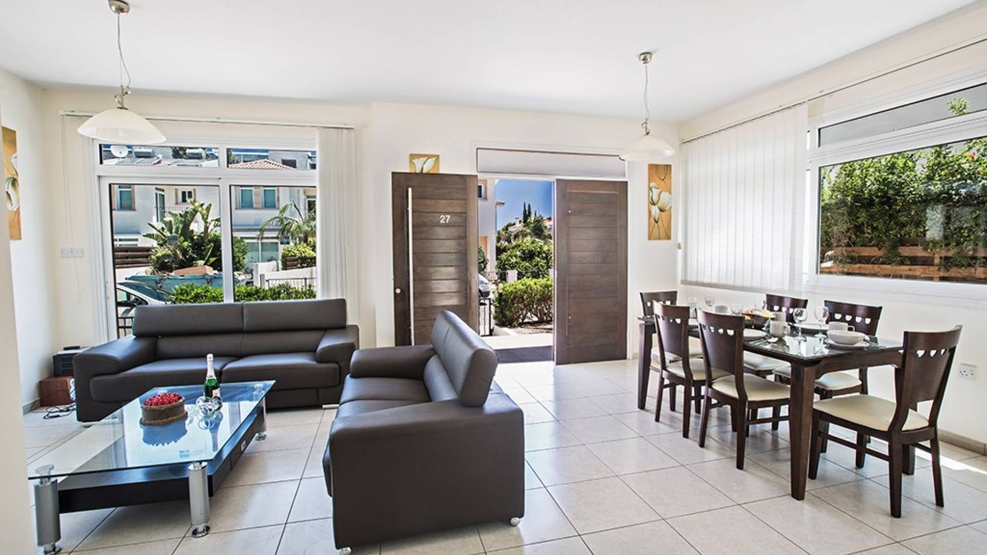 A l'intérieur, la villa est joliment meublée avec une décoration moderne. Le rez-de-chaussée comprend un coin salon décloisonné, un coin repas et une cuisine entièrement équipée. Il y a aussi un W / C.