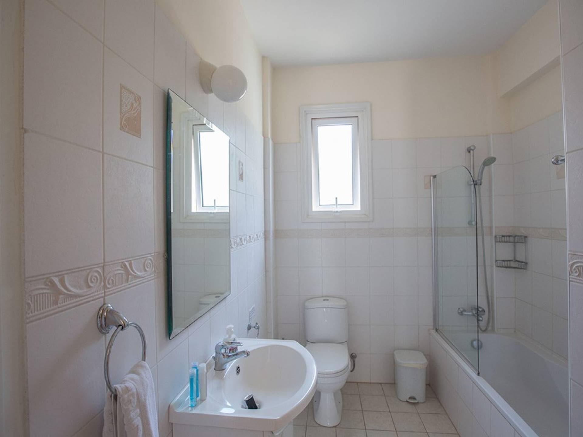 A l'étage, il y a 3 chambres spacieuses. La chambre principale comprend un lit double et une salle de bains privative, une autre chambre double et 2 chambres lits jumeaux. Toutes les chambres ont des armoires encastrées et des tables de chevet. Il y a une salle de bains familiale avec baignoire et douche de tête.