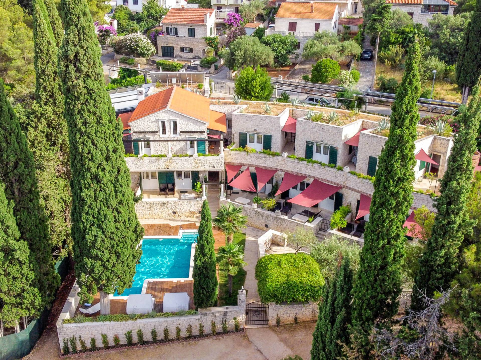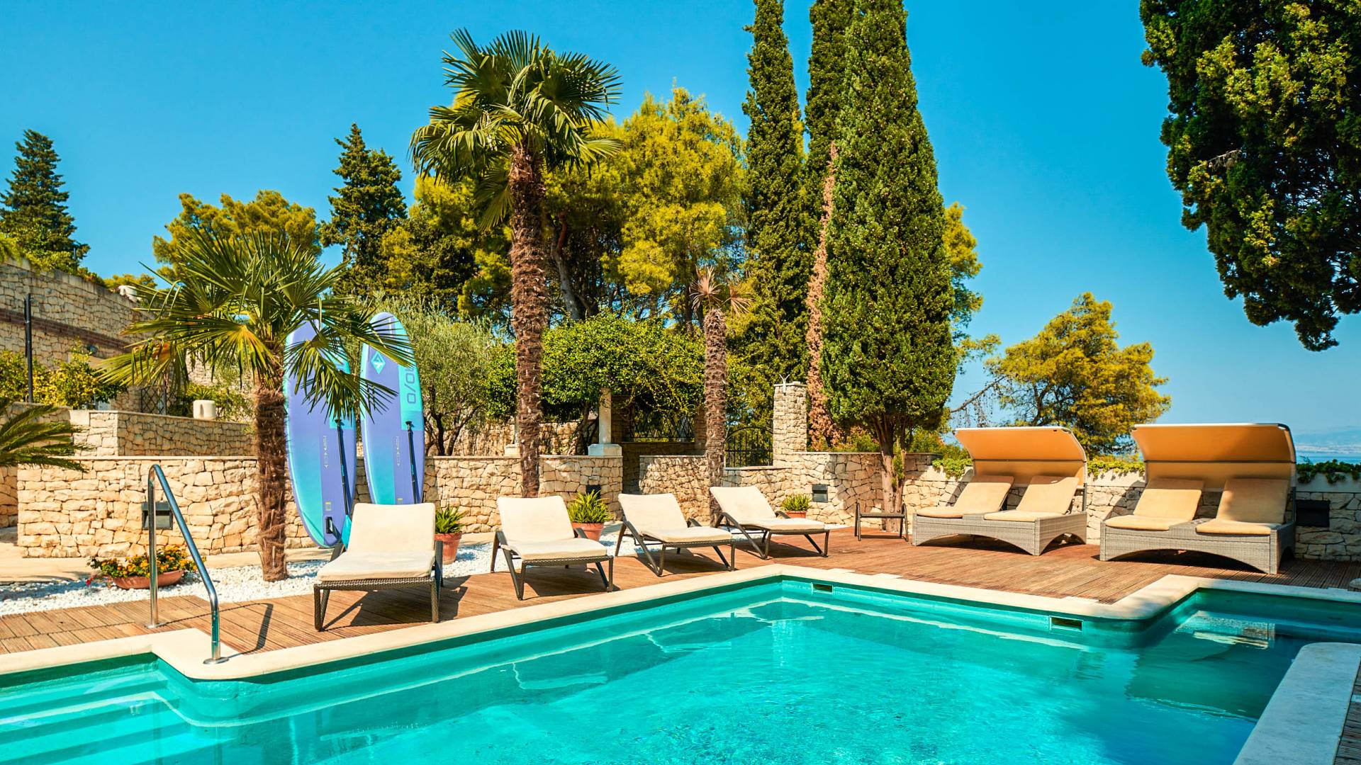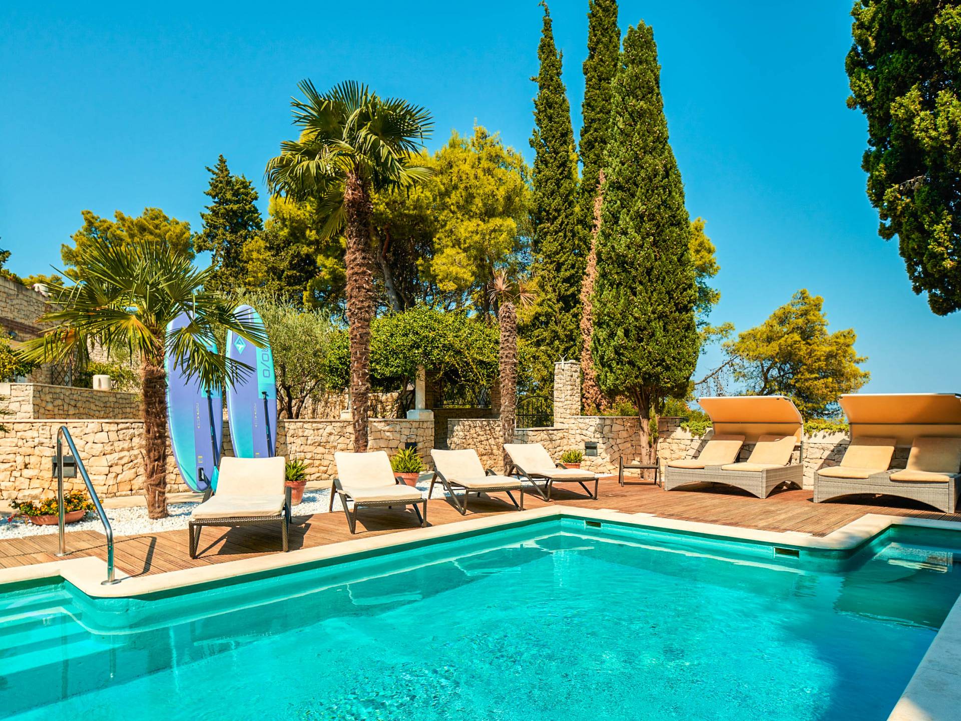 Supetar est le centre de la magnifique île dalmate de Brač qui vous donnera l'impression d'avoir voyagé dans le temps à l'époque de la Rome antique. Ses rues pavées regorgent de restaurants, de tavernes, de bars et de clubs et cachent d'importants monuments culturels et historiques, tels que l'église Sainte-Marie de l'Annonciation avec son magnifique clocher et son musée. Une villa cinq étoiles Royal Garden a ouvert ses portes aux amoureux de la vraie beauté naturelle de l'île de Brač et en quête d'inspiration artistique, ainsi qu'aux hédonistes avides du confort des villas dalmates.