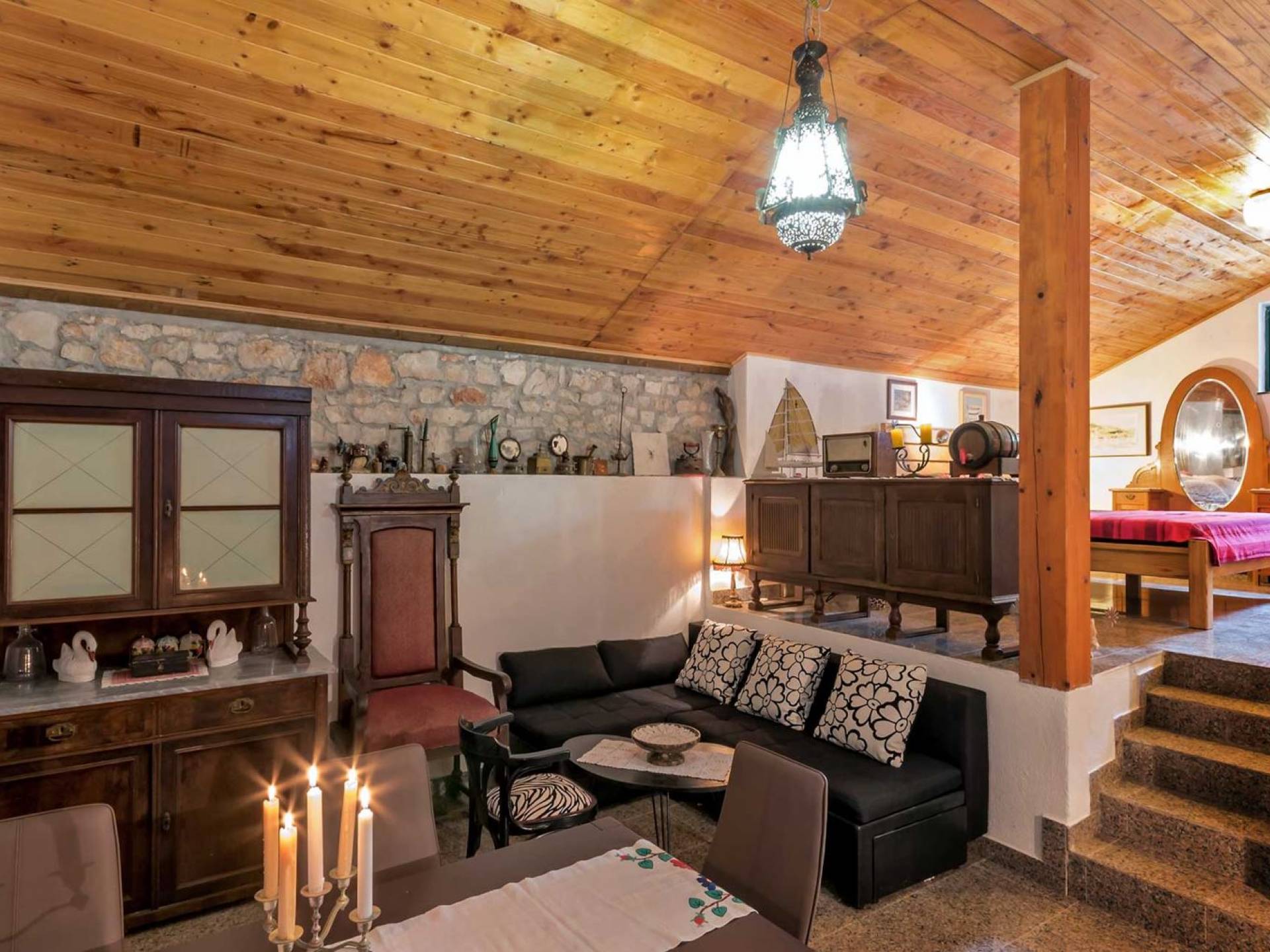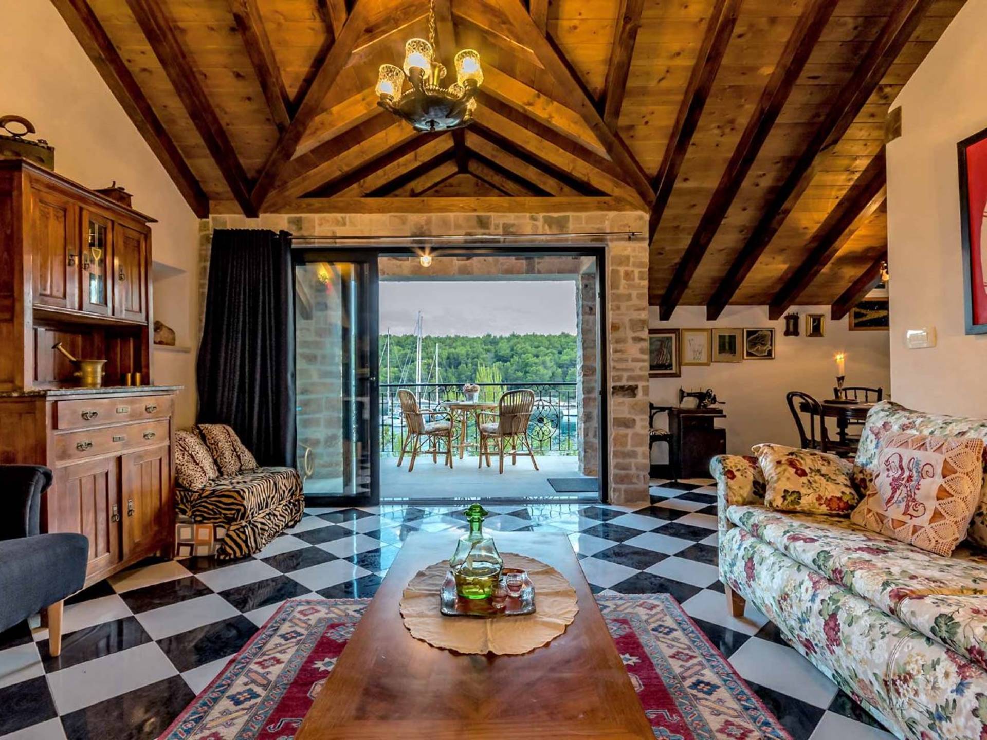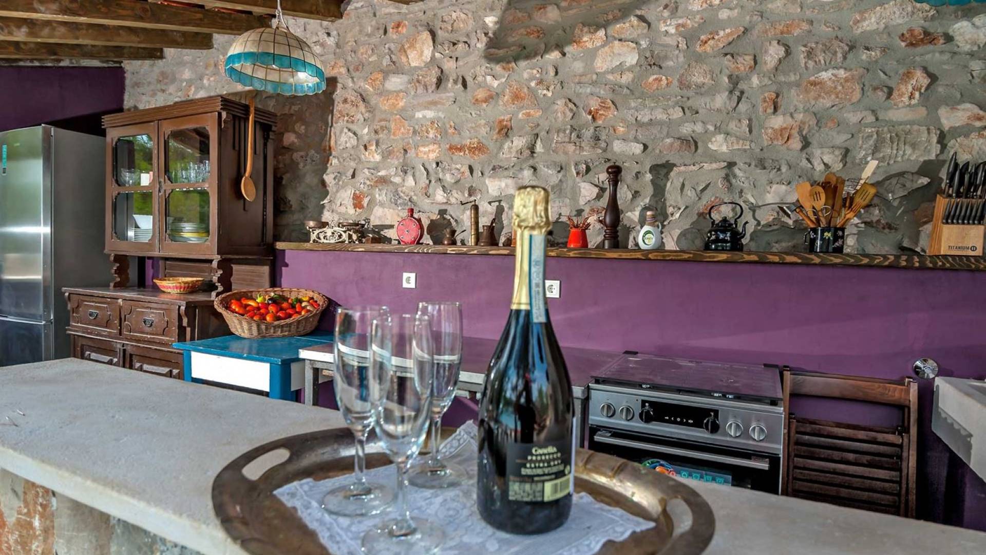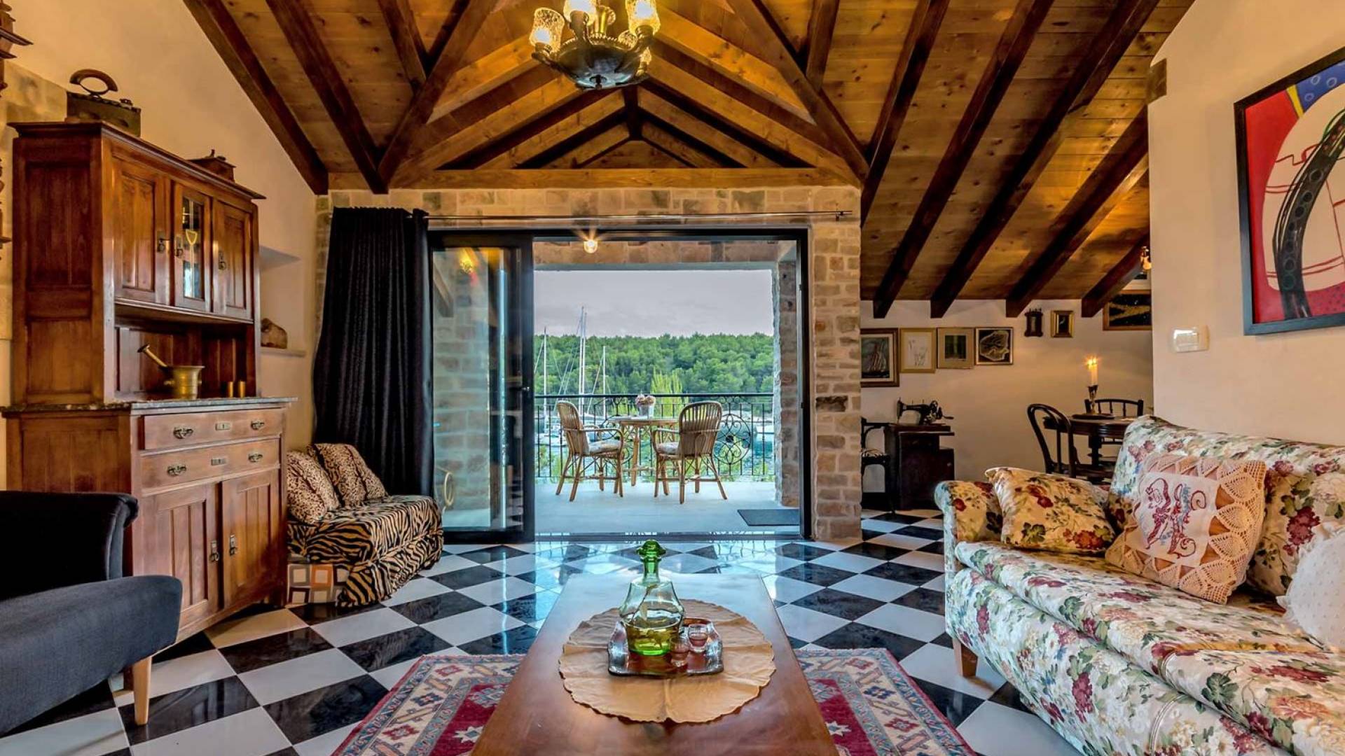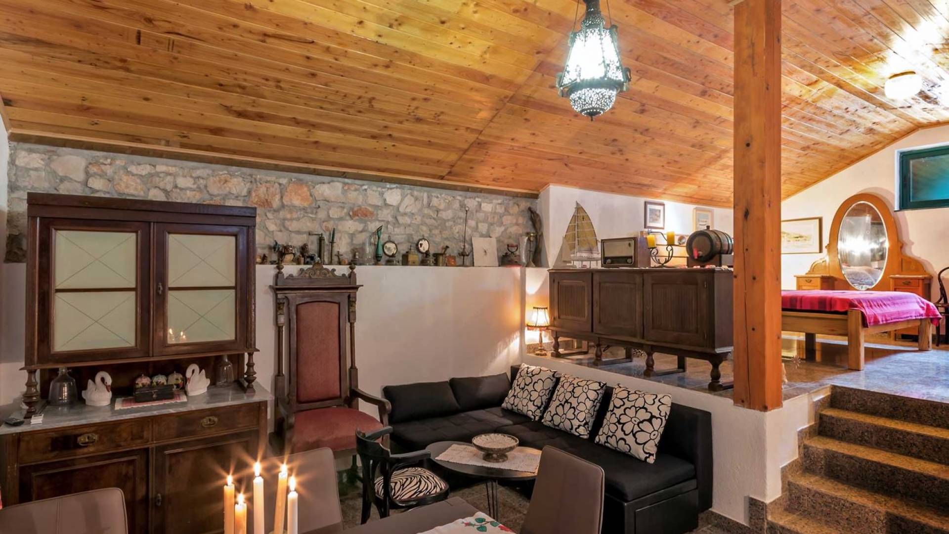 Entrer dans la propriété, c'est un peu comme franchir les portes d'un conte de fées. La Villa Floretta est composée de quatre propriétés distinctes sur un même terrain. Tous les quatre ont été construits avec de la pierre dalmate et se fondent harmonieusement dans l'environnement. Alors que les extérieurs sont traditionnels, l'intérieur est une collection de bon goût de moments intrigants et artistiques, avec une touche de charme éclectique.