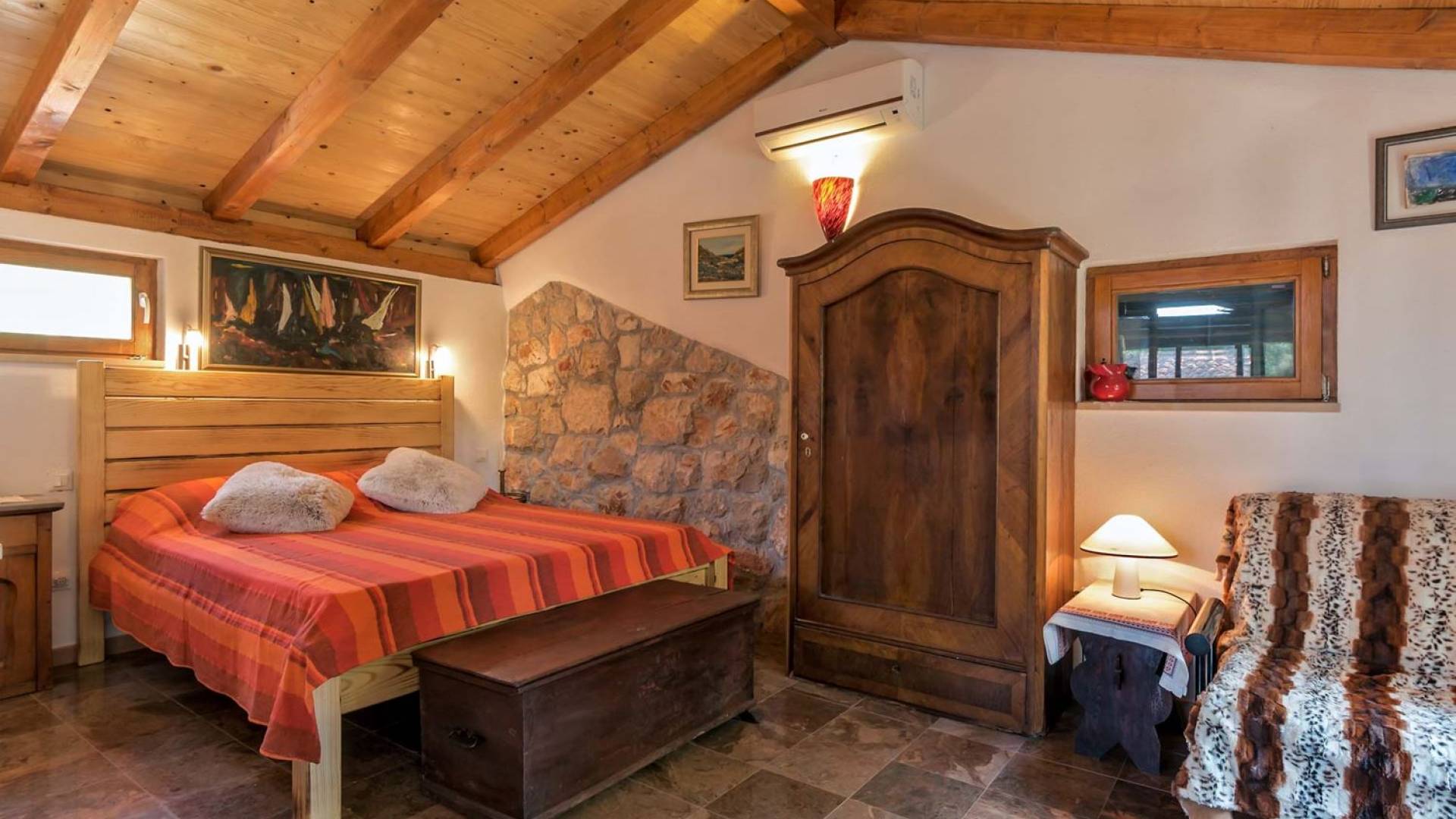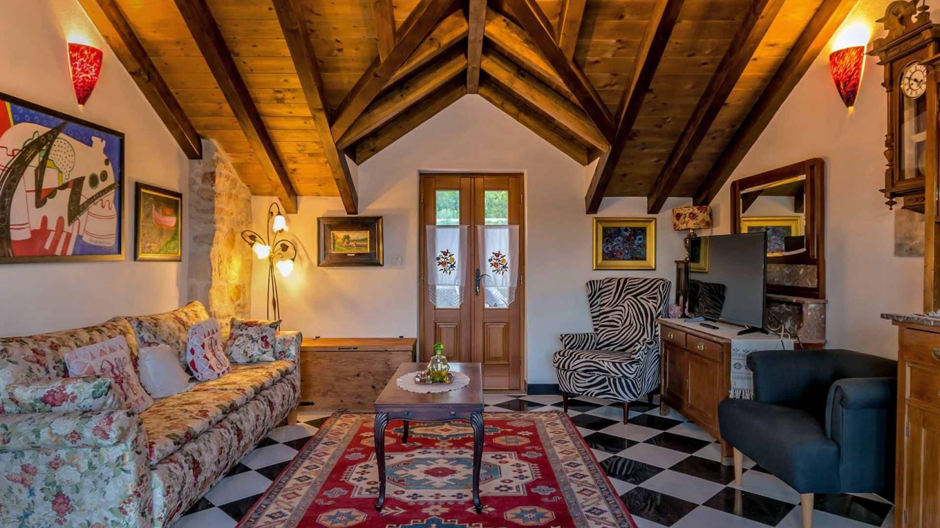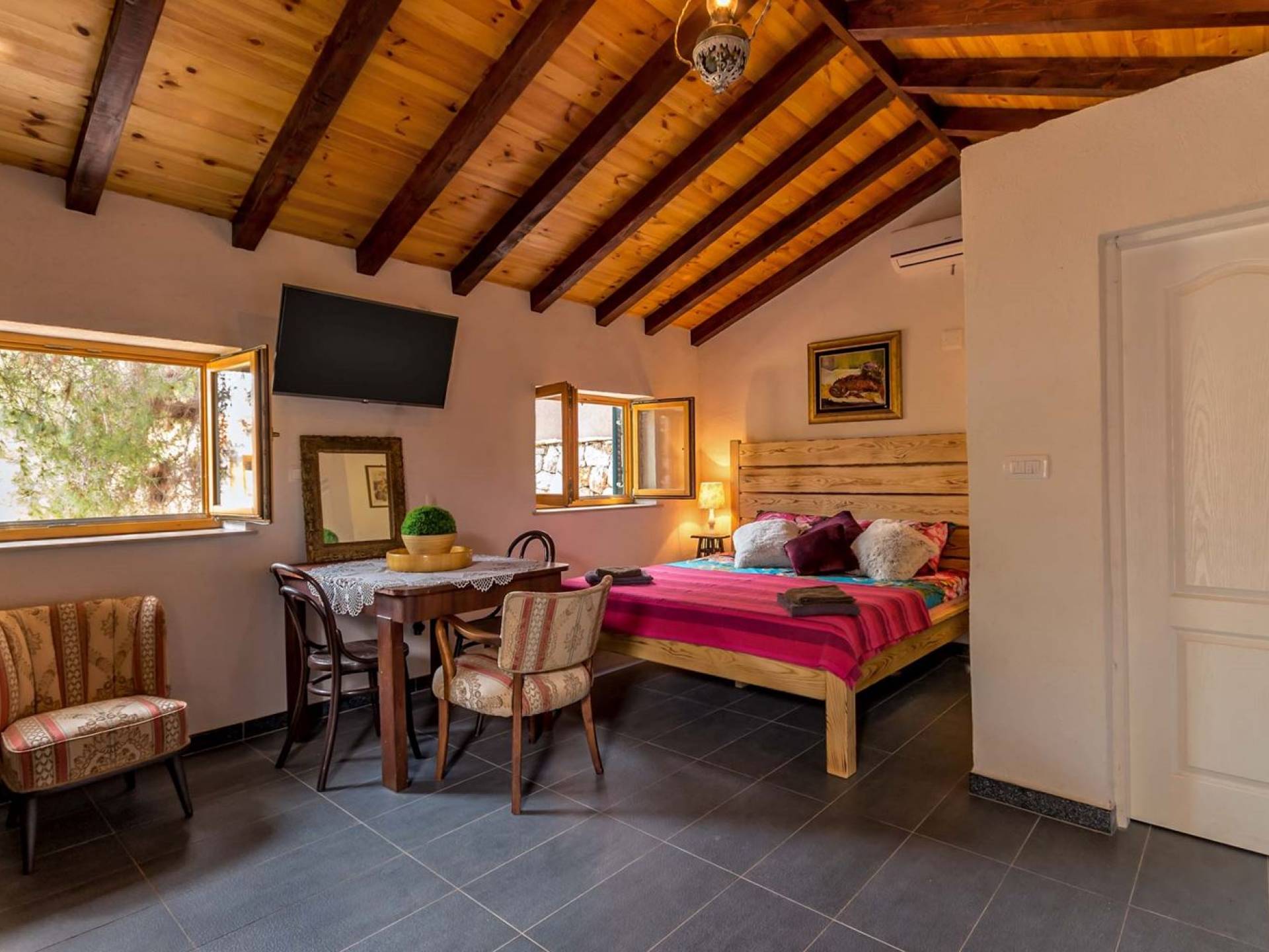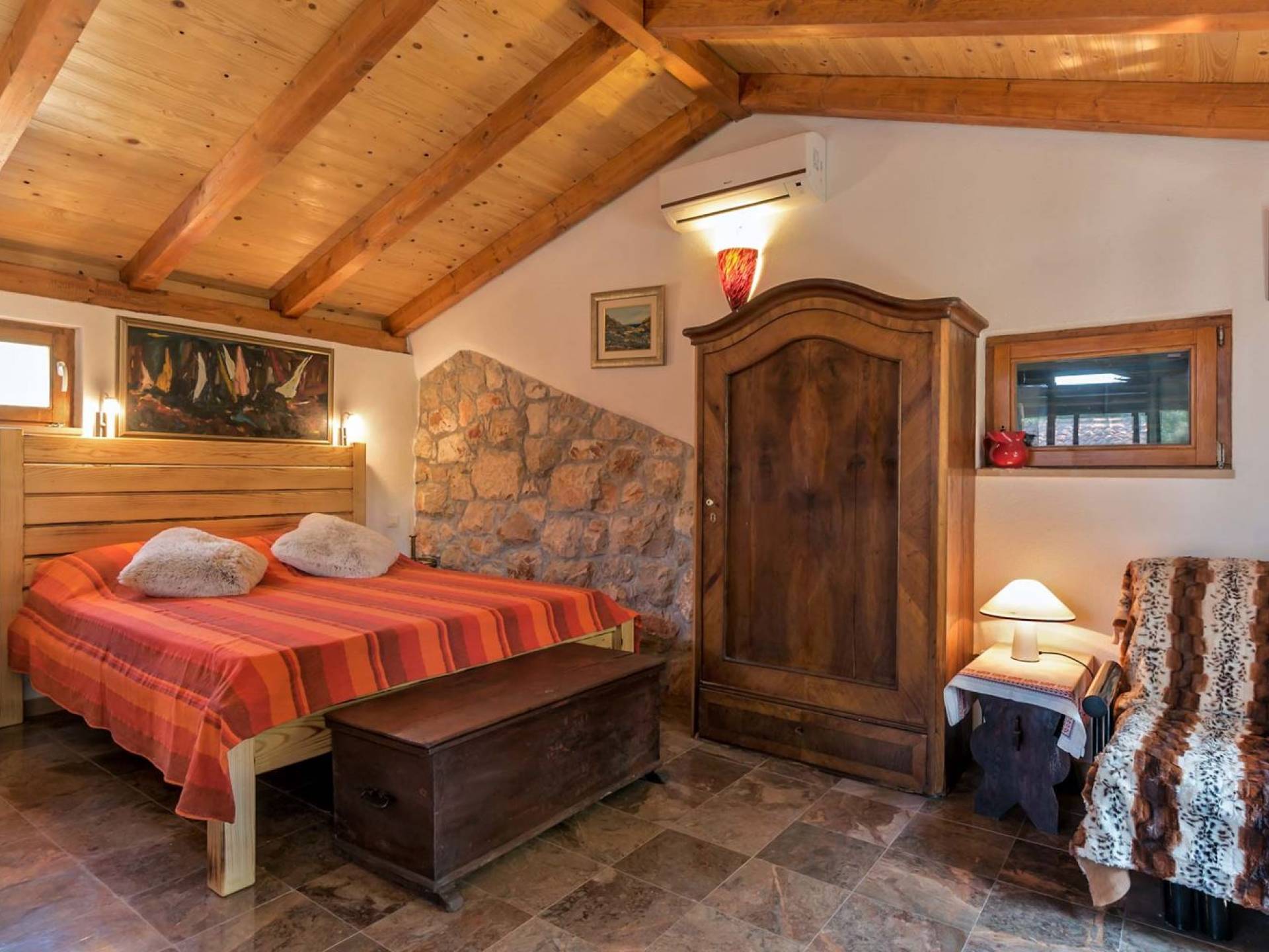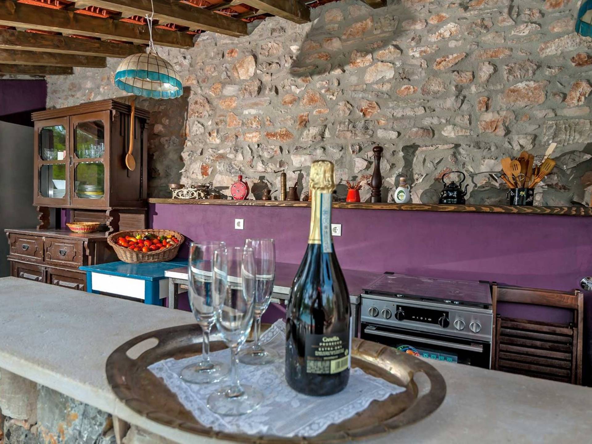Entrer dans la propriété, c'est un peu comme franchir les portes d'un conte de fées. La Villa Floretta est composée de quatre propriétés distinctes sur un même terrain. Tous les quatre ont été construits avec de la pierre dalmate et se fondent harmonieusement dans l'environnement. Alors que les extérieurs sont traditionnels, l'intérieur est une collection de bon goût de moments intrigants et artistiques, avec une touche de charme éclectique.