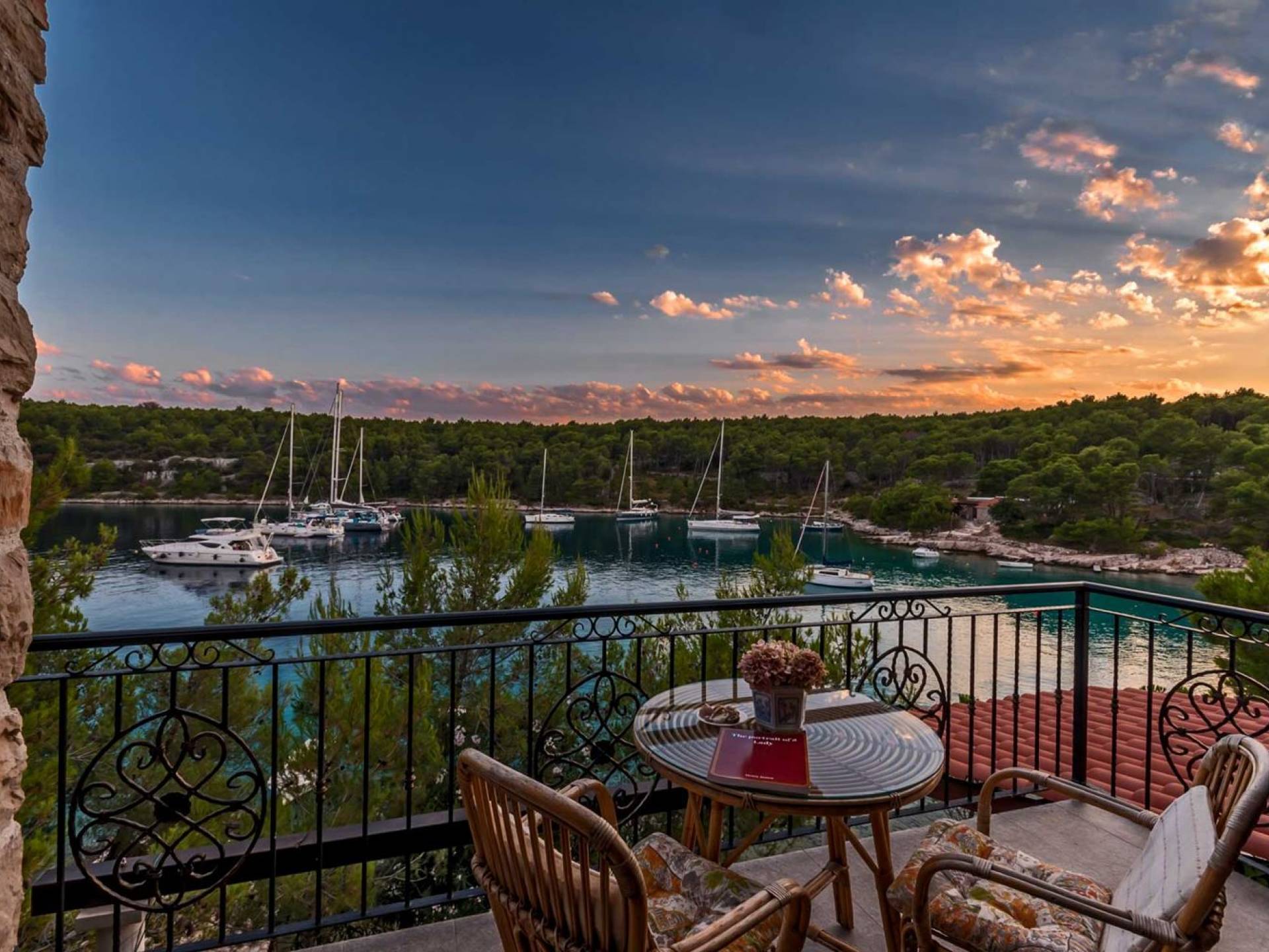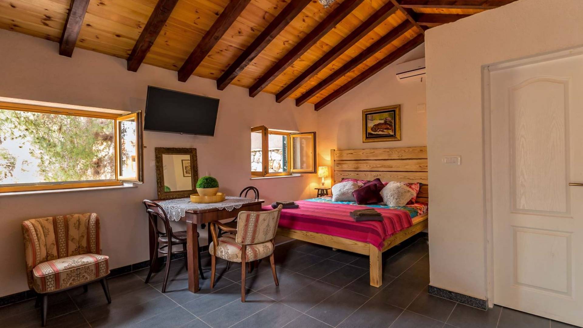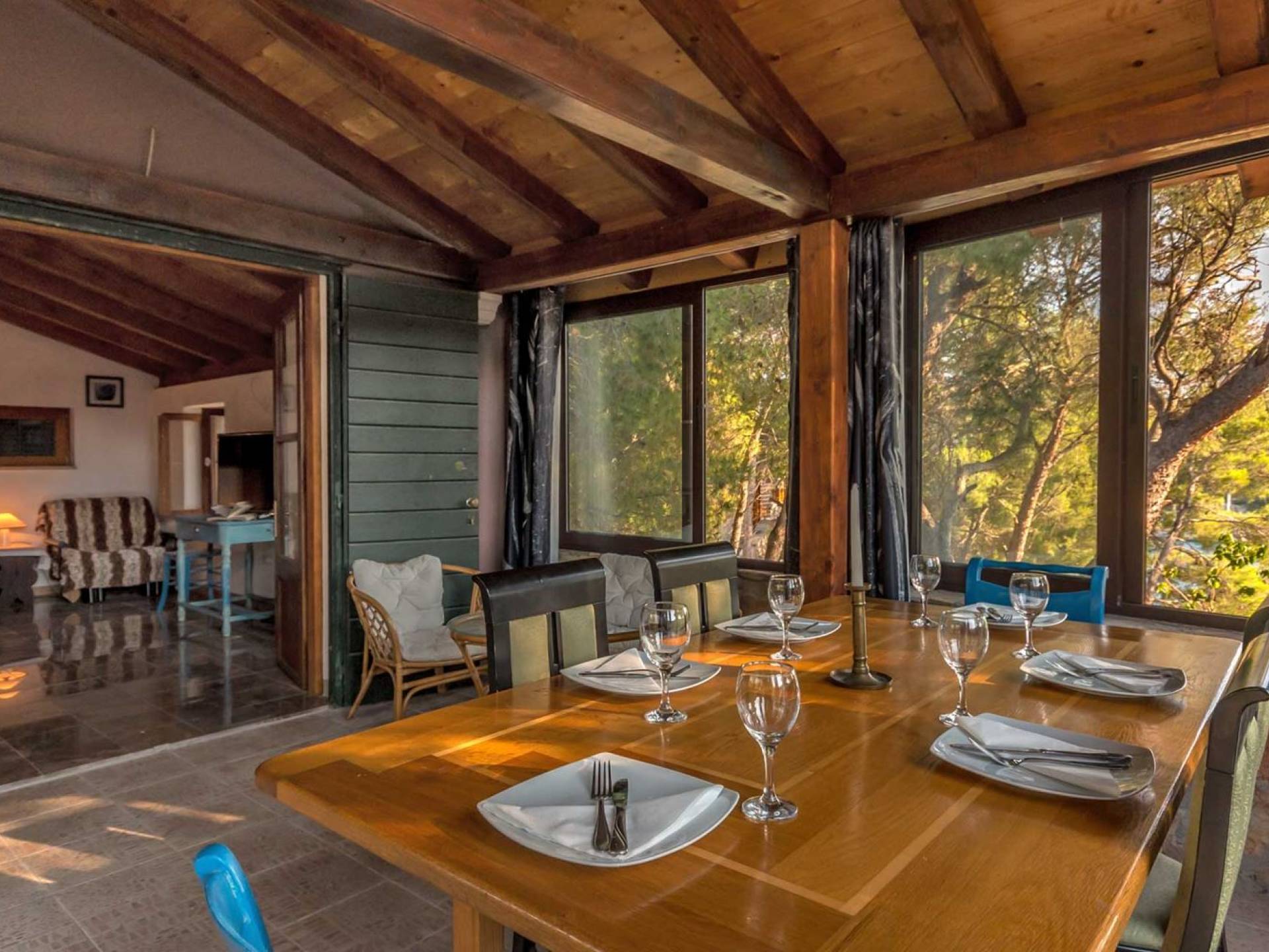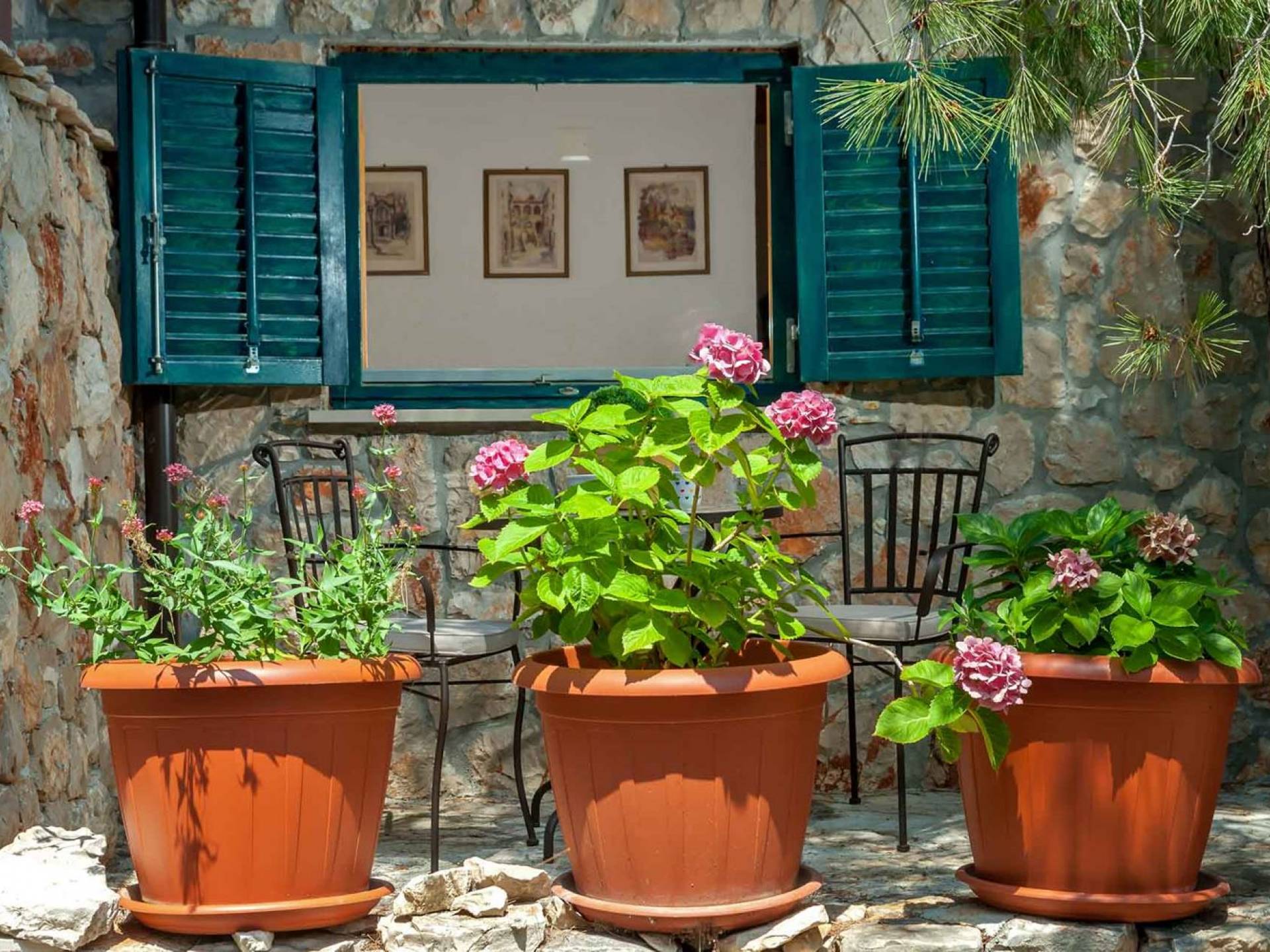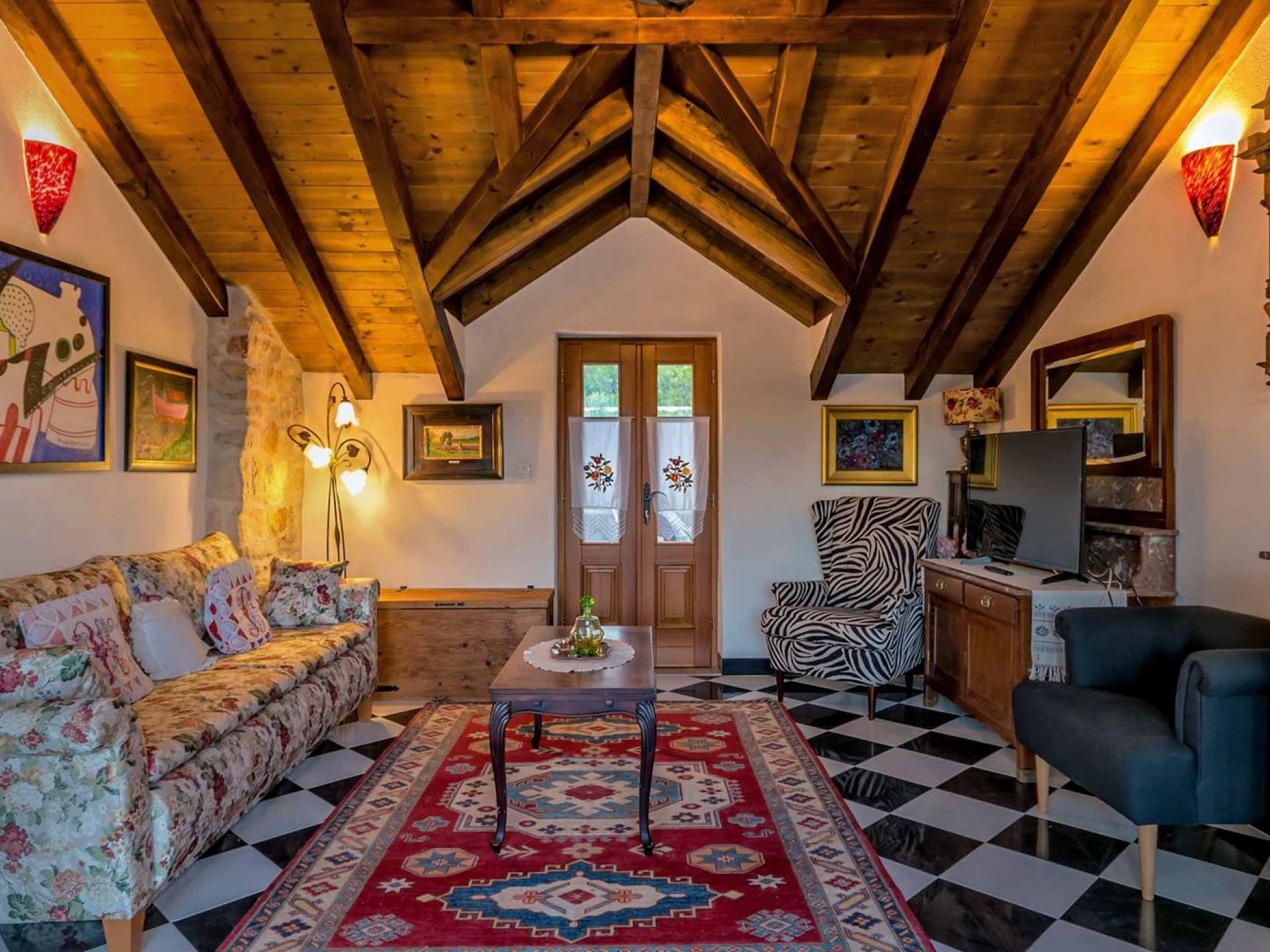 Entrer dans la propriété, c'est un peu comme franchir les portes d'un conte de fées. La Villa Floretta est composée de quatre propriétés distinctes sur un même terrain. Tous les quatre ont été construits avec de la pierre dalmate et se fondent harmonieusement dans l'environnement. Alors que les extérieurs sont traditionnels, l'intérieur est une collection de bon goût de moments intrigants et artistiques, avec une touche de charme éclectique.