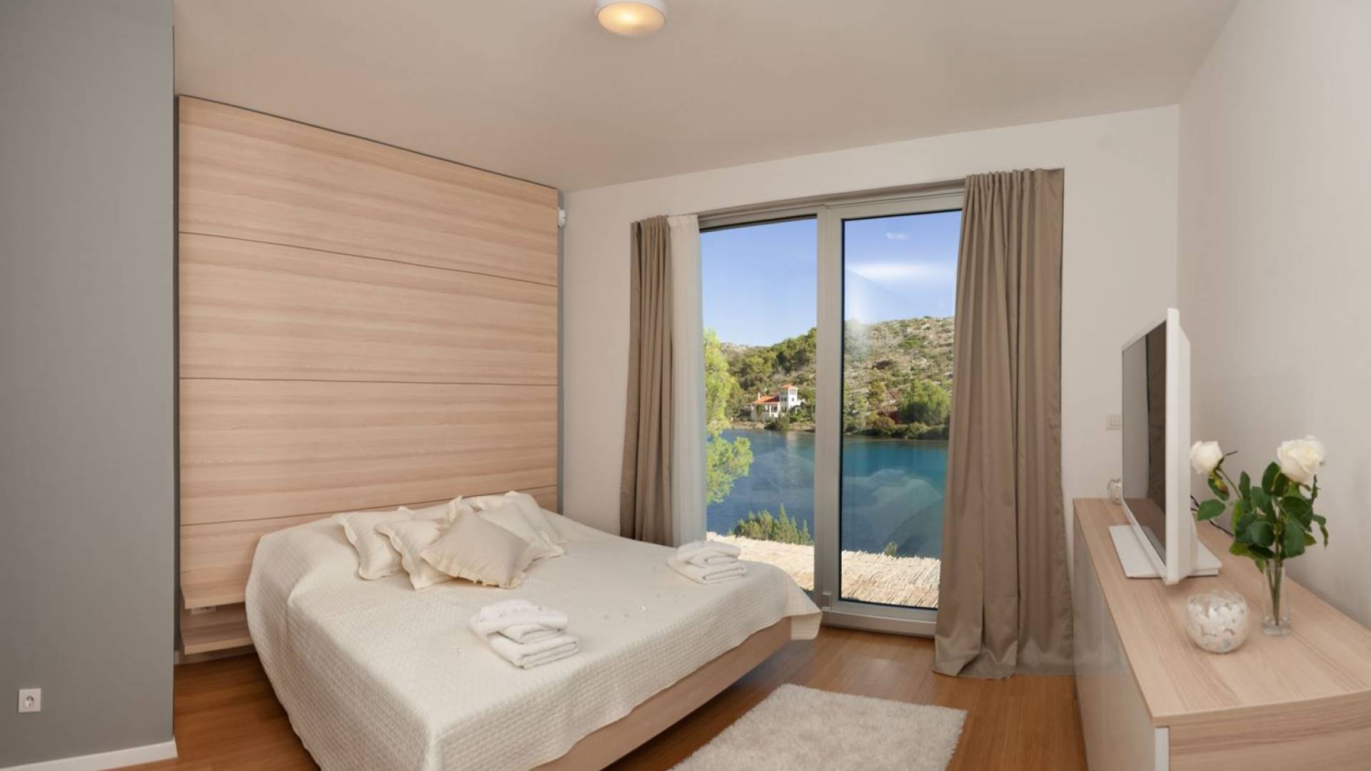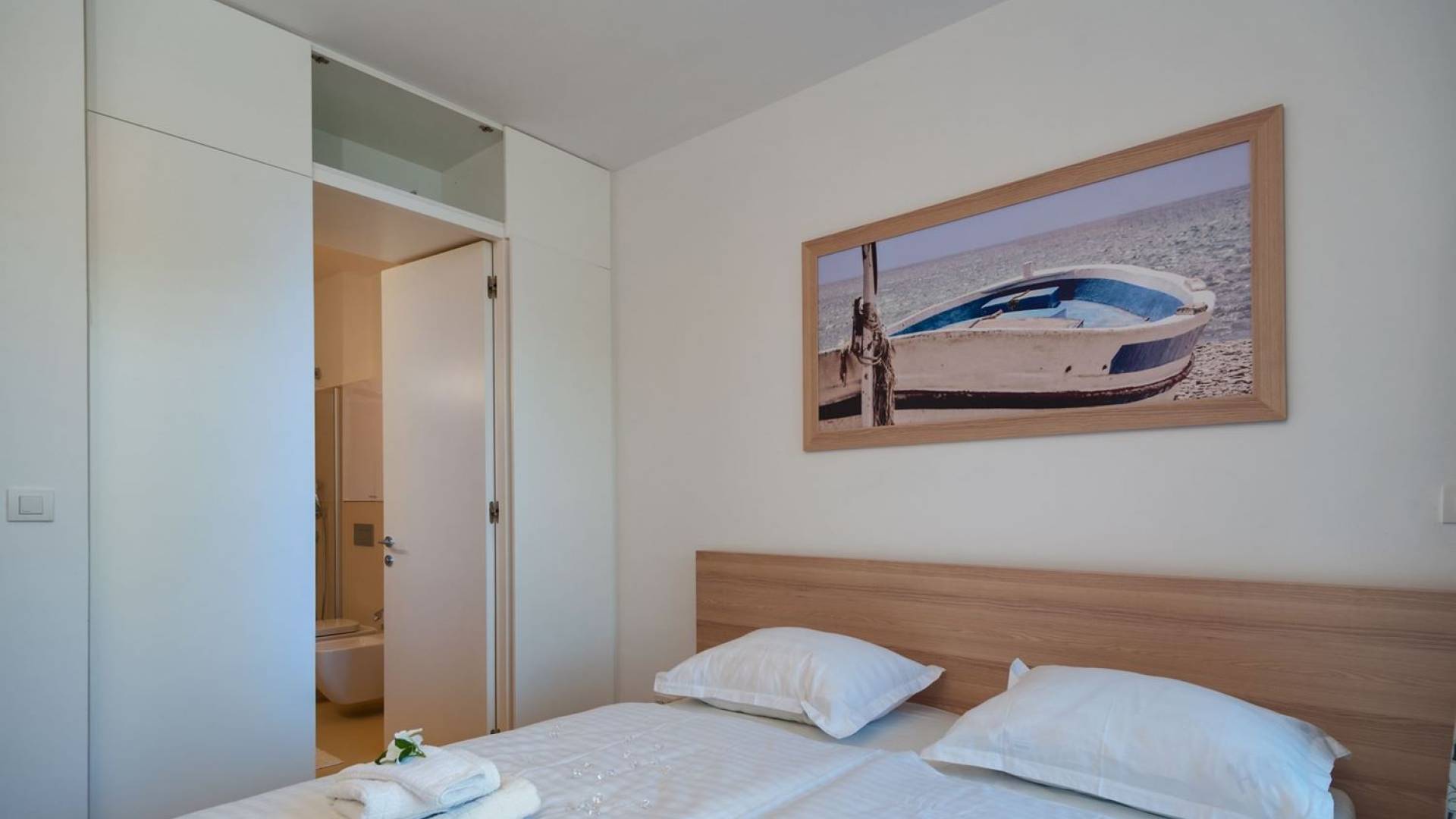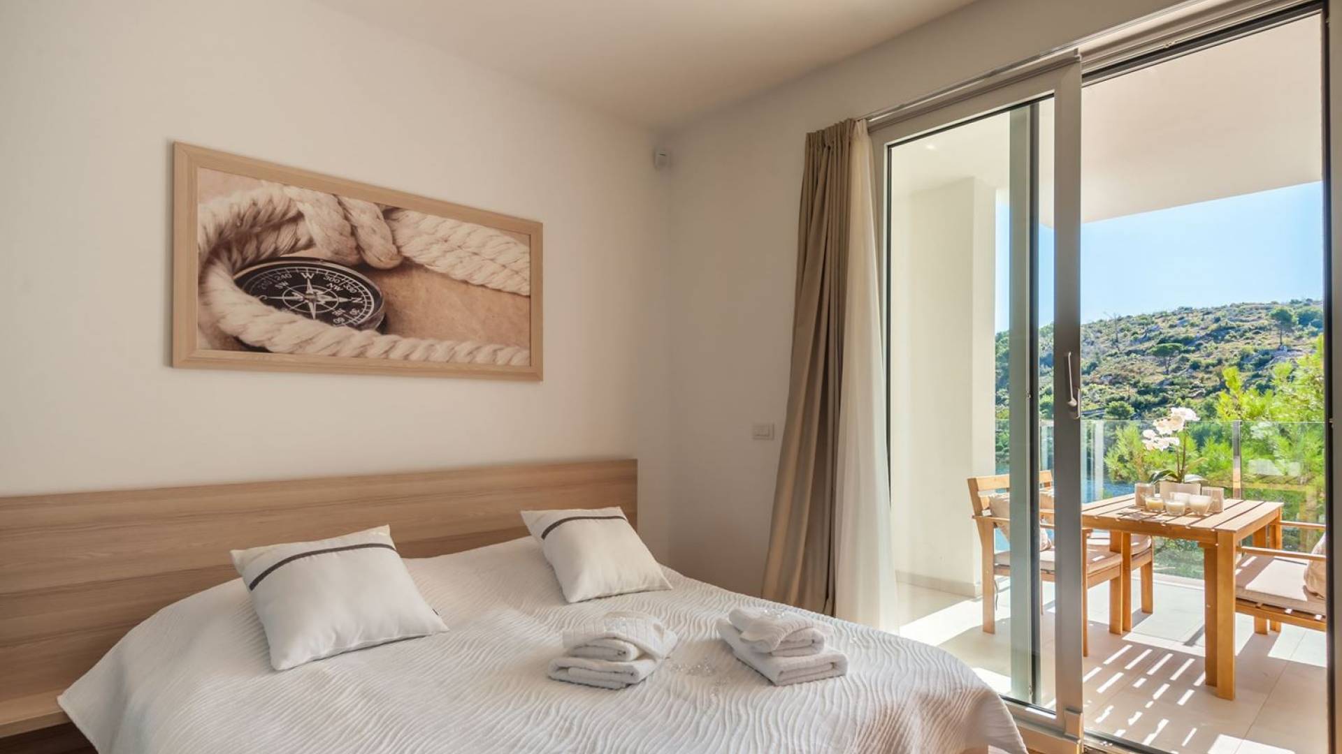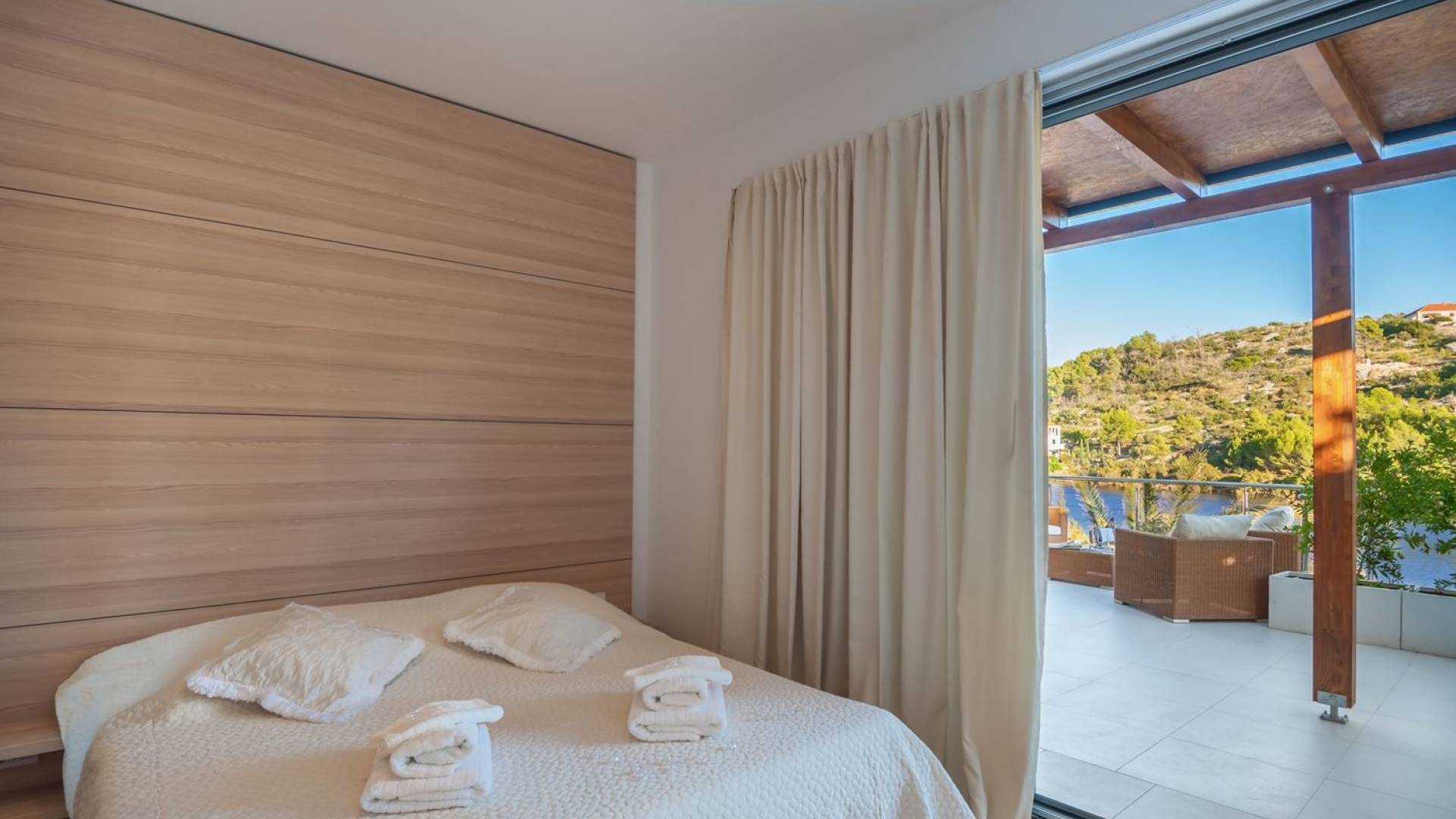 Les chambres sont situées au premier et au rez-de-chaussée. L'escalier intérieur mène au premier étage où se trouvent deux confortables chambres doubles avec salles de bains et vue sur la mer. Il y a aussi une salle de télévision/cinéma séparée, complètement insonorisée et idéale pour les loisirs. Au niveau inférieur se trouve une autre chambre double avec salle de douche privée et balcon avec vue sur la mer, enrichie de meubles en bois pour s'asseoir.