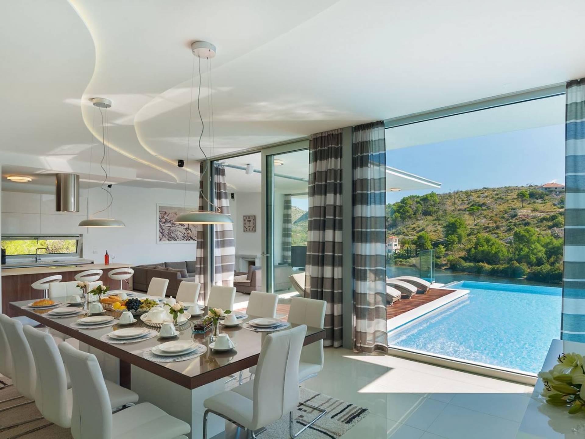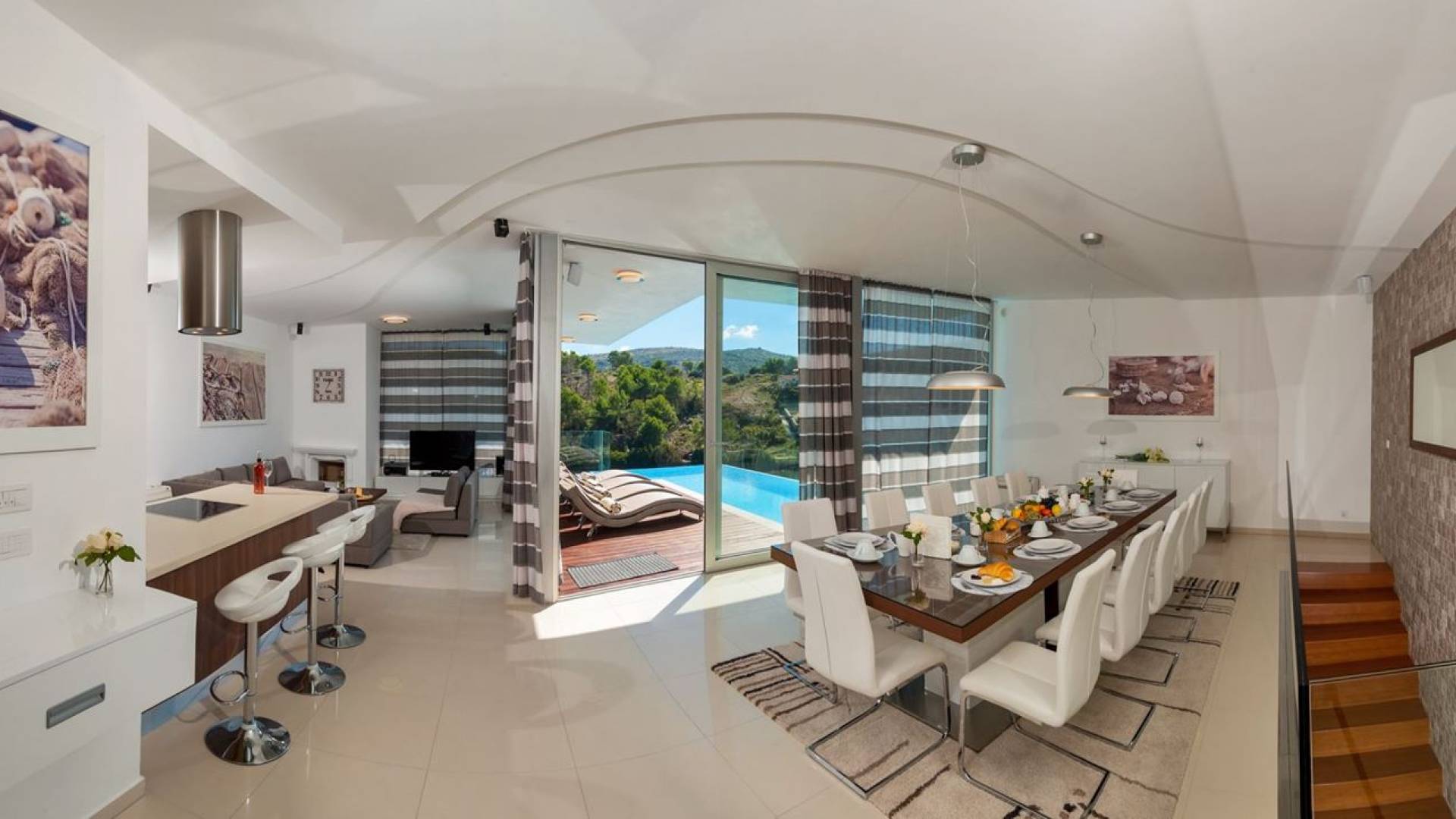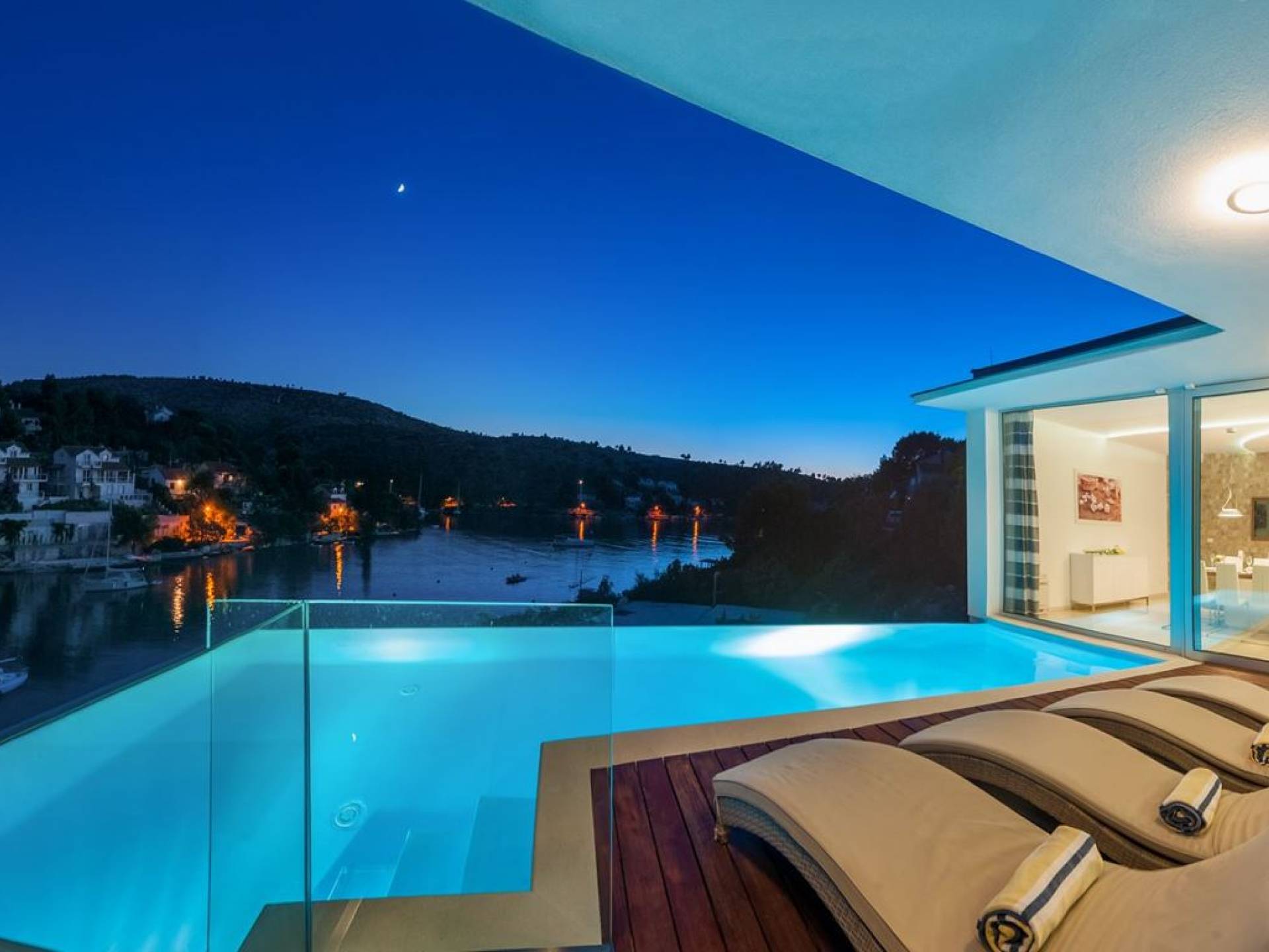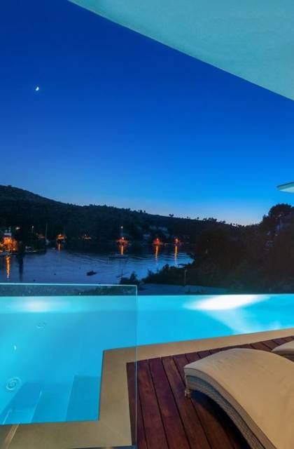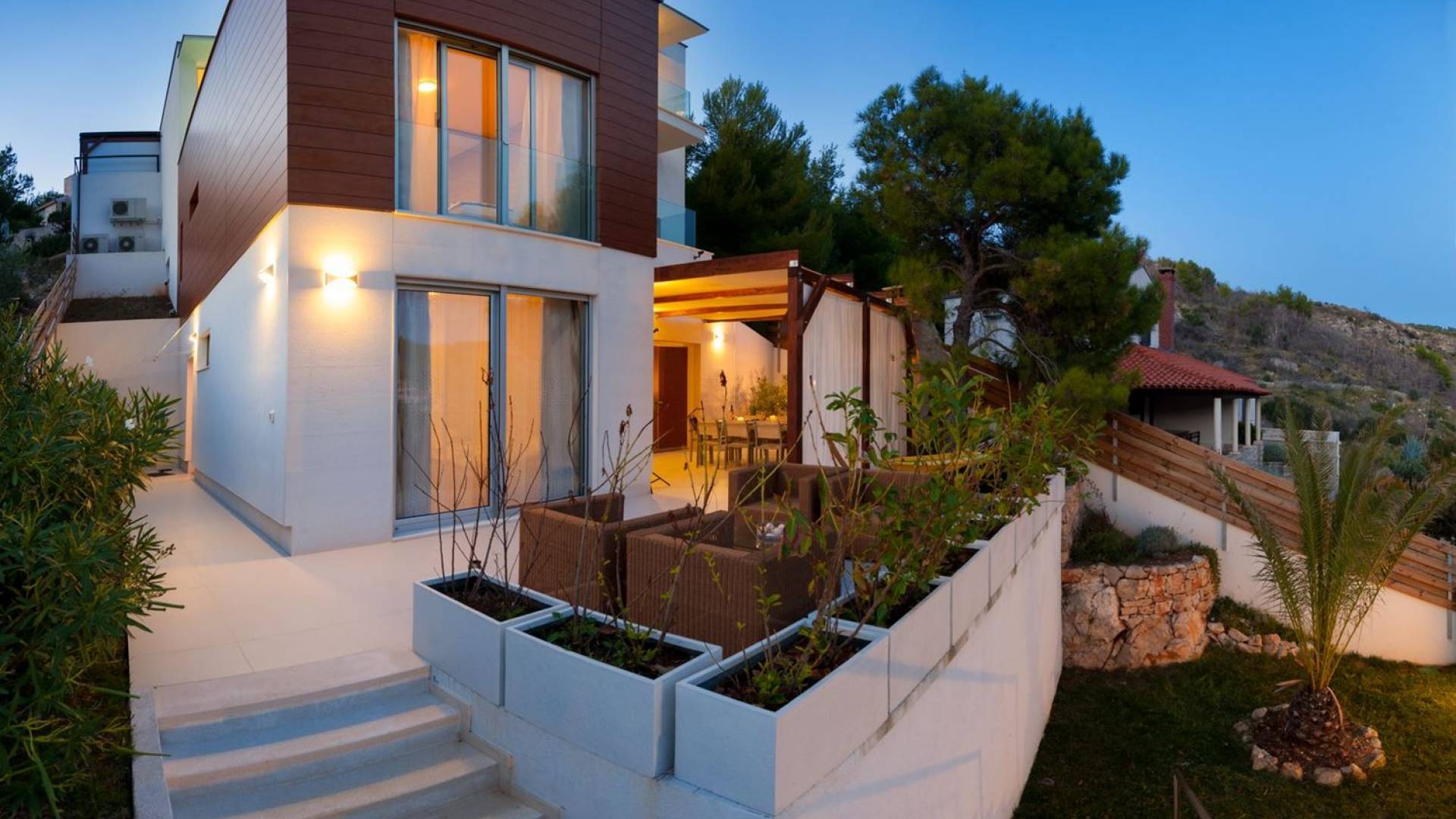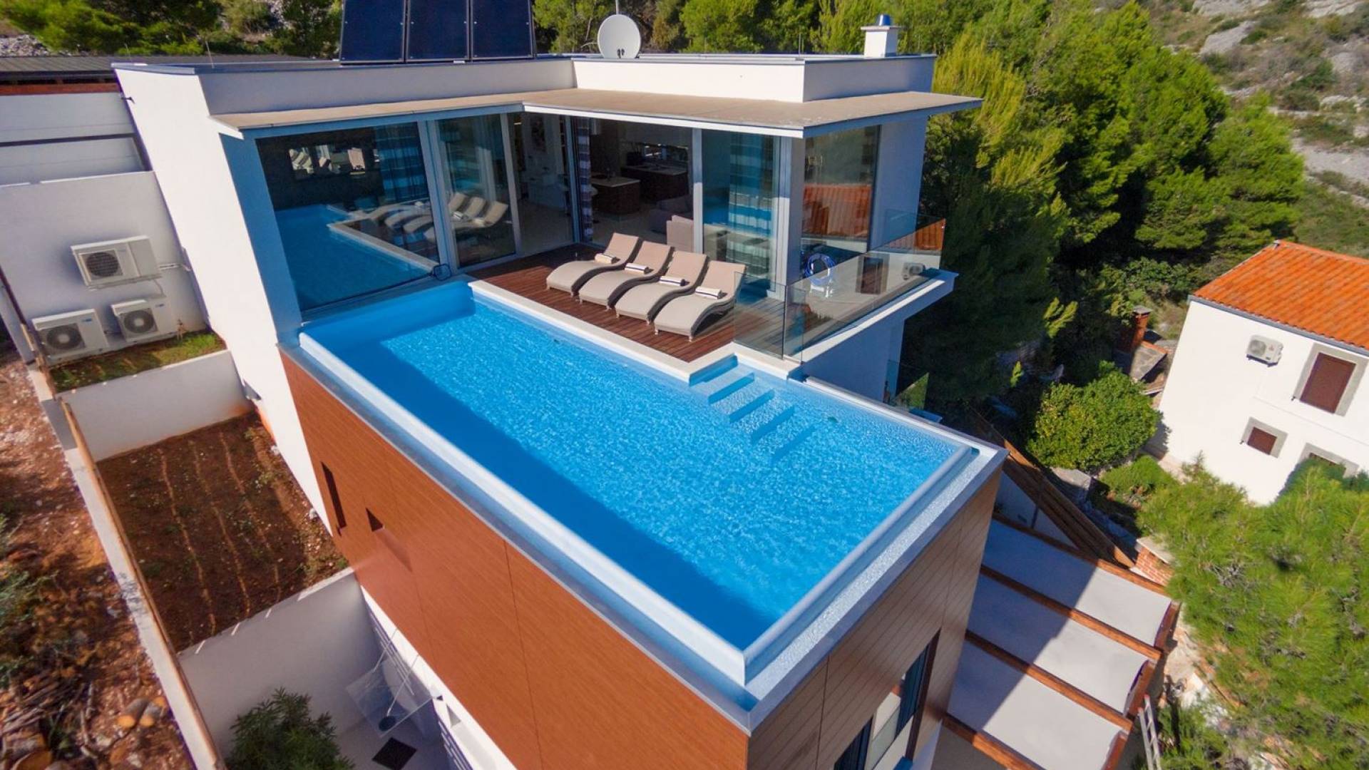 Luxury Villa Infinity est disposée sur trois étages et construite sur un terrain en pente. Il se compose de cinq chambres toutes en suite et d'une salle de bain supplémentaire pour les invités. et c'est le logement parfait pour jusqu'à 10 personnes. La villa est tout au sujet de l'emplacement, de la proximité de la mer et de la vue. De plus, il y a tout le confort et beaucoup de styles à l'intérieur, et un joli jardin pour se divertir et se détendre en plein air.