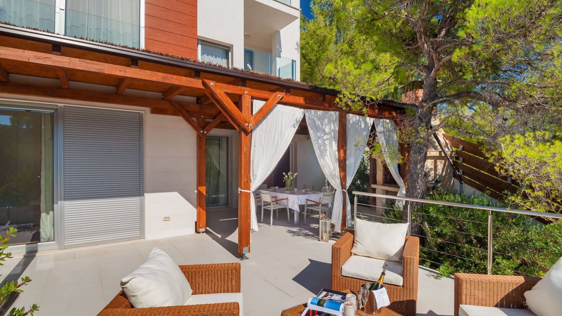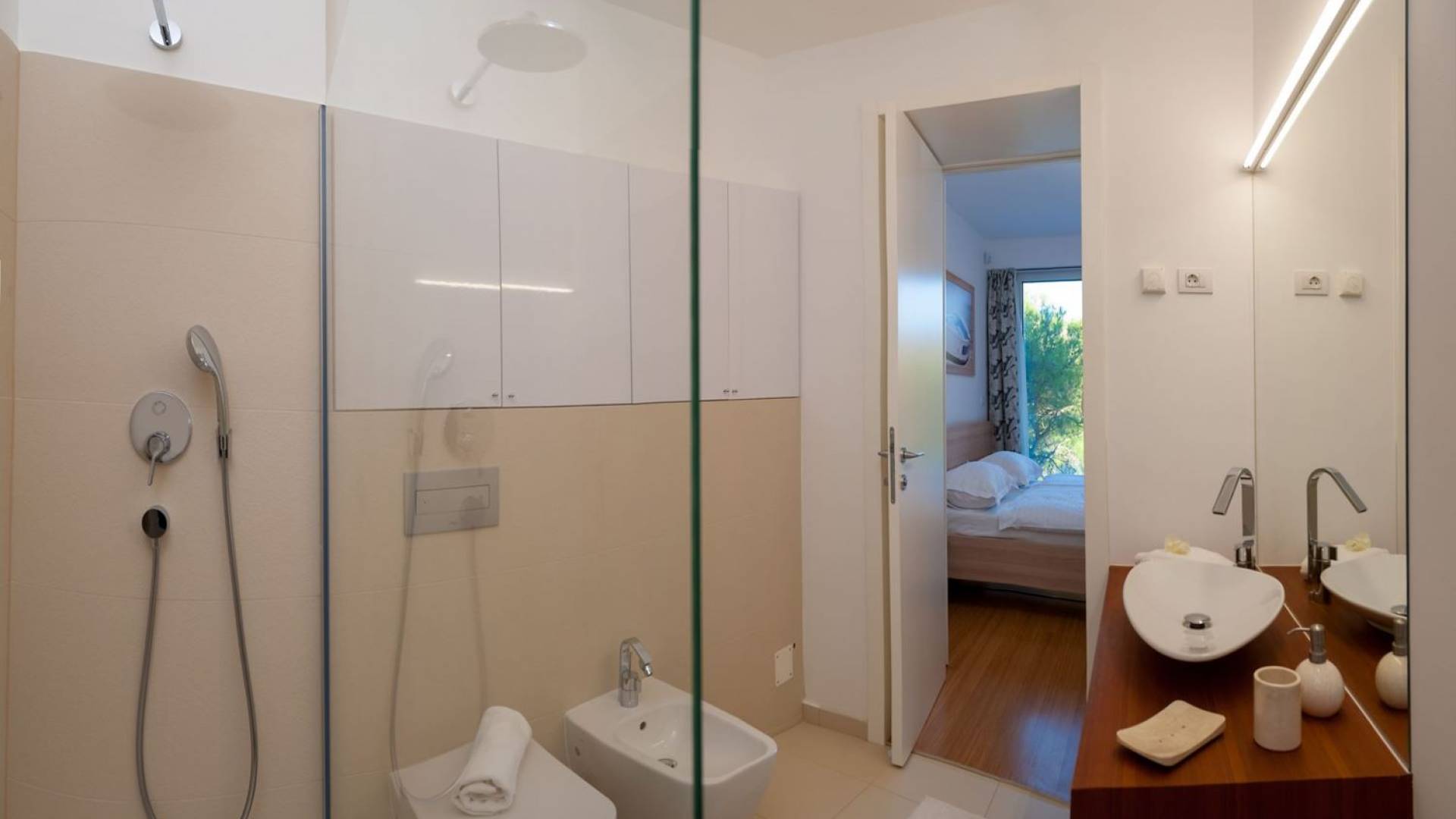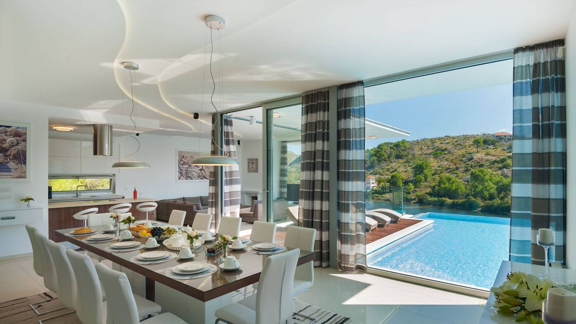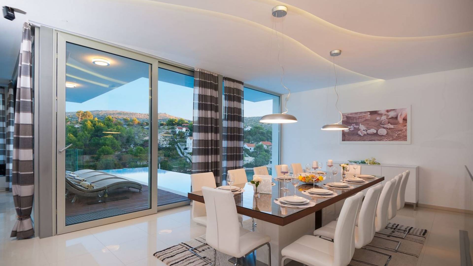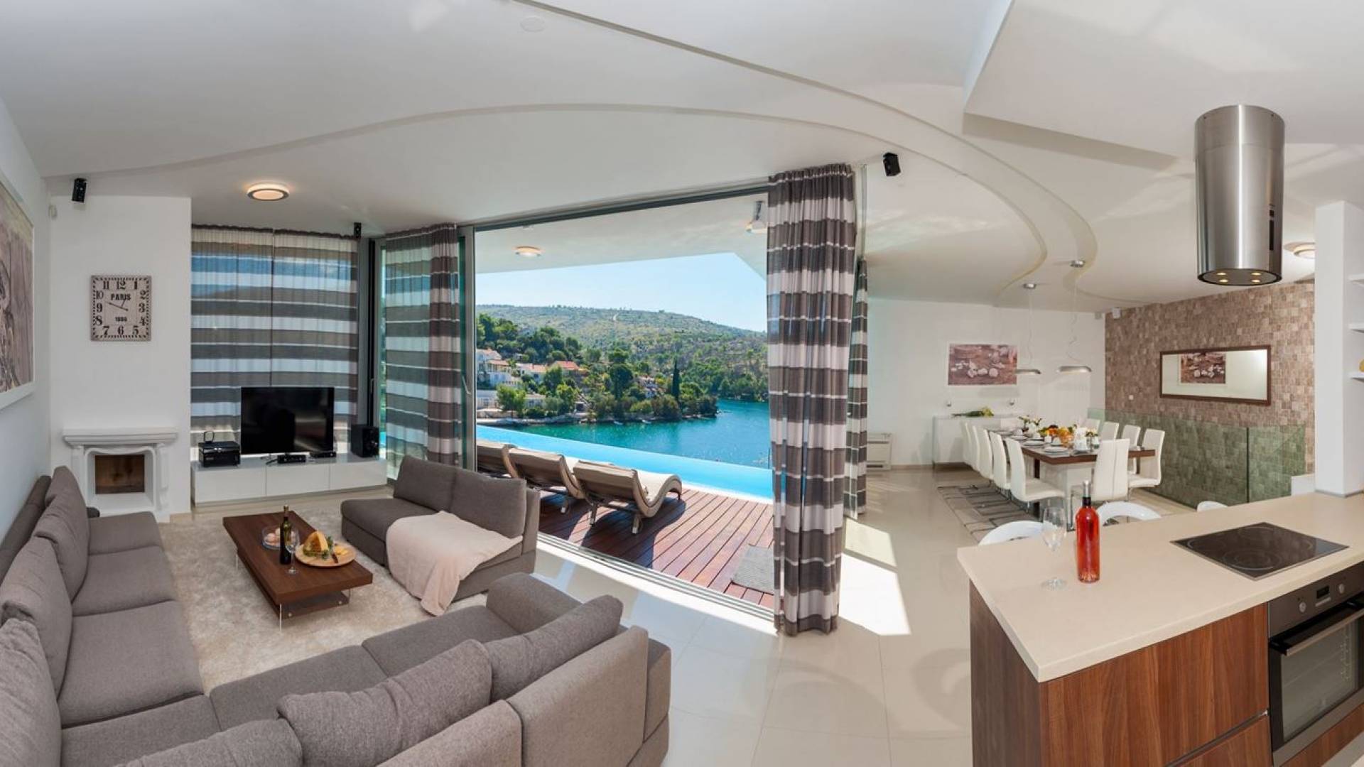Luxury Villa Infinity est disposée sur trois étages et construite sur un terrain en pente. Il se compose de cinq chambres toutes en suite et d'une salle de bain supplémentaire pour les invités. et c'est le logement parfait pour jusqu'à 10 personnes. La villa est tout au sujet de l'emplacement, de la proximité de la mer et de la vue. De plus, il y a tout le confort et beaucoup de styles à l'intérieur, et un joli jardin pour se divertir et se détendre en plein air.