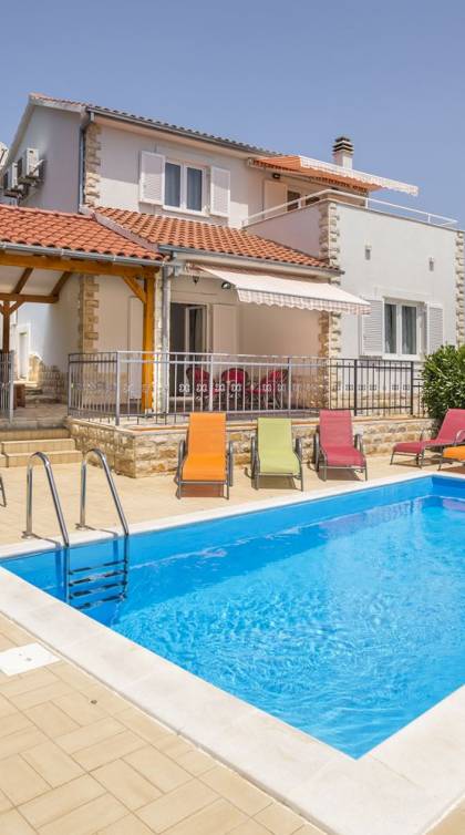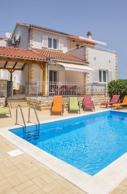 Villa Maslinica est une location de villa de luxe avec 3 chambres et une piscine privée. Une belle maison de vacances familiale avec piscine, la Villa Maslinica, est située dans une partie plus élevée du village, loin du bruit des destinations touristiques bondées, ce qui la rend idéale pour les loisirs et le repos. La villa est entièrement équipée et a été rénovée récemment. Il convient aux familles avec enfants et aux groupes jusqu'à 7 personnes.