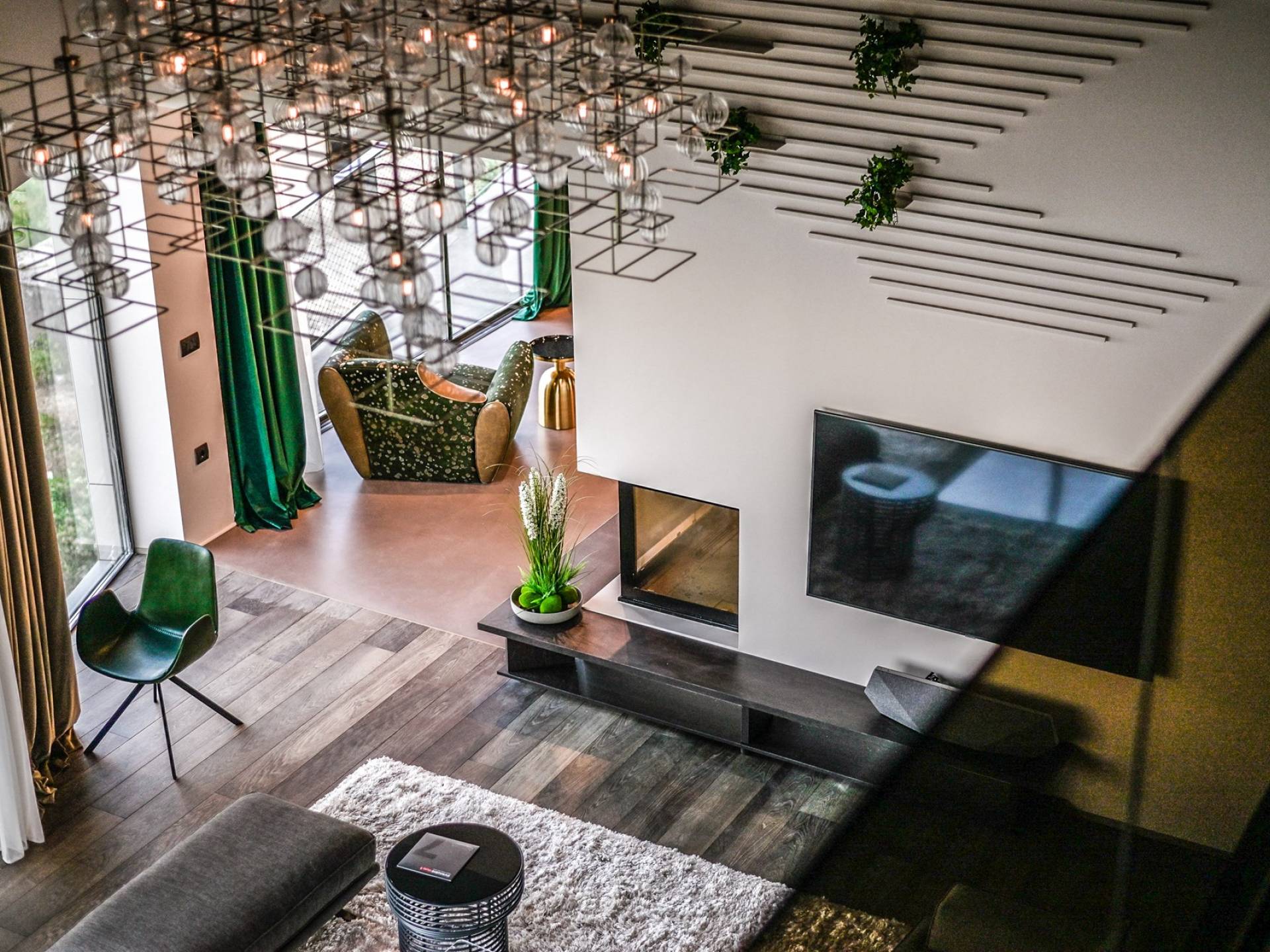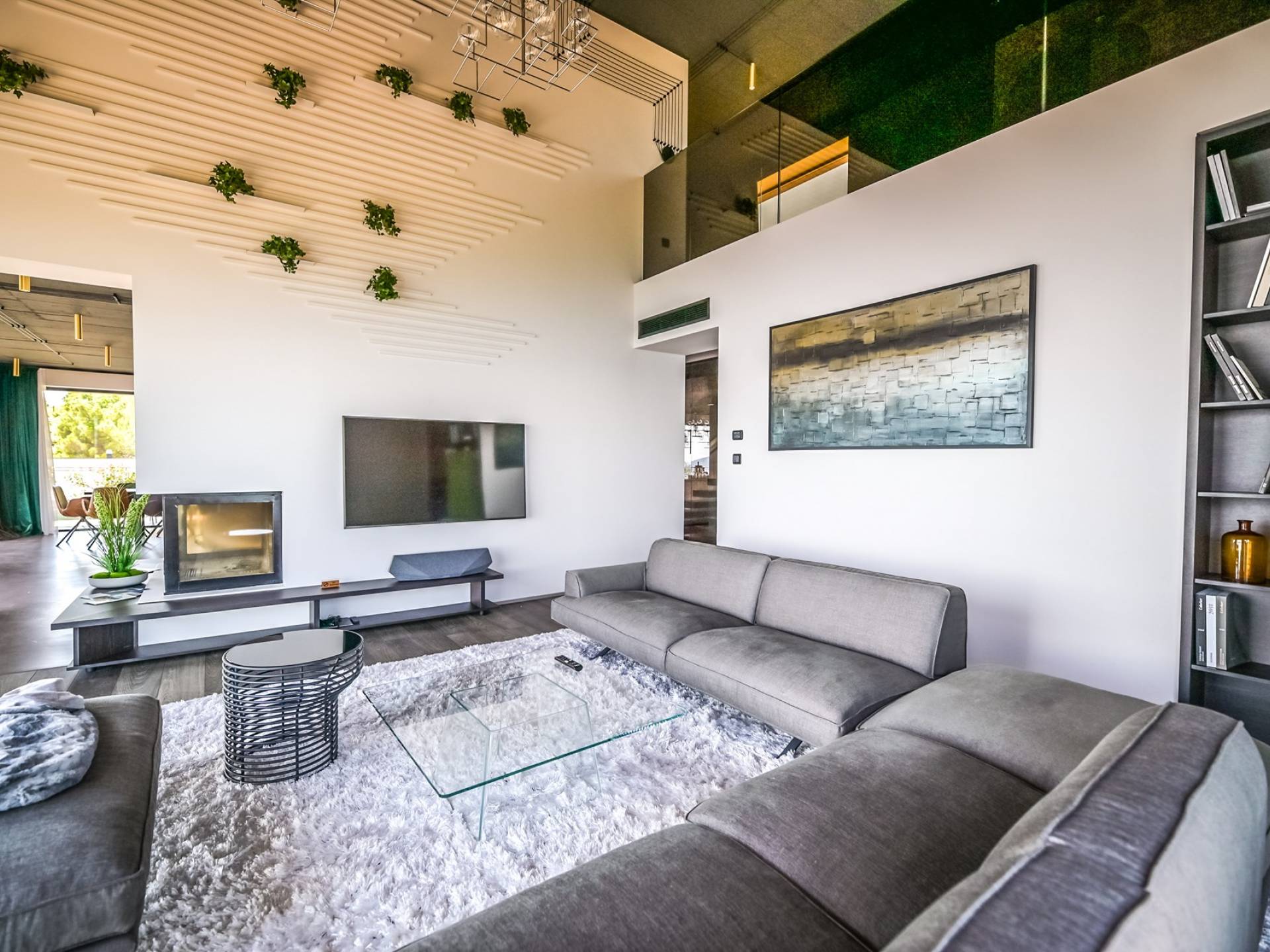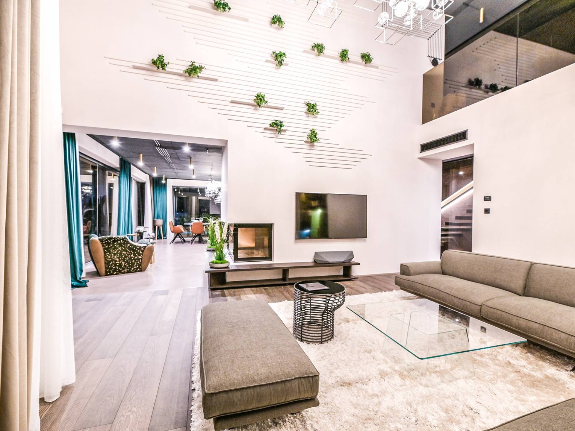 L'intérieur de cette villa de luxe est une collaboration d'auteur entre deux passionnés d'intérieurs et d'architecture. Dès que vous entrez dans l'espace, vous ressentirez la paix et une atmosphère positive. La villa est un designer, entièrement créé selon les souhaits et les conceptions des propriétaires. Le concept store est responsable de la décoration moderne et luxueuse, ils ont répondu à tous les souhaits et projets des propriétaires. La particularité de cette villa est le détail, des petits décors au papier peint au mur, que le propriétaire a soigneusement choisi afin de mieux restituer l'atmosphère de cette villa de luxe.