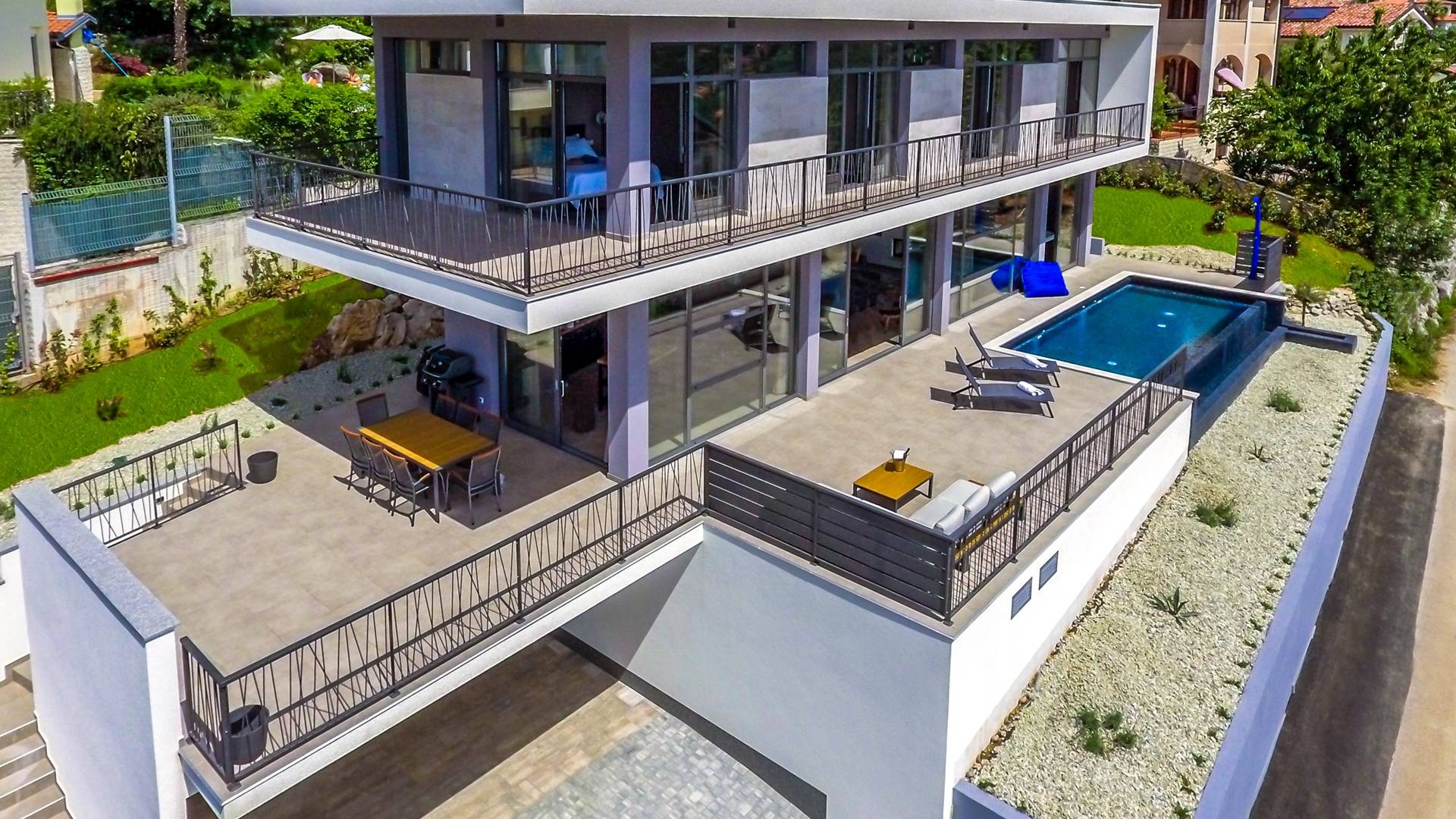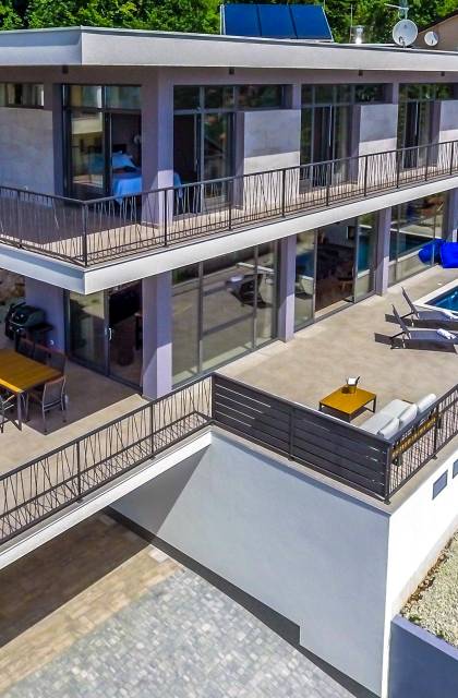 Villa La Vista propose de généreux espaces de vie en plein air et une piscine à débordement avec une vue magnifique sur l'Adriatique. Toute la zone de la piscine est équipée d'une douche extérieure, de chaises longues, de parasols et de sièges, ainsi que d'un coin repas. Profiter de moments mémorables et de la beauté naturelle de cet endroit merveilleux vous permettra de vous détendre et d'échapper aux pressions de la vie quotidienne.