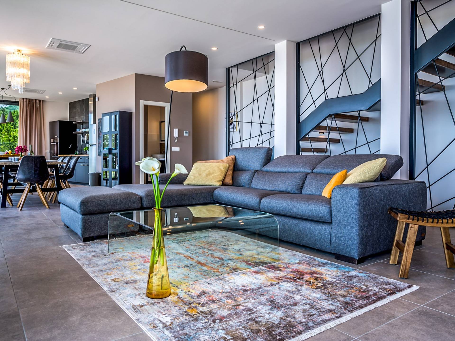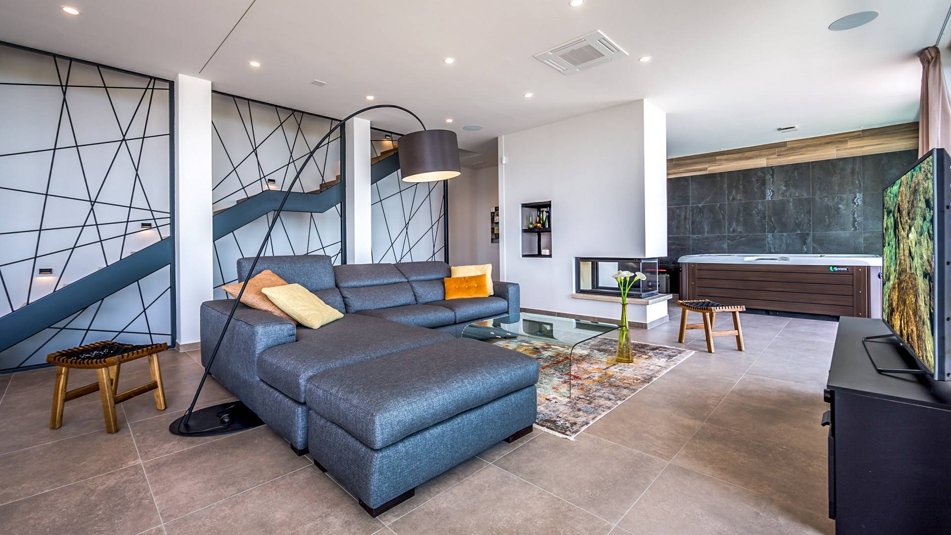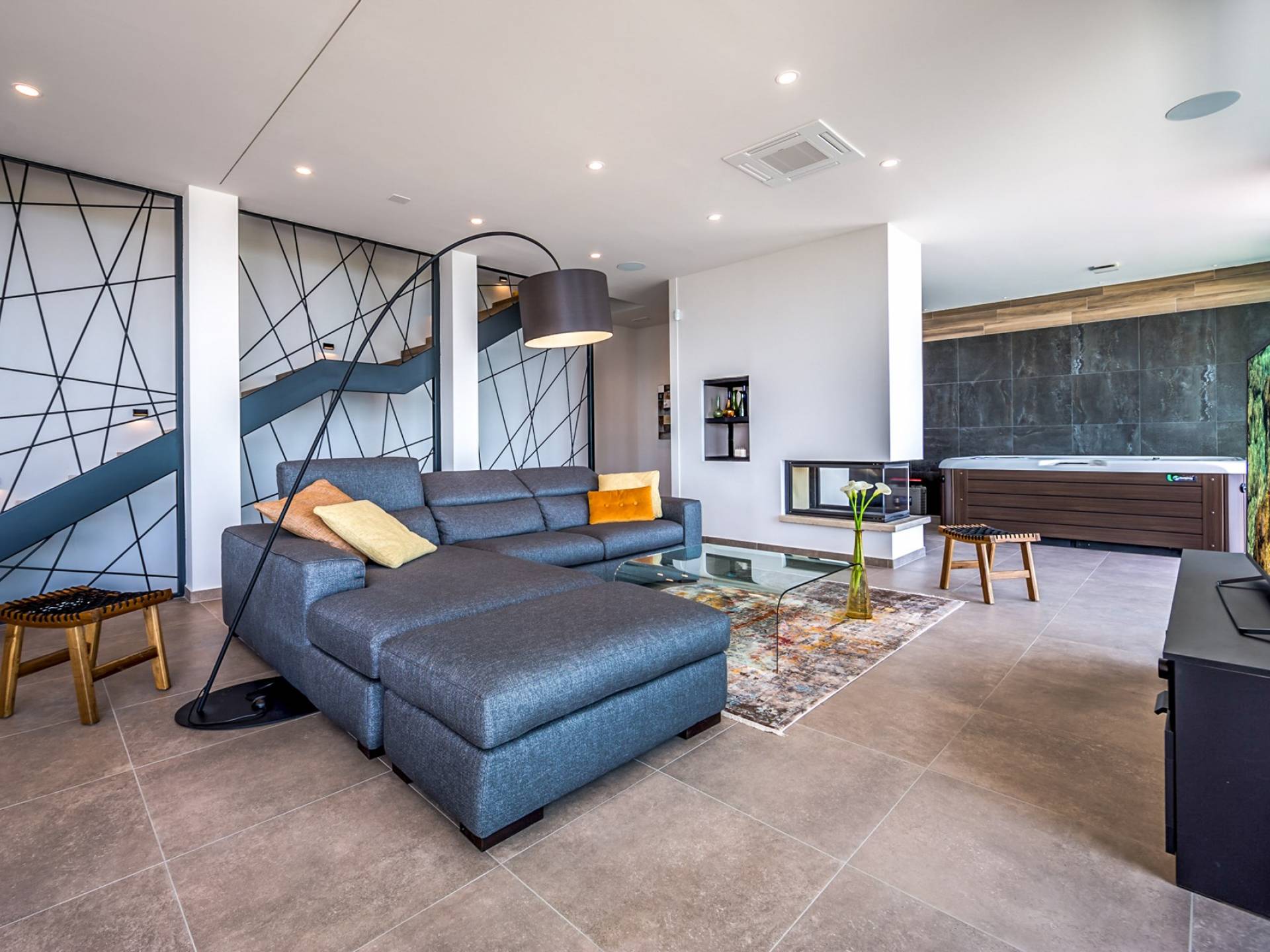 Cette villa familiale moderne dispose d'un coin repas décloisonné et d'une cuisine entièrement équipée avec tout le nécessaire pour une expérience de chef qui s'ouvre sur l'espace repas extérieur. Le salon combine un mobilier confortable et élégant avec une cheminée et une vue sur la piscine pour passer du temps avec la famille et les amis. En plus du salon, il y a une zone SPA avec un jacuzzi et un sauna qui vous permettent d'oublier le monde qui vous entoure et de ressentir une pure détente.