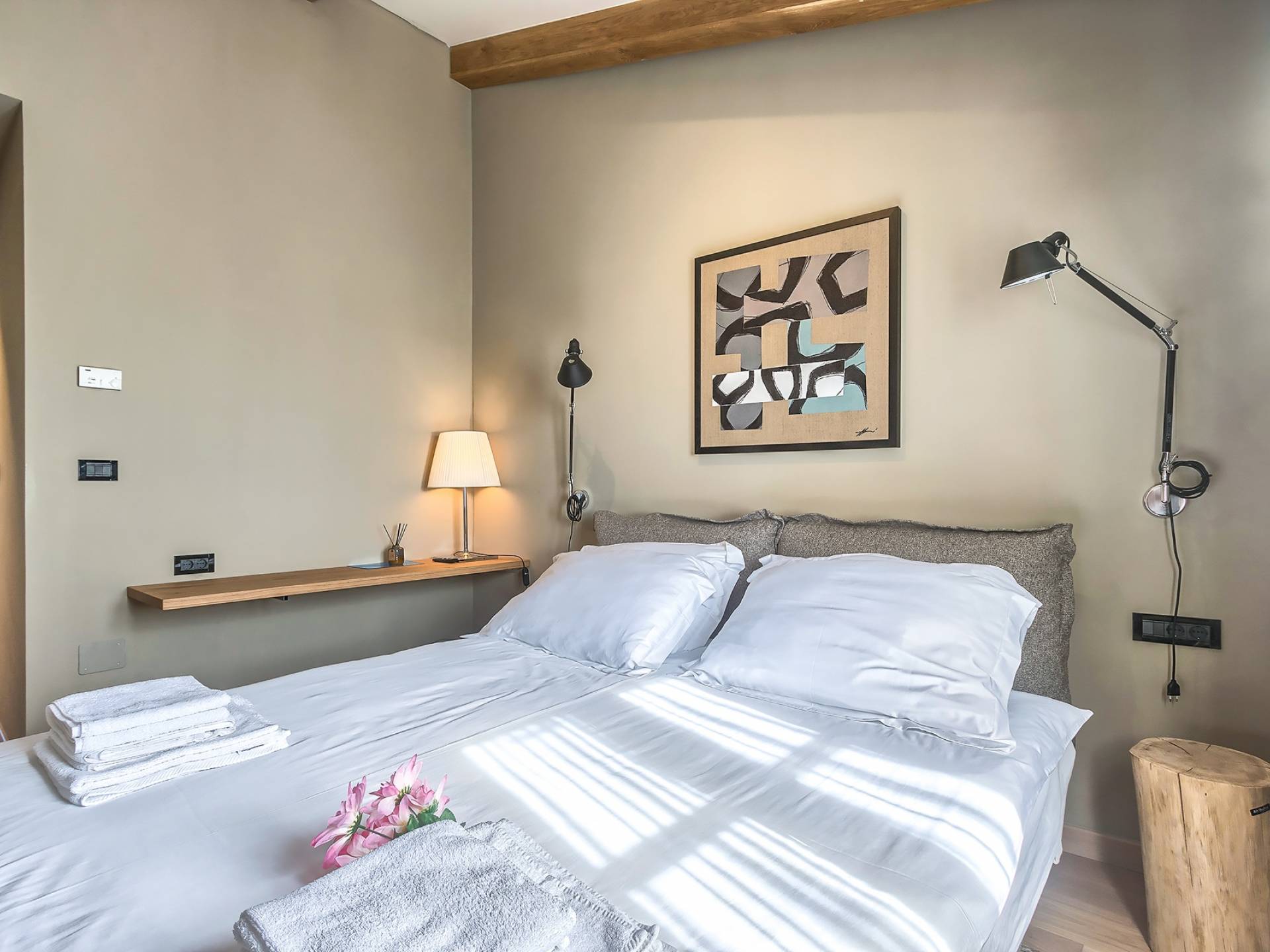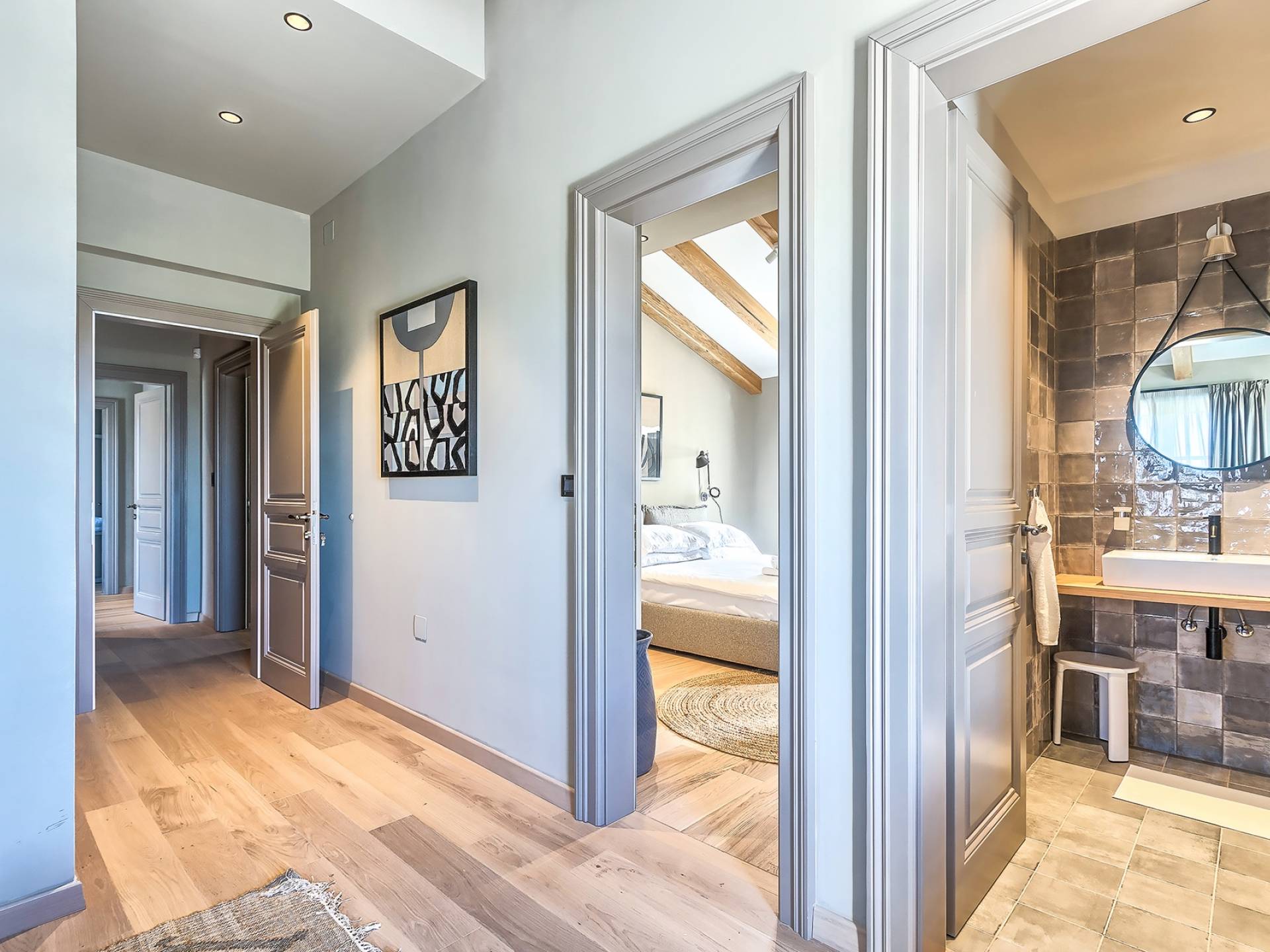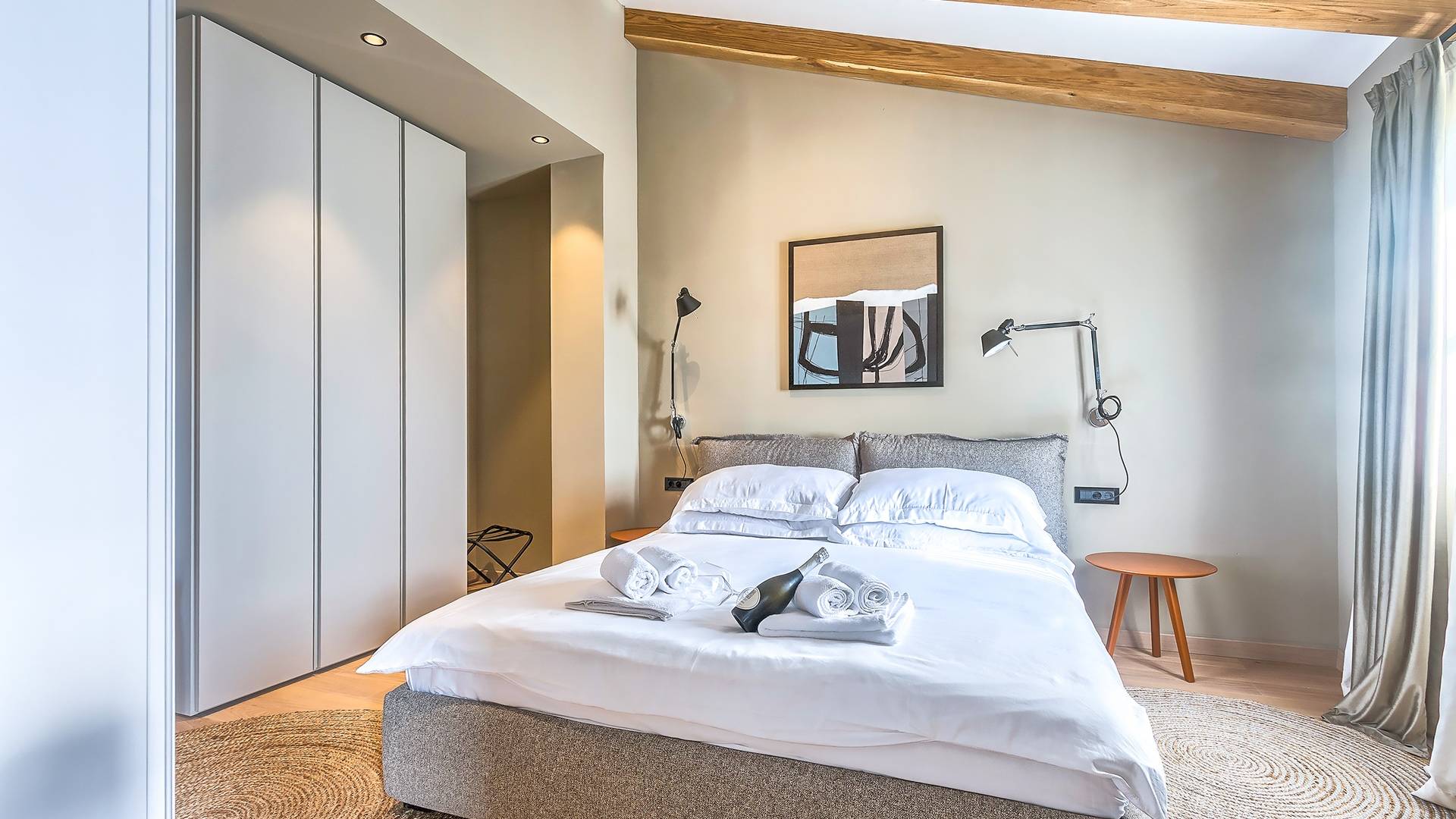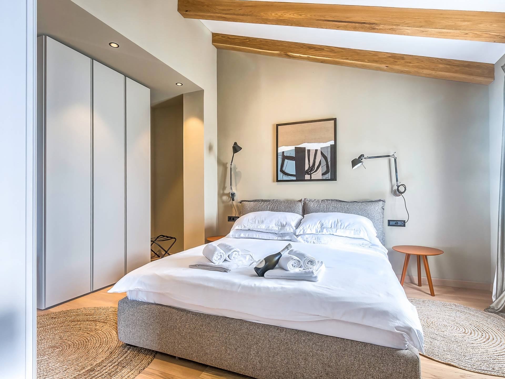 A l'étage se trouvent quatre chambres, et toutes les chambres ont une salle de bain attenante. À côté de la chambre principale, il y a un petit salon avec un canapé-lit supplémentaire, sortant du balcon avec une vue digne d'admiration. L'endroit idéal pour un verre de vin après le dîner en toute tranquillité.
