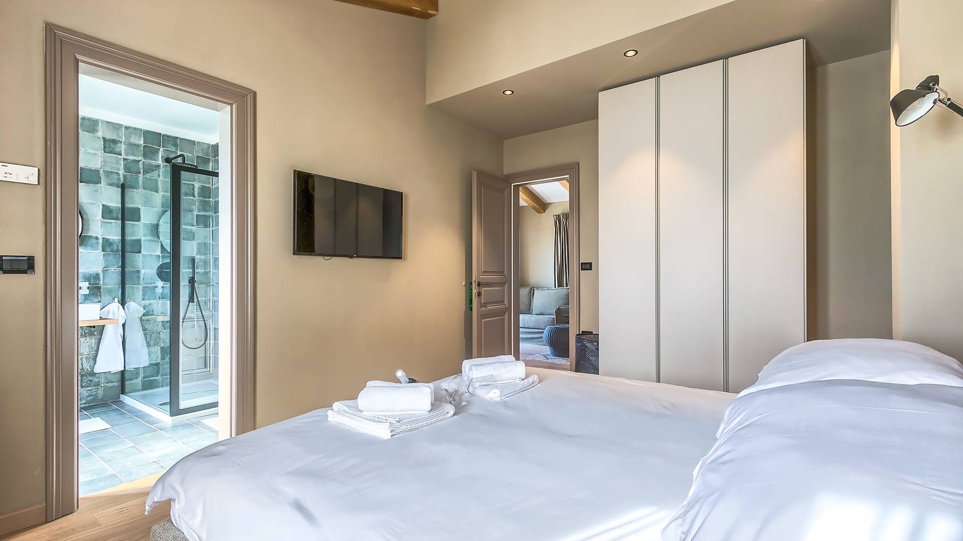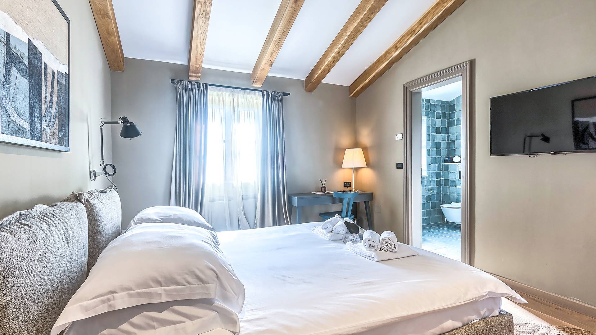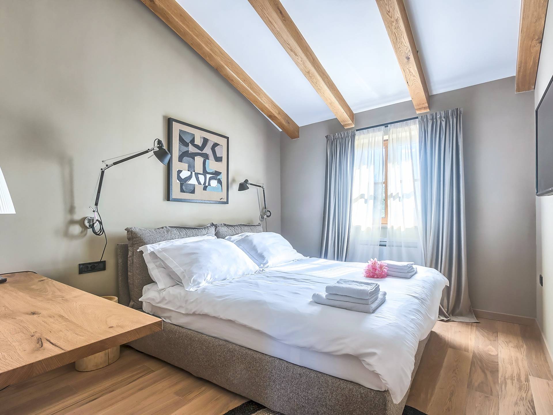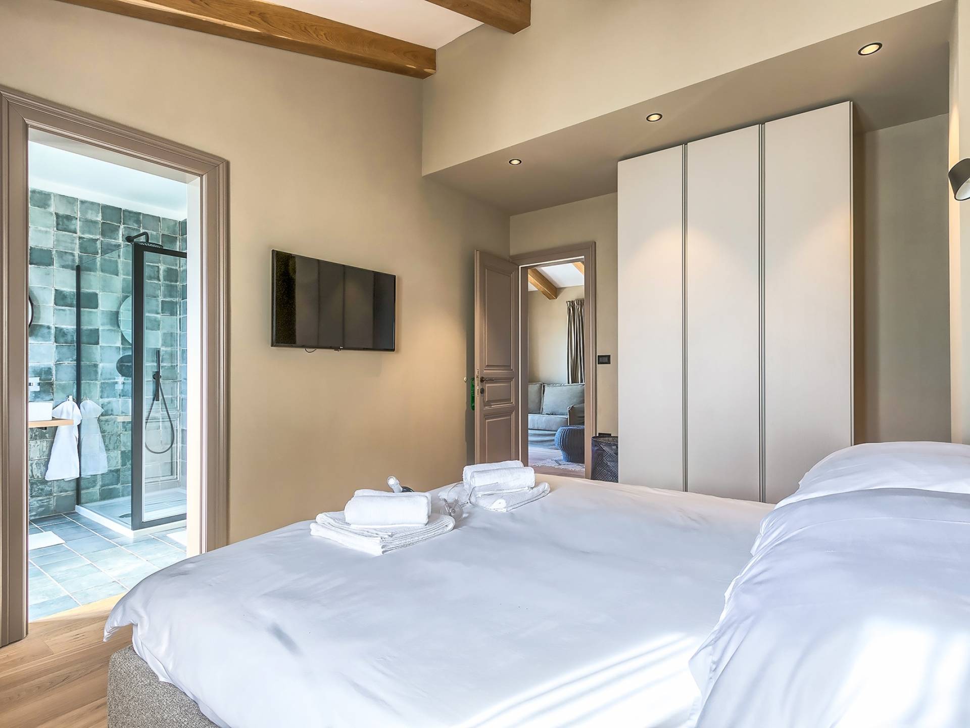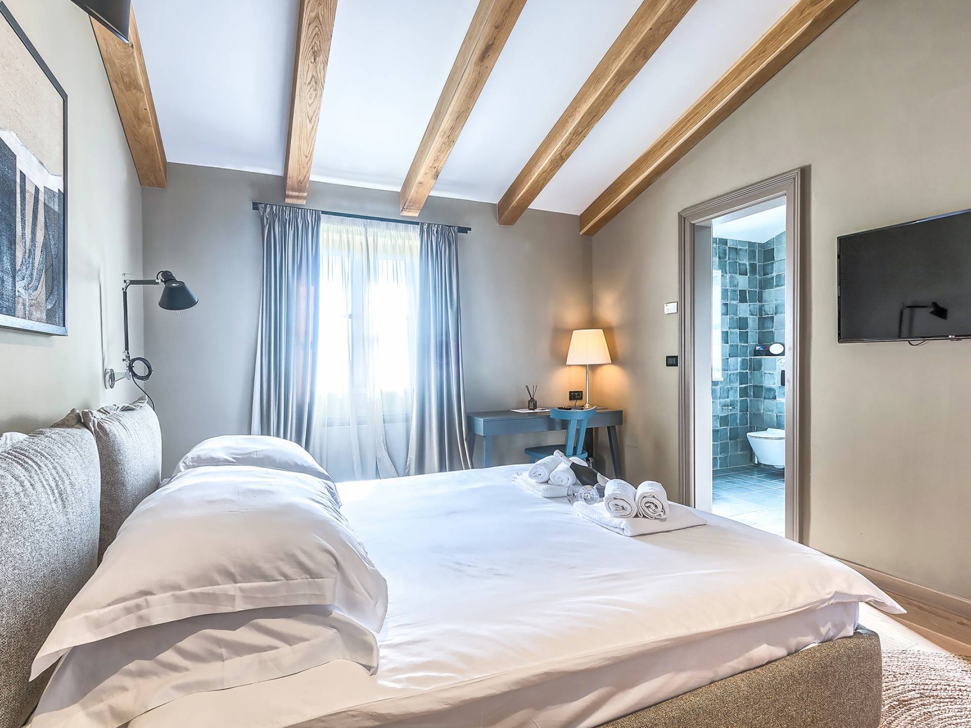 A l'étage se trouvent quatre chambres, et toutes les chambres ont une salle de bain attenante. À côté de la chambre principale, il y a un petit salon avec un canapé-lit supplémentaire, sortant du balcon avec une vue digne d'admiration. L'endroit idéal pour un verre de vin après le dîner en toute tranquillité.