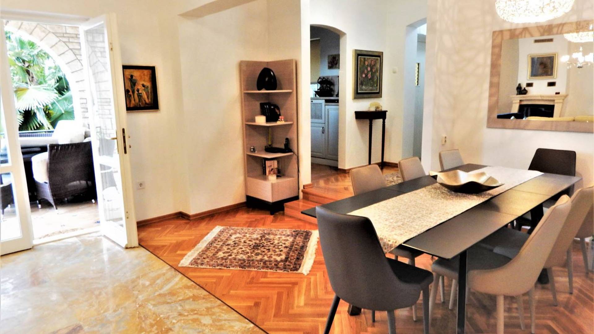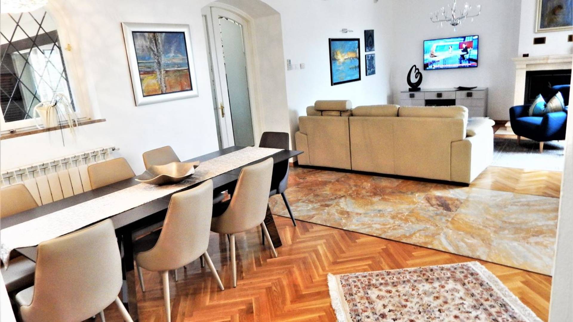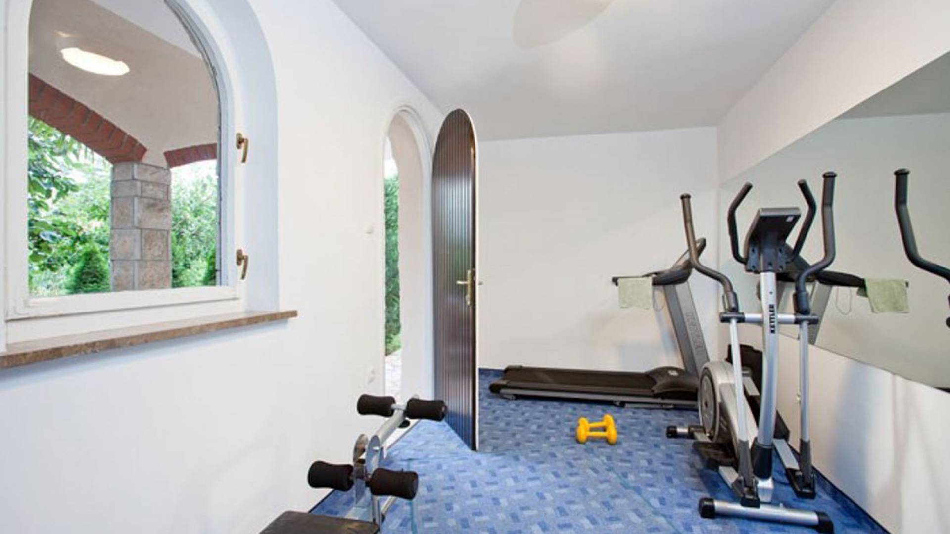 La propriété est clôturée par une clôture magnifiquement fabriquée à la main dans une combinaison de pierre et de fer forgé, ce qui garantit un séjour paisible et sécurisé. La Villa Umag est aménagée dans le style rustique ancien, avec de hauts plafonds et de grandes chambres spacieuses. Les parquets en chêne décorent toutes les chambres et le salon, tandis que les cuisines, les halls et les terrasses sont en carrelage italien en marbre ou en terre cuite. Avec ses prestations de qualité et son mobilier de qualité,