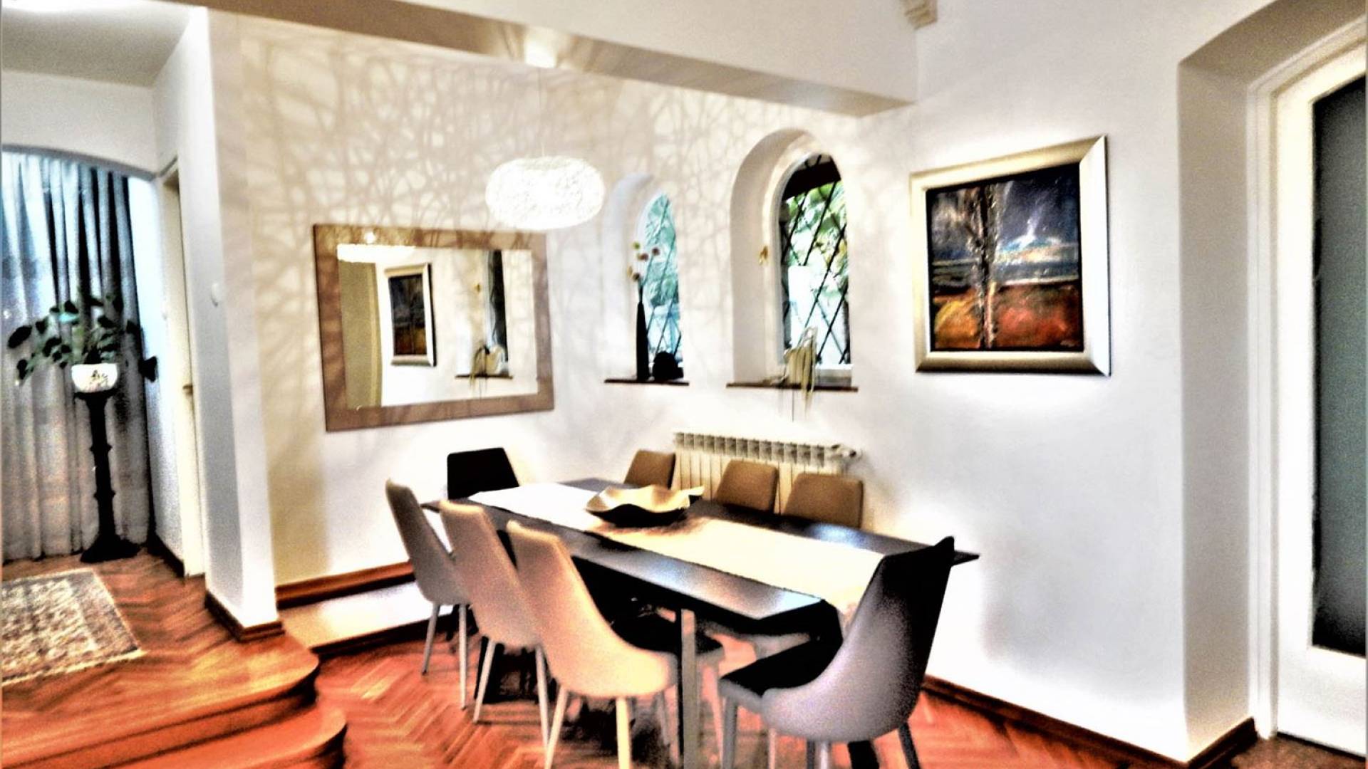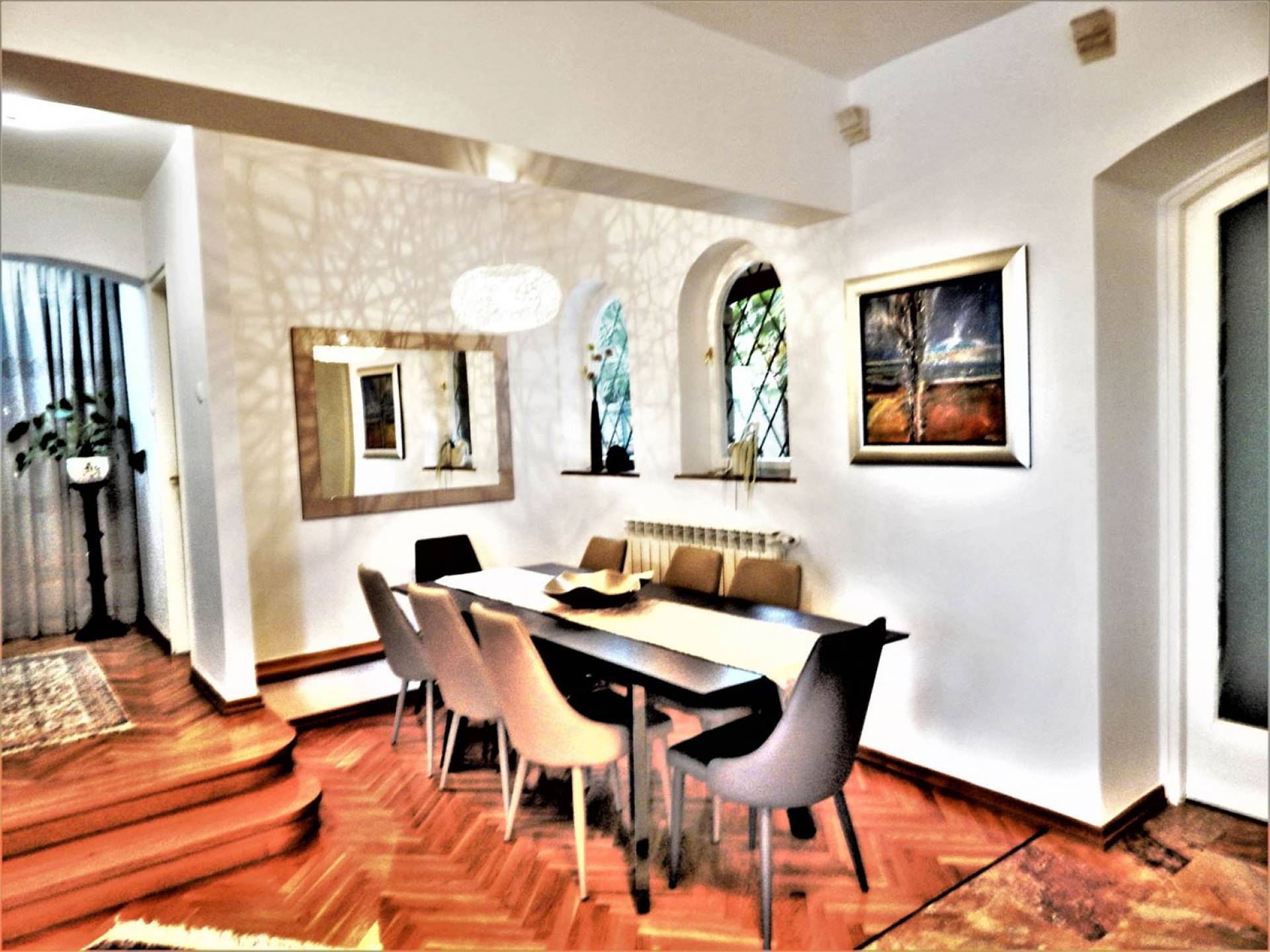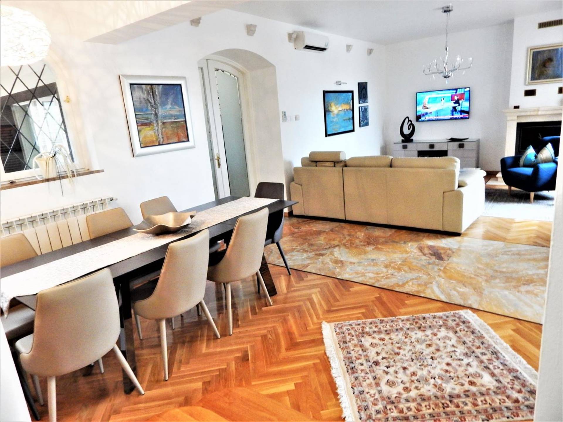 La propriété est clôturée par une clôture magnifiquement fabriquée à la main dans une combinaison de pierre et de fer forgé, ce qui garantit un séjour paisible et sécurisé. La Villa Umag est aménagée dans le style rustique ancien, avec de hauts plafonds et de grandes chambres spacieuses. Les parquets en chêne décorent toutes les chambres et le salon, tandis que les cuisines, les halls et les terrasses sont en carrelage italien en marbre ou en terre cuite. Avec ses prestations de qualité et son mobilier de qualité,