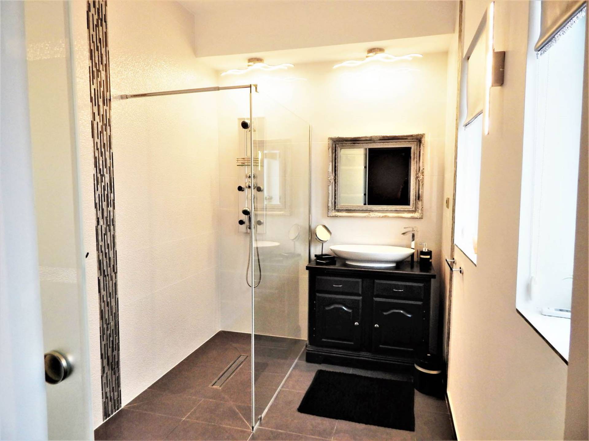 Sur le côté nord de la propriété, il y a une entrée séparée avec un grand portail en fer pour accéder à l'espace de stationnement dédié à 3-4 véhicules. Sur le côté nord se trouve également une entrée à l'espace appartement qui est entièrement séparé des logements centraux de la Villa avec une intimité totale garantie pour les invités ou le personnel. Au premier étage, il y a un appartement entièrement équipé pour les invités ou le personnel, avec une entrée arrière privée, un salon, une chambre avec lit queen, une cuisine américaine, une salle de bain avec douche et une grande terrasse. L'appartement est entièrement meublé avec une cuisine bien équipée.