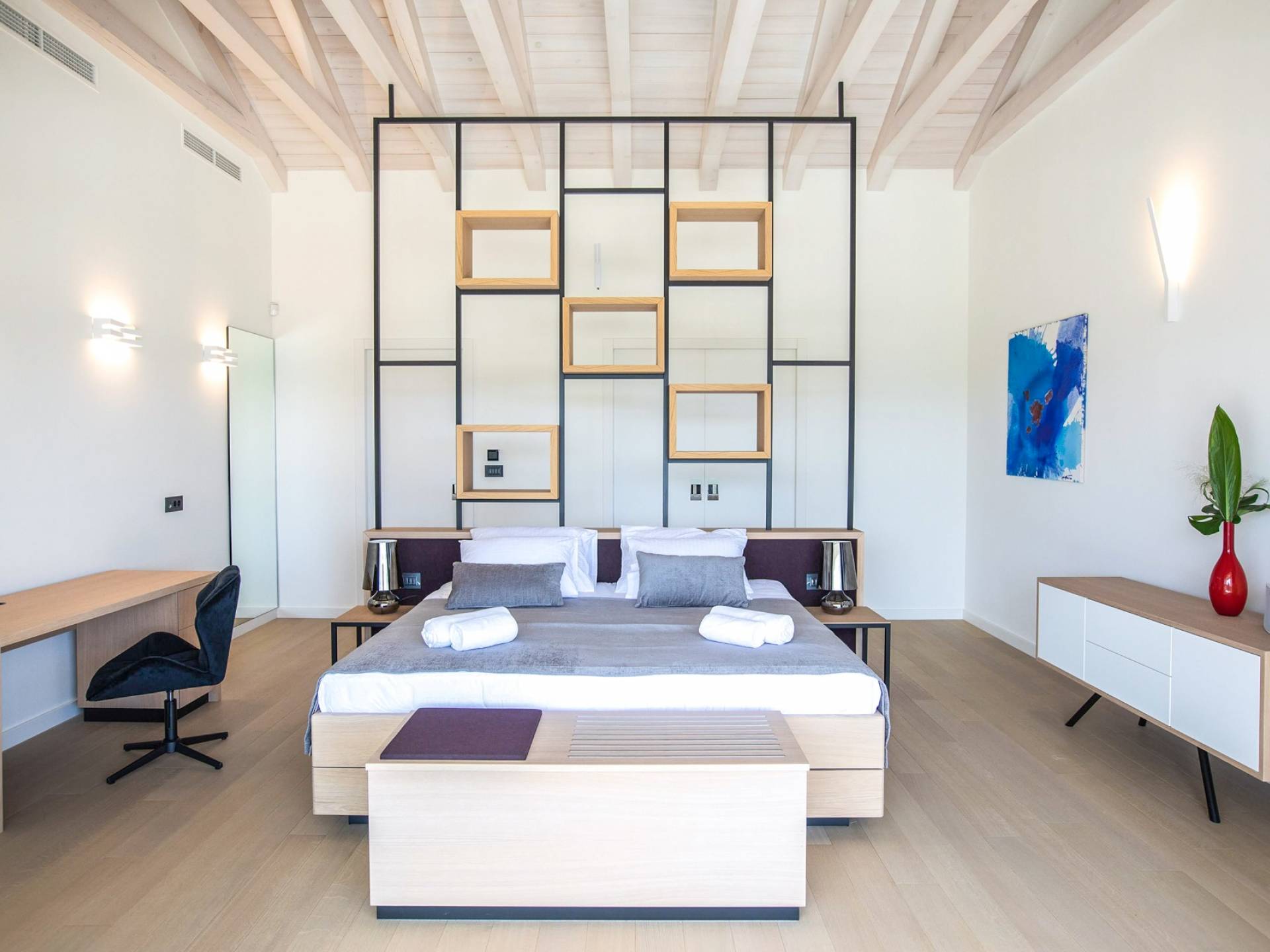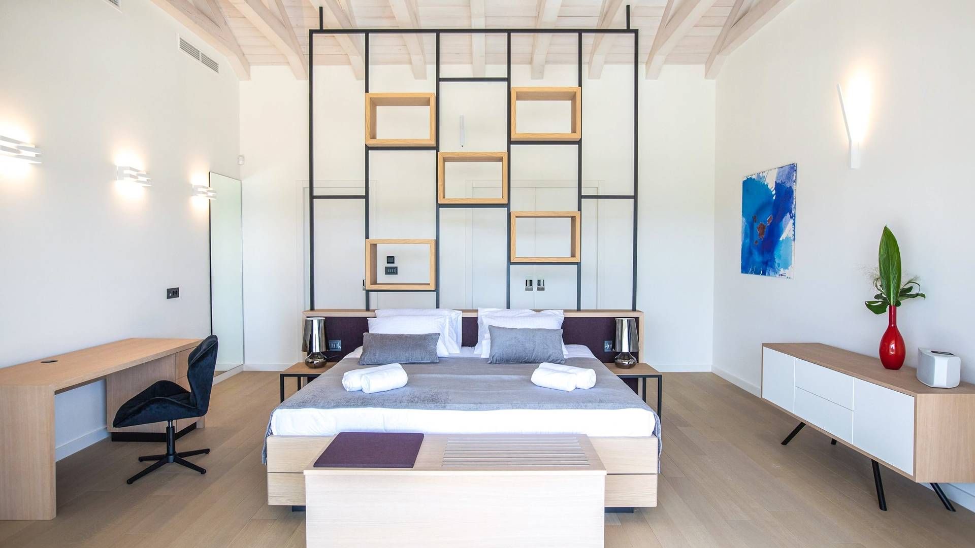 La Villa de Luxe Eos est implantée sur une propriété de 1000m² tandis que sa partie résidentielle occupe 300 m2. Il est réparti sur 3 étages séparés par un éternel escalier. La Villa Eos dispose de 3 chambres et de 3 salles de bains privatives. Il est idéal pour un hébergement de luxe de 6 personnes.